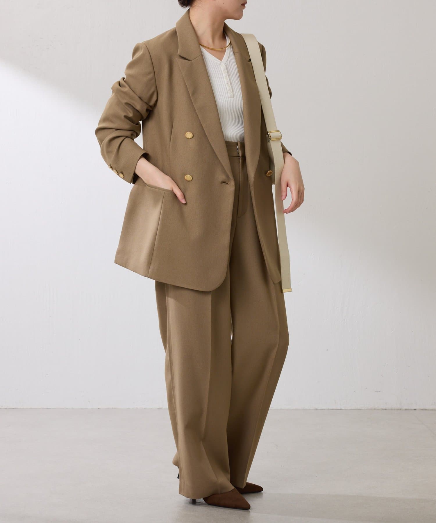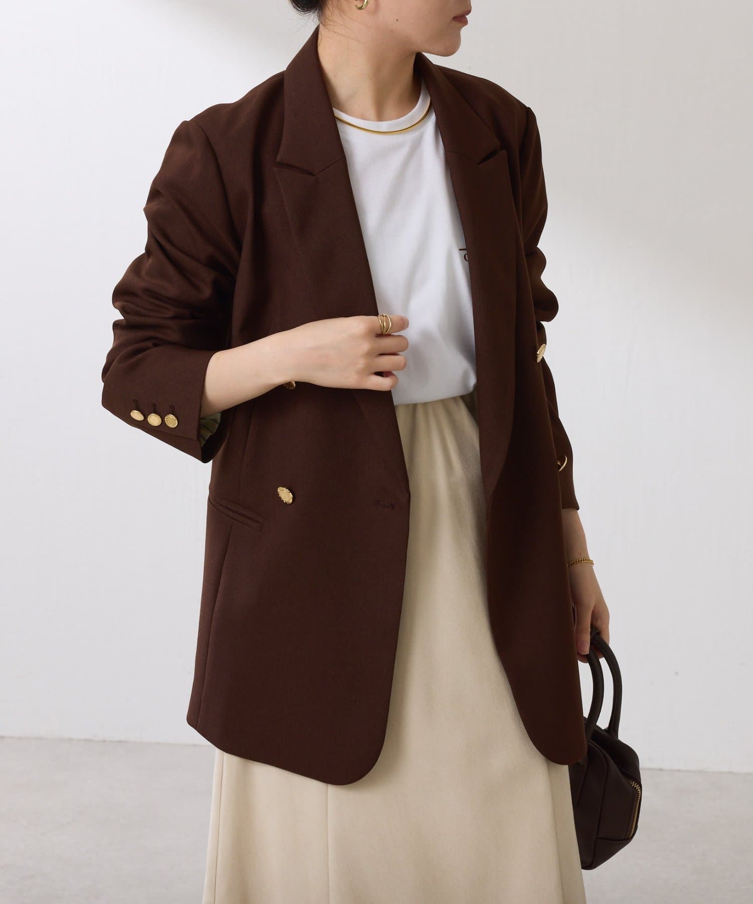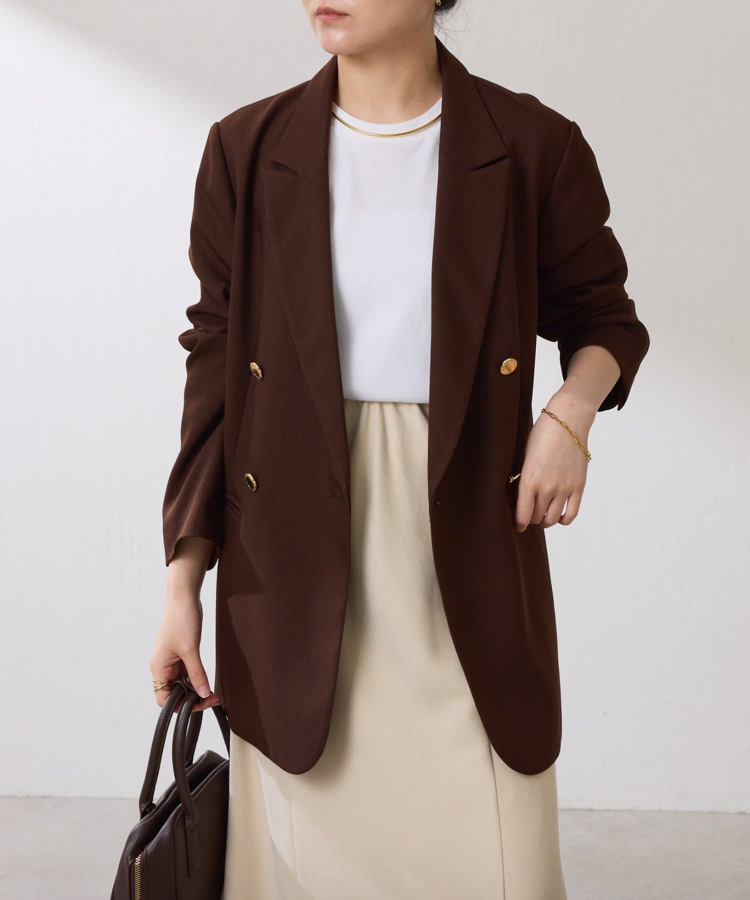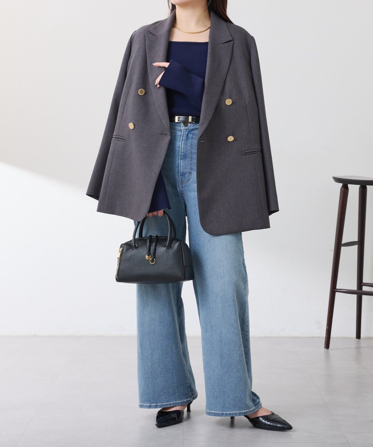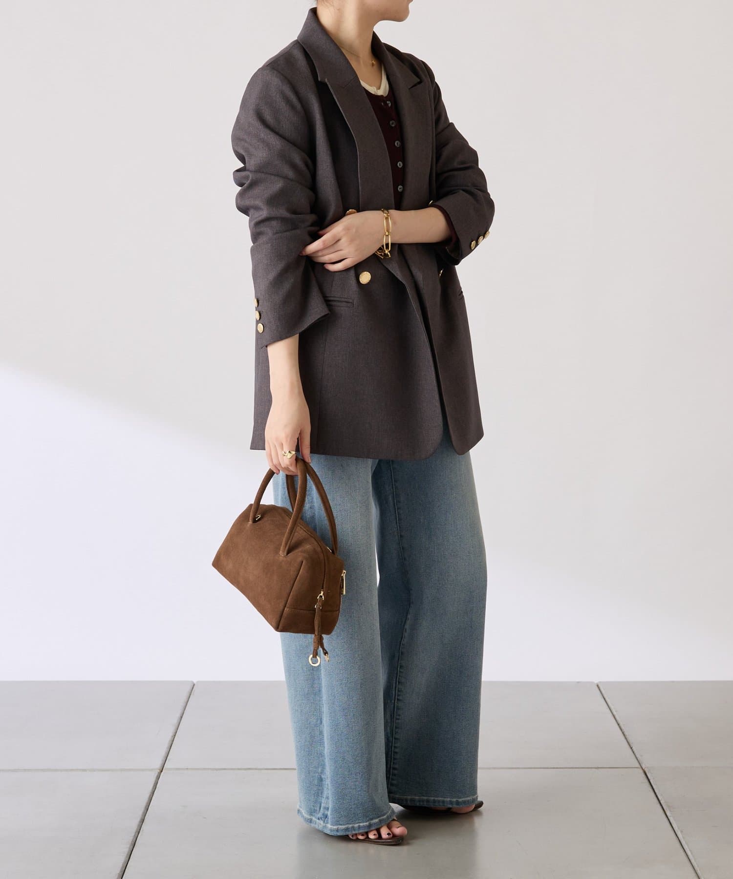 ・襟はセミノッチドラペルのダブルにしており、抜け感がありオンオフ使いやすいです。