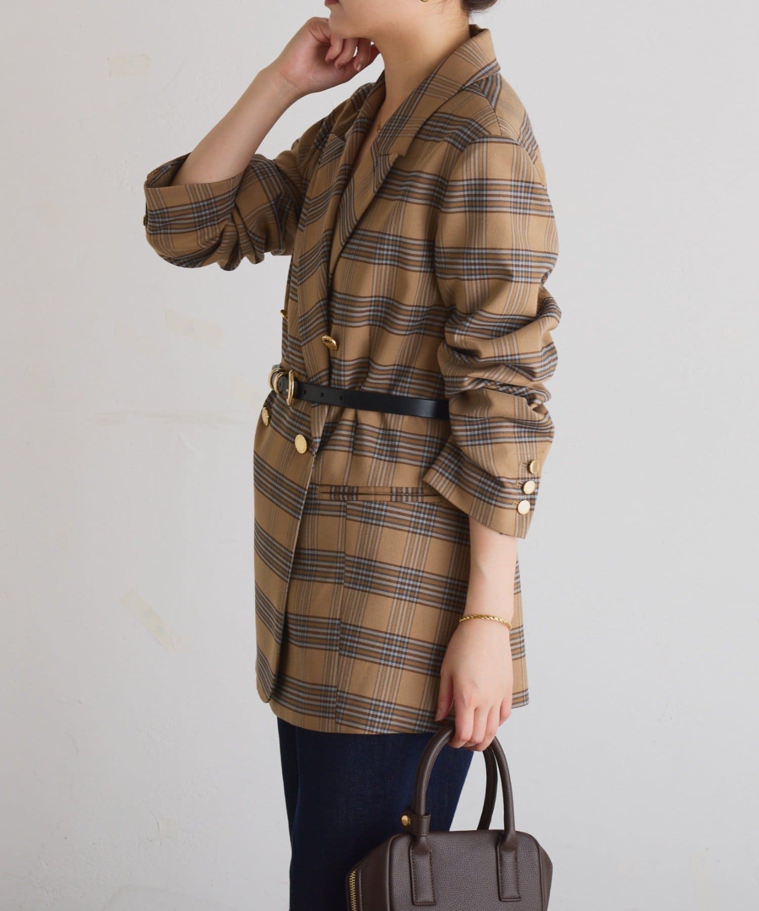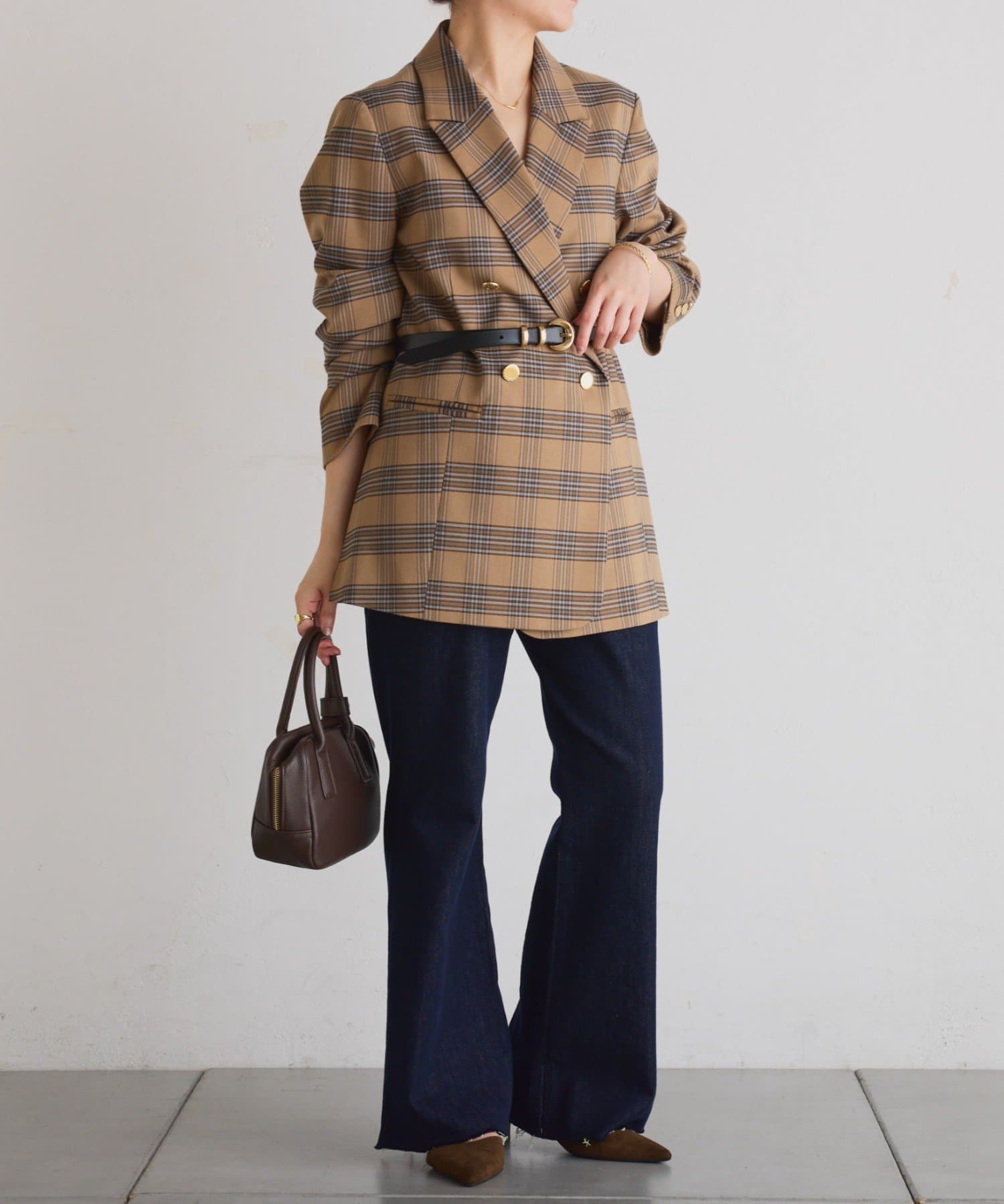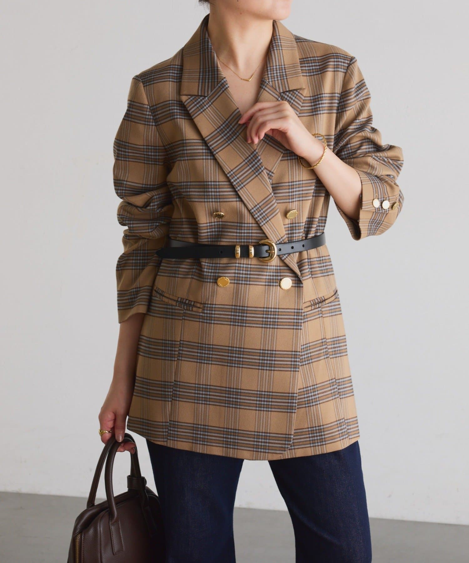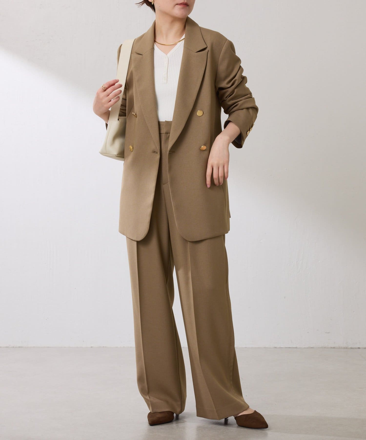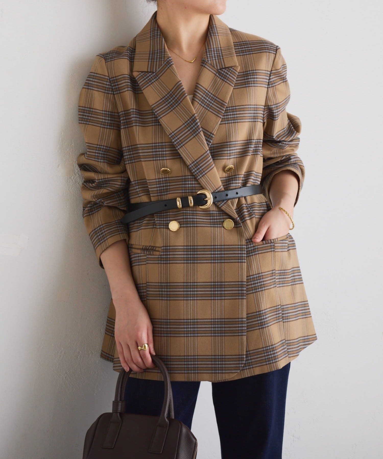 ・襟はセミノッチドラペルのダブルにしており、抜け感がありオンオフ使いやすいです。