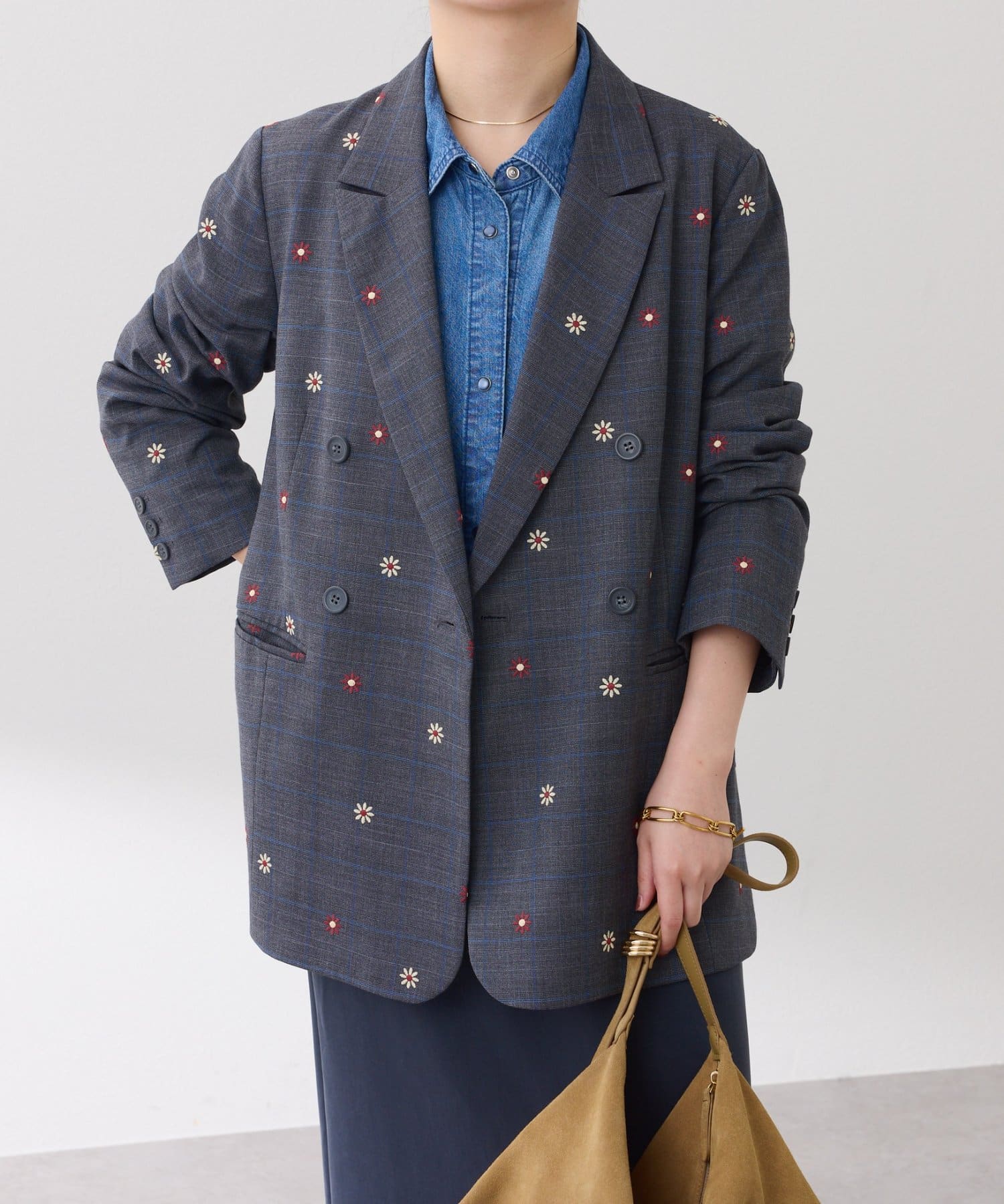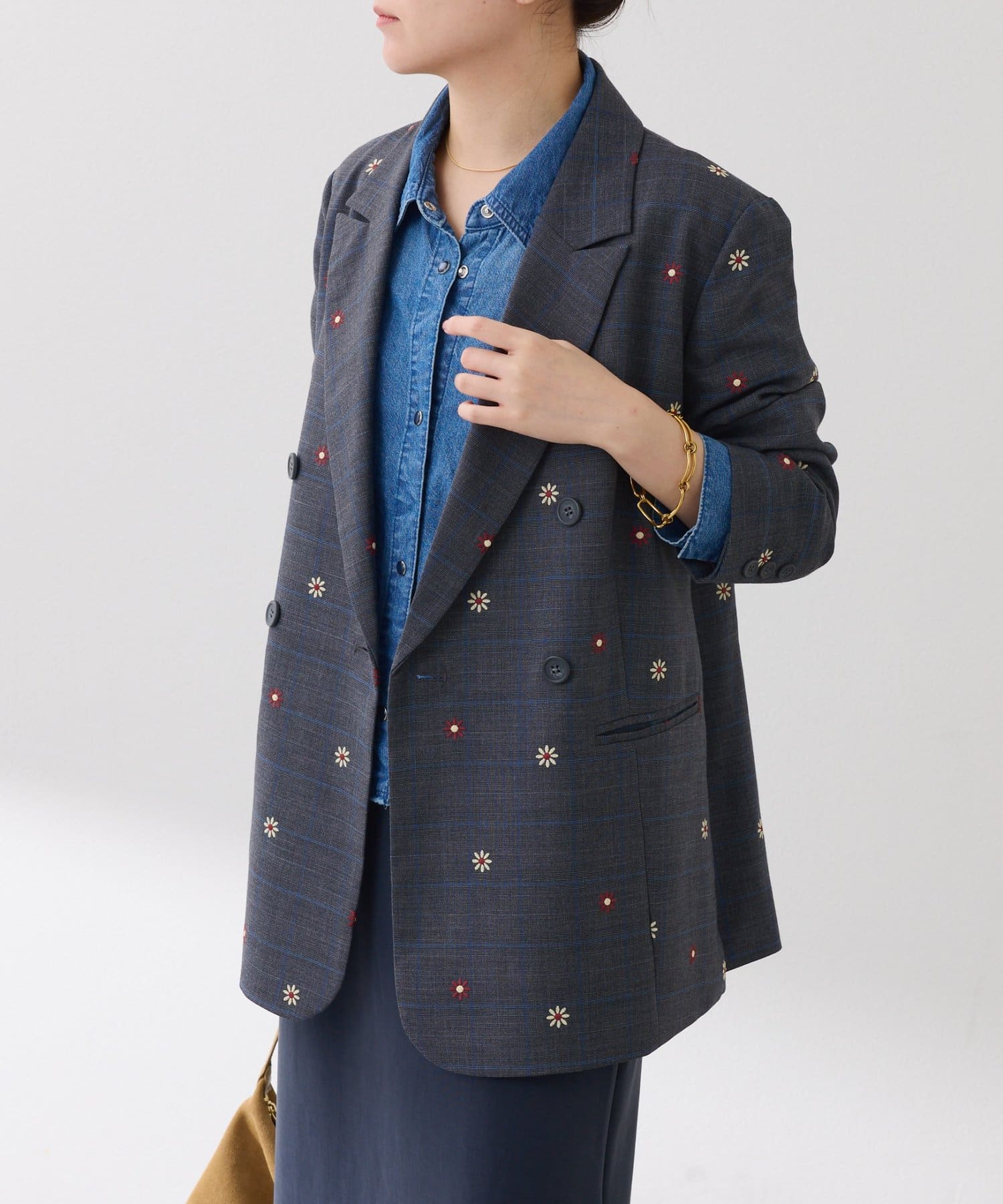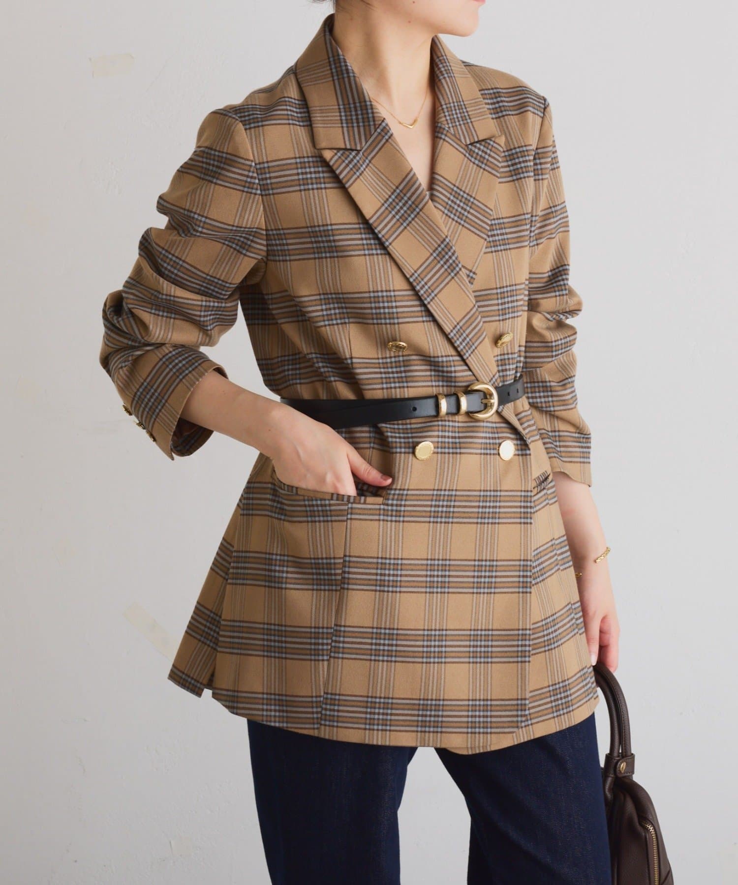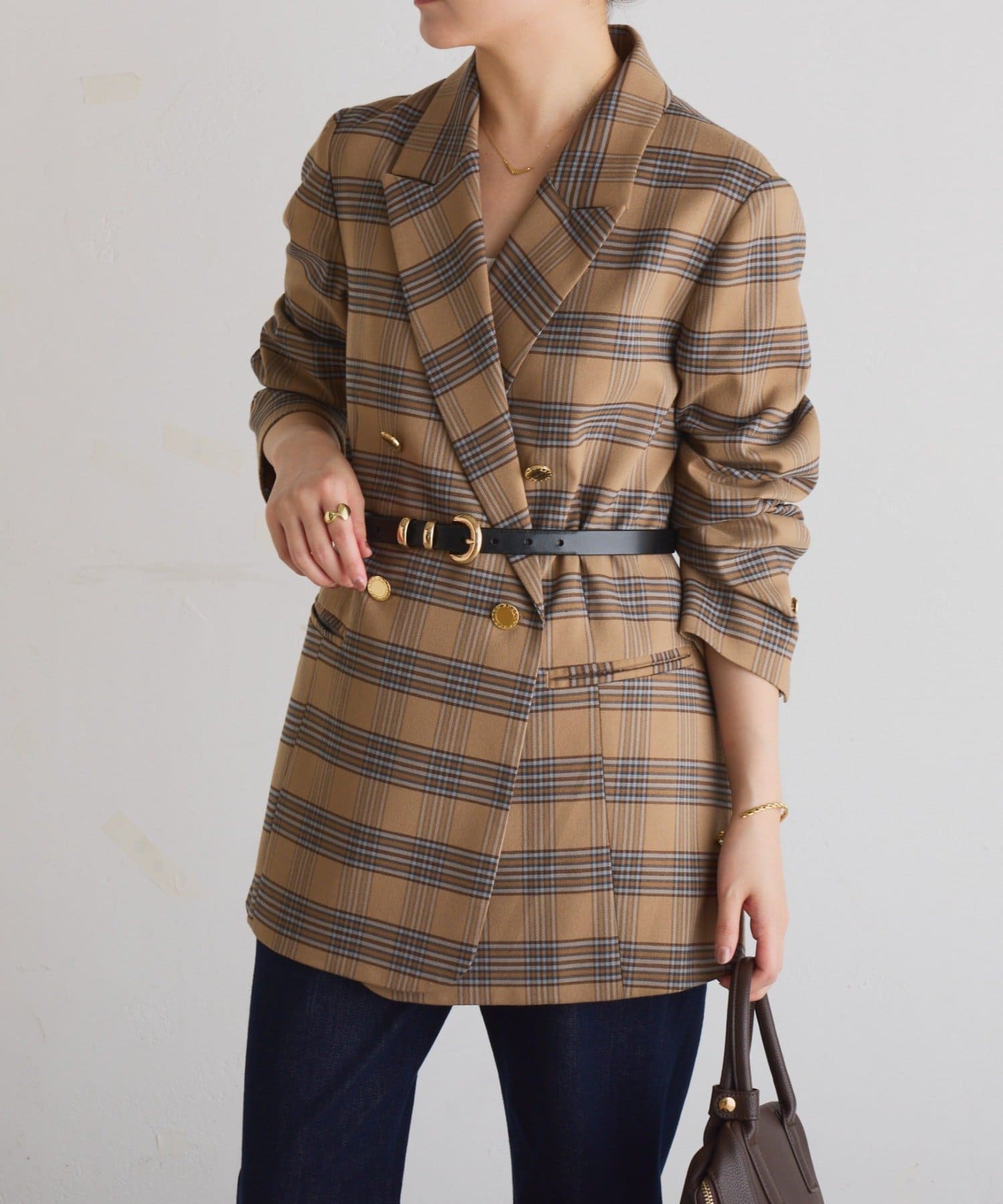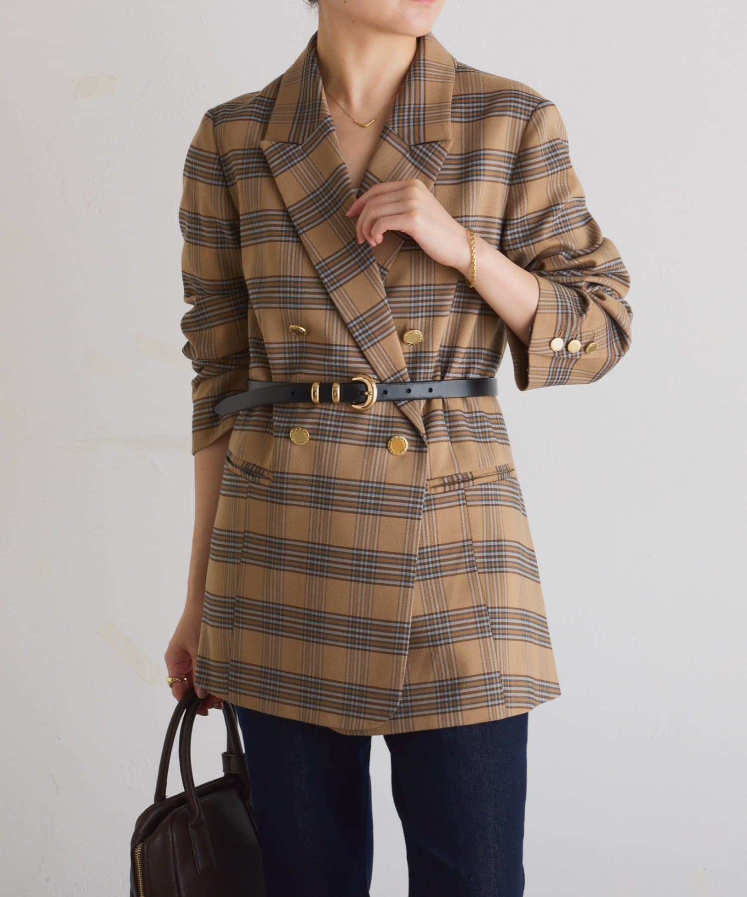 ・襟はセミノッチドラペルのダブルにしており、抜け感がありオンオフ使いやすいです。