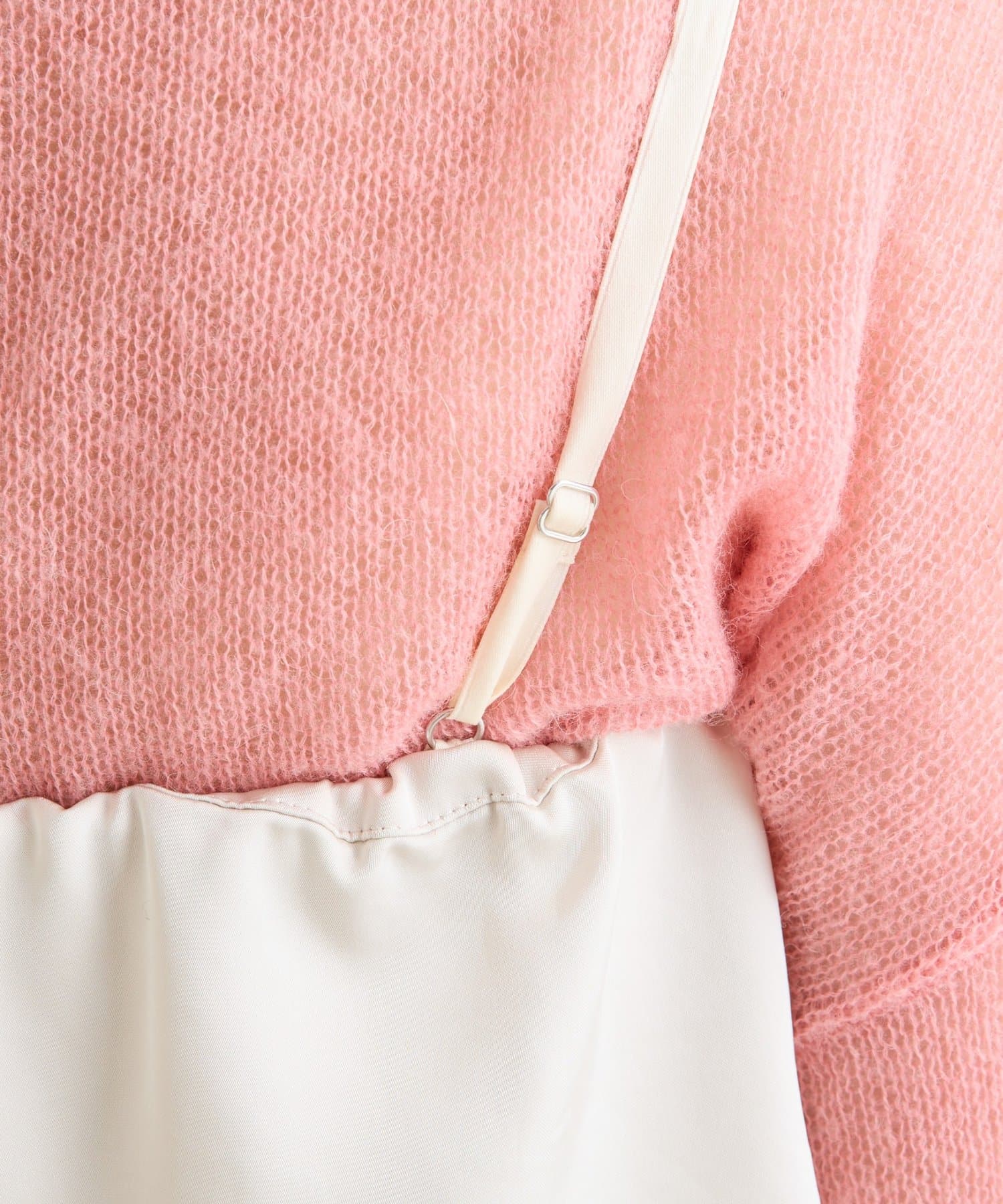 ・上端はフルゴムの仕様なので肩紐をしまってベアワンピとしても着ていただけます。