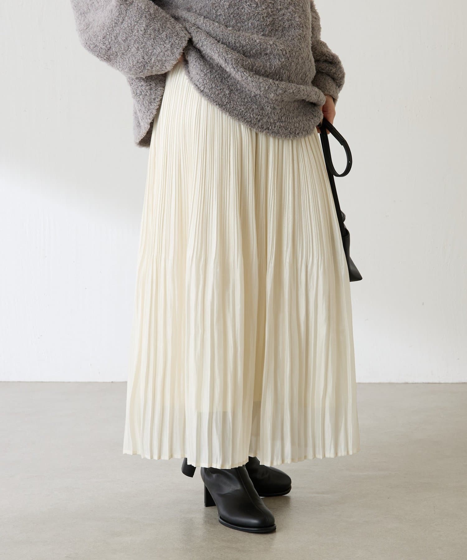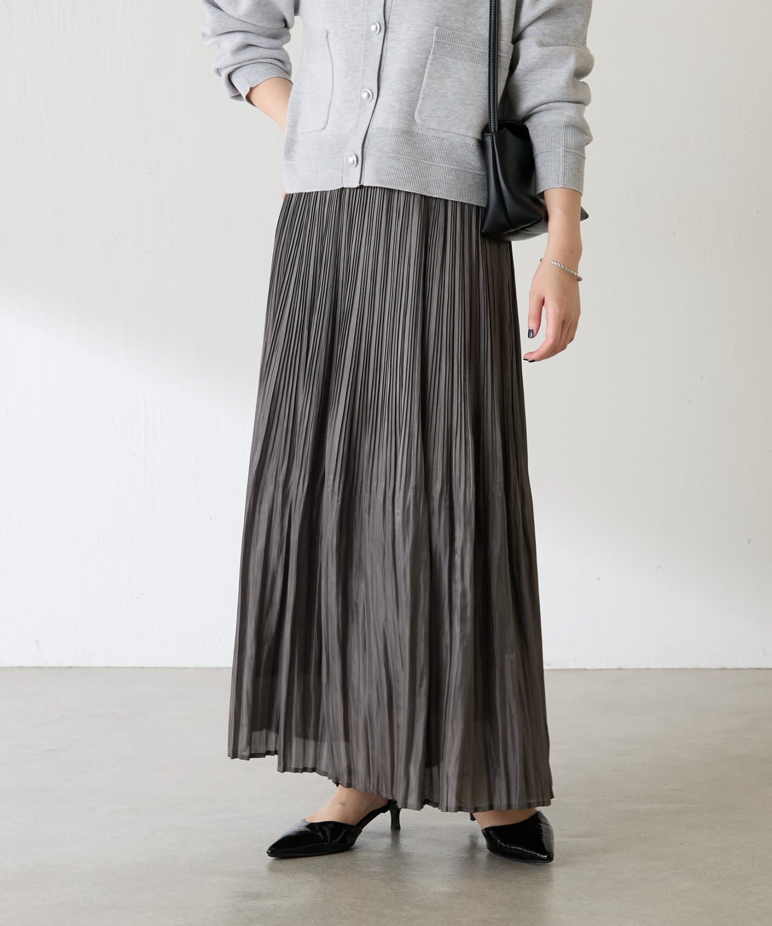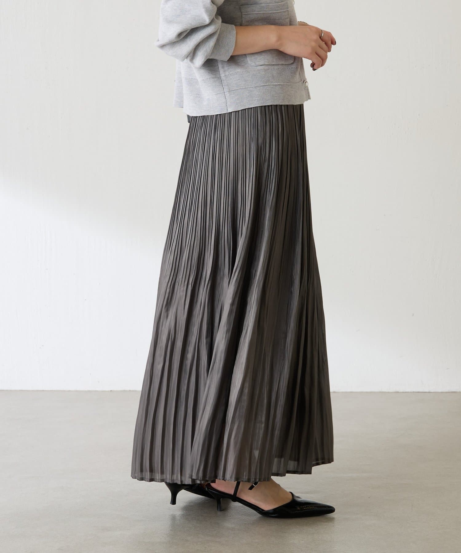 ・繊細な光沢感が美しいフィラメントサテン素材を使用したプリーツスカート。