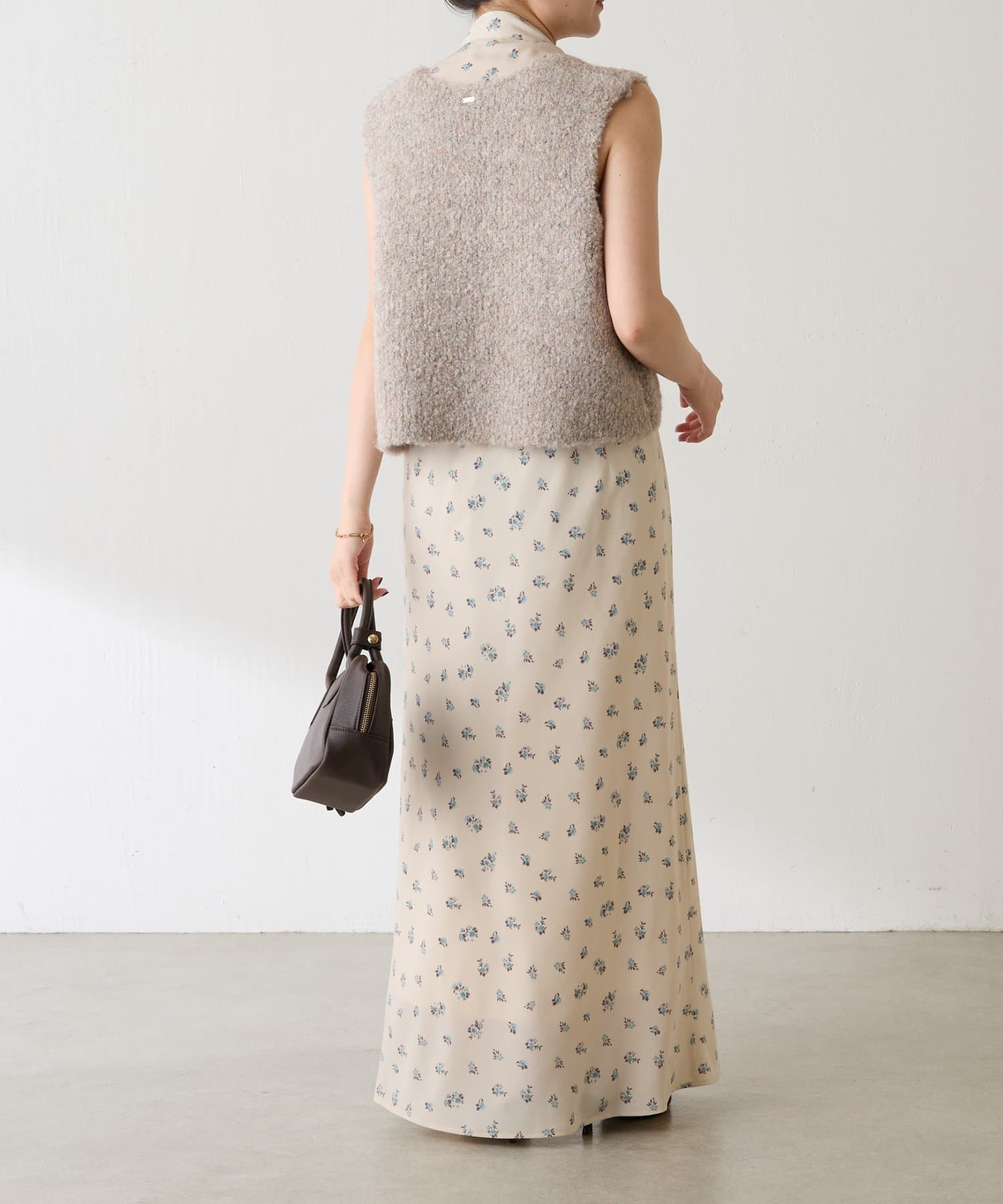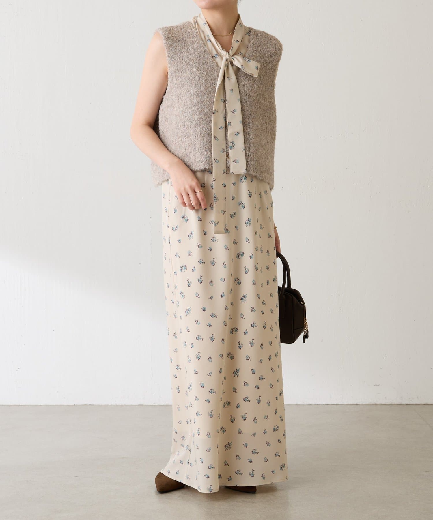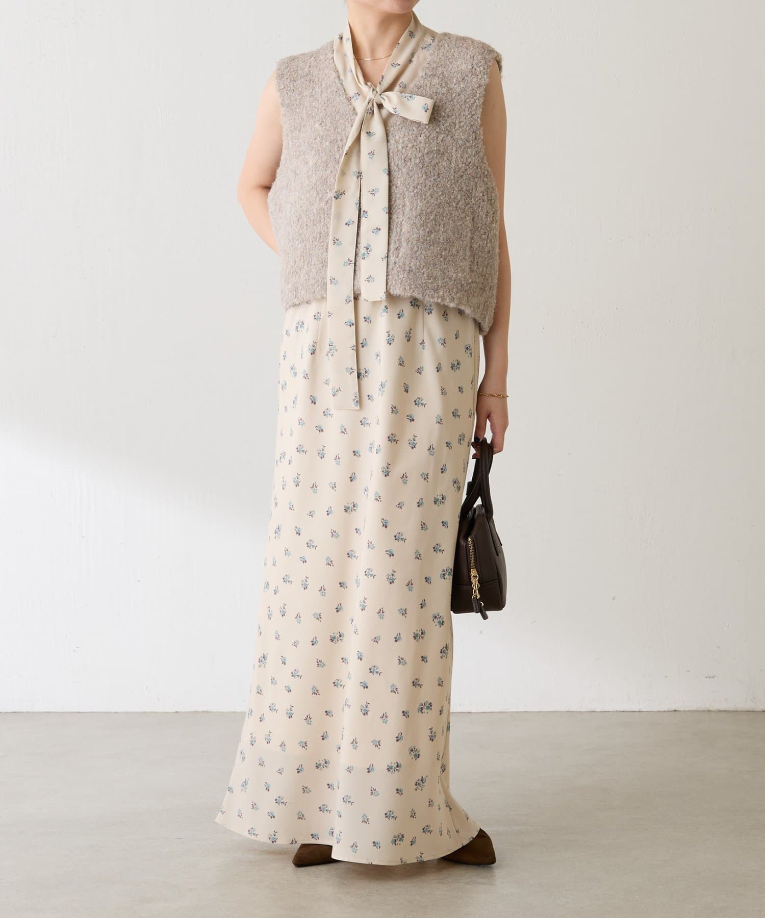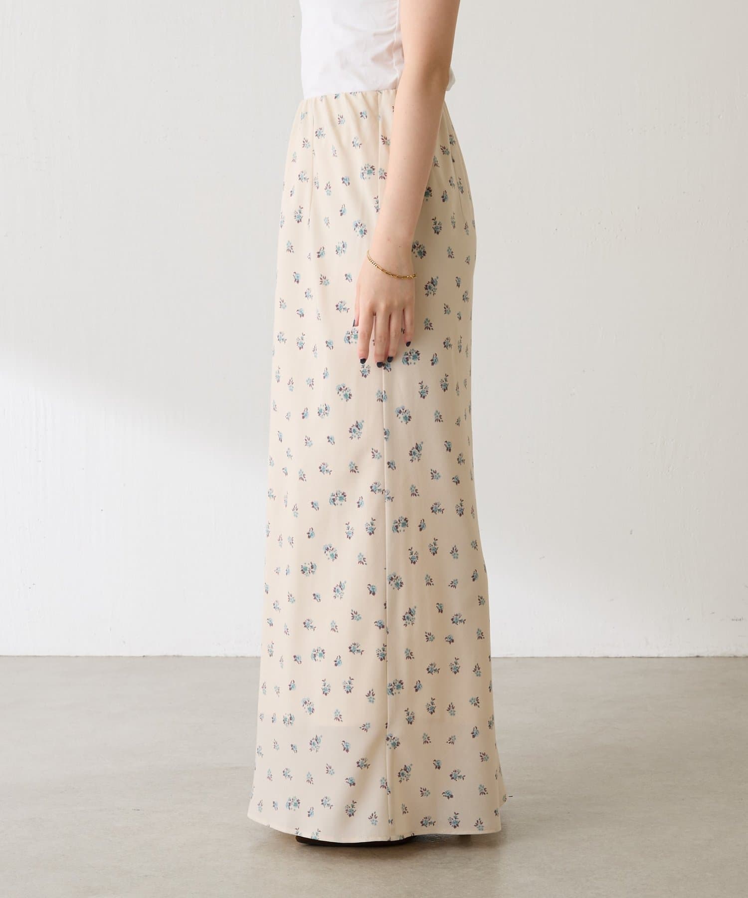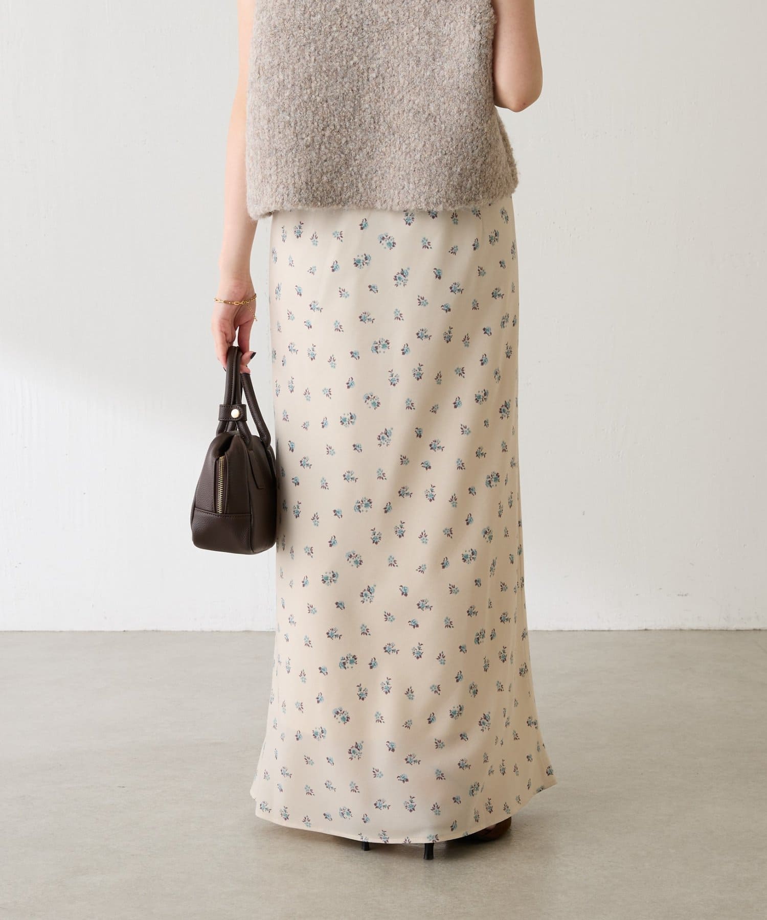 ・小花柄でも甘い印象になりすぎないよう、マーメイドのシルエットにこだわった1枚。