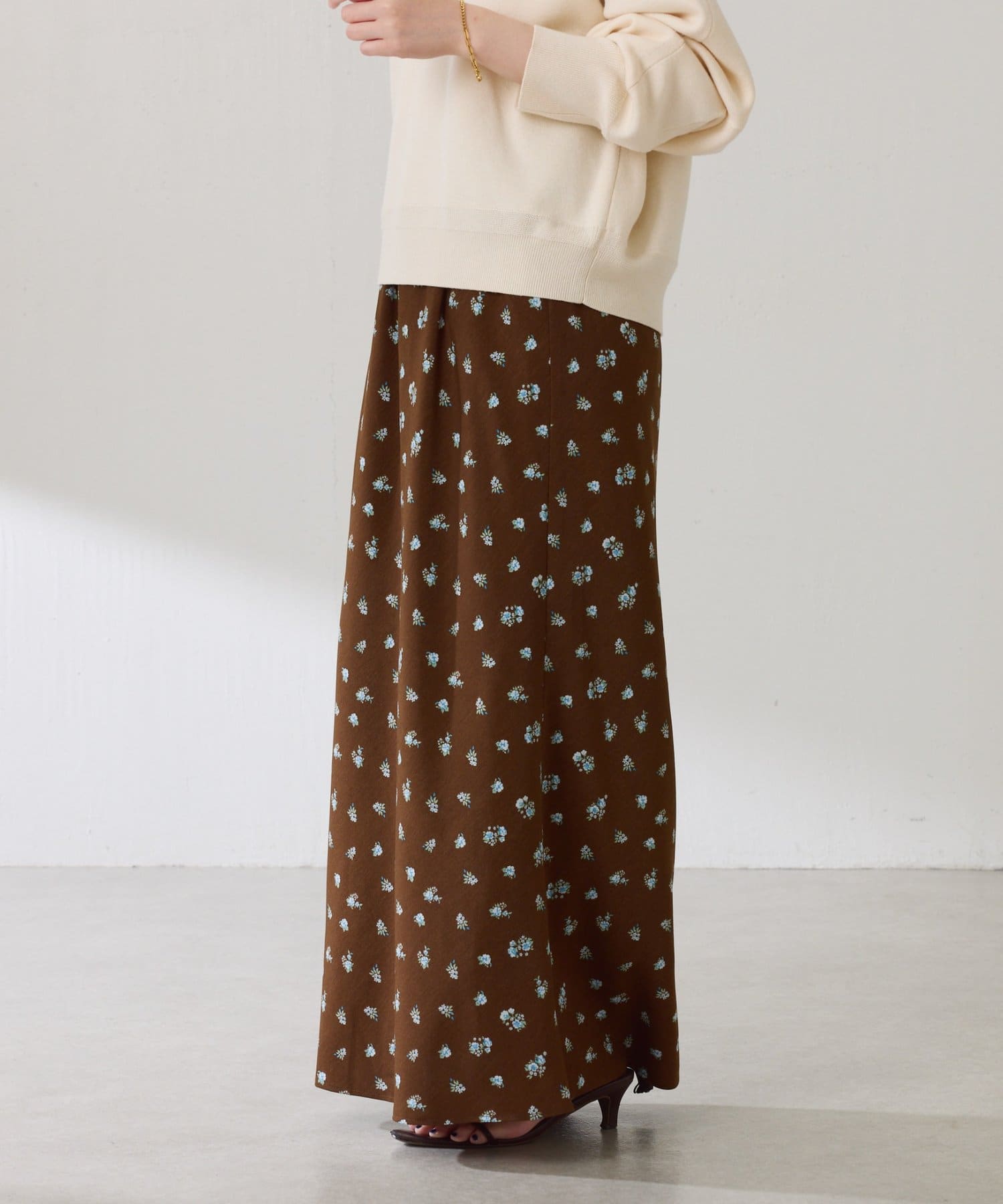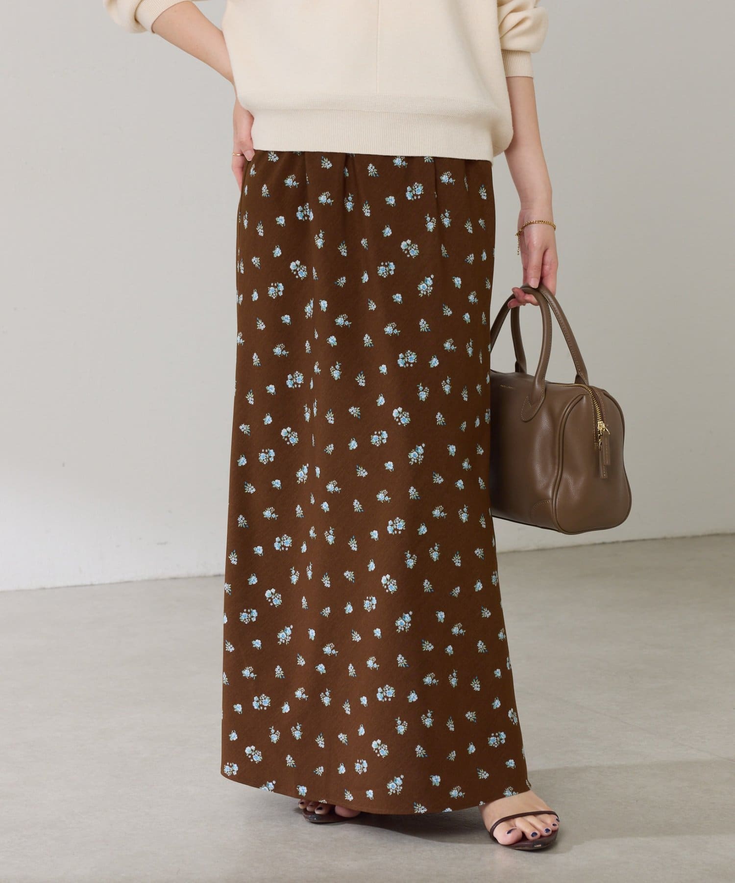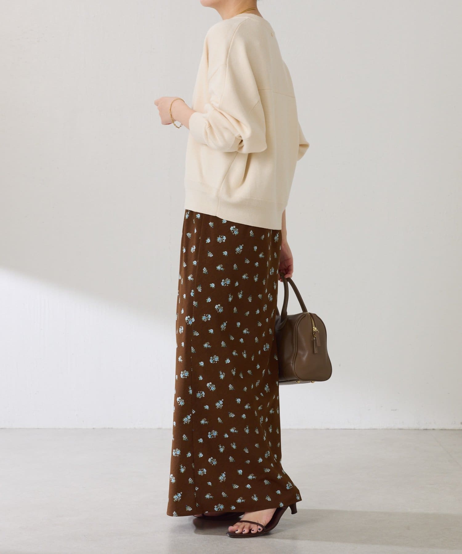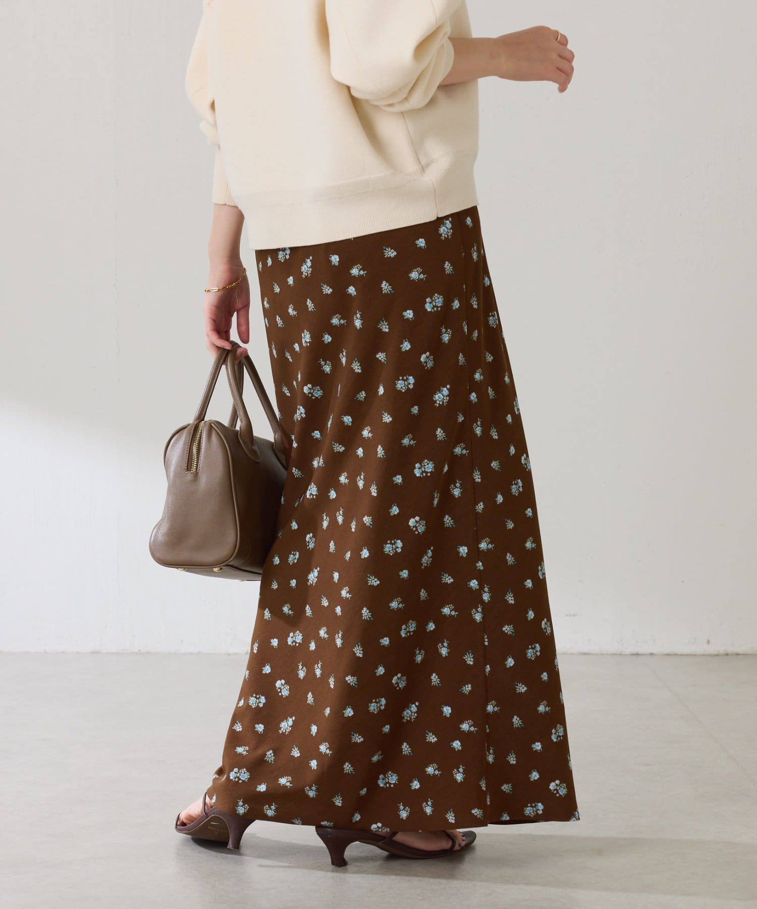 シンプルなスタイリングに華やかさを添える小花柄マーメイドスカート