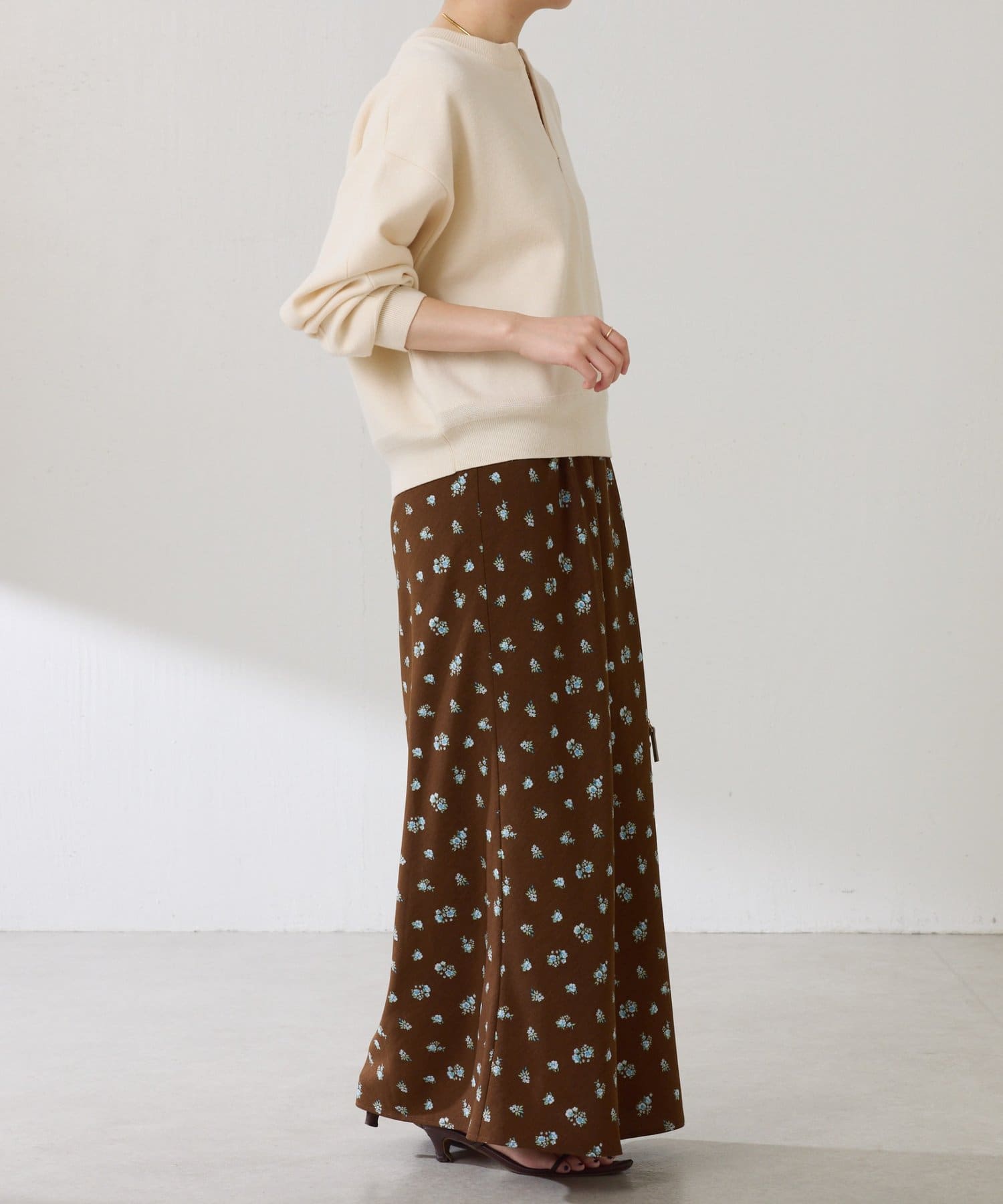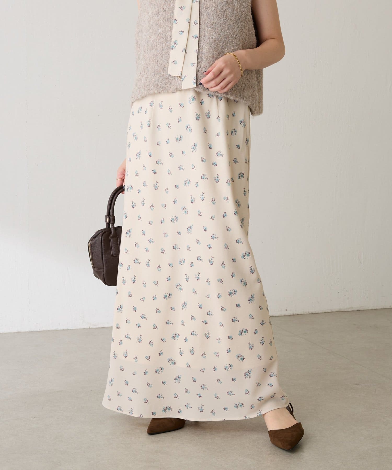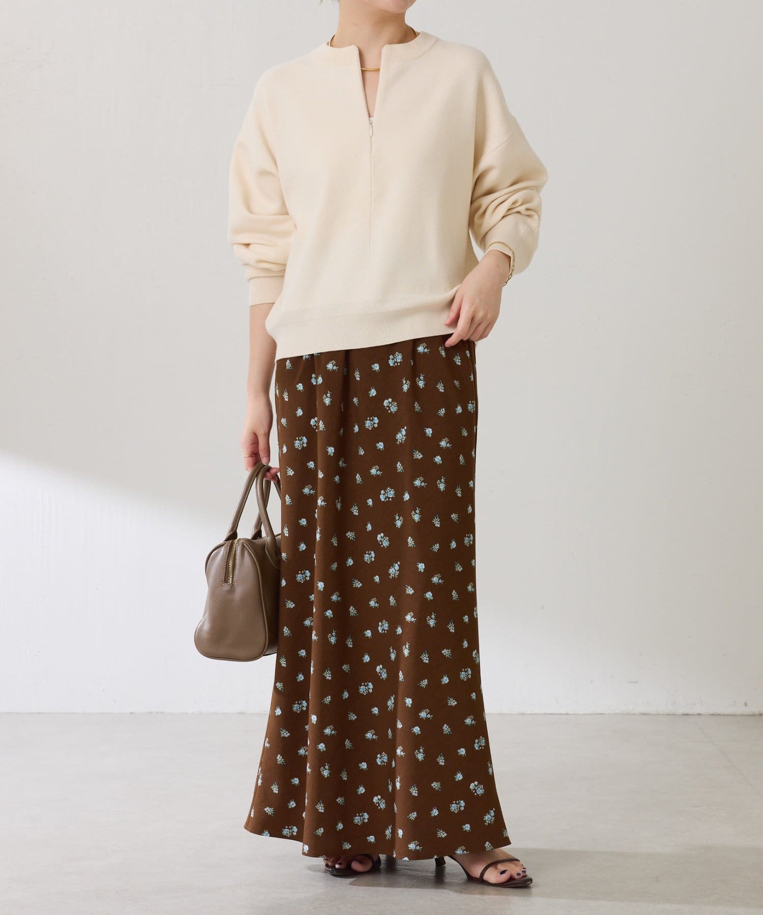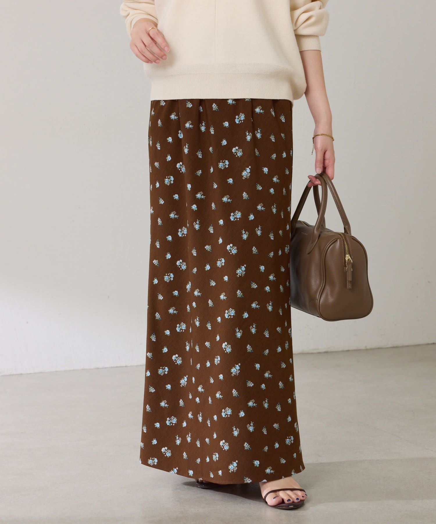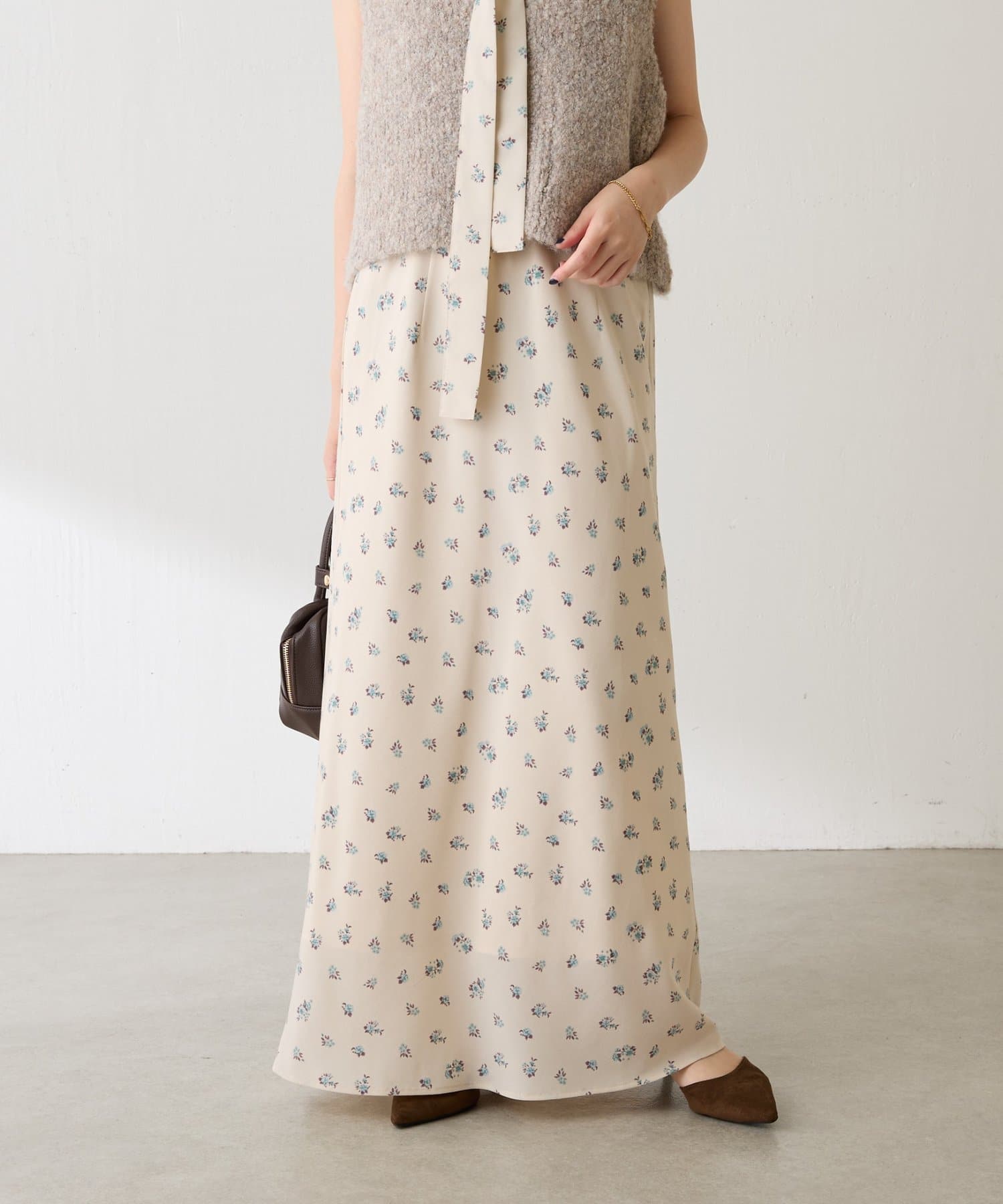 シンプルなスタイリングに華やかさを添える小花柄マーメイドスカート