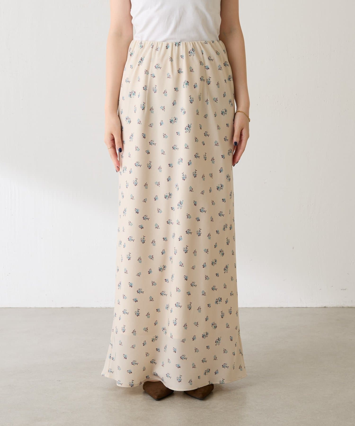 【ウエスト総ゴム】小花柄マーメイドスカート