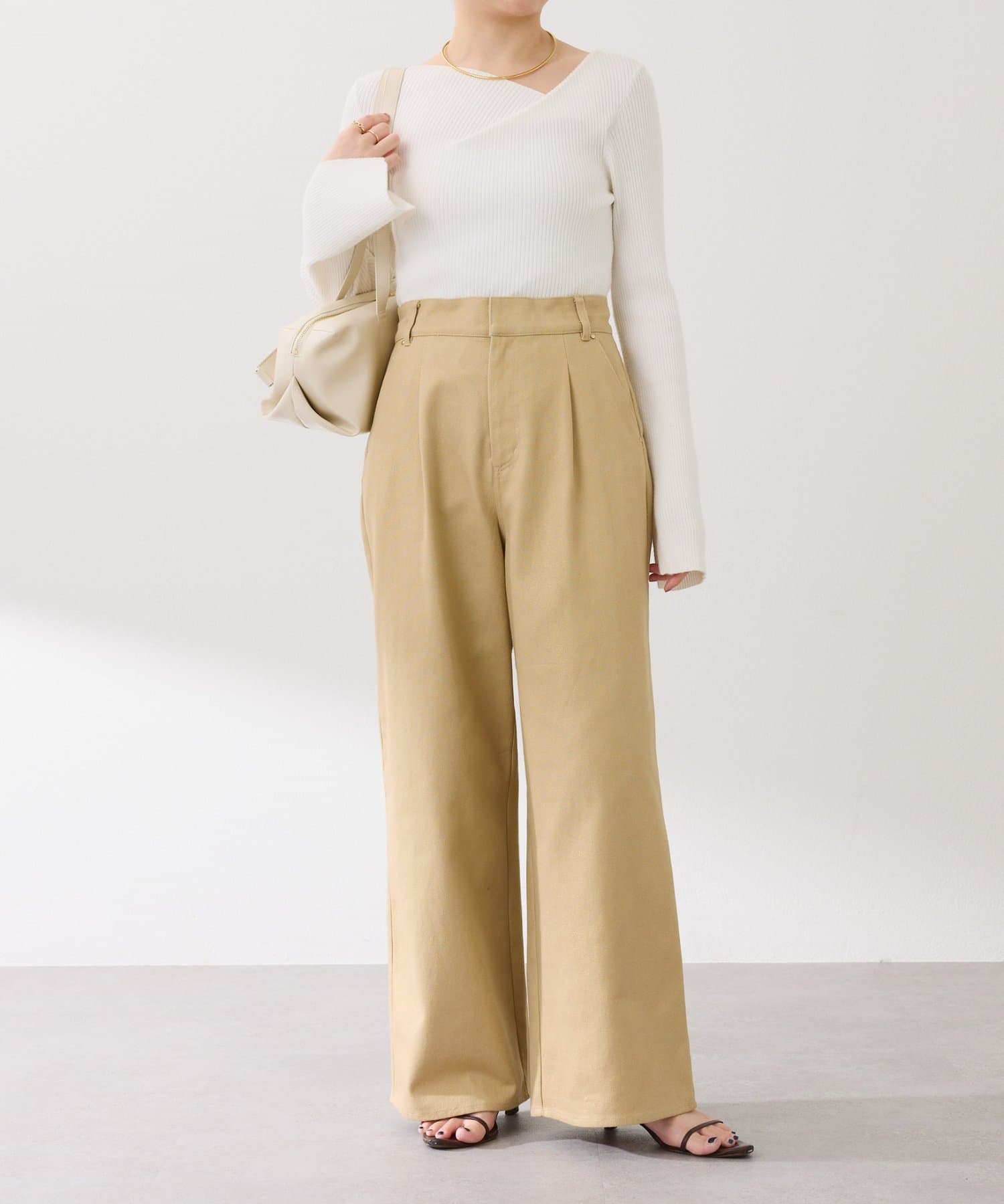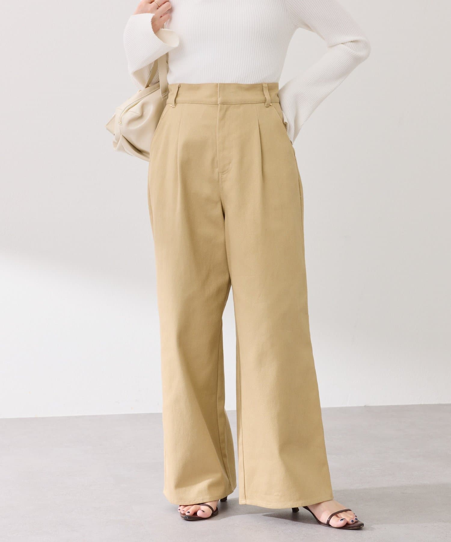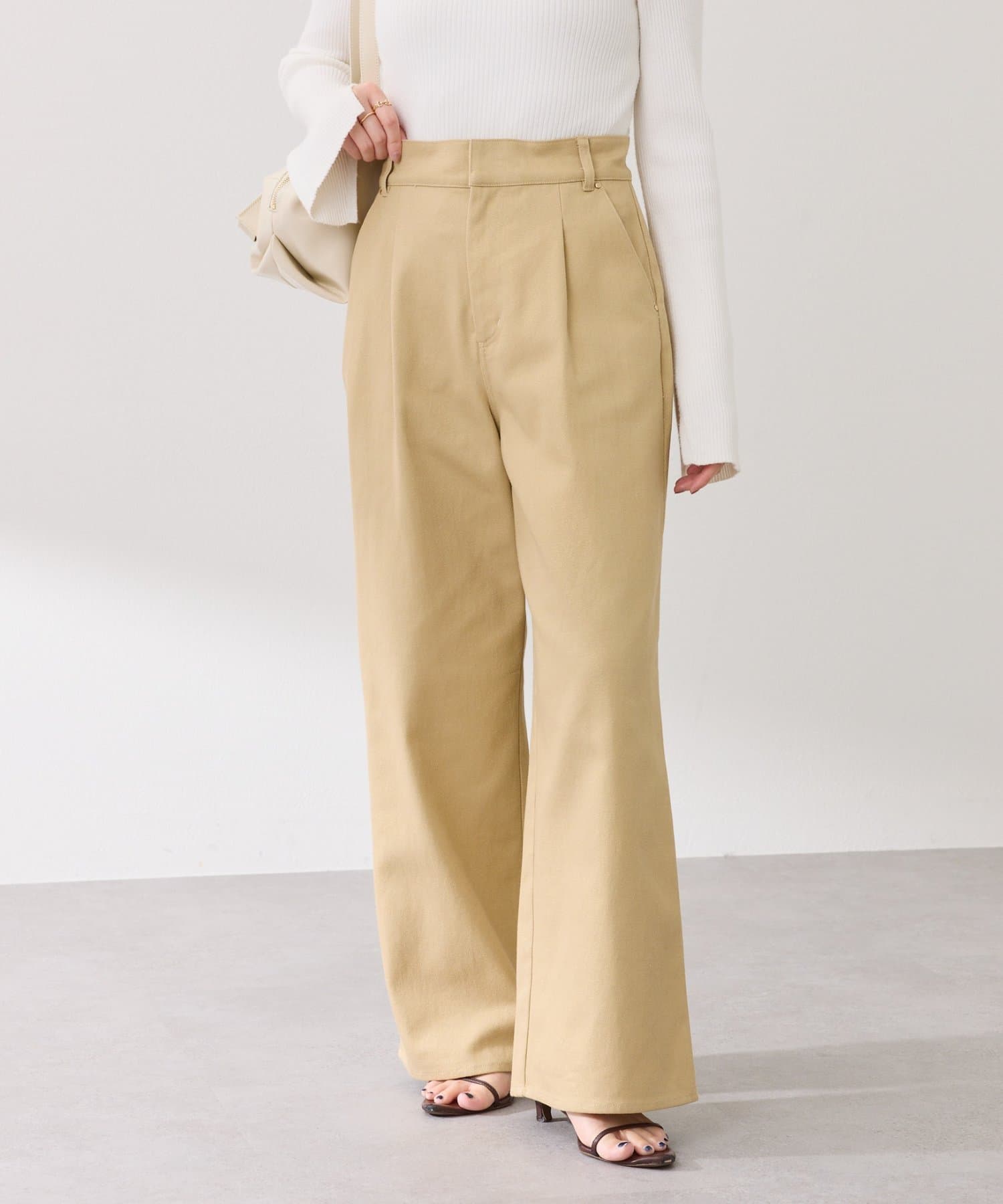・カジュアルな雰囲気のチノパンツですが、箔のアクセントがモード感や洗練さをプラスし、おでかけにもぴったりです。