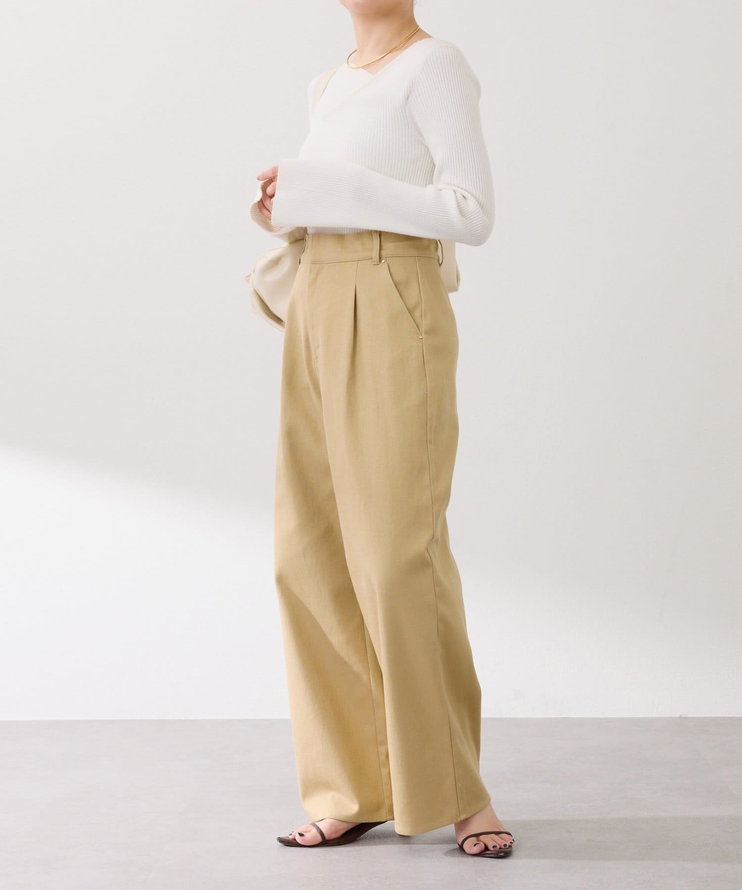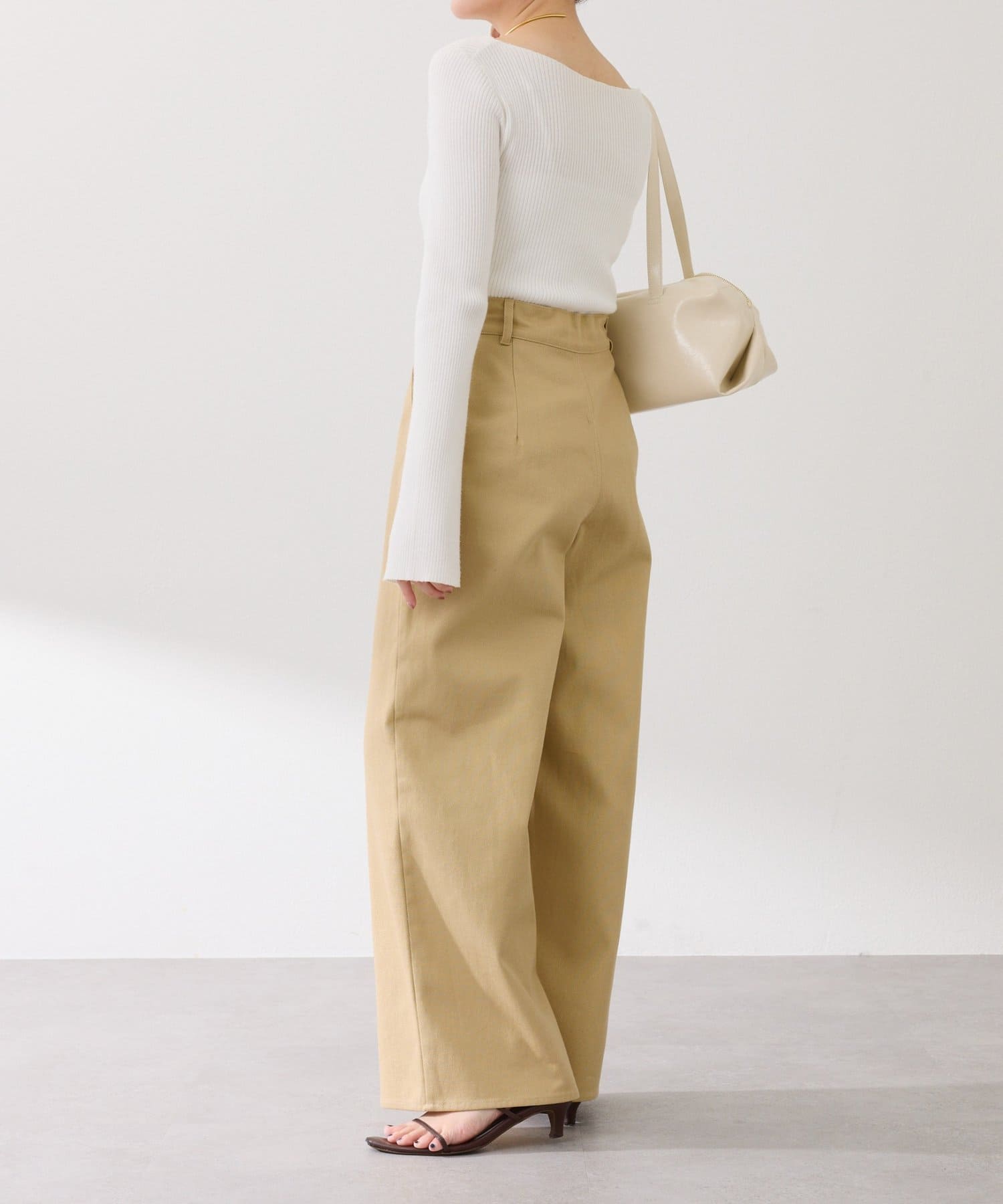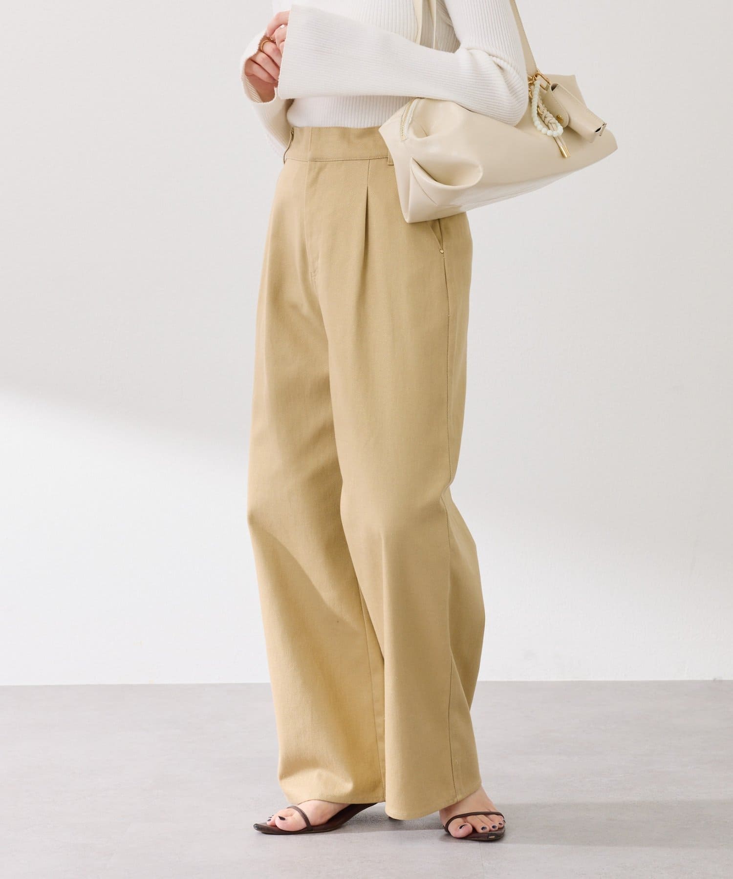 ・カジュアルな雰囲気のチノパンツですが、箔のアクセントがモード感や洗練さをプラスし、おでかけにもぴったりです。