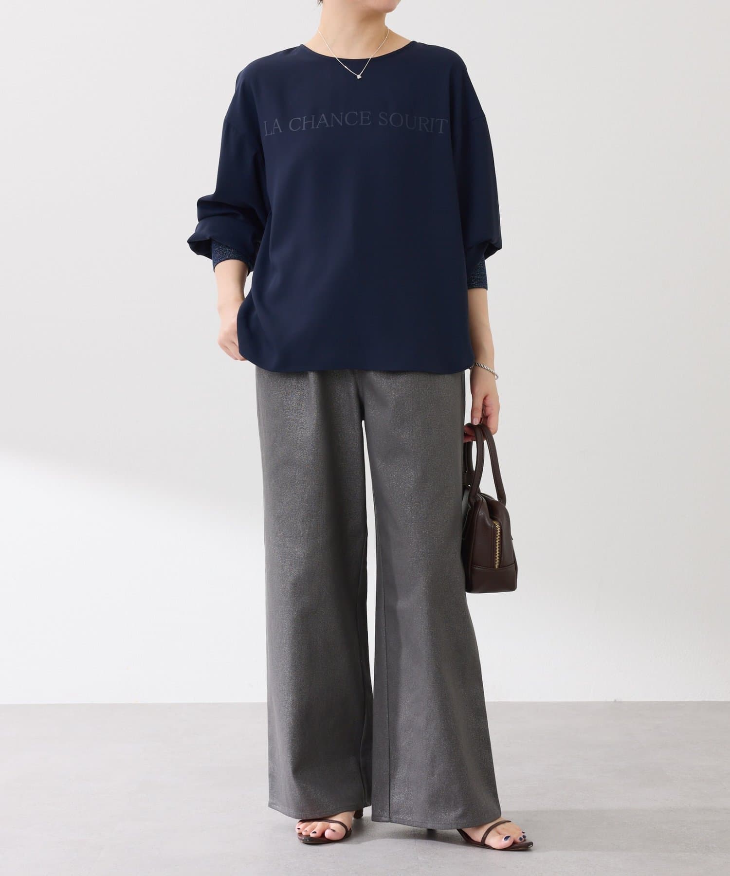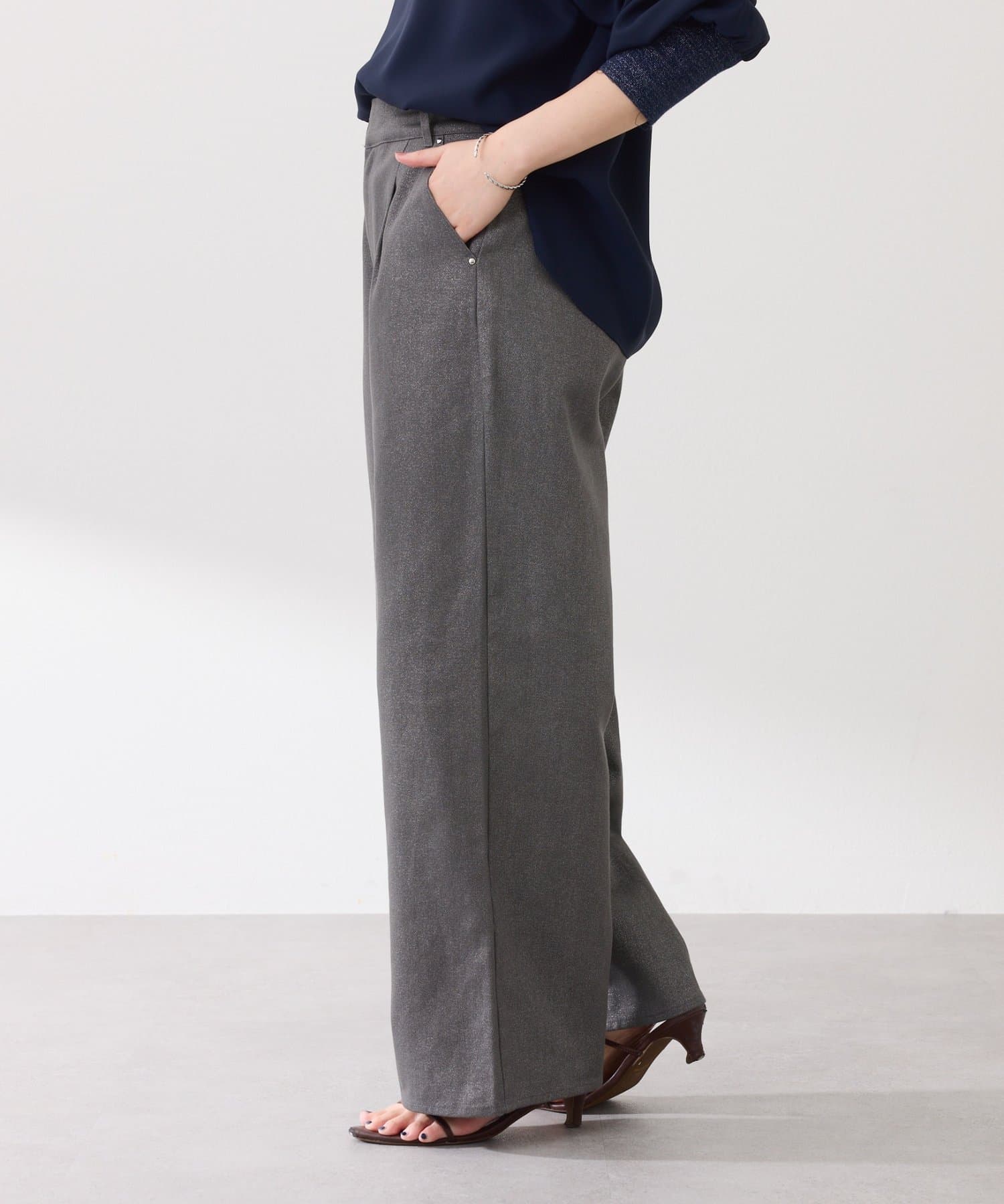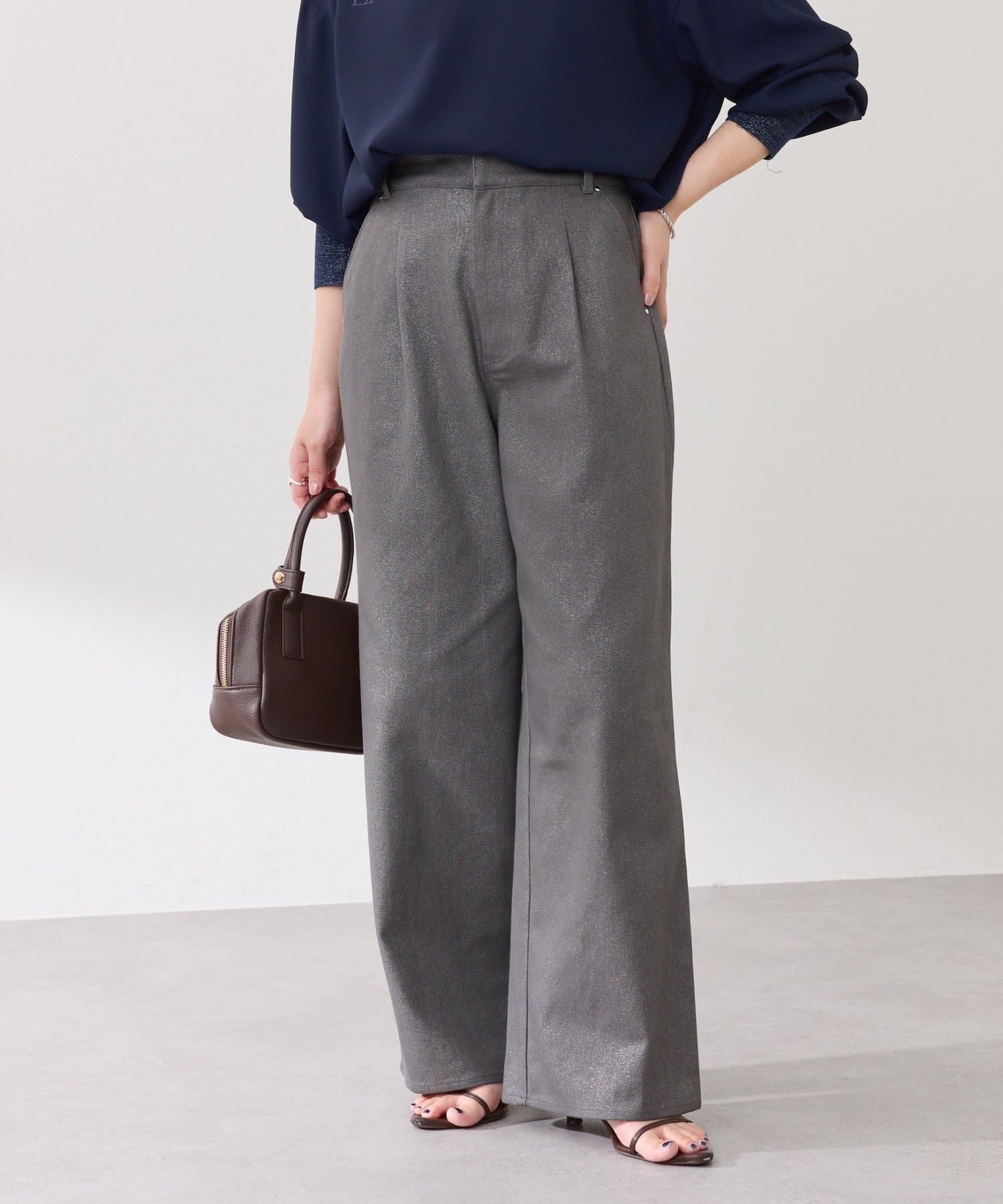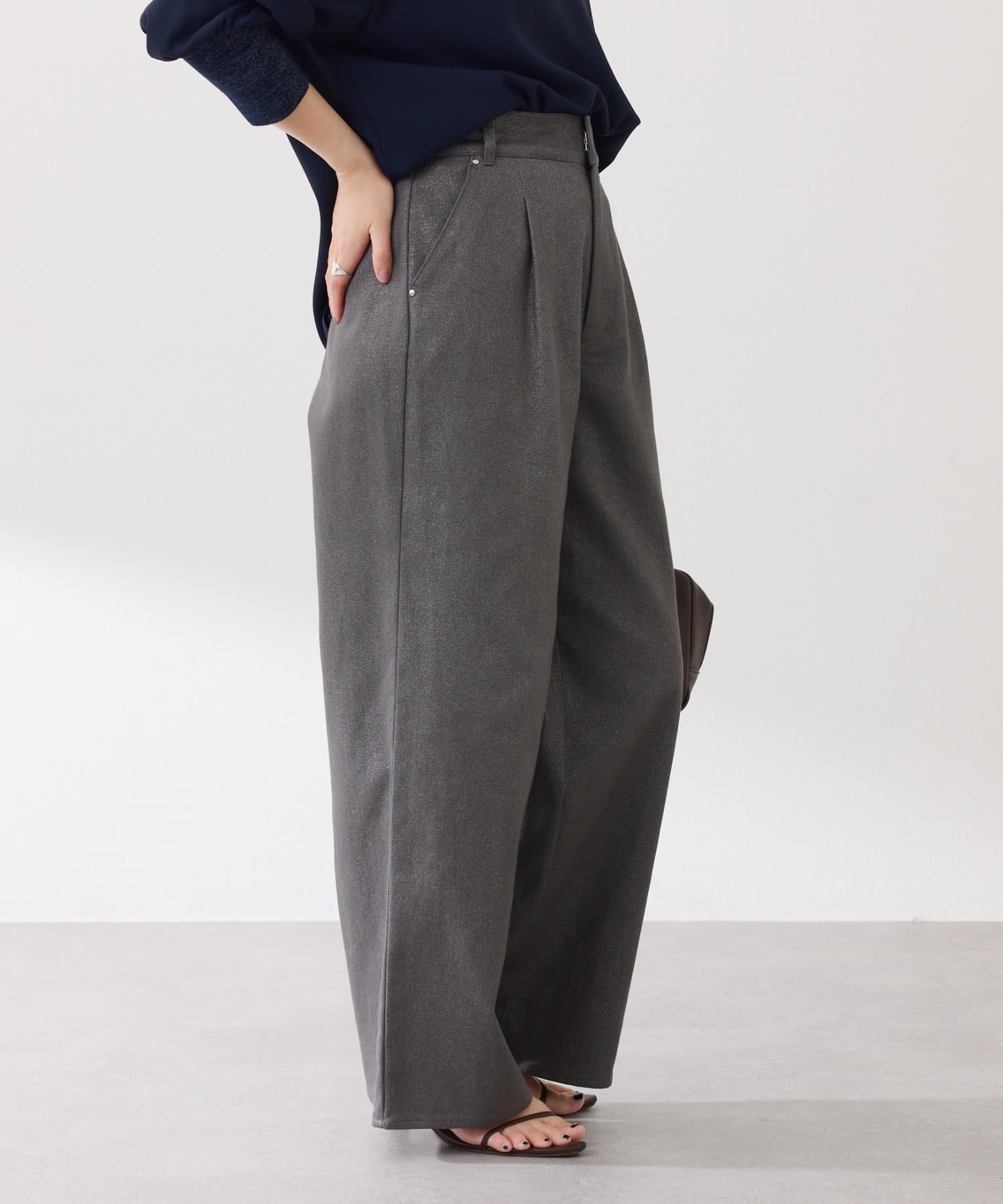 【ウエスト調整可能】箔ツイルワイドパンツ