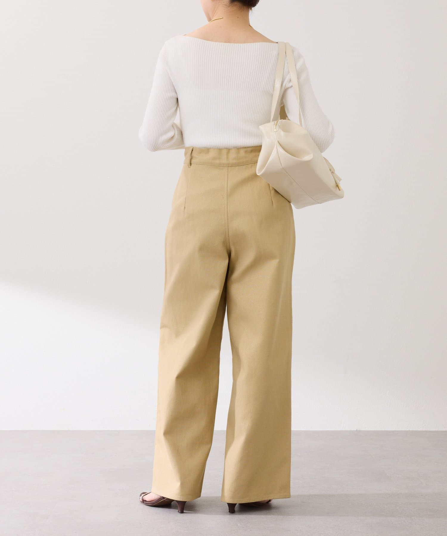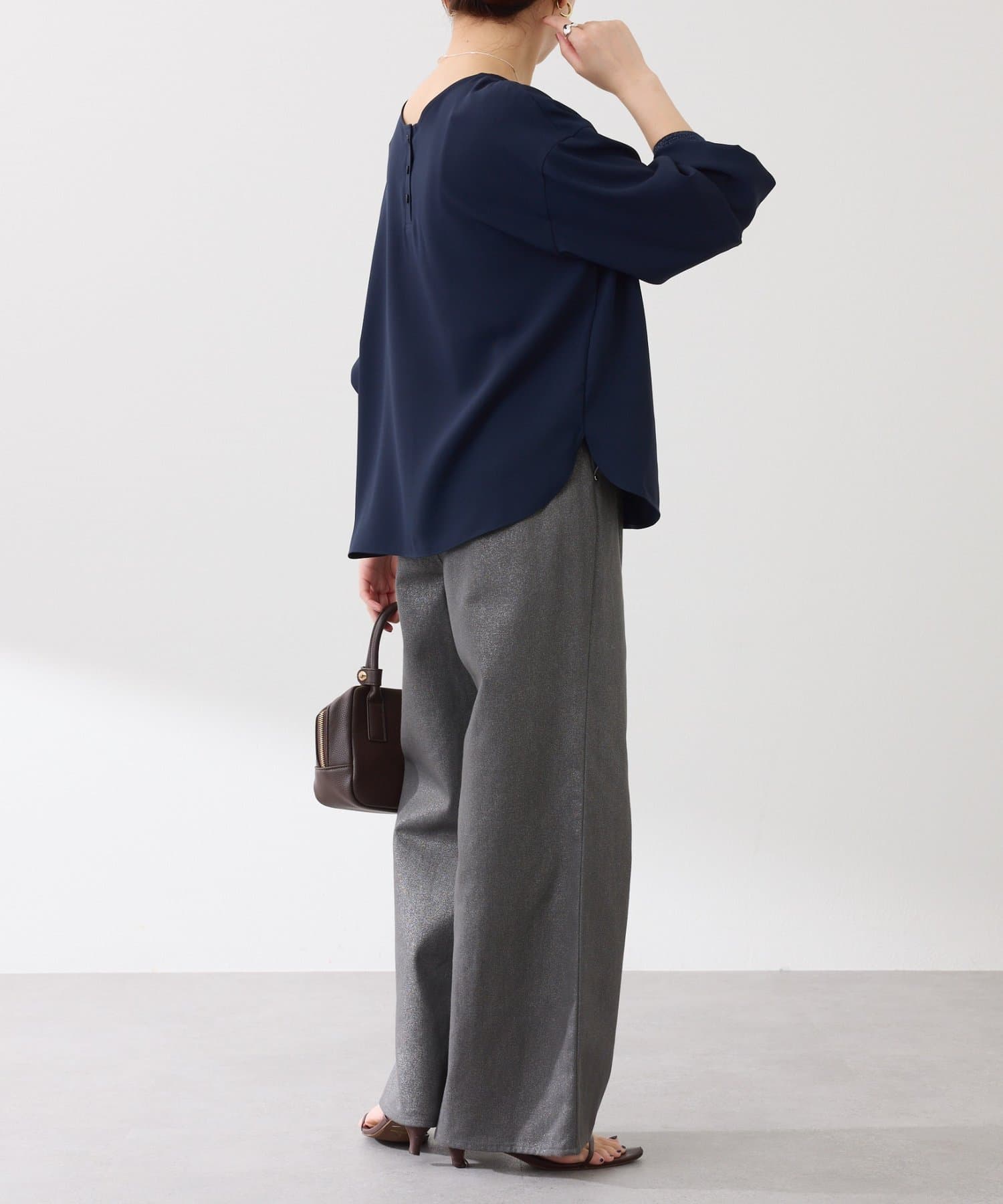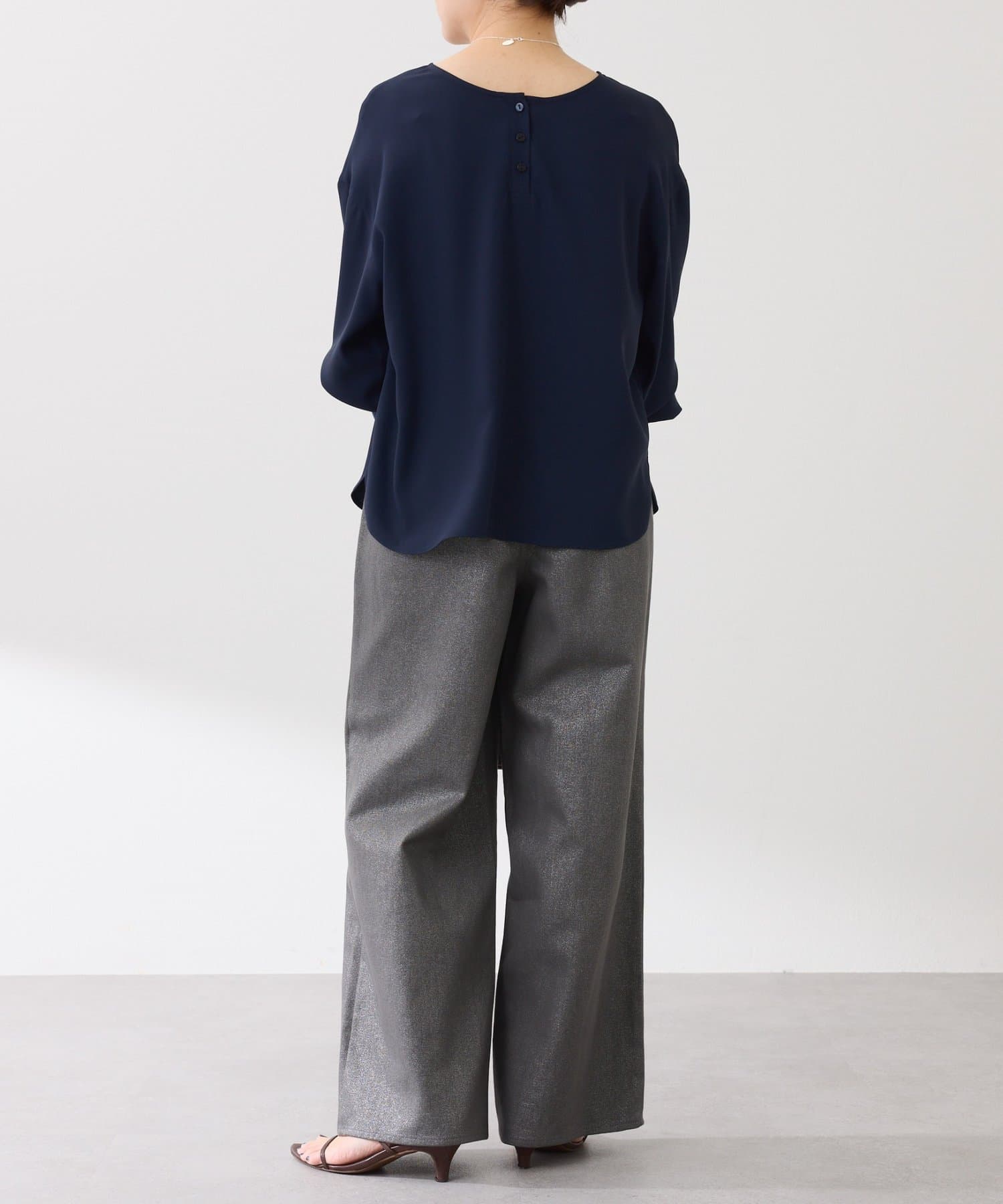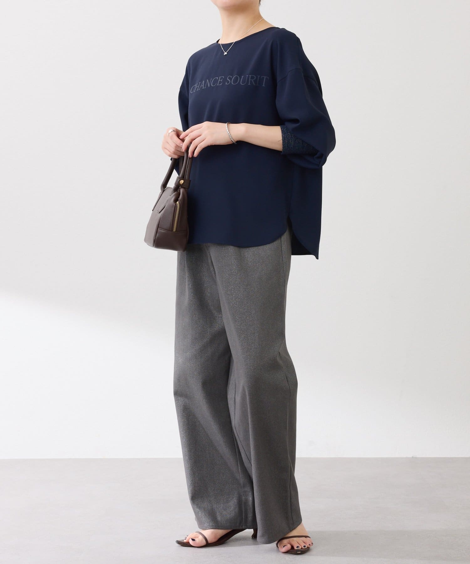【ウエスト調整可能】箔ツイルワイドパンツ