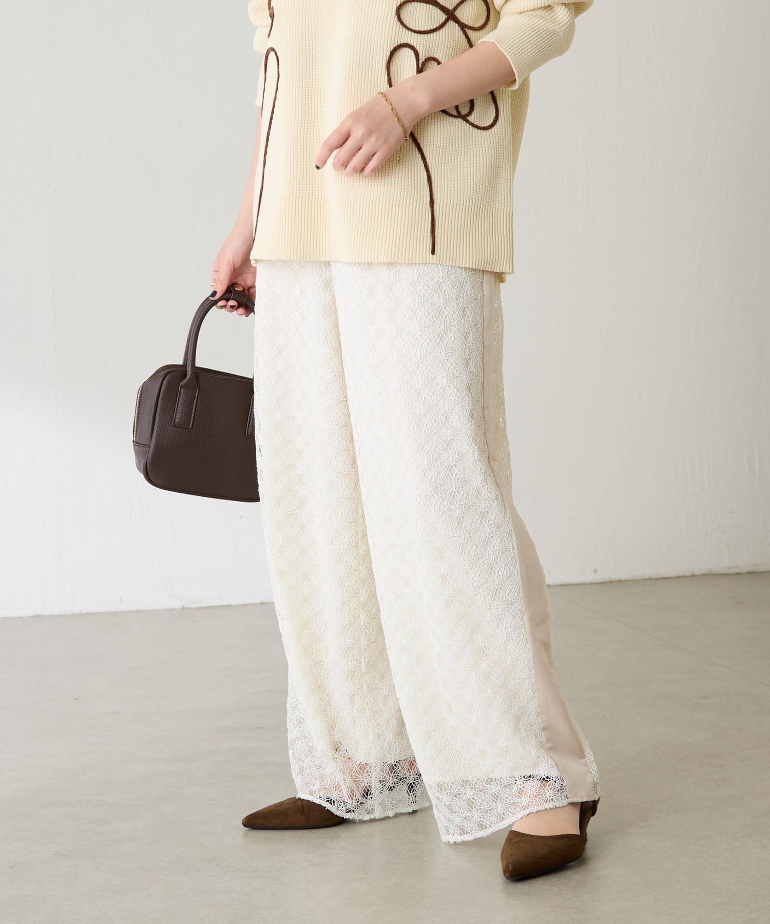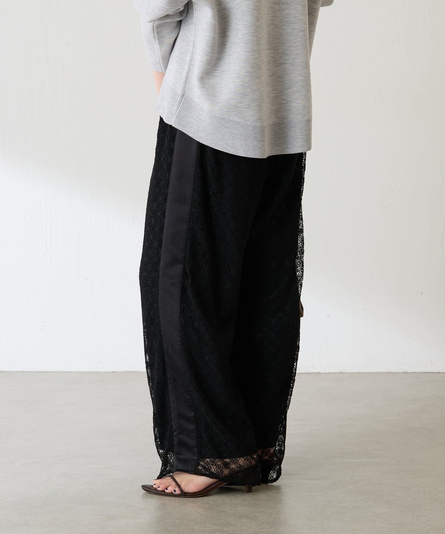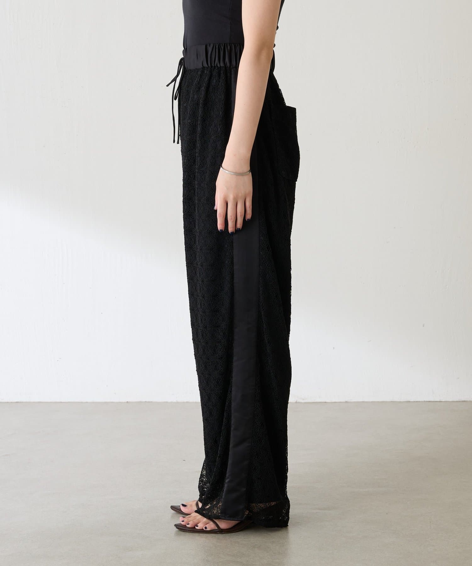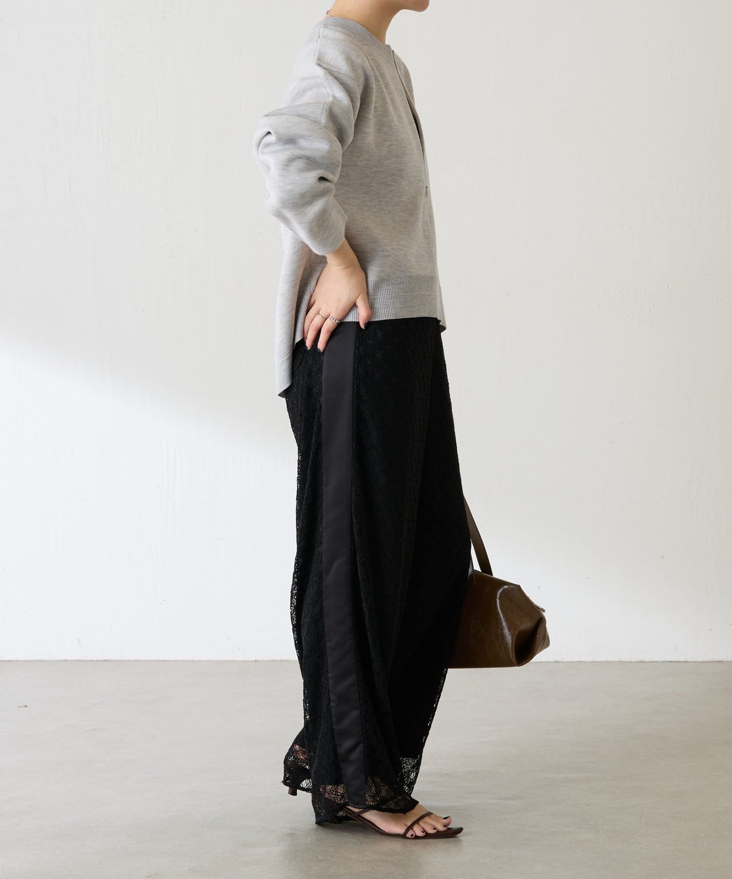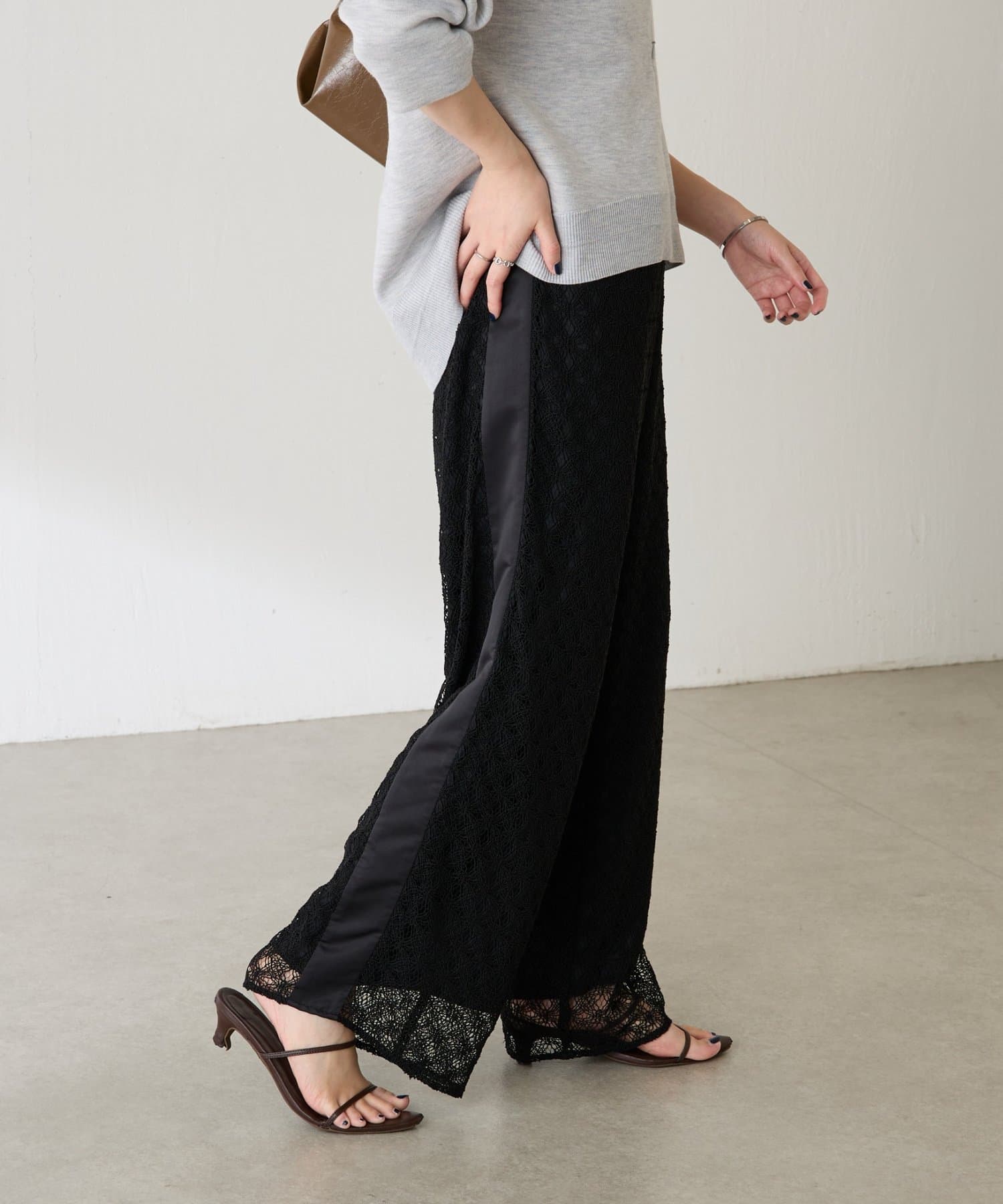 ・ツヤ感のあるコードレースを使用したワイドパンツ。