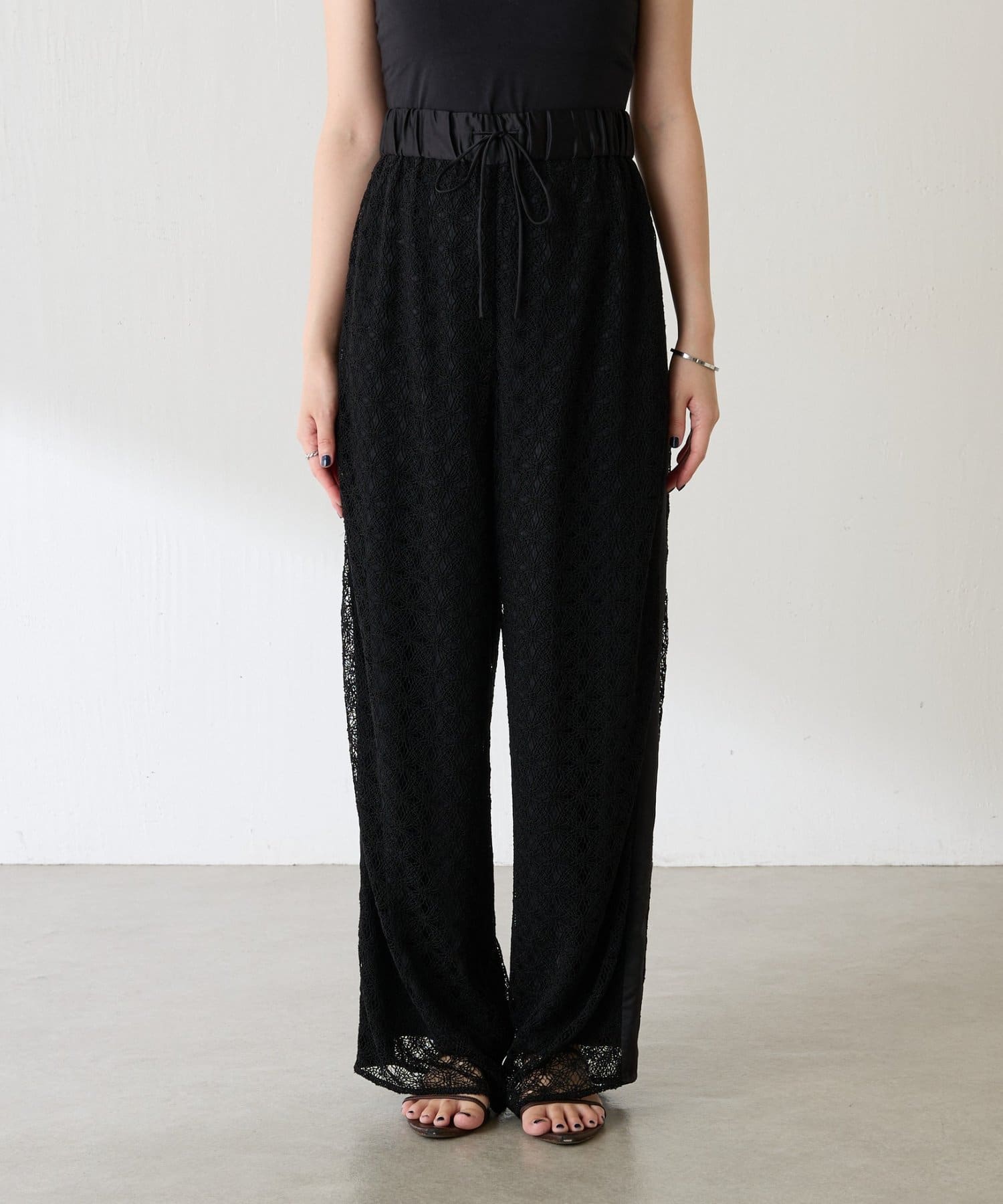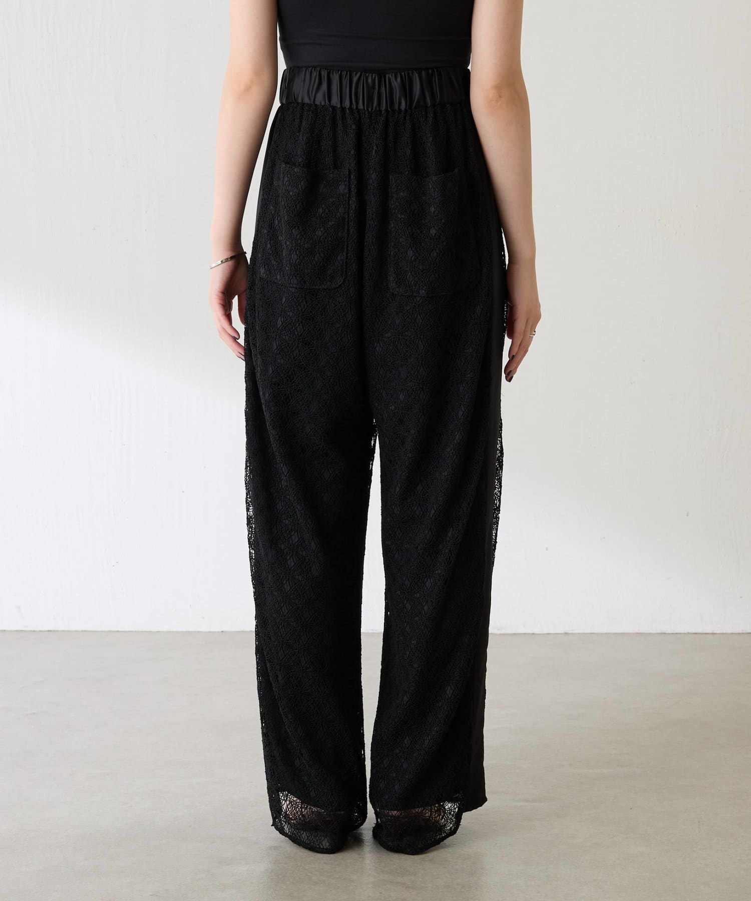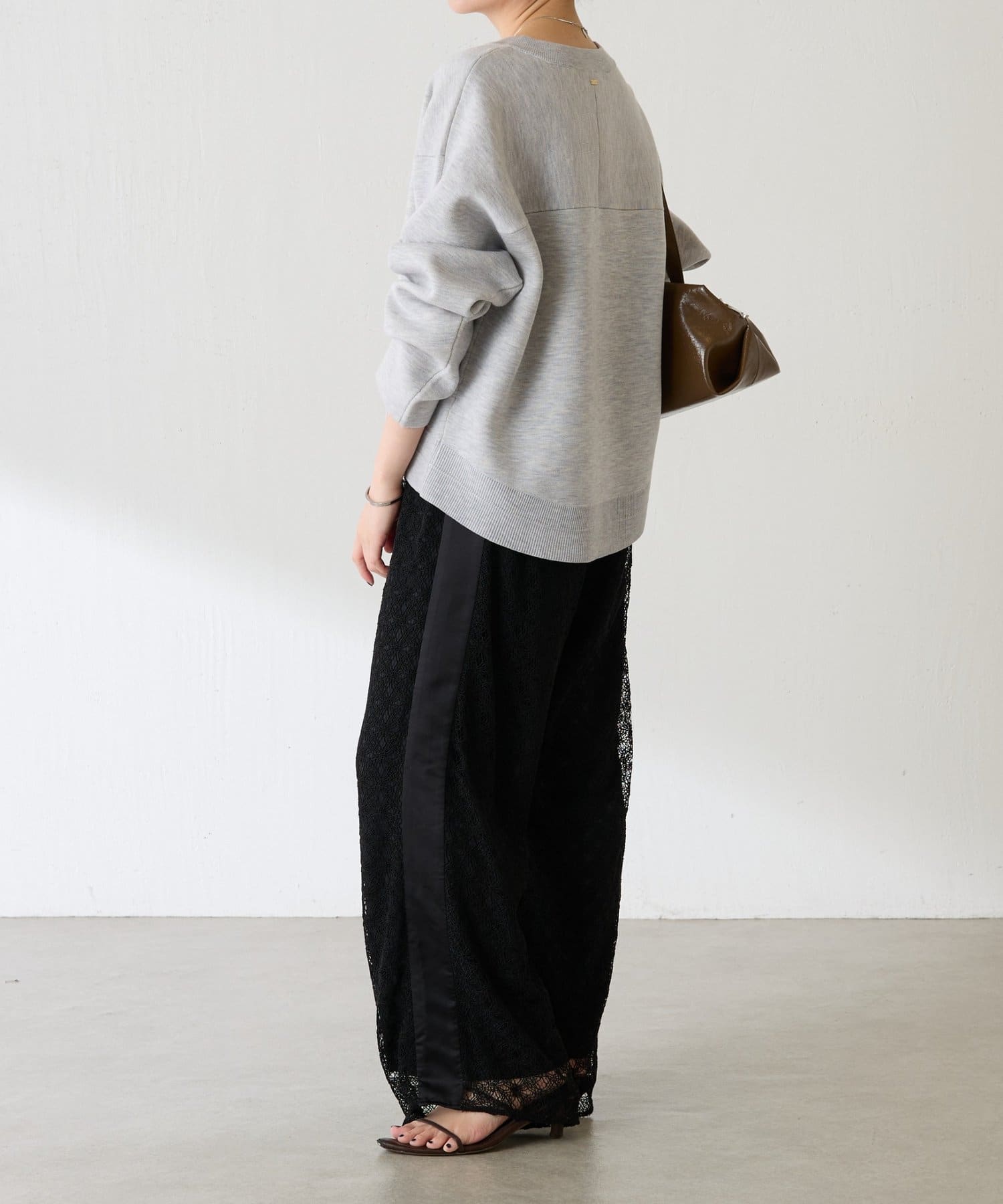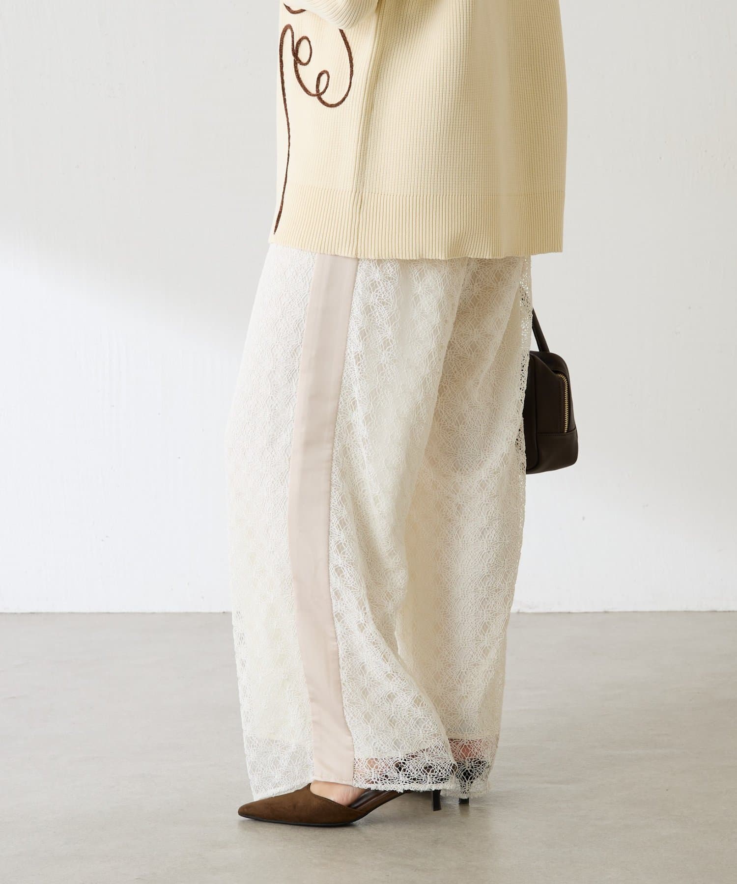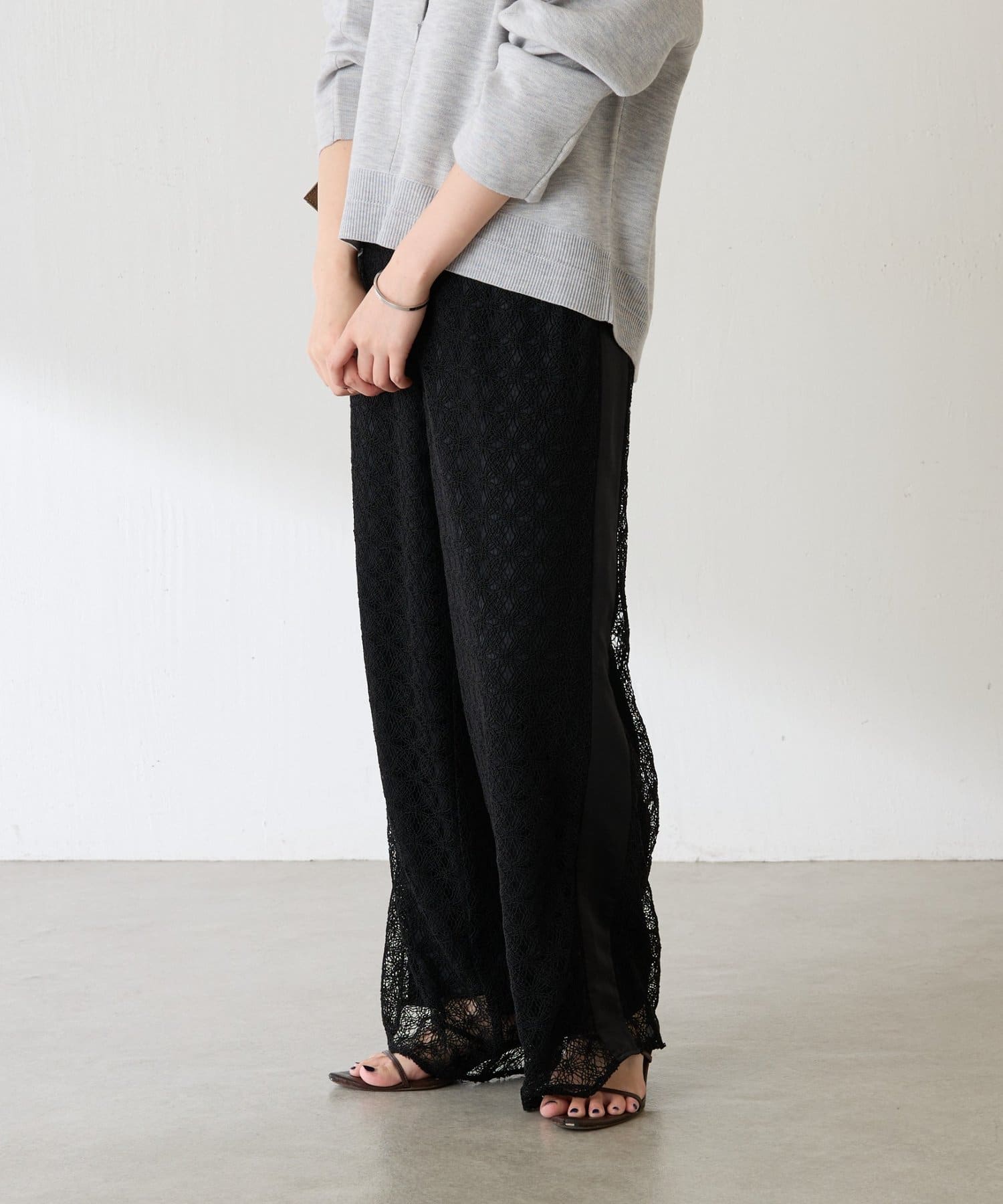 ・ツヤ感のあるコードレースを使用したワイドパンツ。