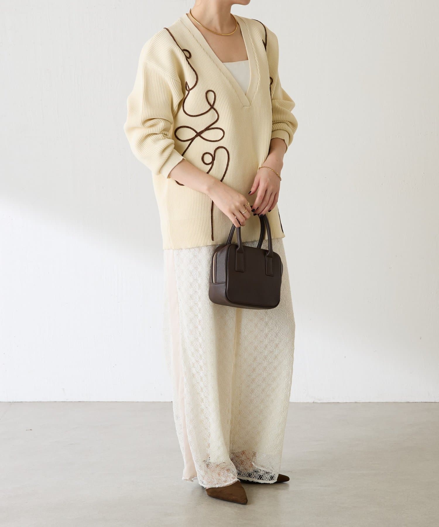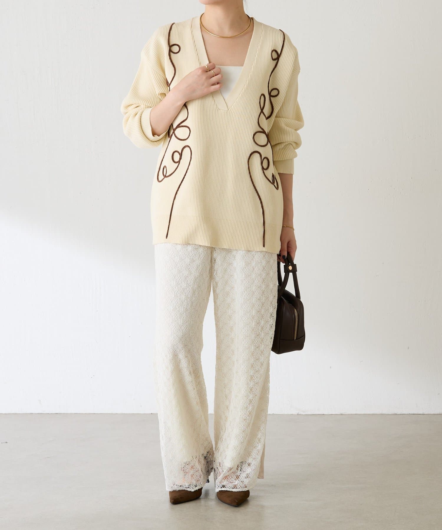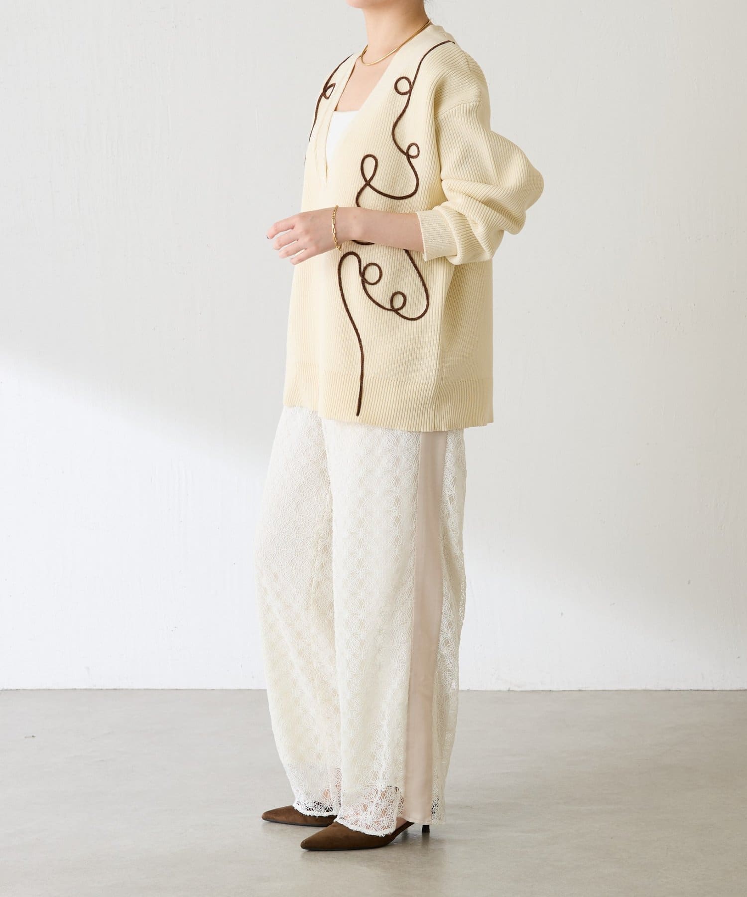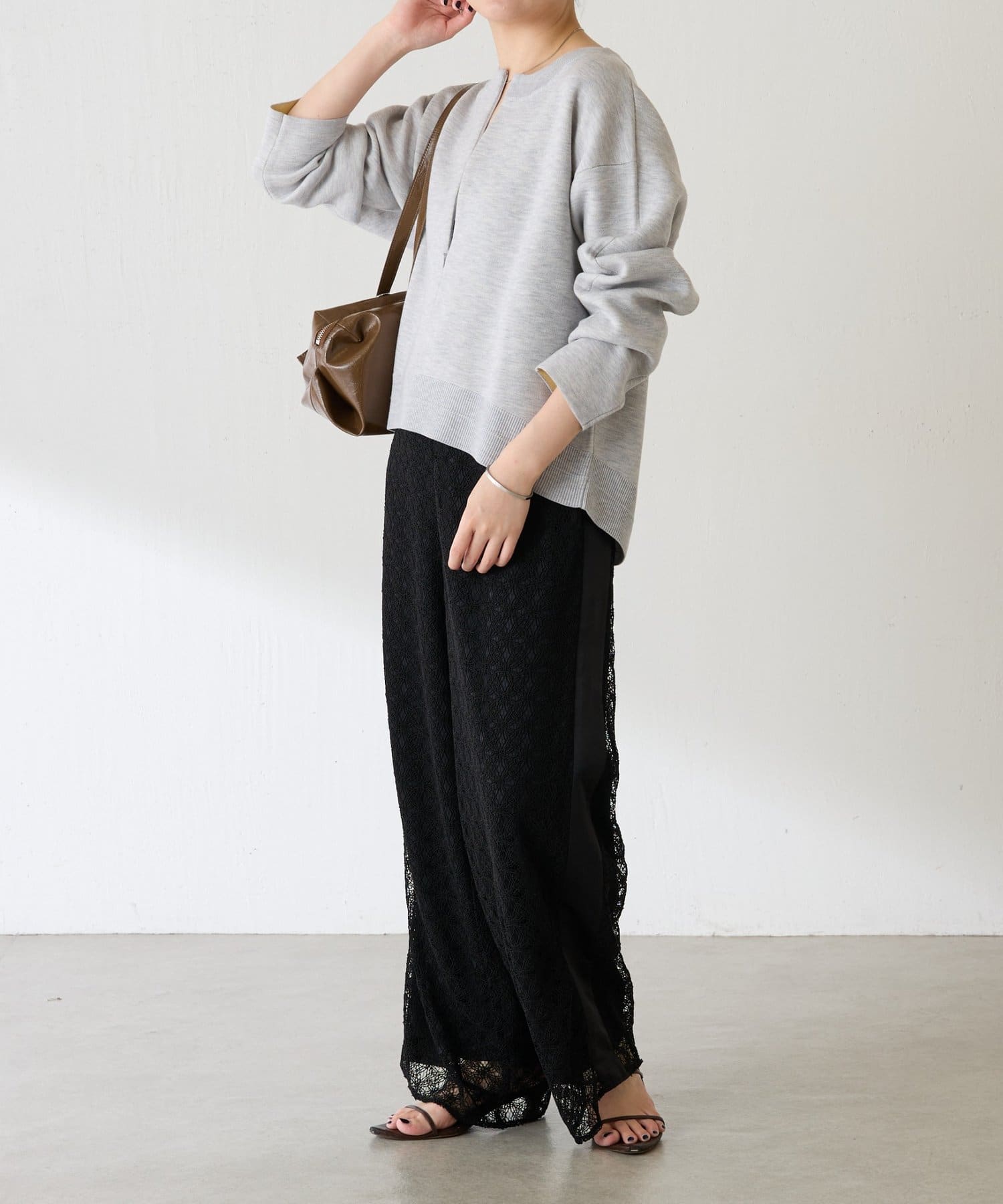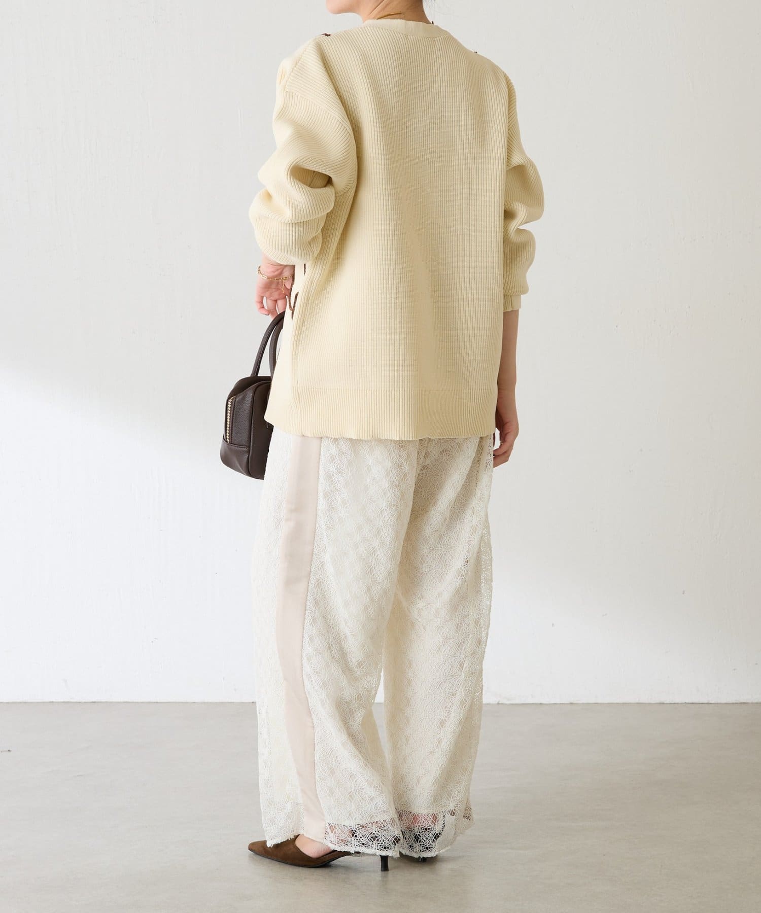 ・ツヤ感のあるコードレースを使用したワイドパンツ。
