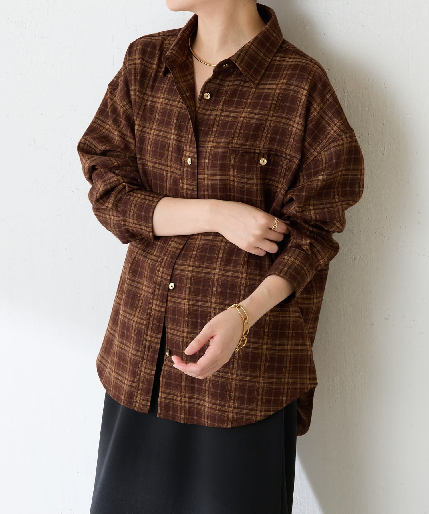 ・少し起毛感のある生地を使用したシーズンムードを高めてくれるチェックシャツ。