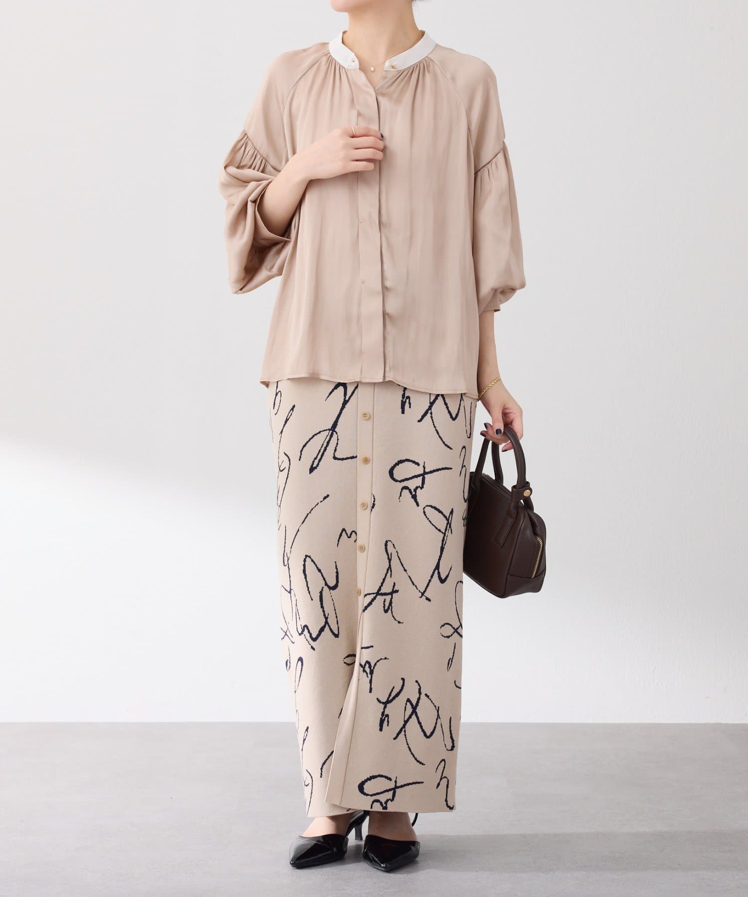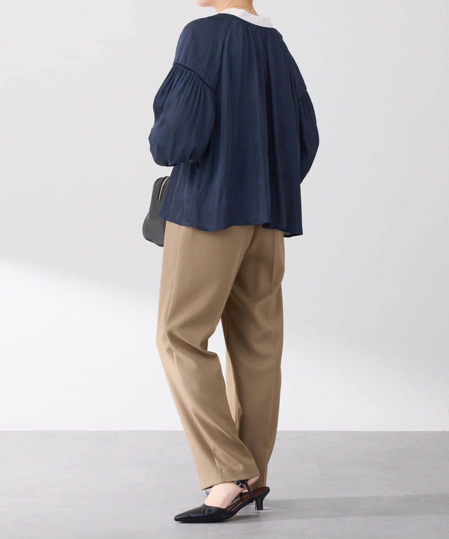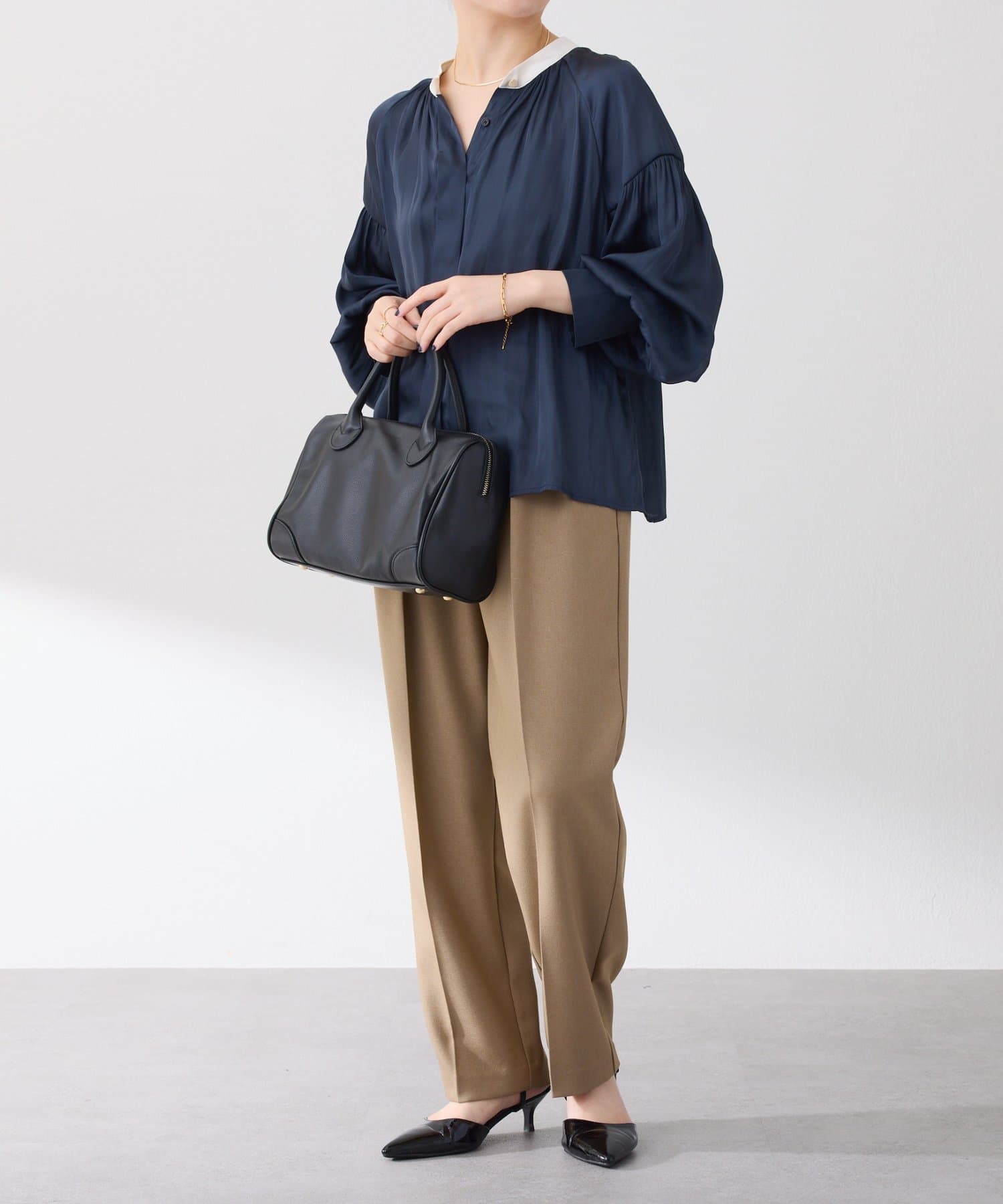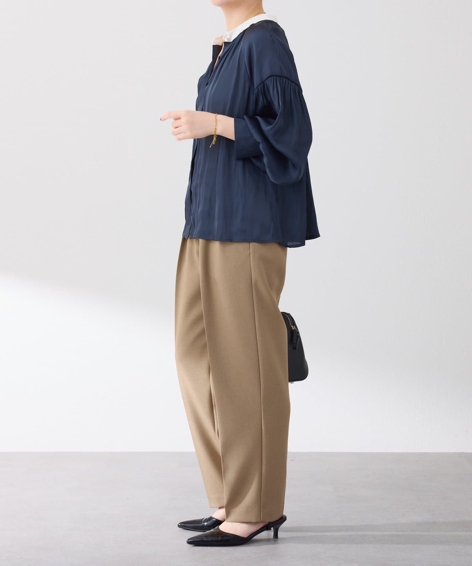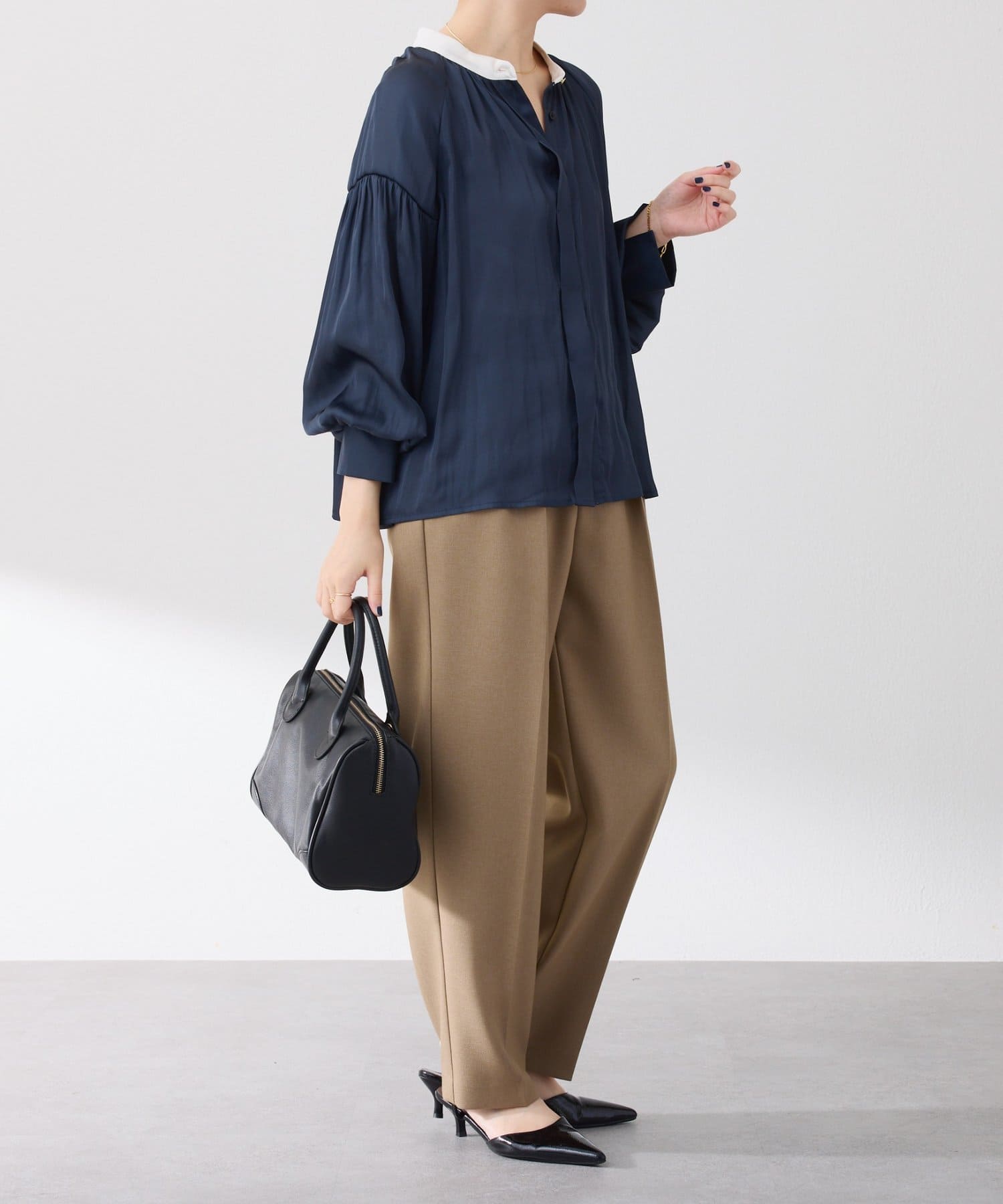ふんわりとボリュームのある袖とは、スッキリとしたテーパードパンツやIラインスカートを合わせると洗練されたイメージになりお仕事におすすめです。