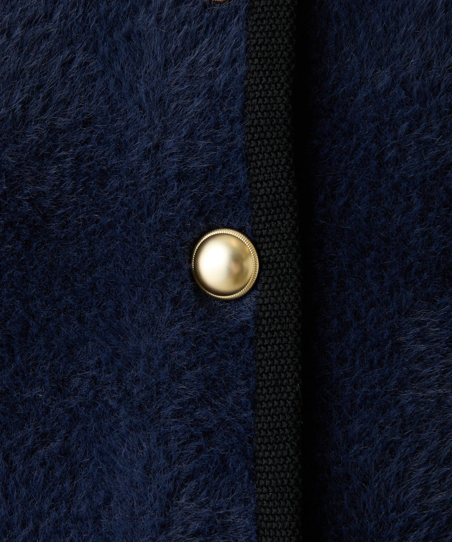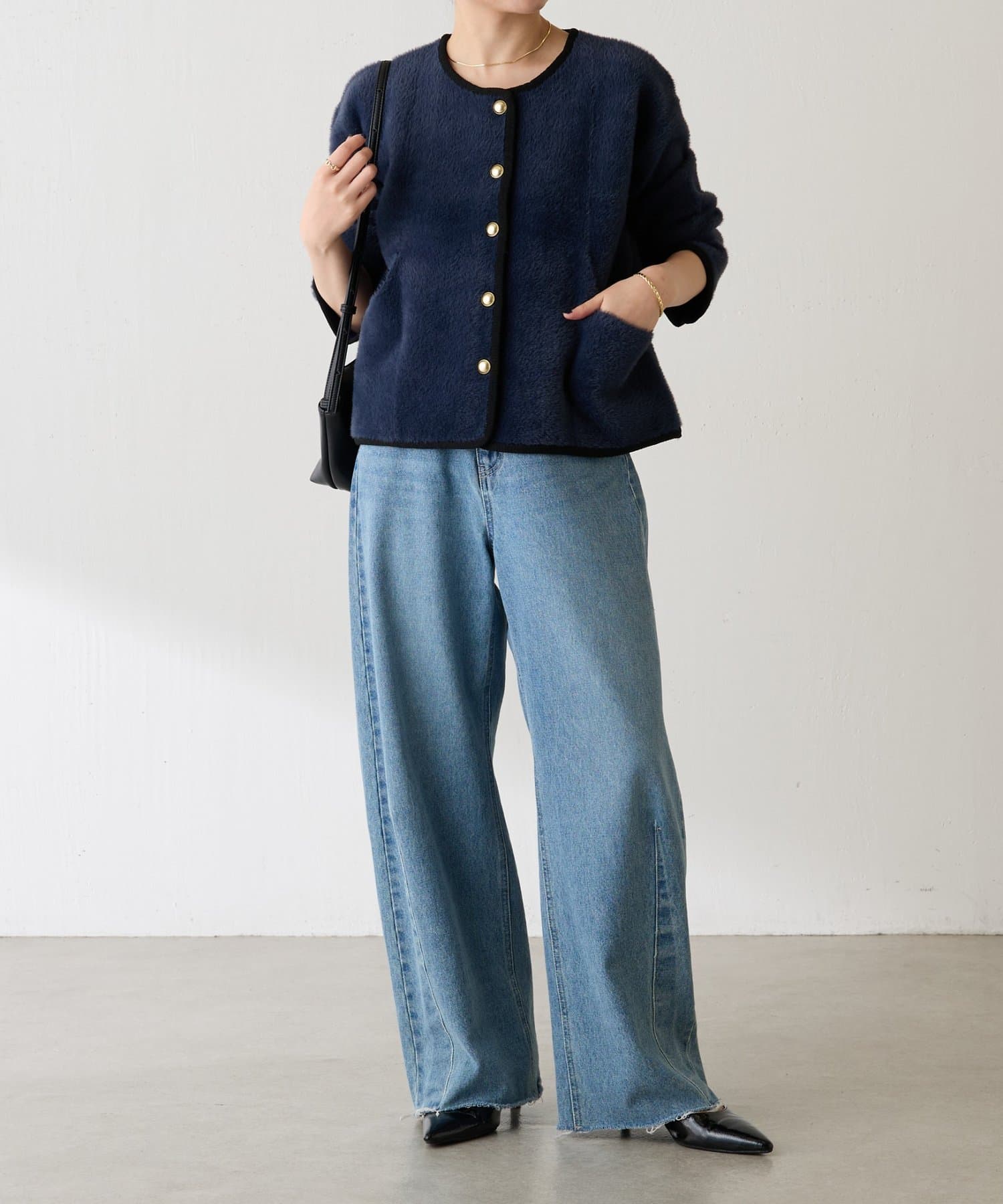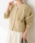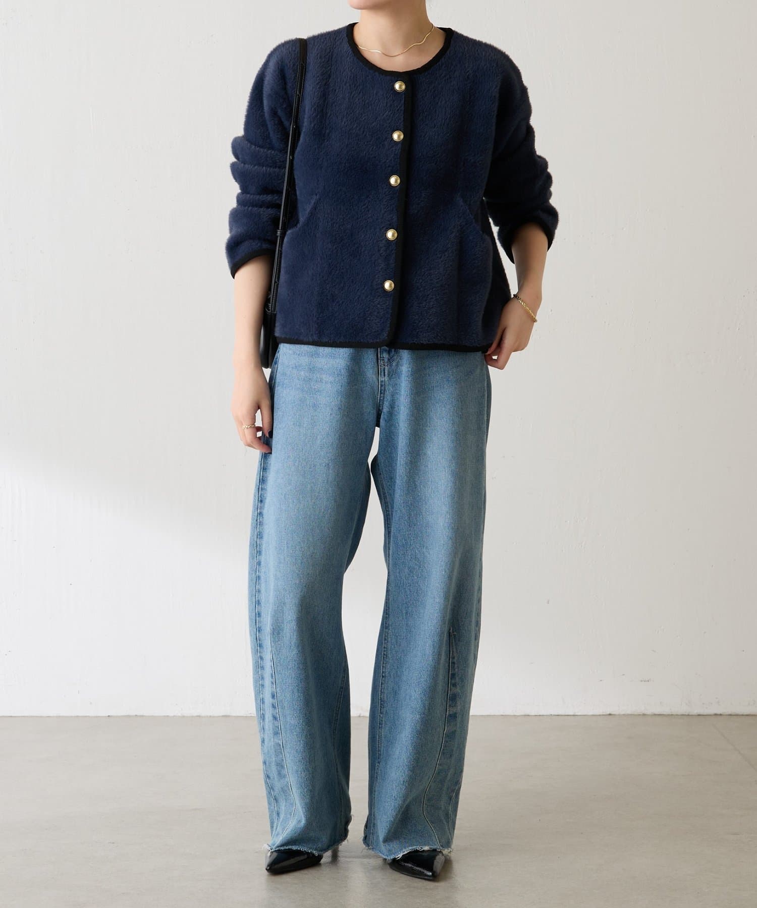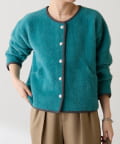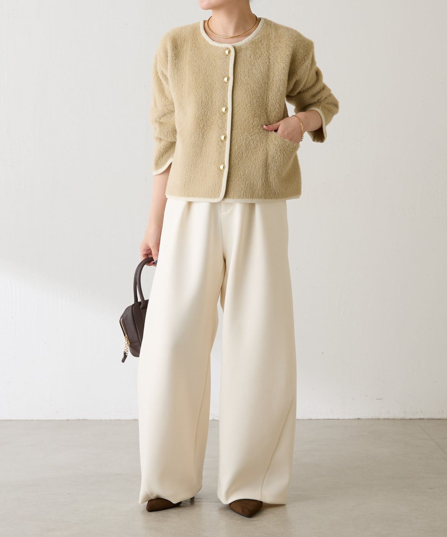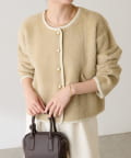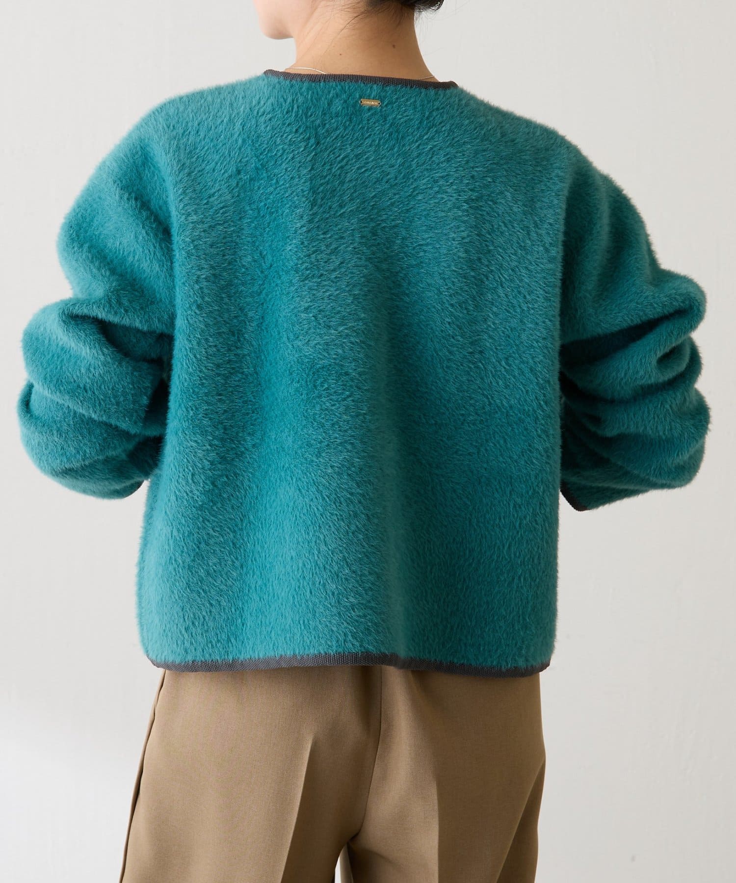 ・シャギー素材のパイピングディティールのデザインでツイードジャケット風に着られるカーディガン。