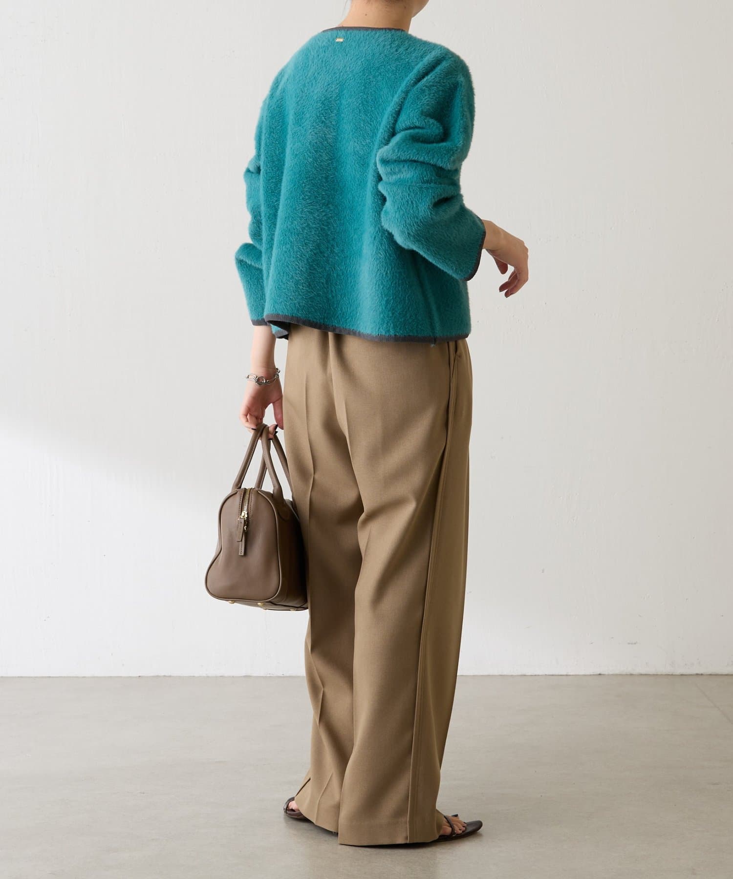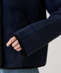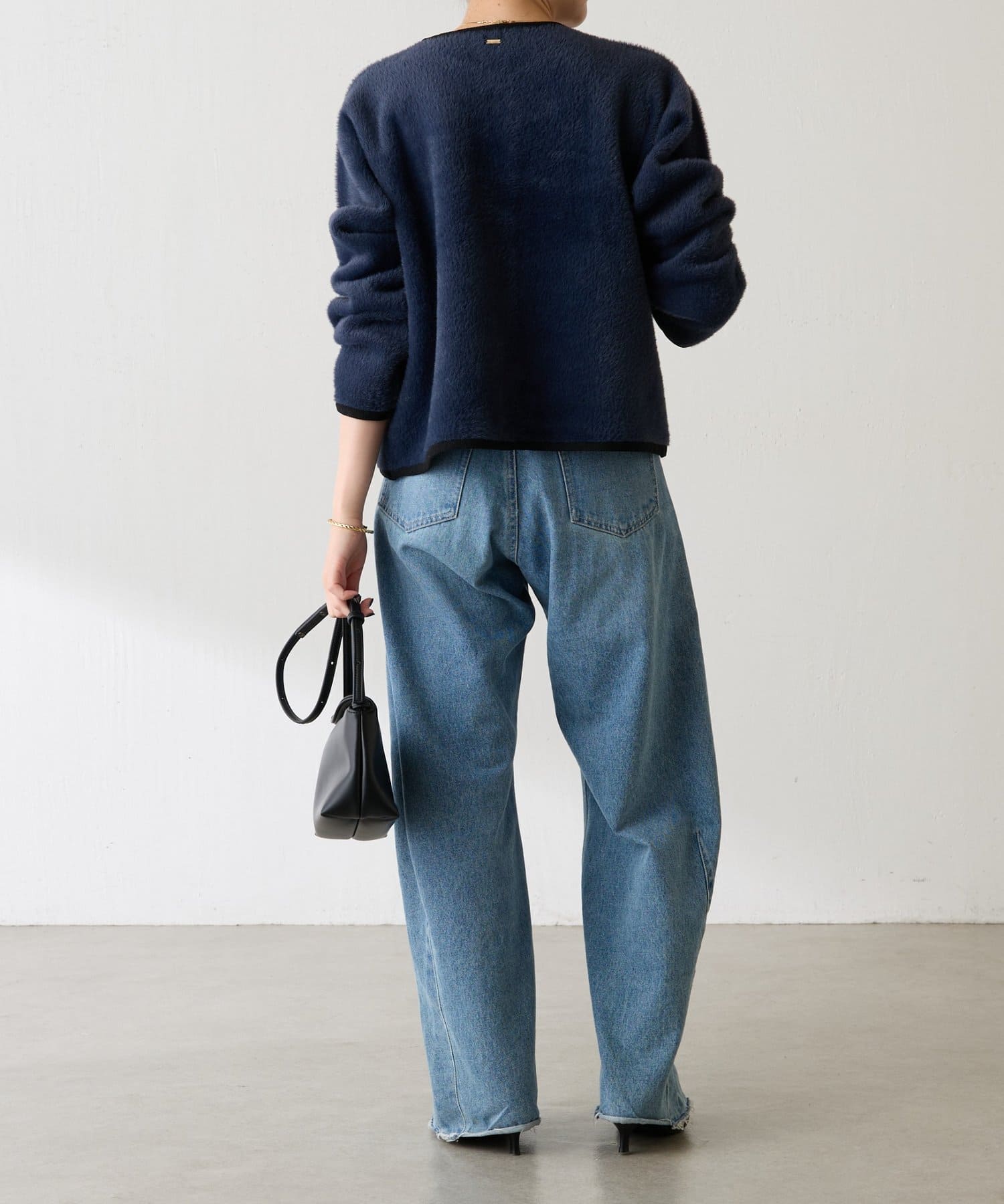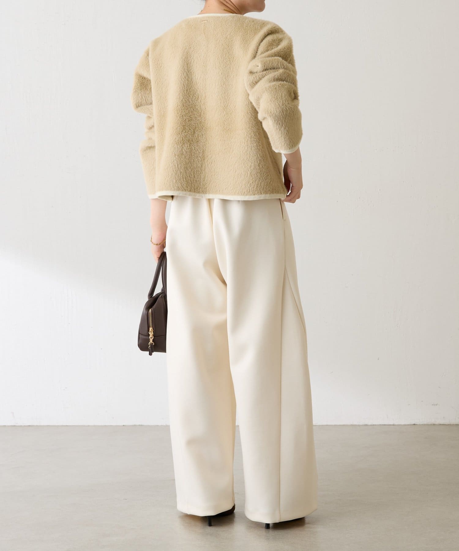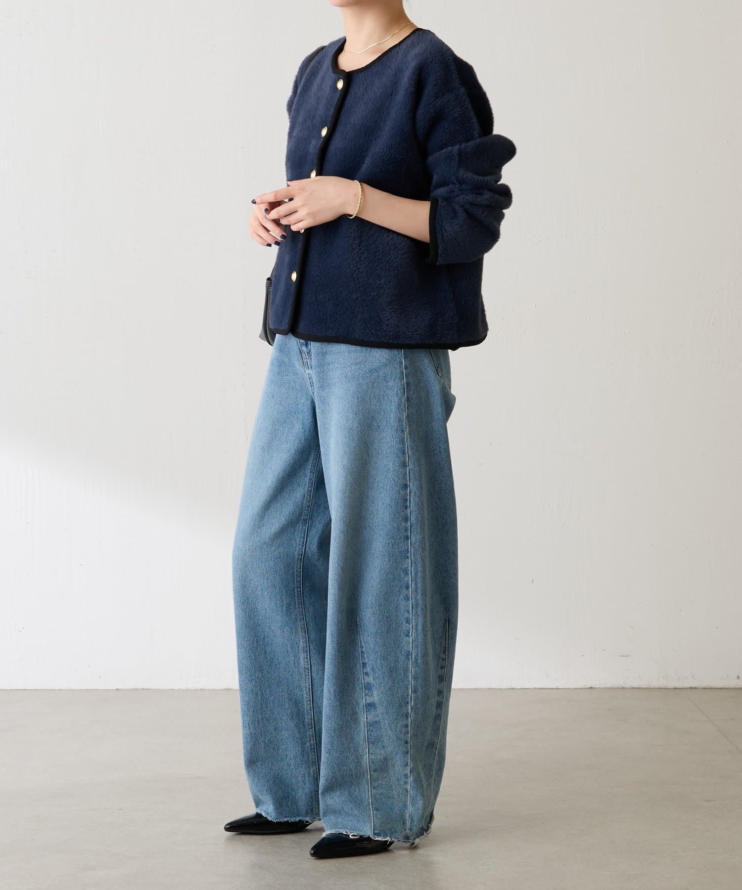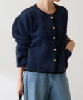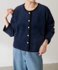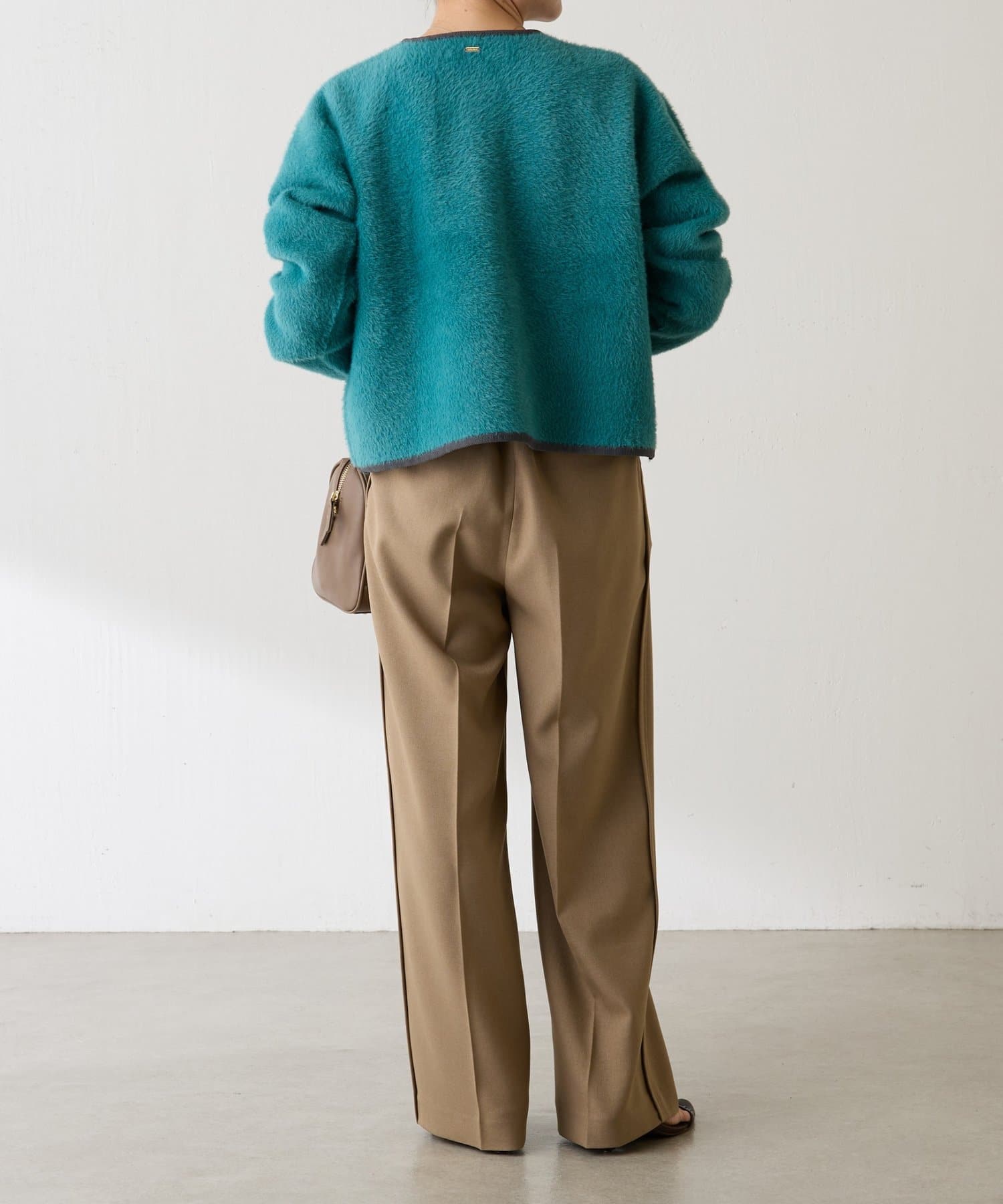 ・シャギー素材のパイピングディティールのデザインでツイードジャケット風に着られるカーディガン。