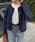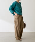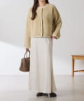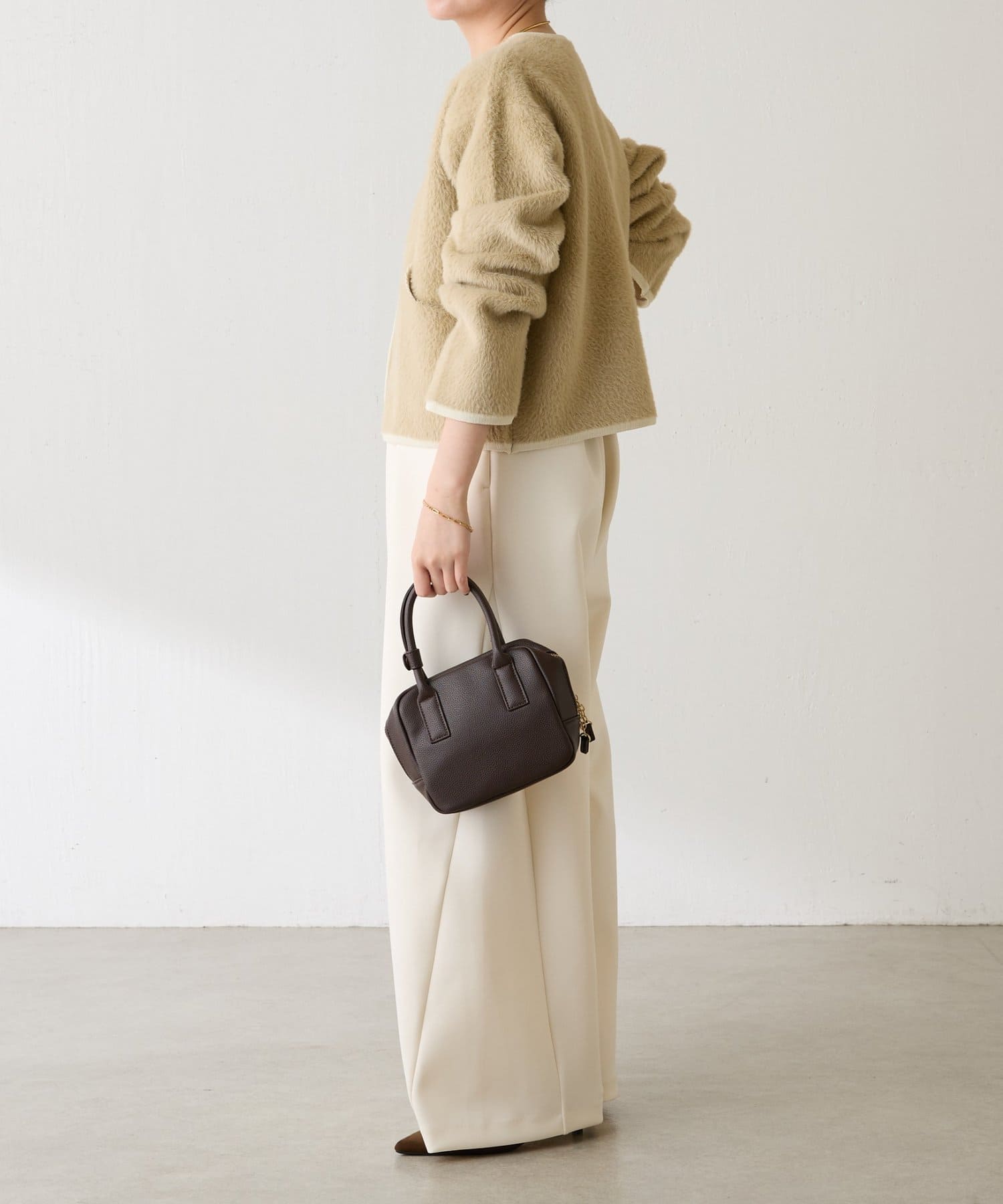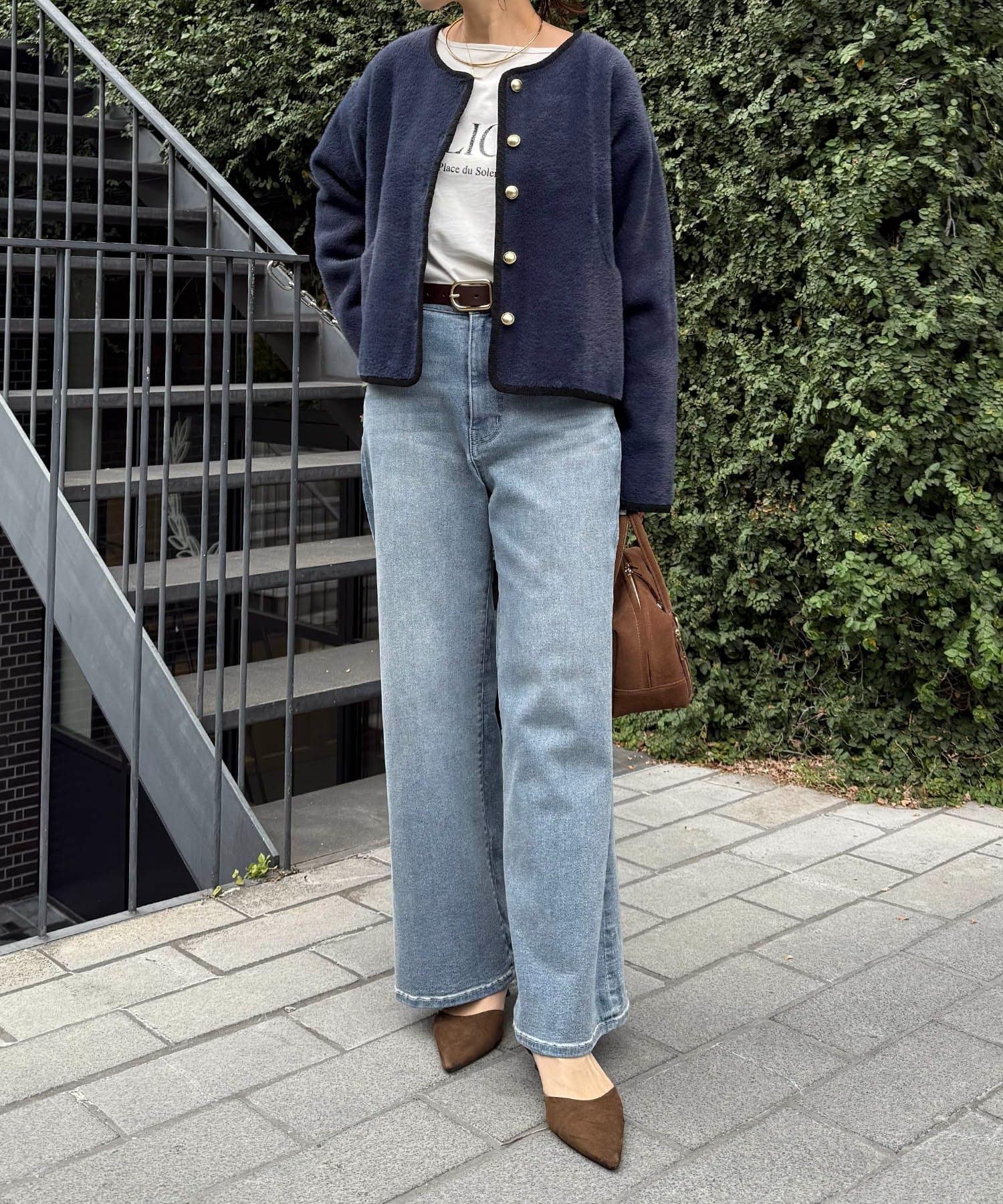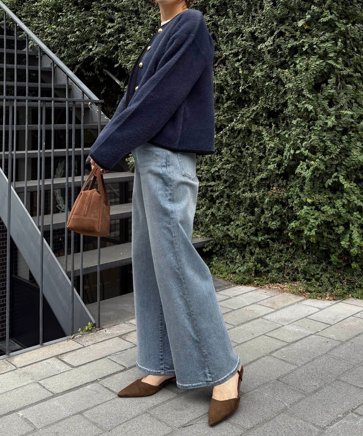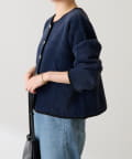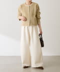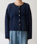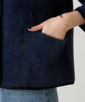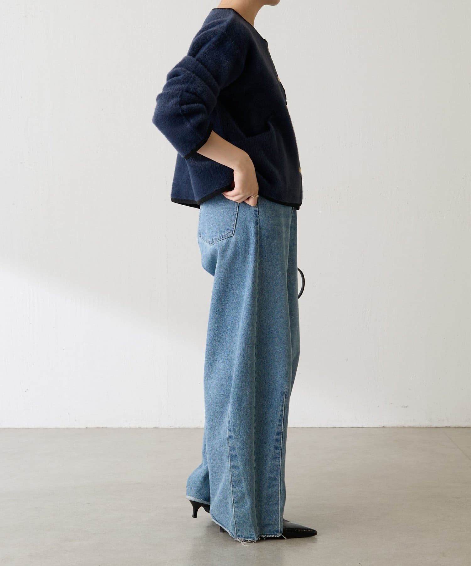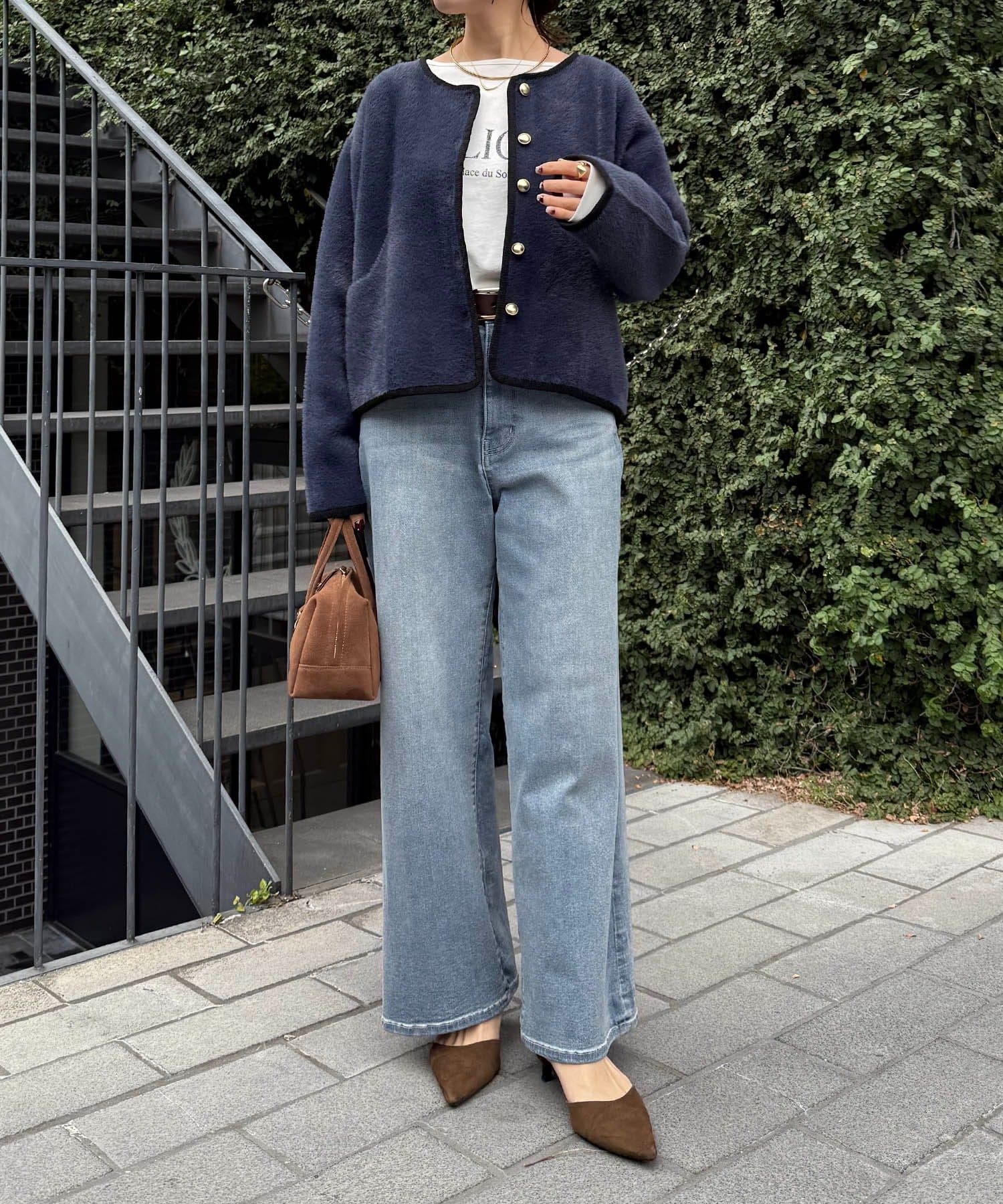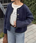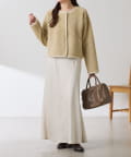 ・シャギー素材のパイピングディティールのデザインでツイードジャケット風に着られるカーディガン。