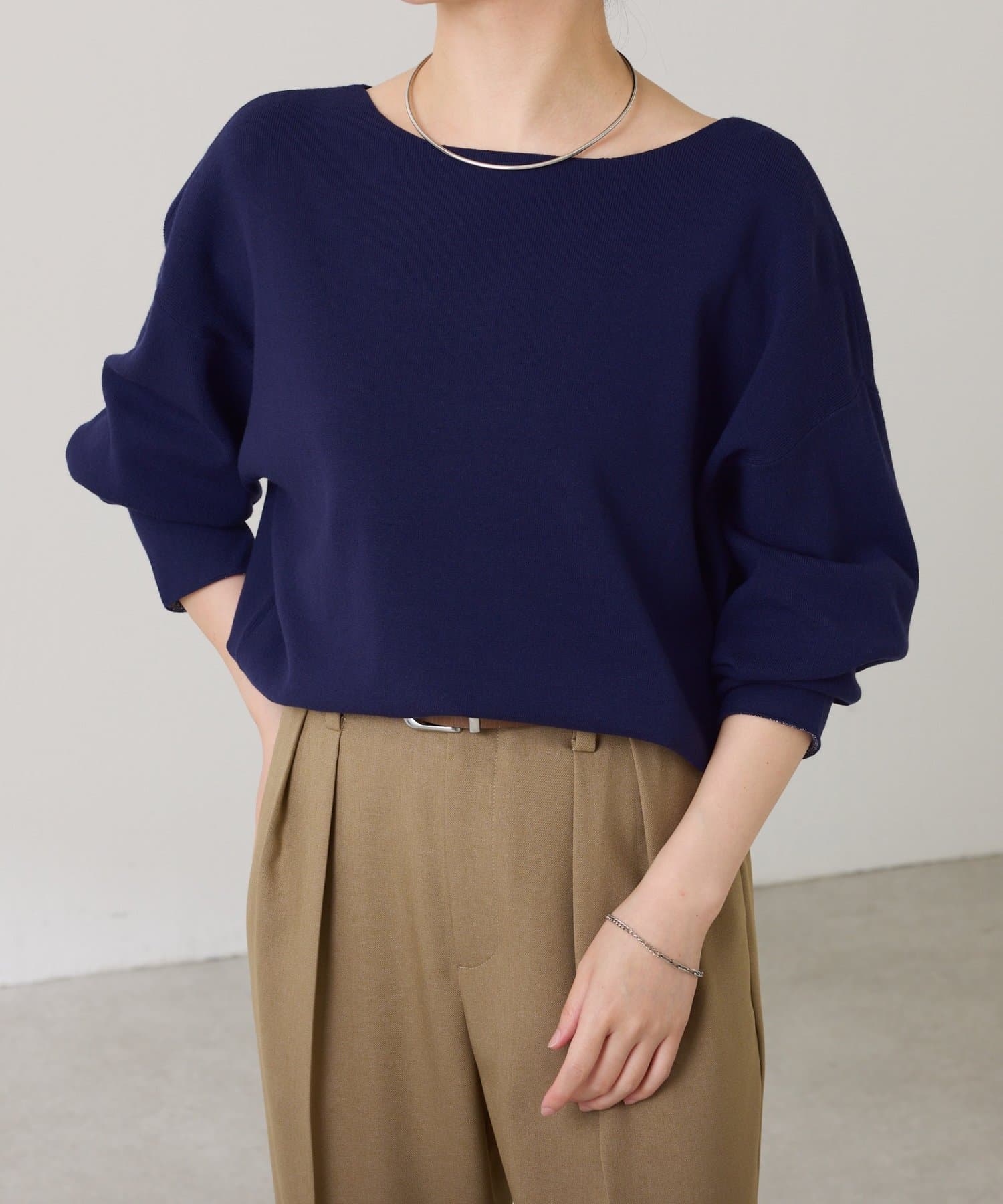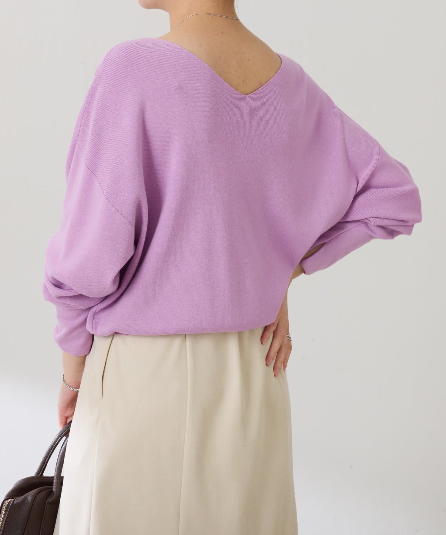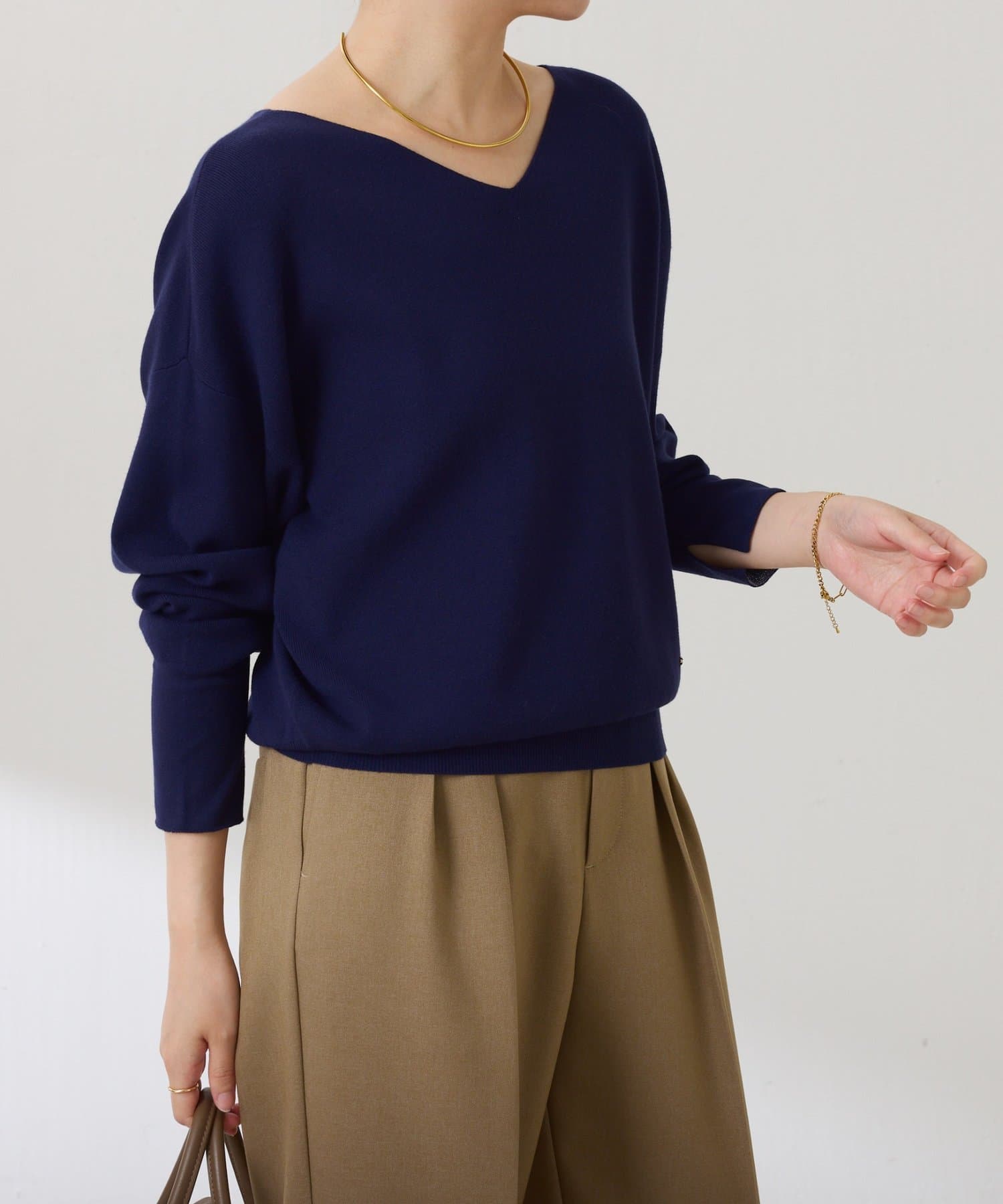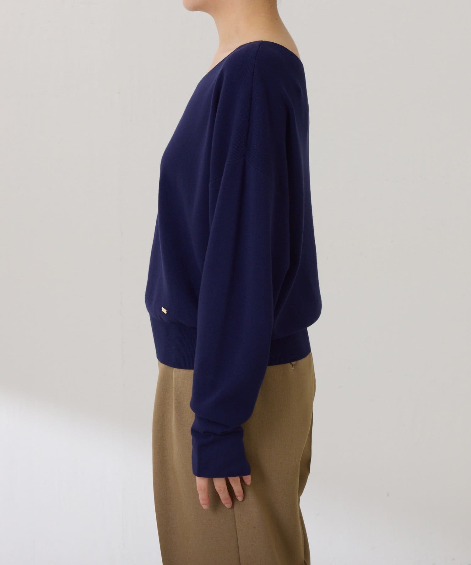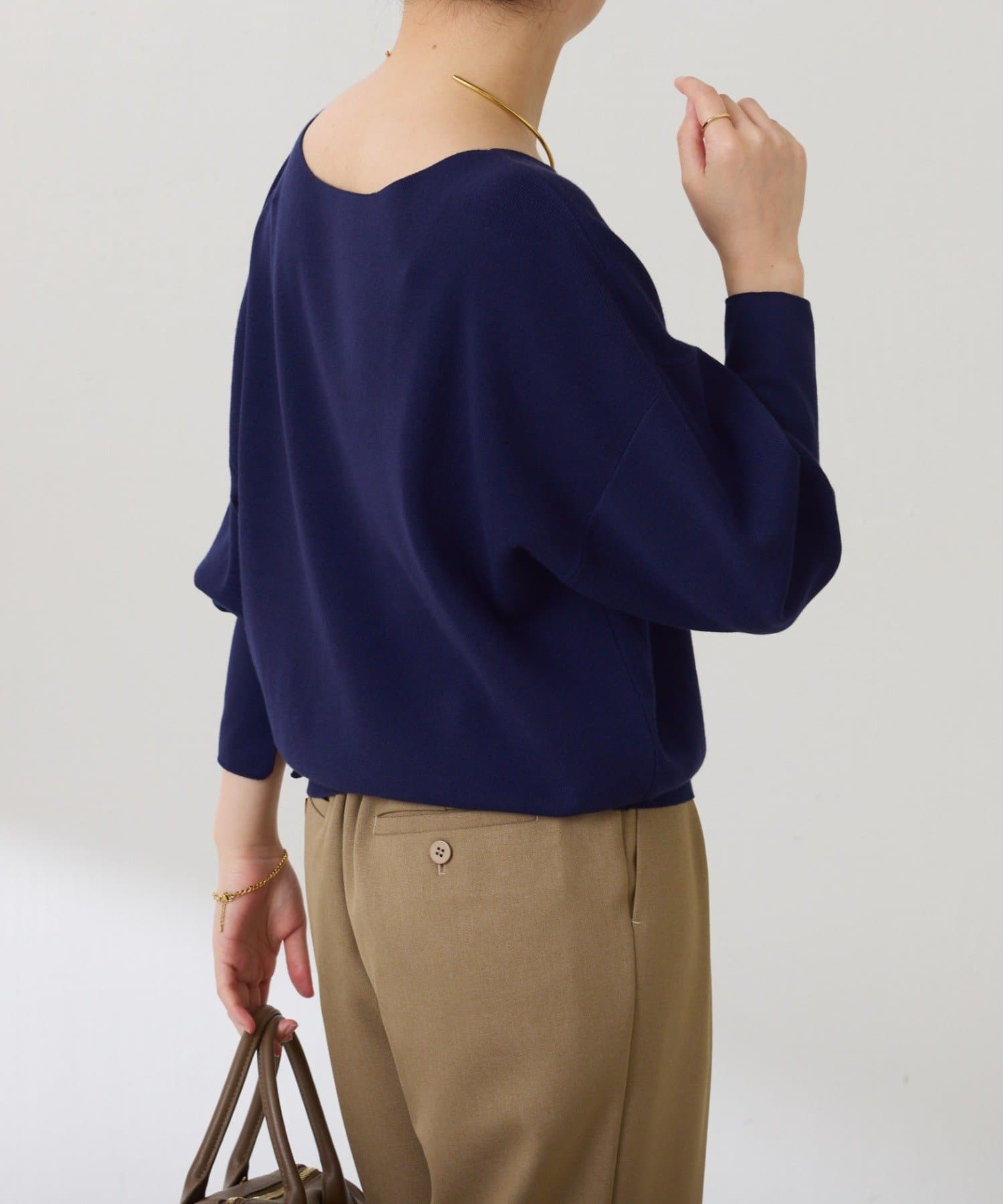 ・浅Vとボートネックの衿ぐりの前後2WAY仕様のドルマンニット。