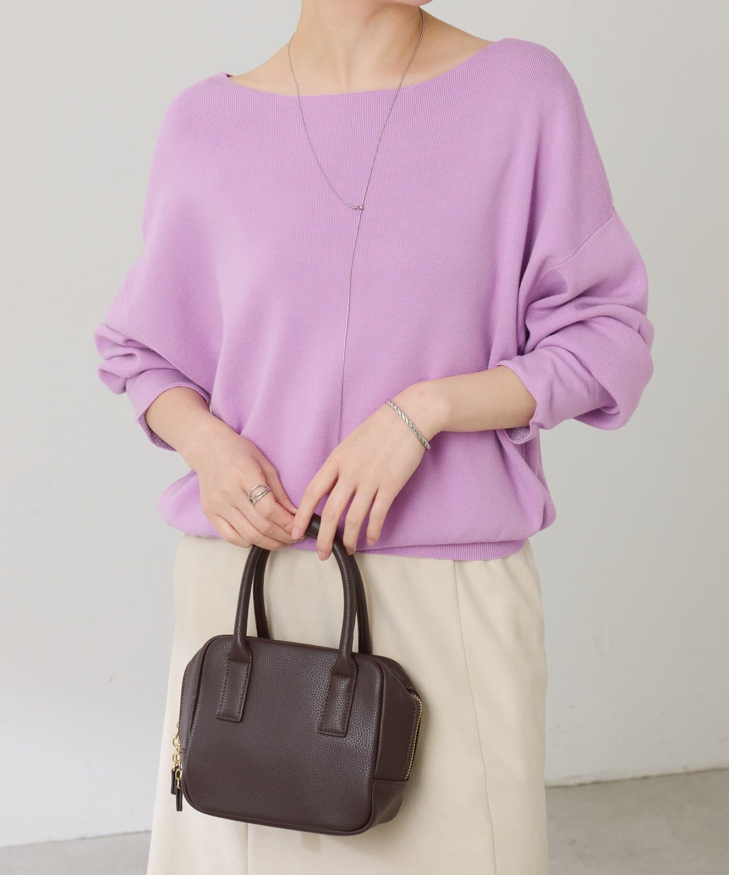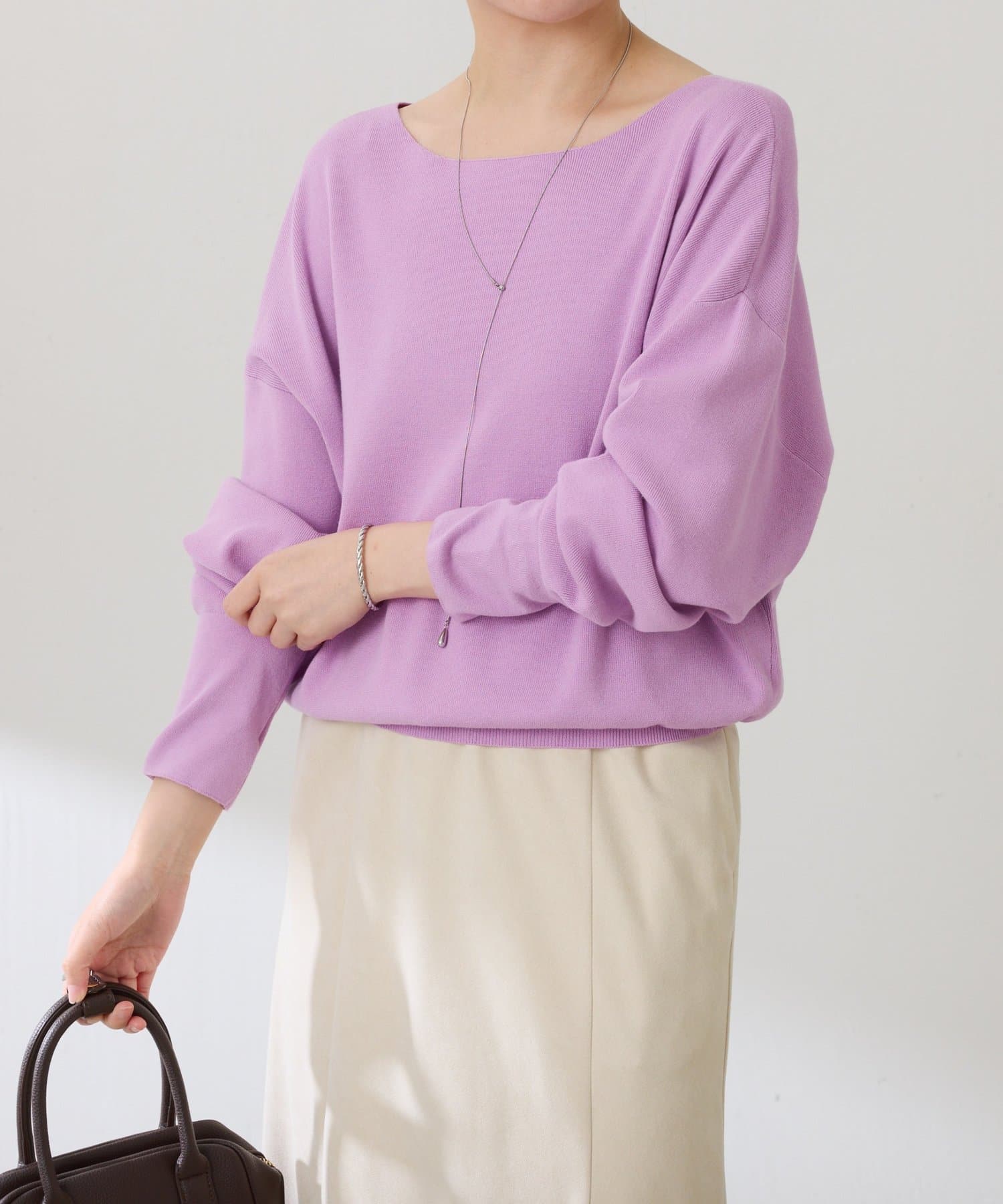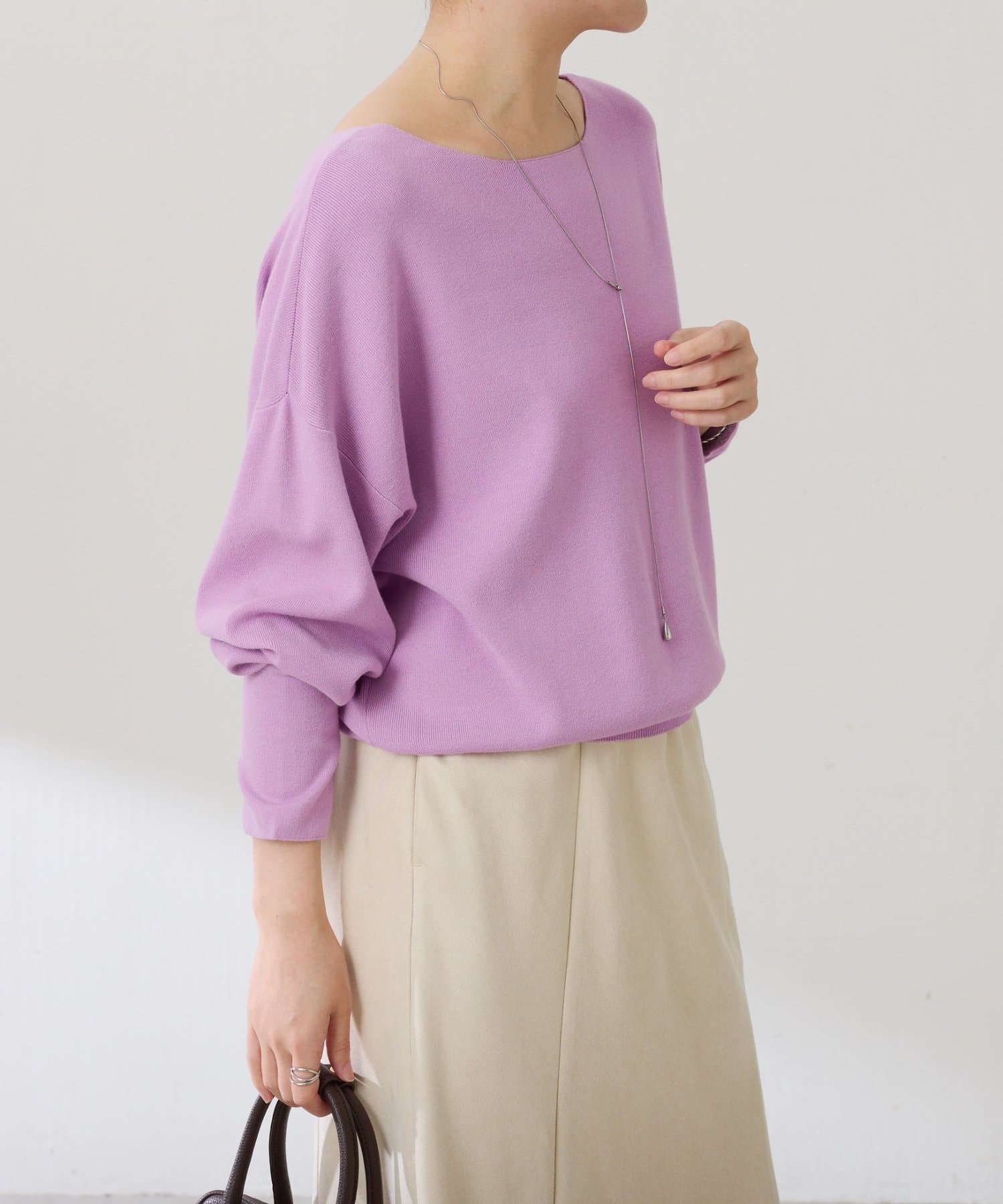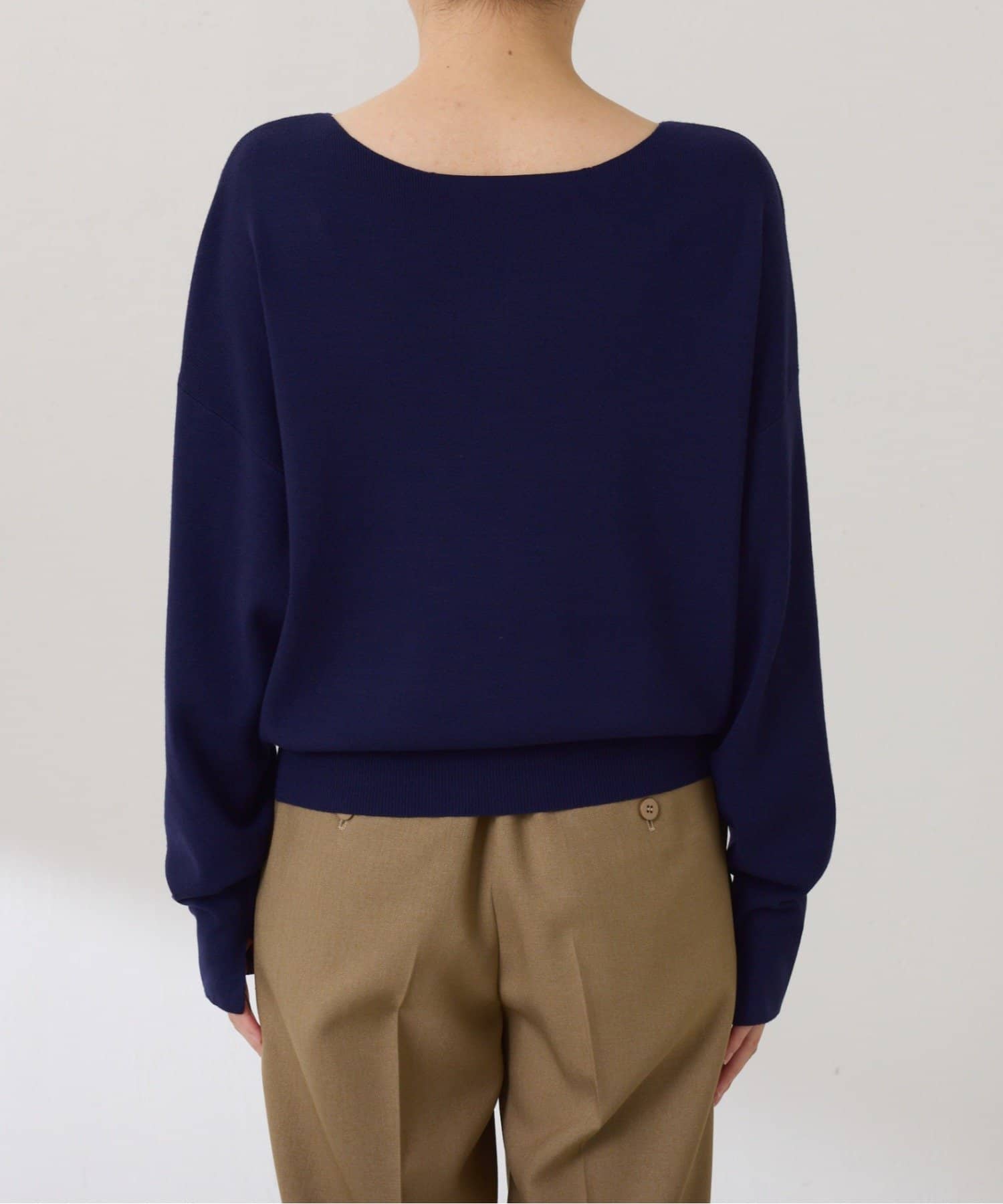 ・浅Vとボートネックの衿ぐりの前後2WAY仕様のドルマンニット。
