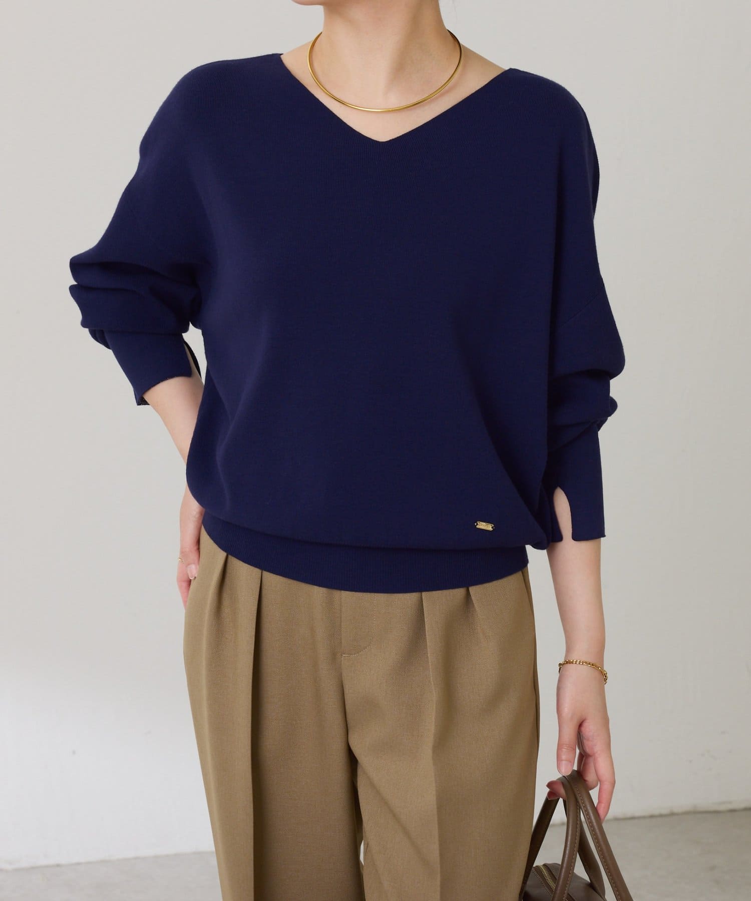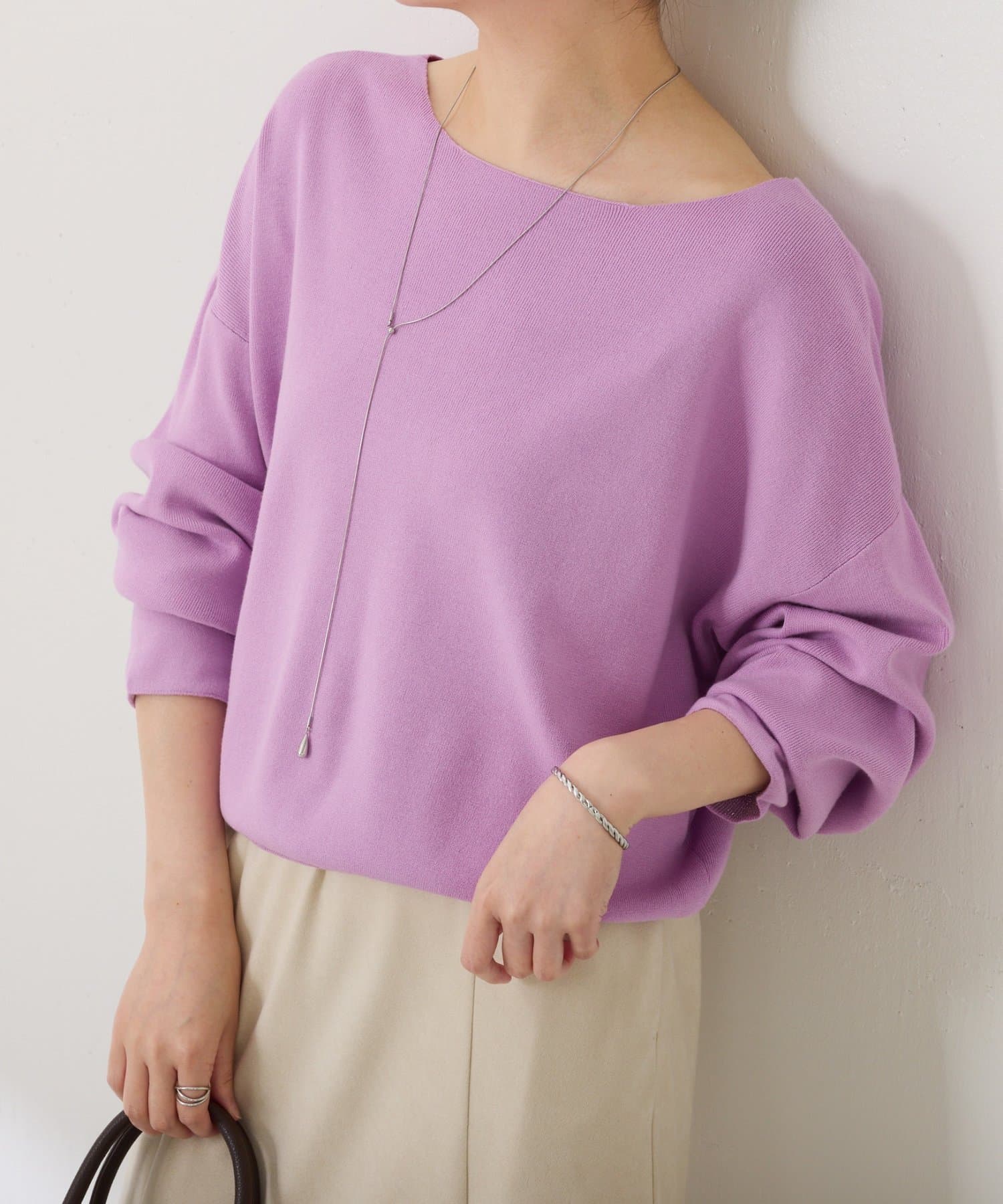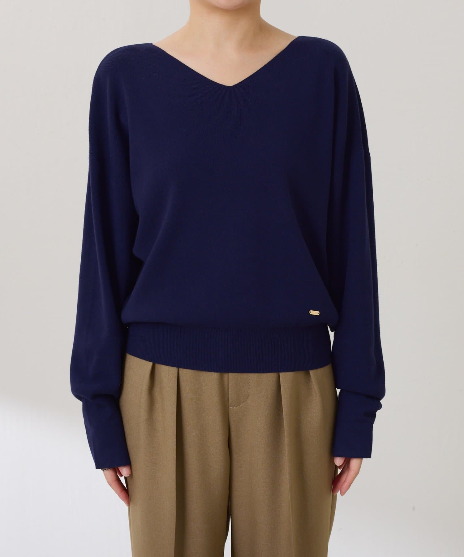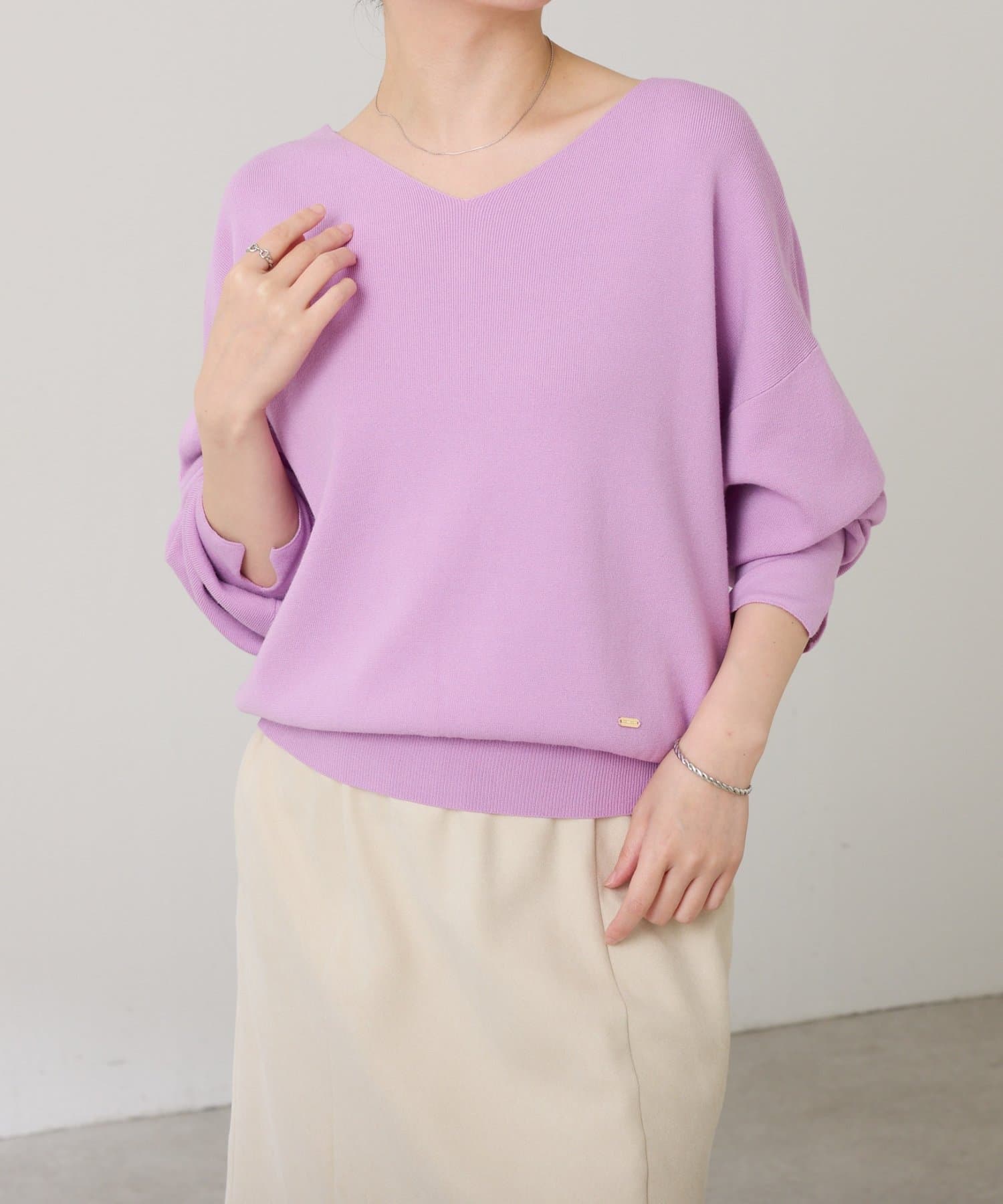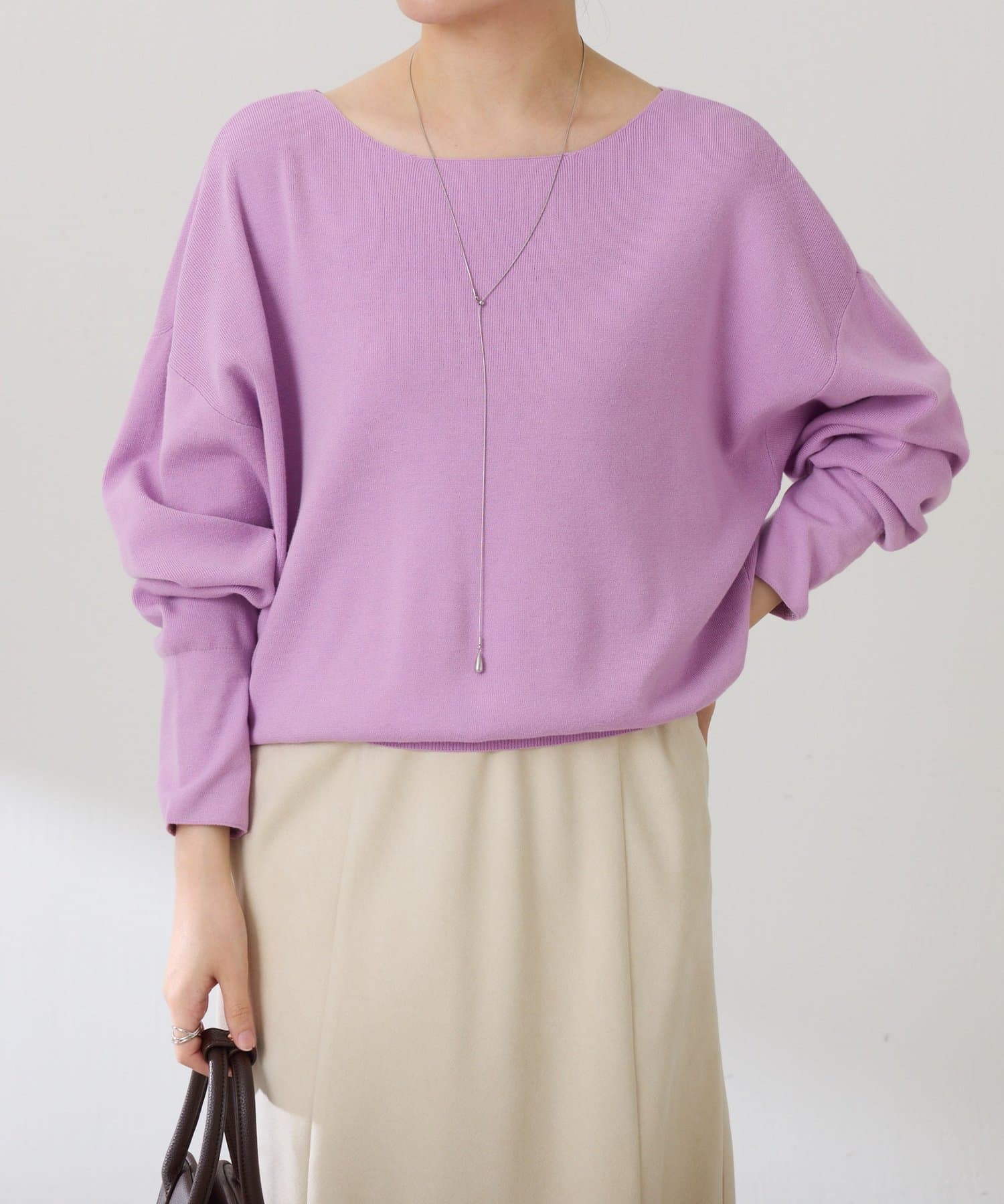 ・浅Vとボートネックの衿ぐりの前後2WAY仕様のドルマンニット。