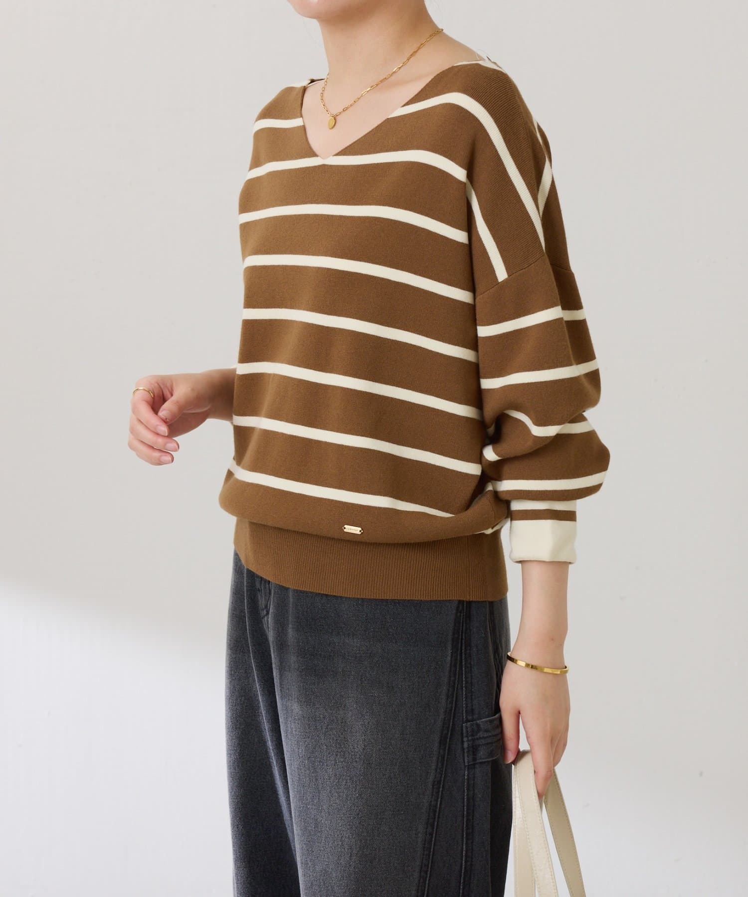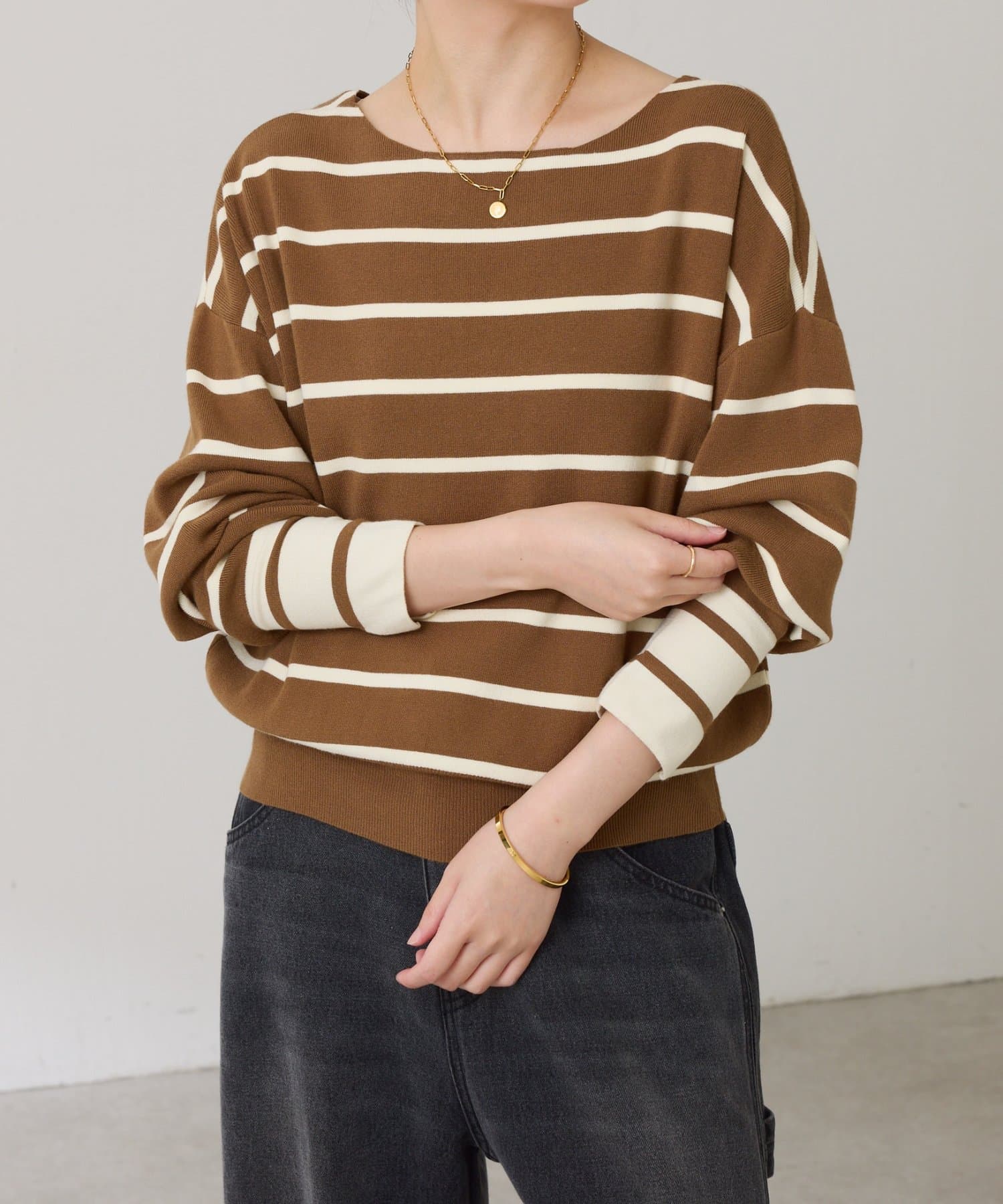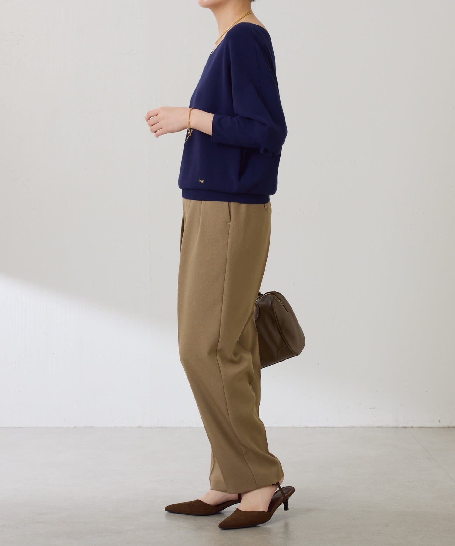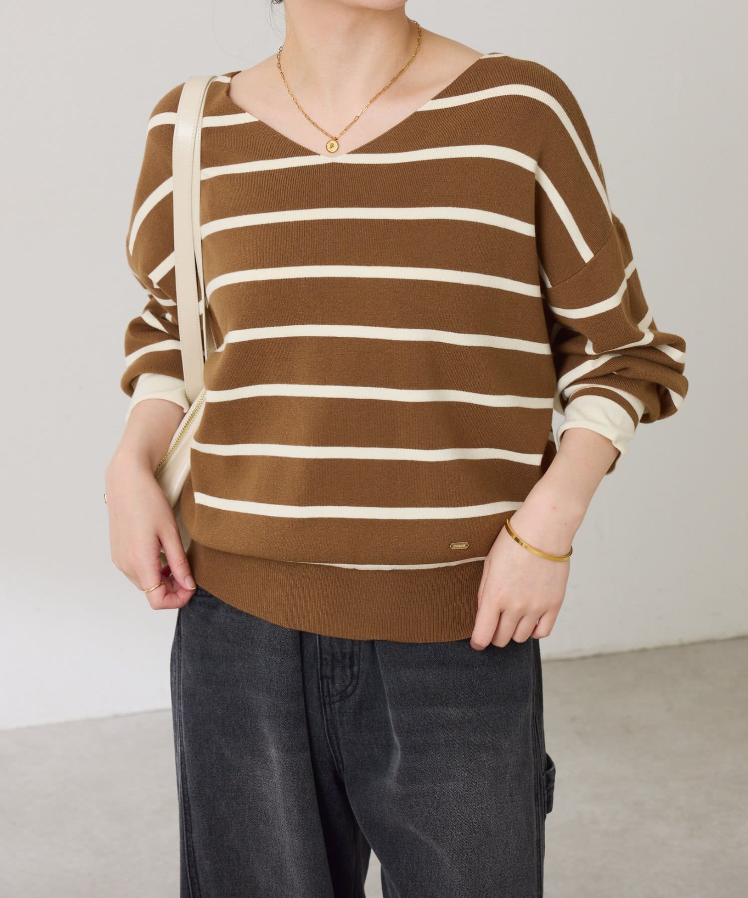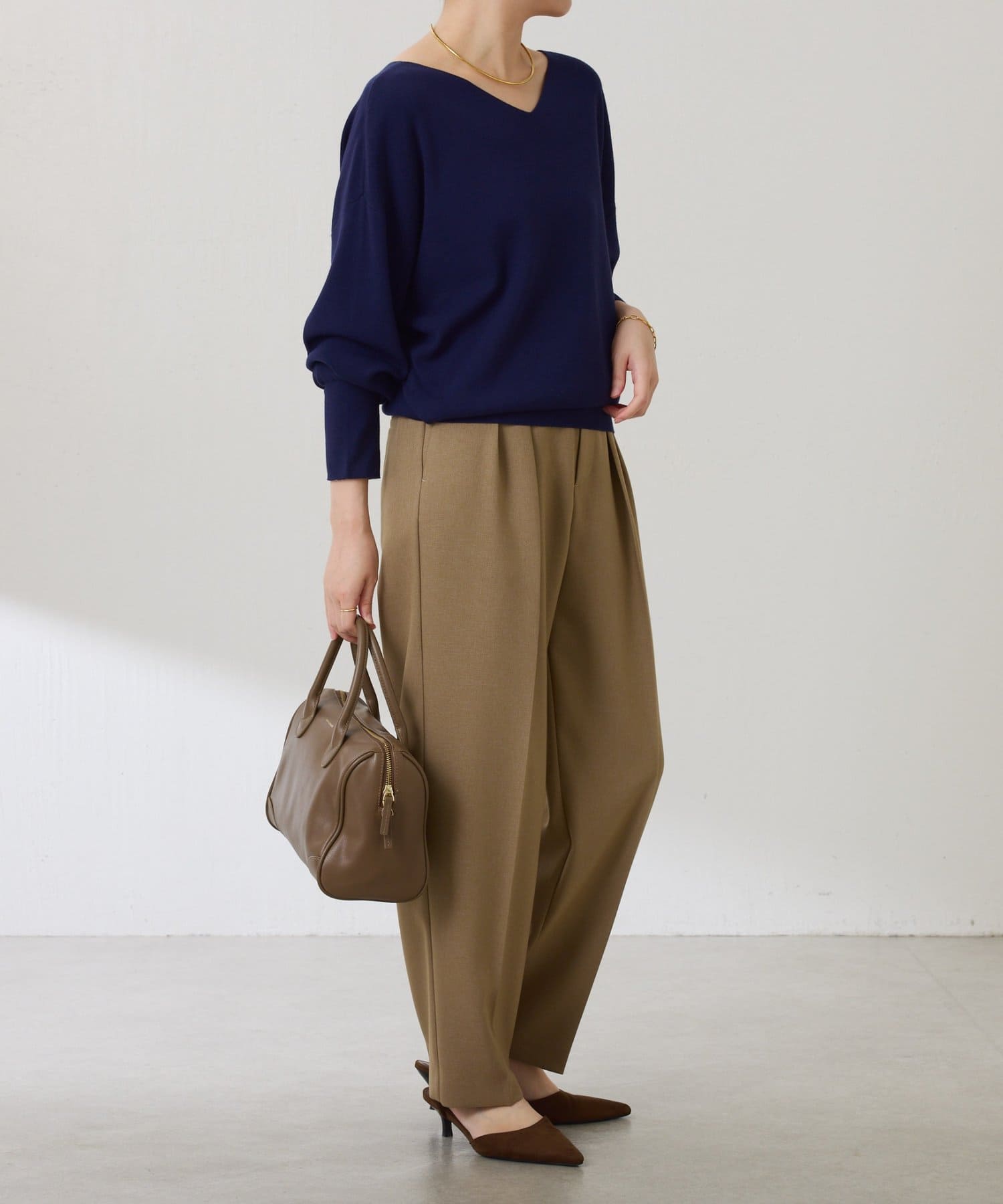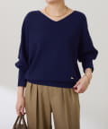 ・浅Vとボートネックの衿ぐりの前後2WAY仕様のドルマンニット。