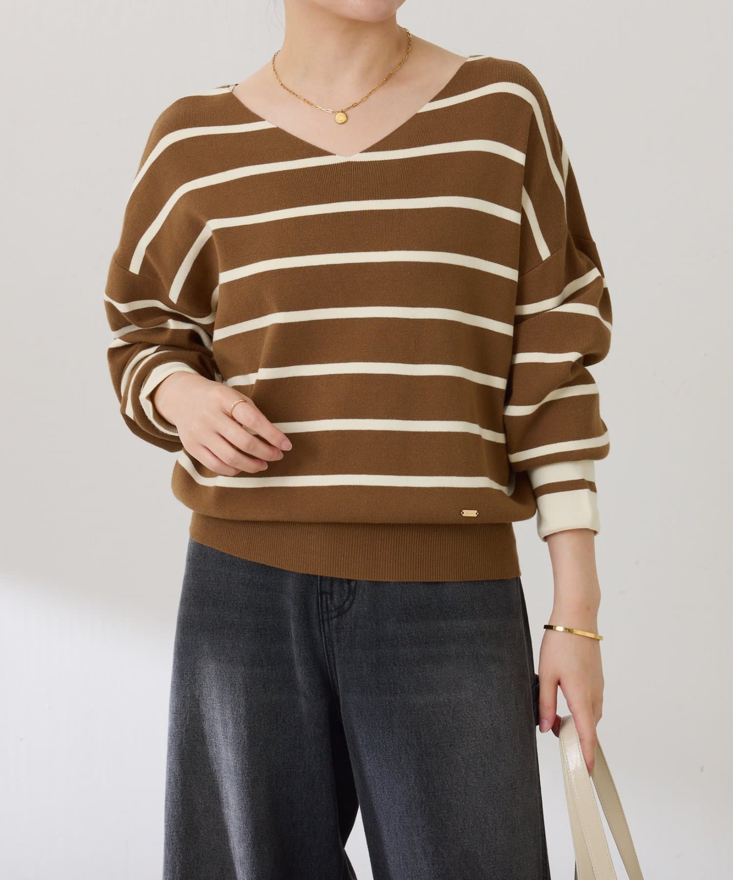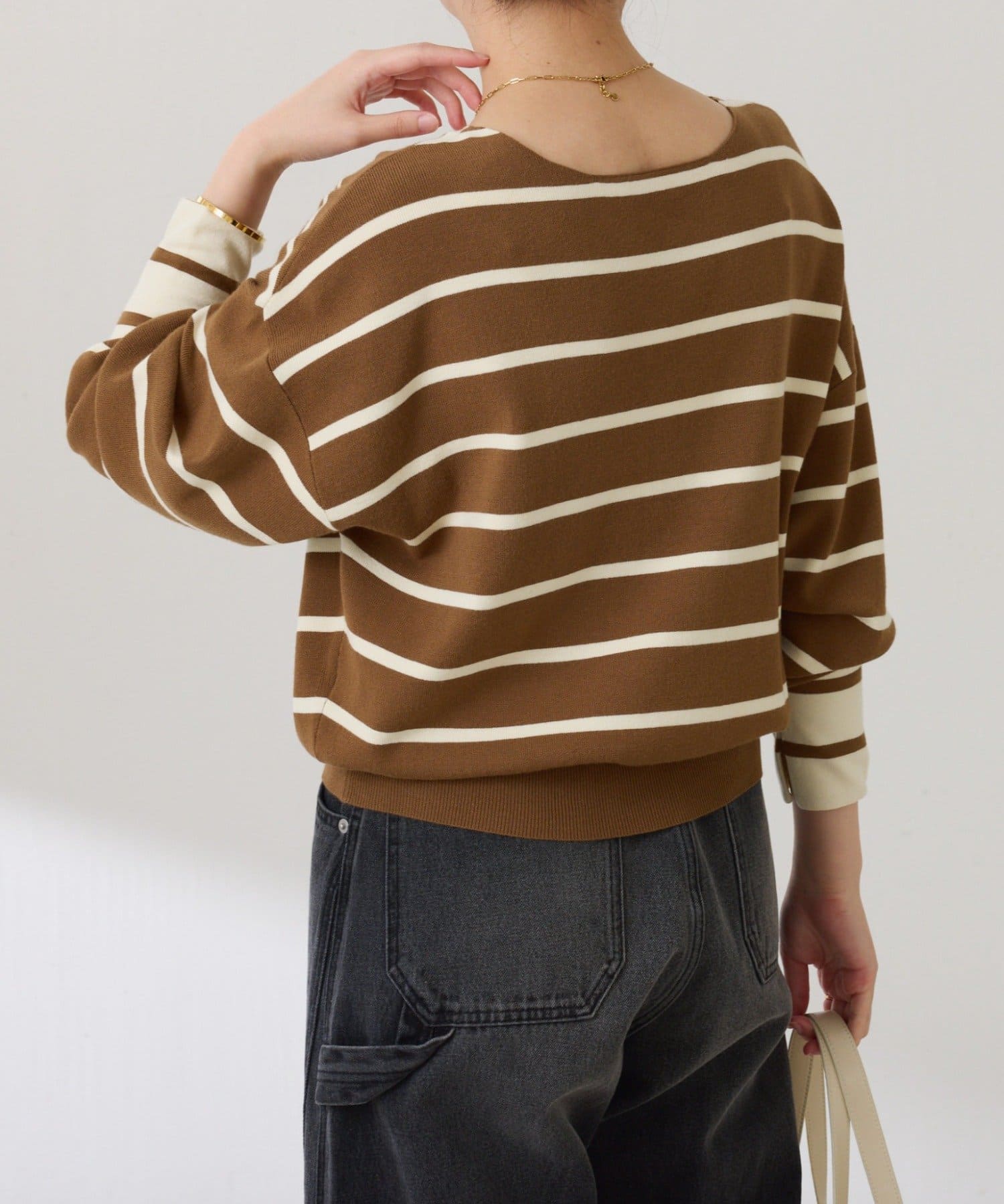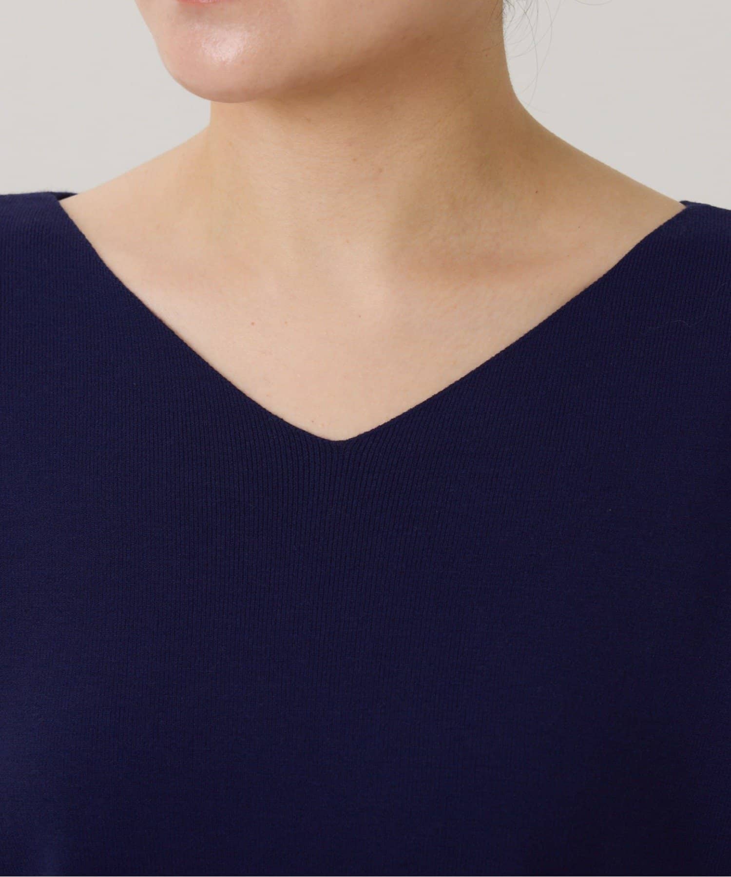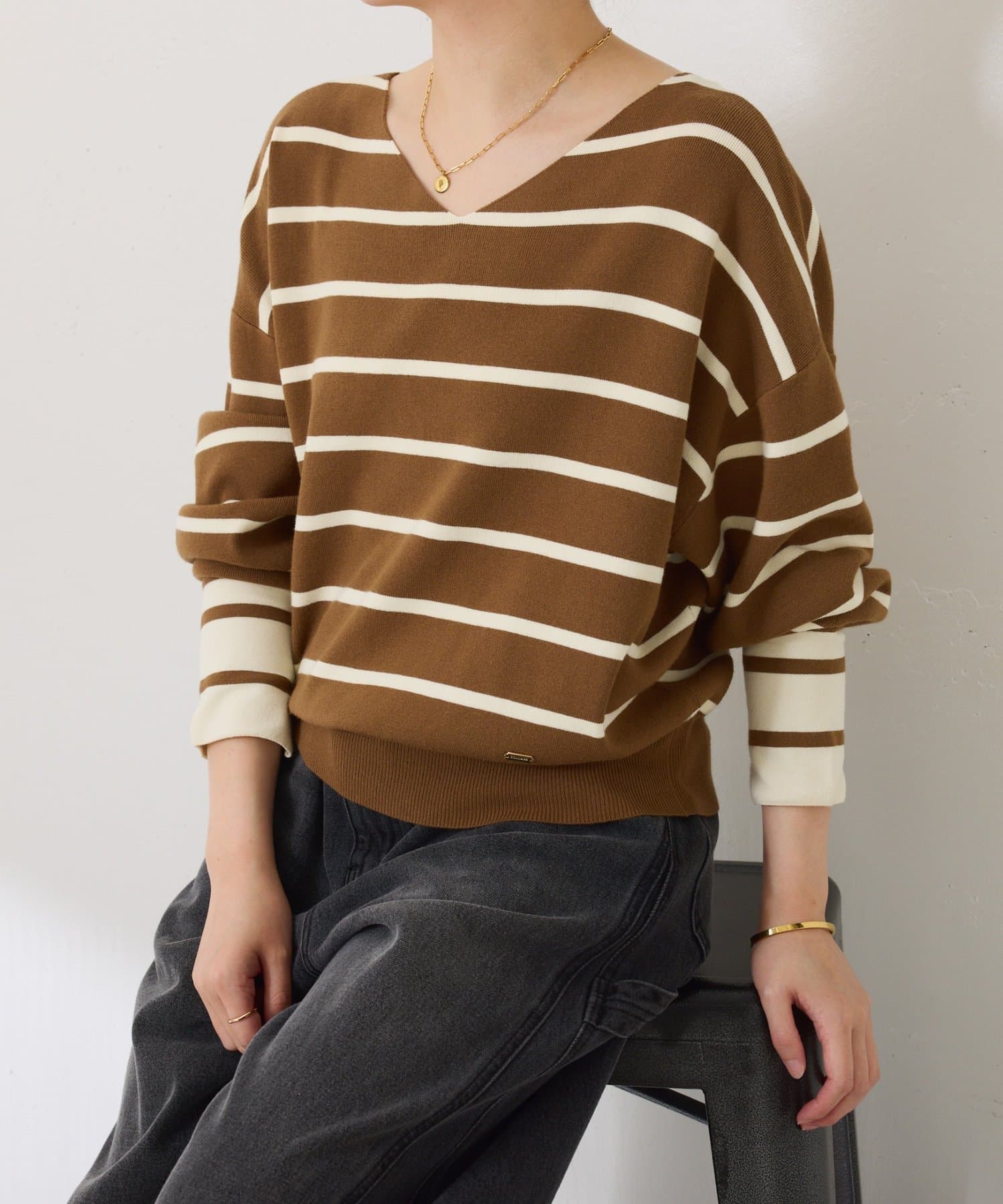 ・浅Vとボートネックの衿ぐりの前後2WAY仕様のドルマンニット。