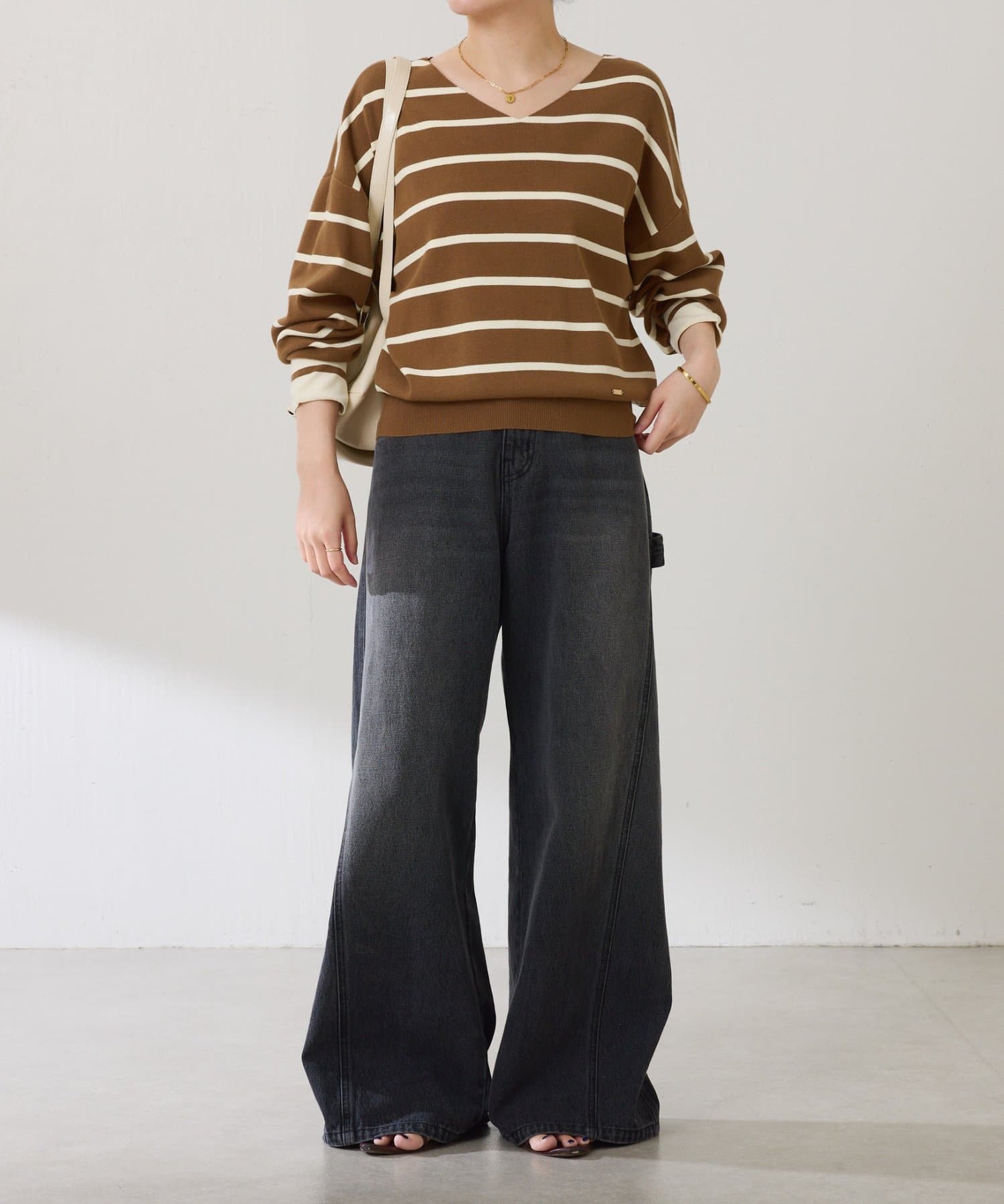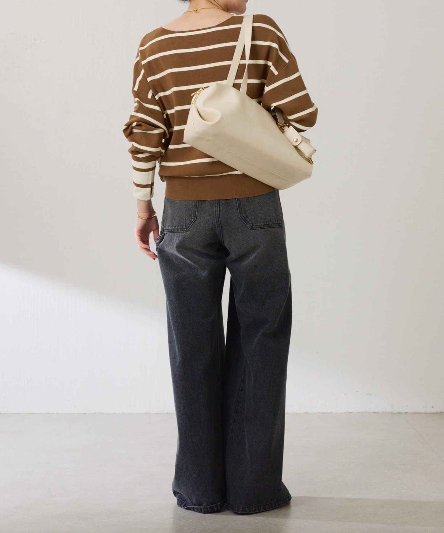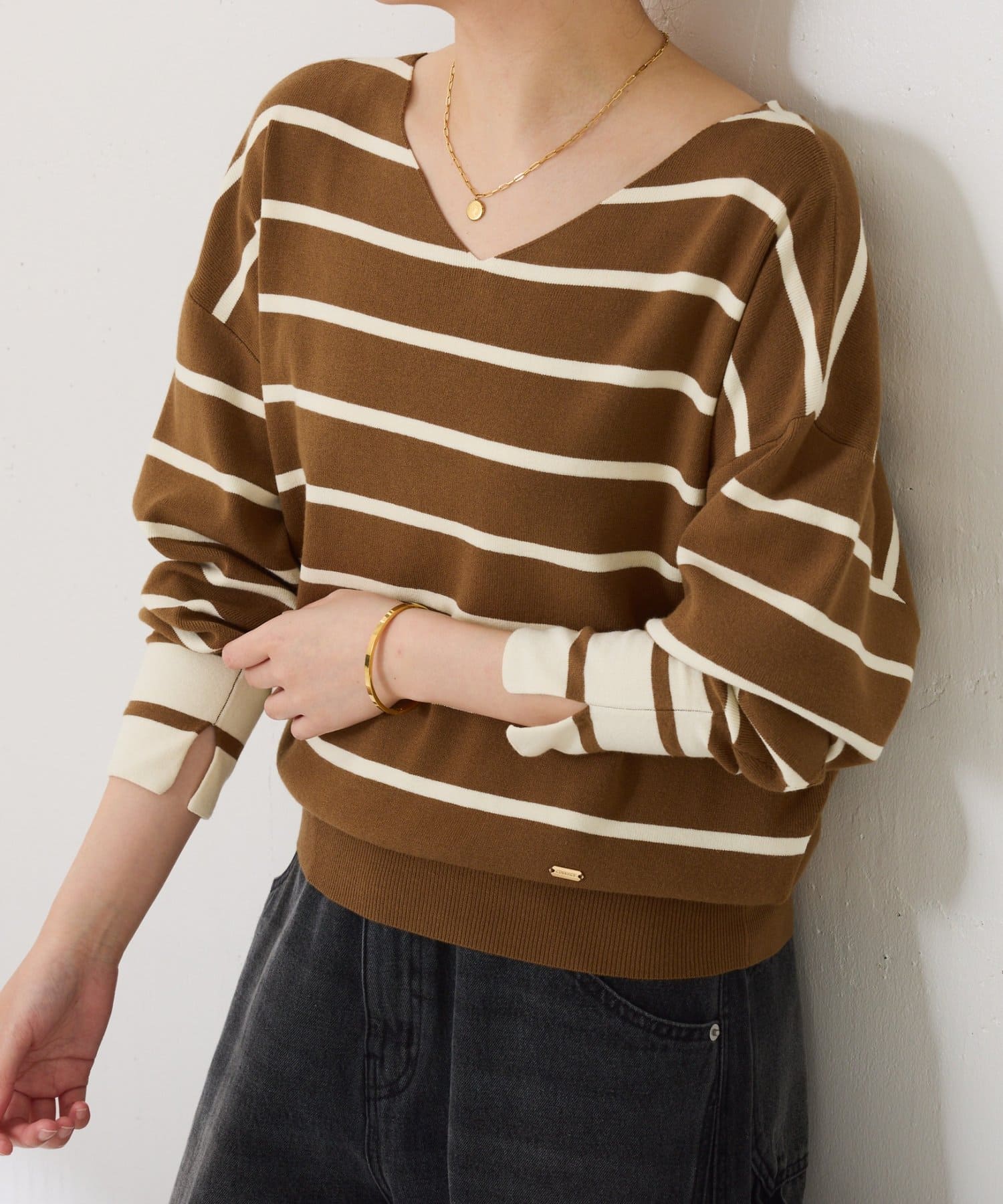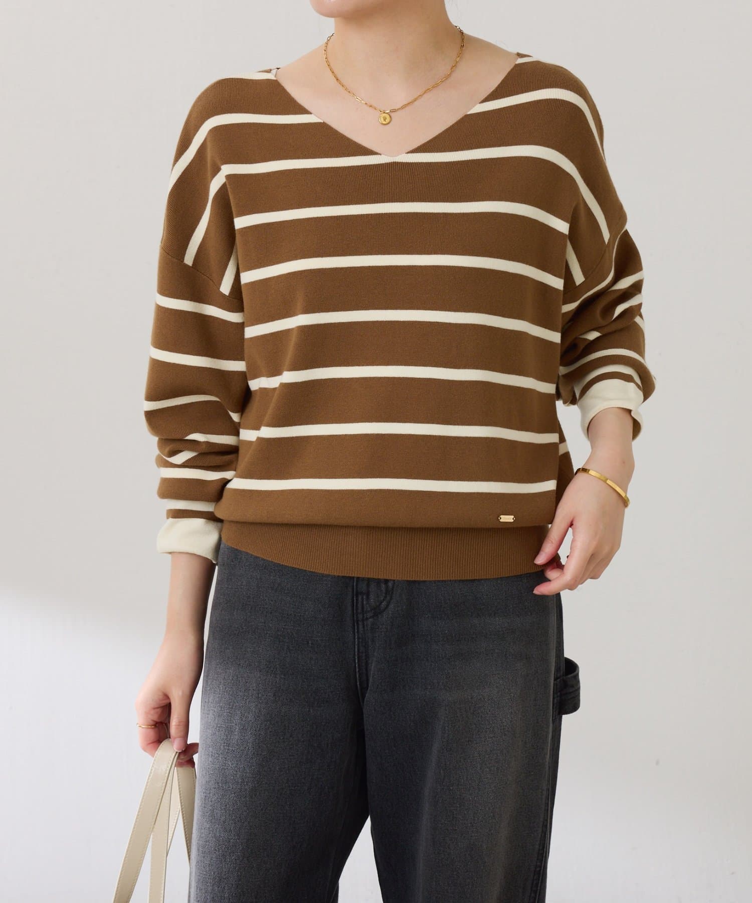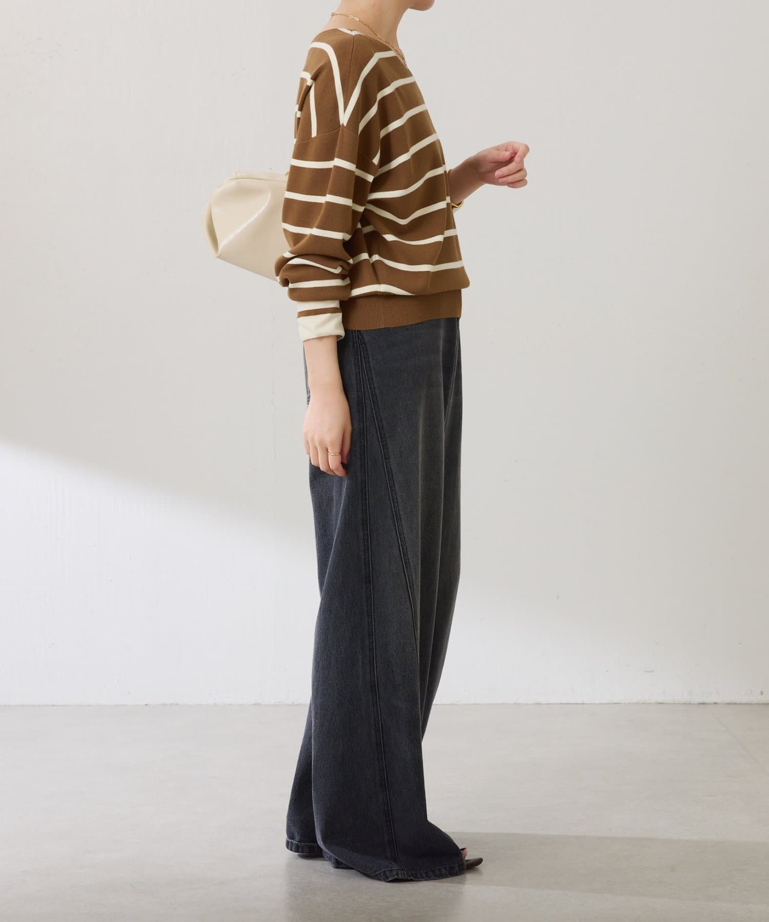 ・浅Vとボートネックの衿ぐりの前後2WAY仕様のドルマンニット。