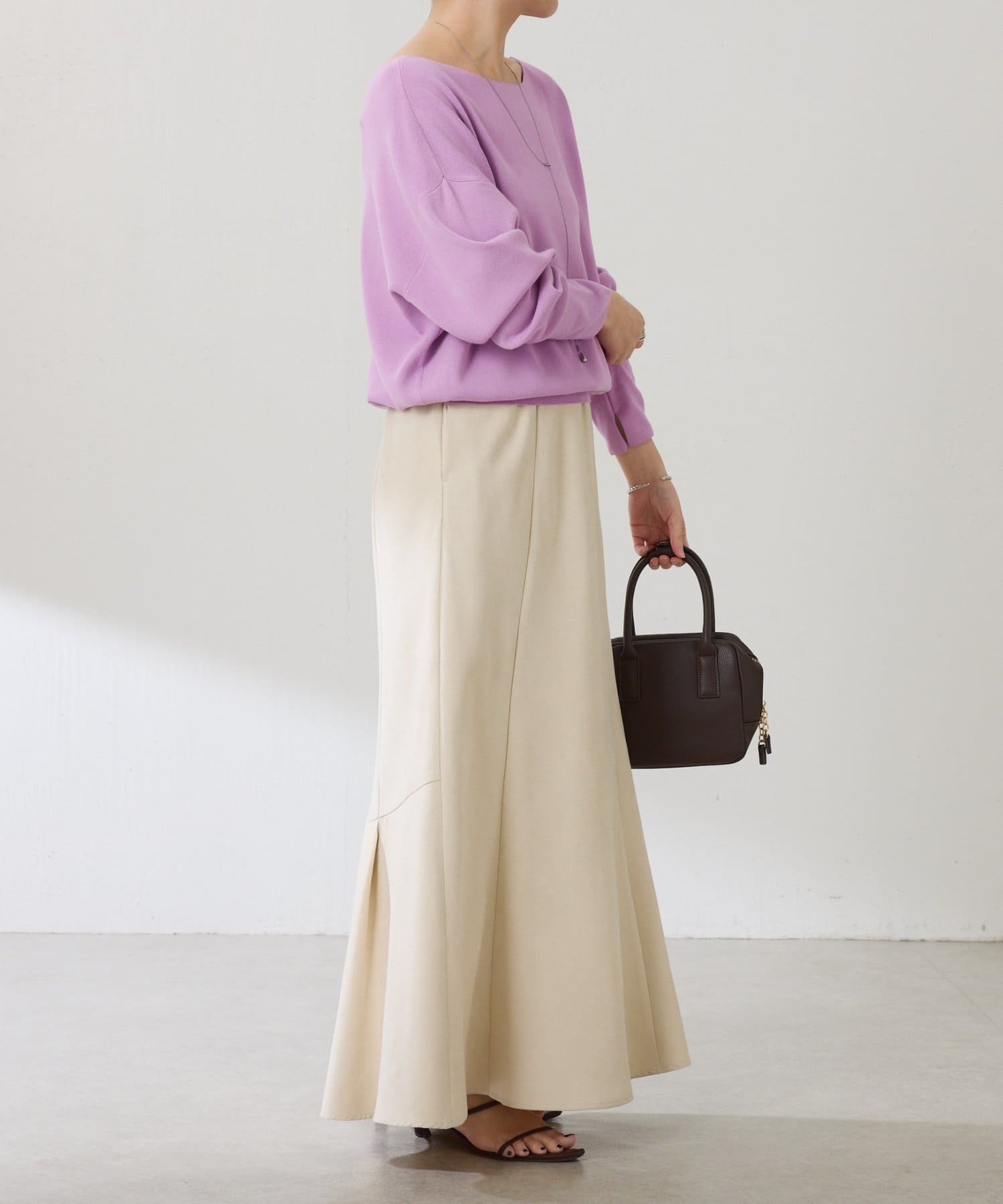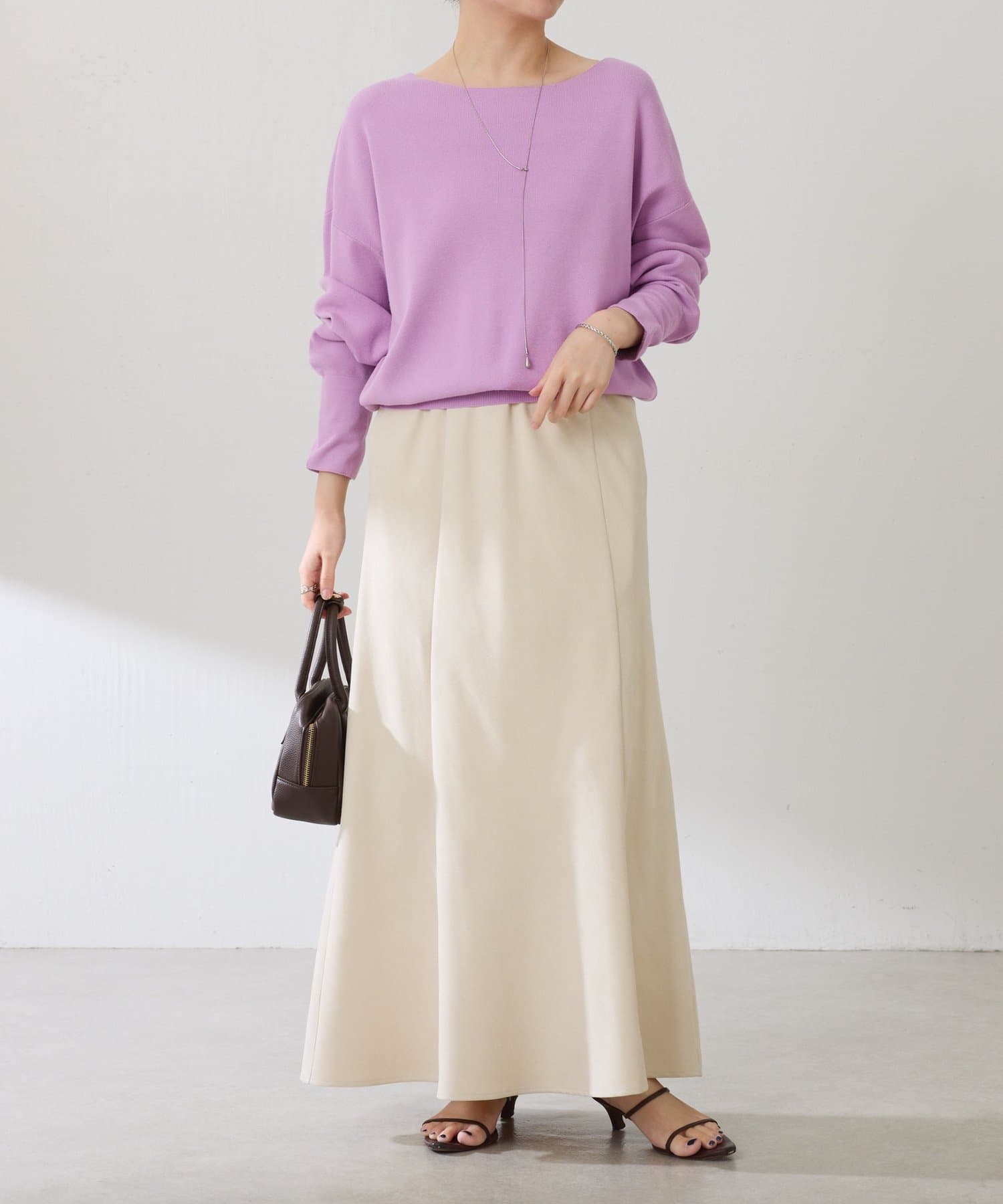スラックスやマーメイドスカートと合わせて通勤やおでかけにも活躍するシンプルながらデザインのあるニットです。