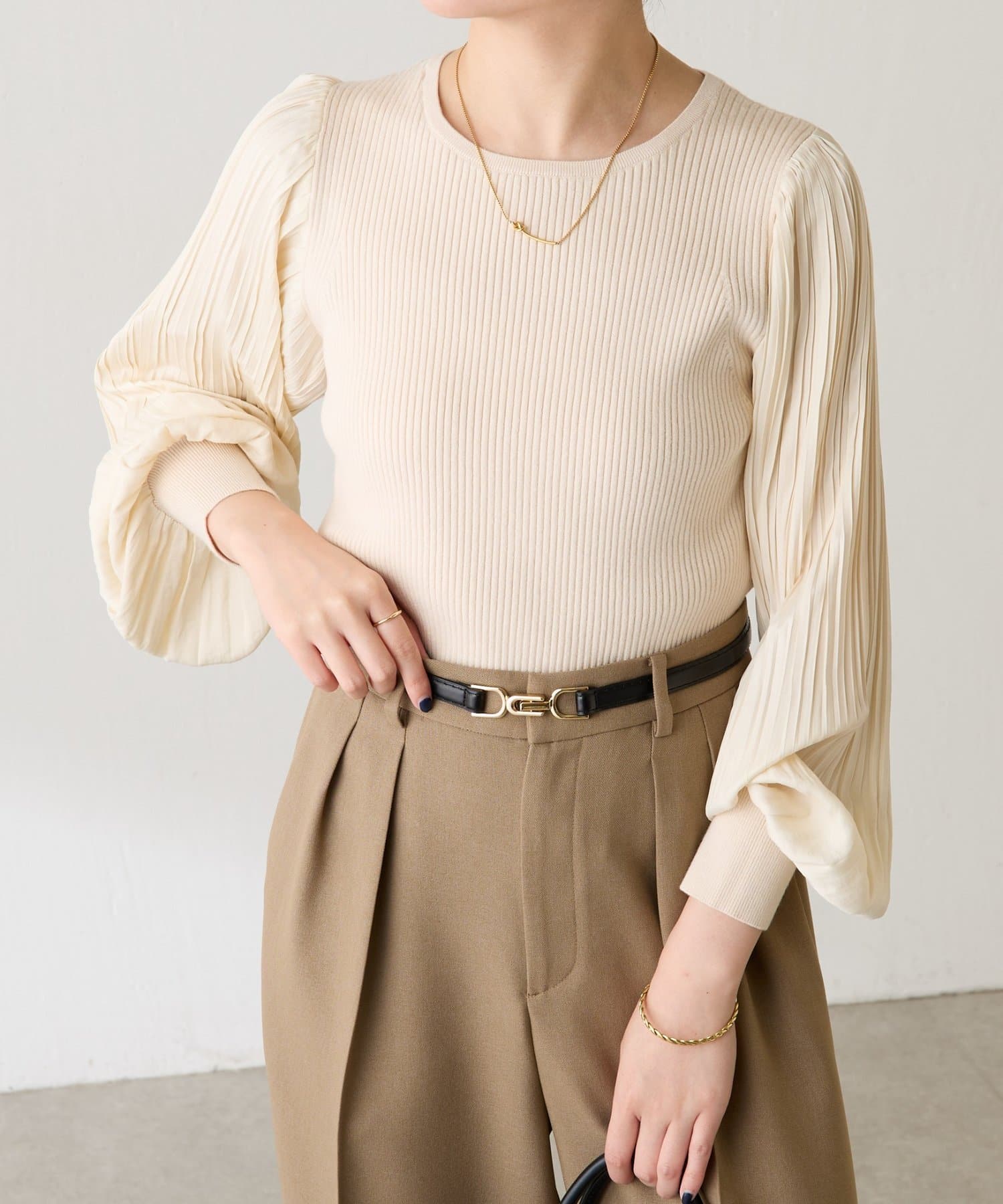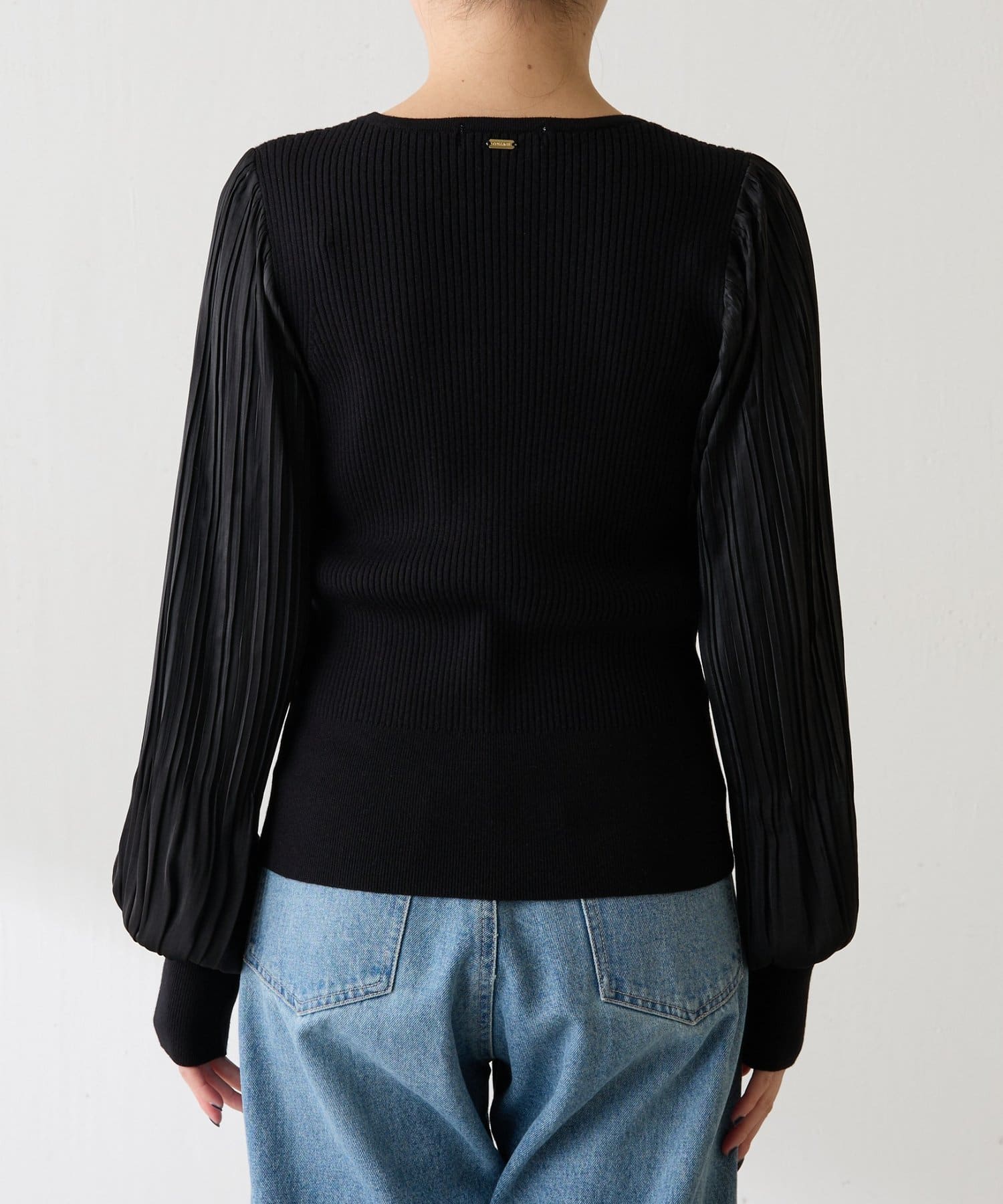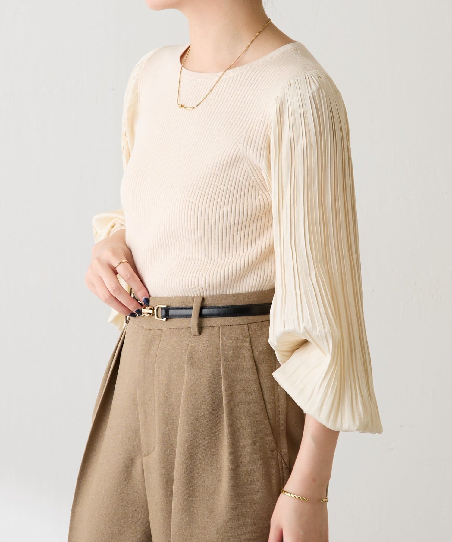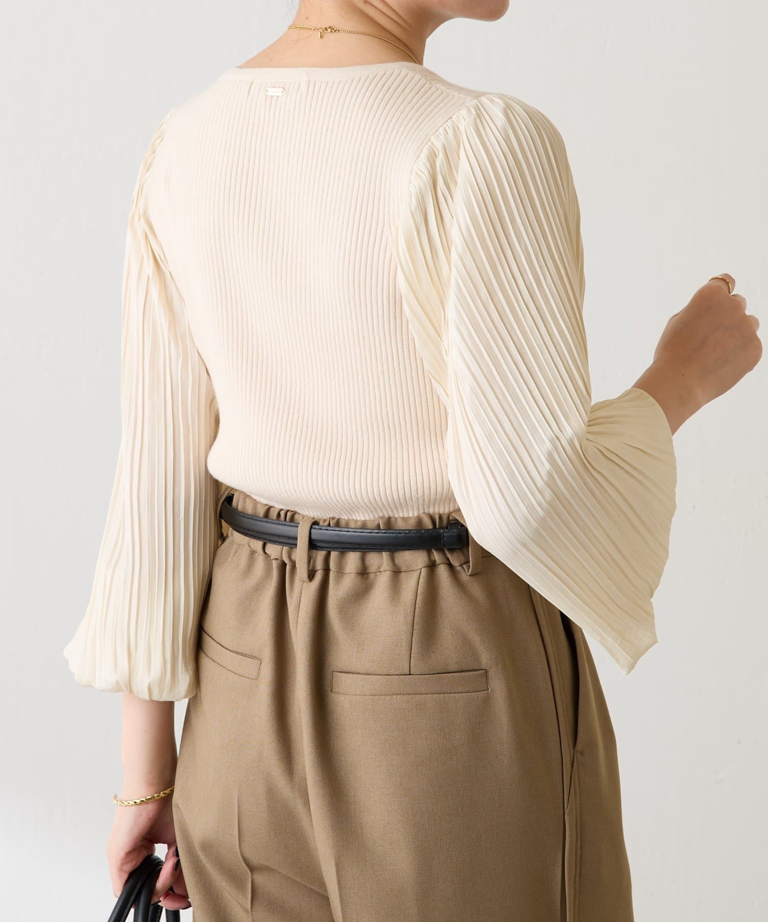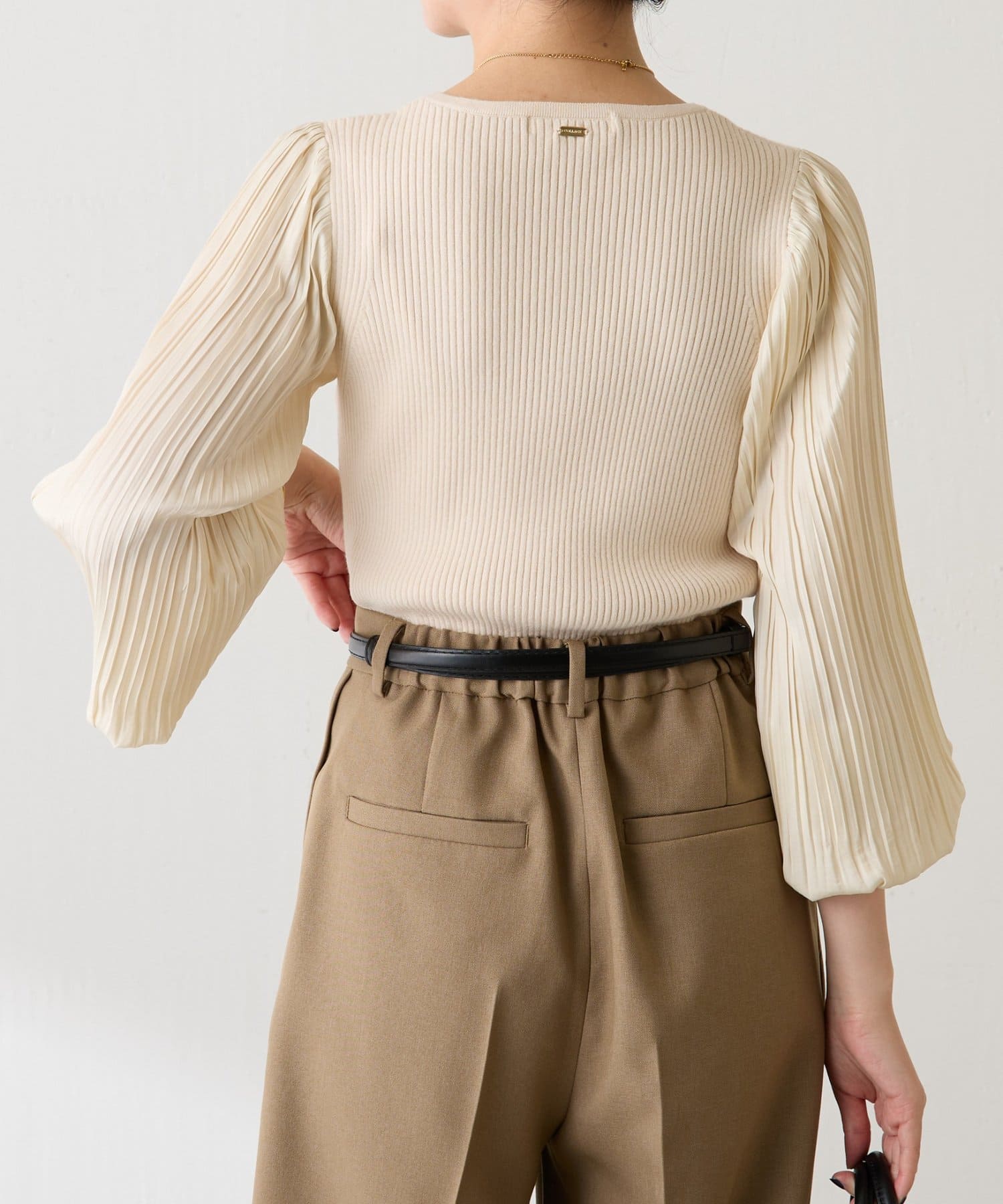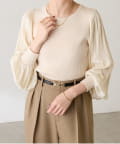 ぽわんとした袖のデザインがポイントのドッキングニット
