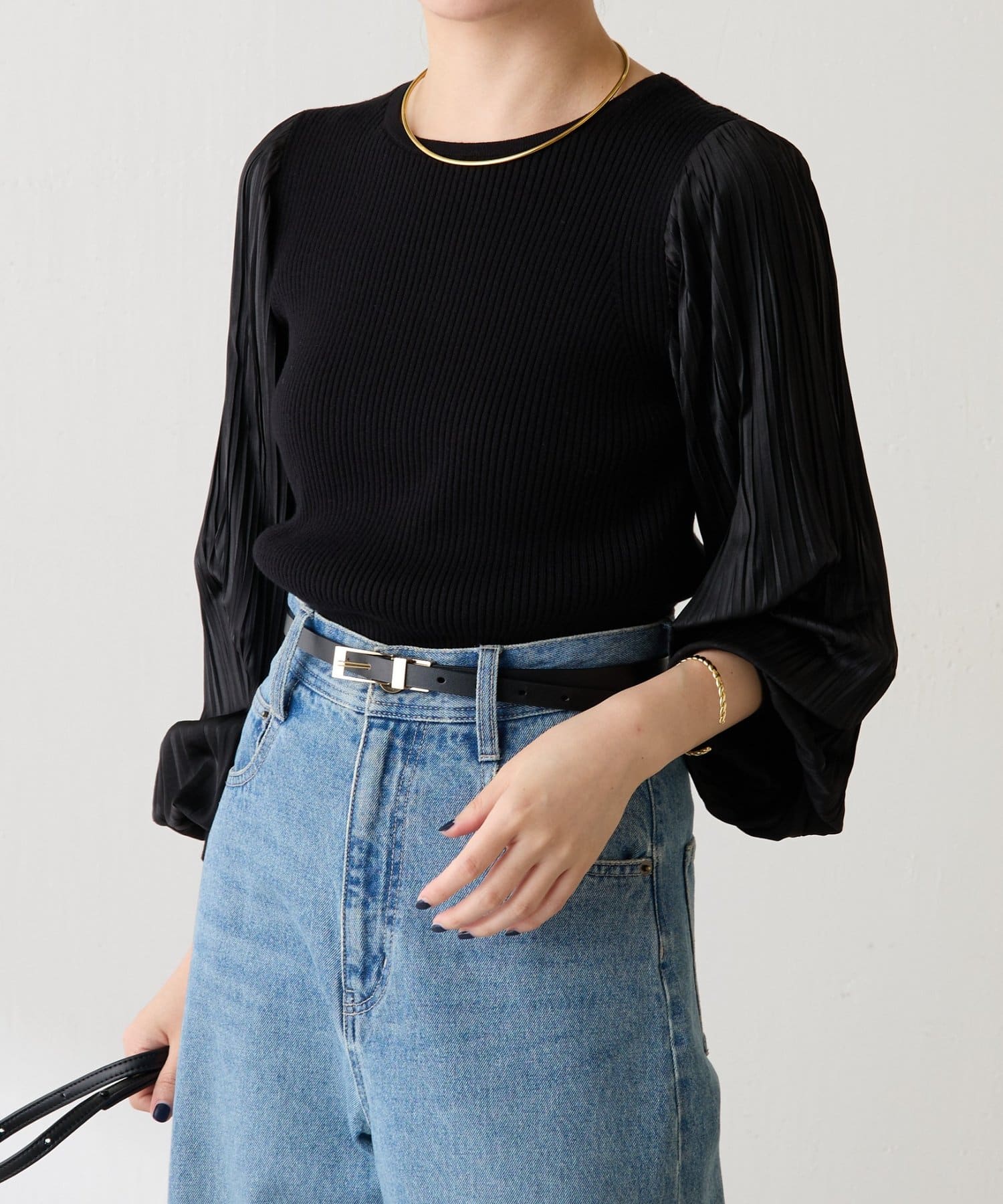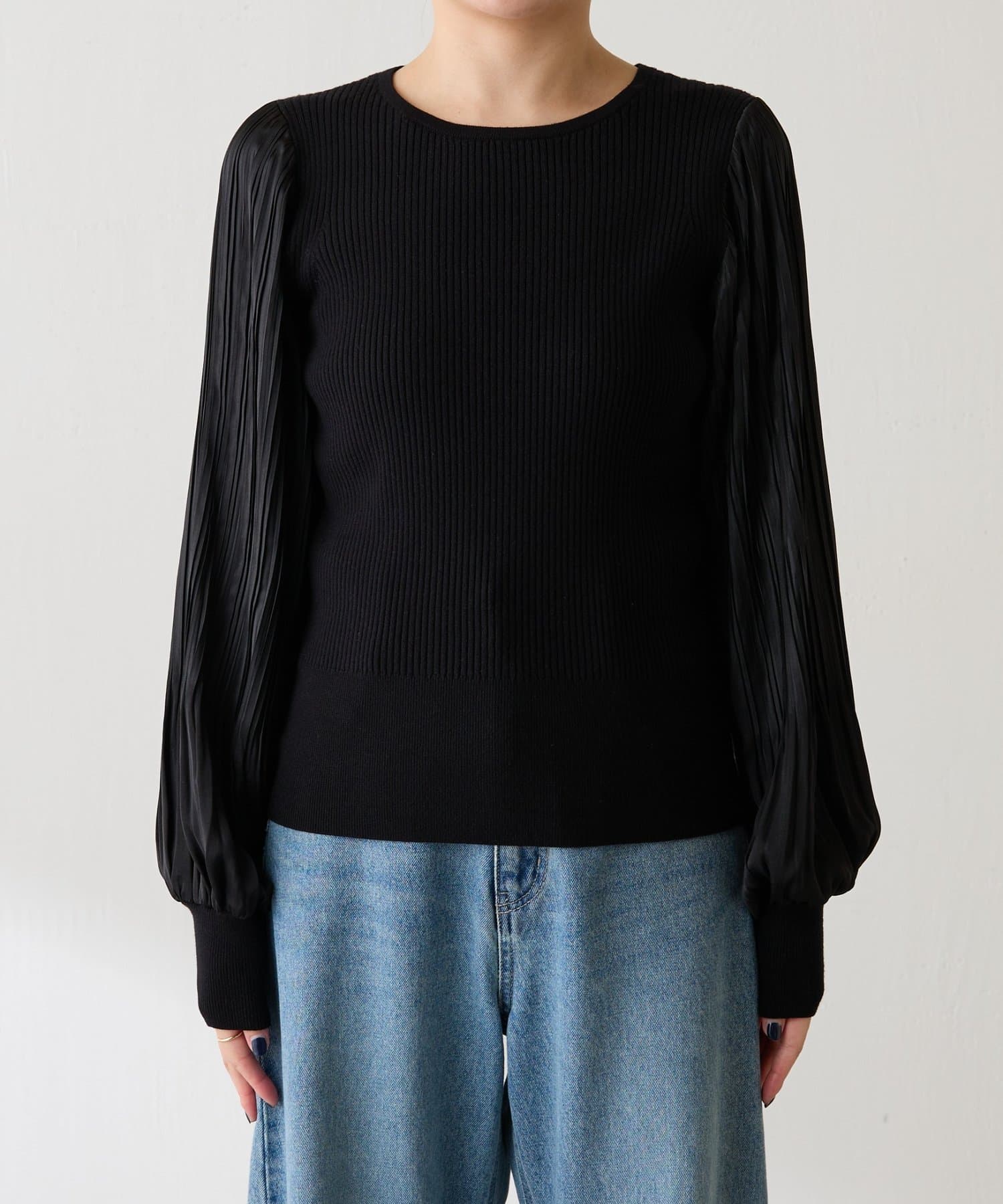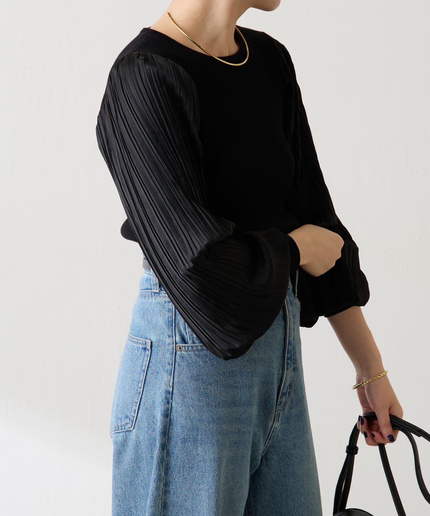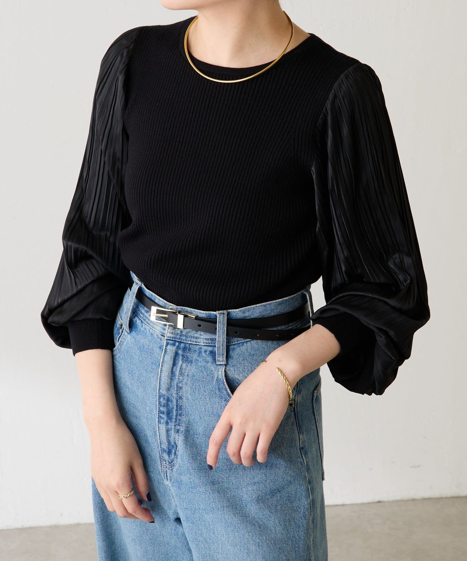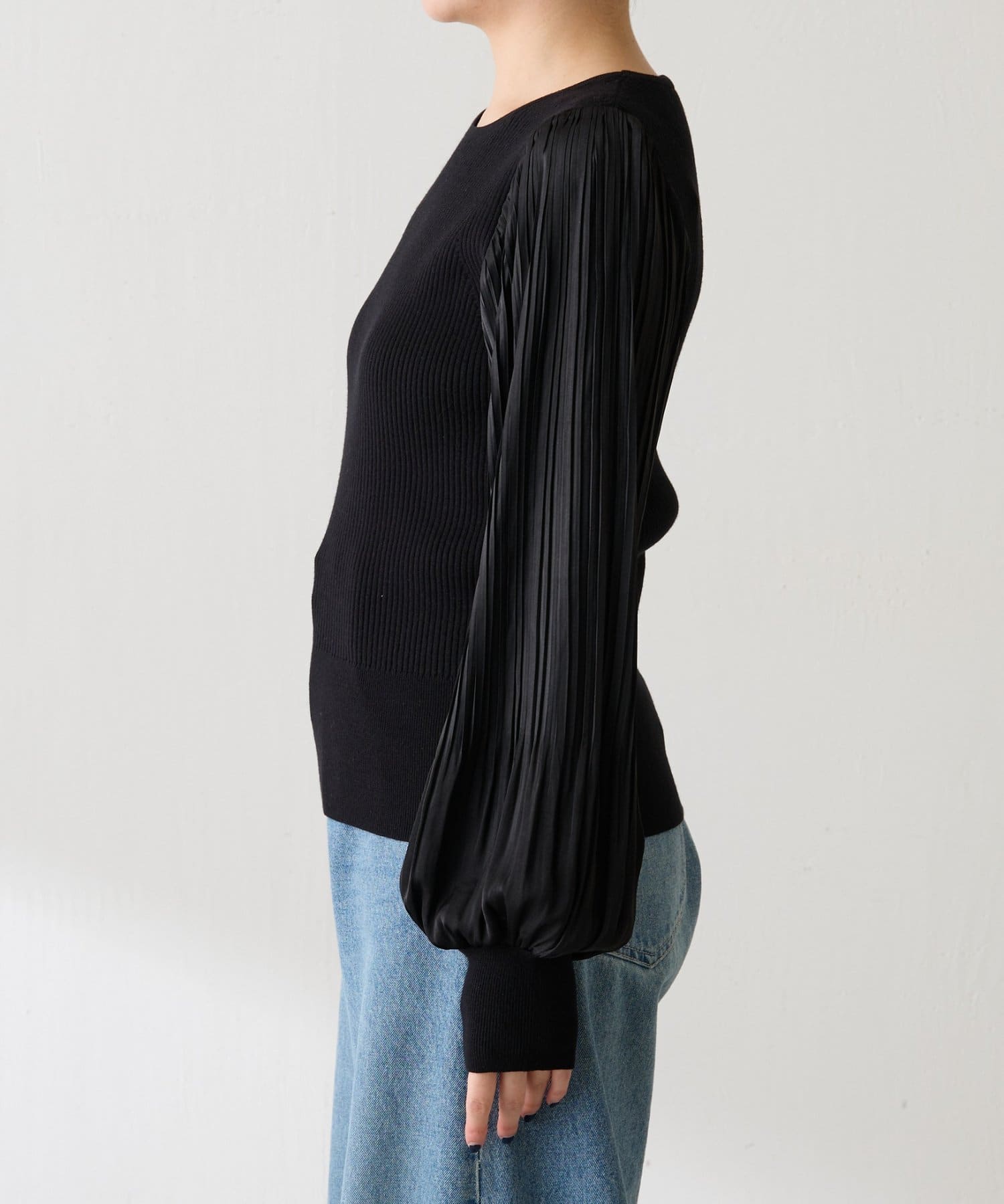 ・プリーツ加工をしたサテン生地とリブニットのドッキングニットです。