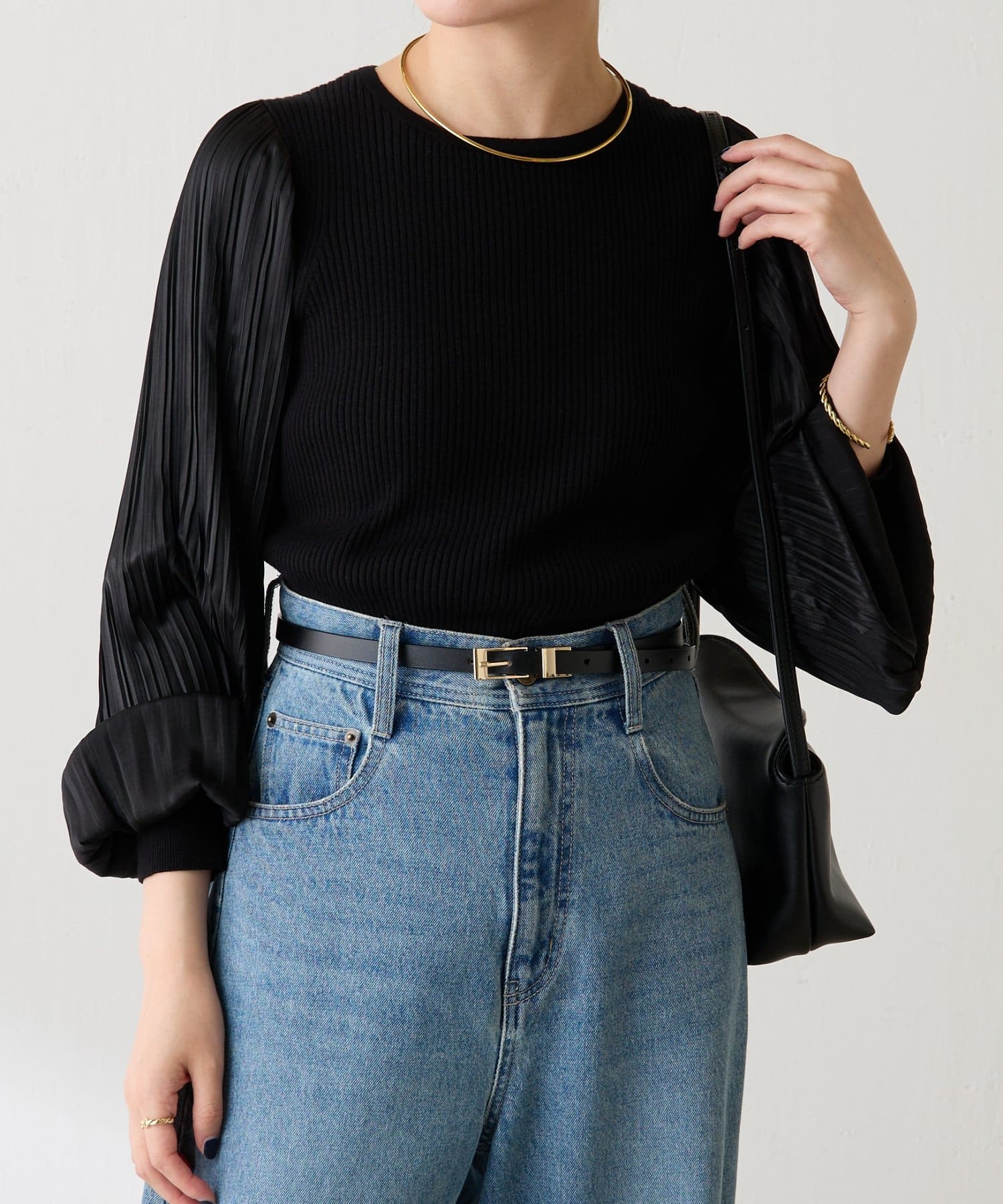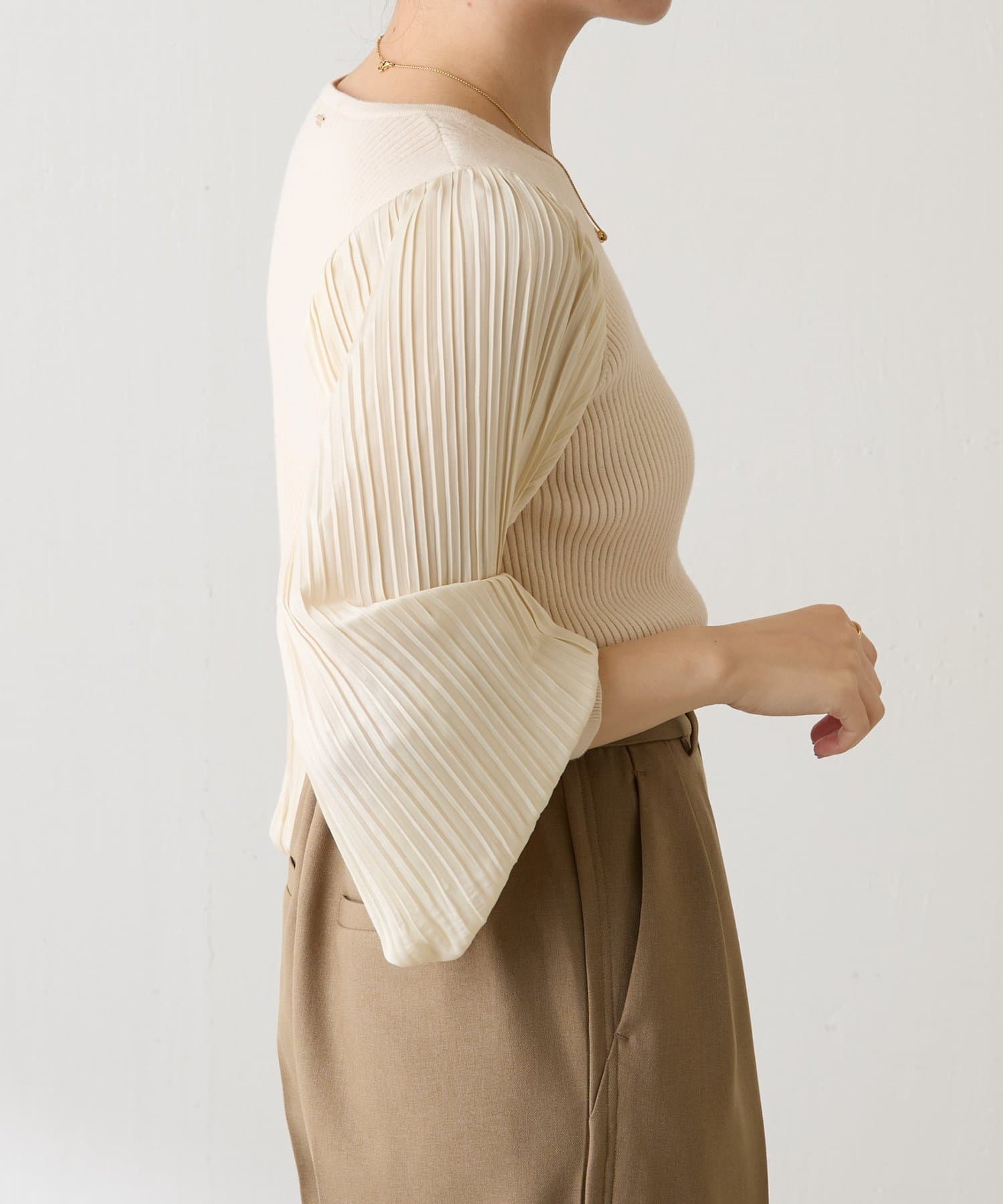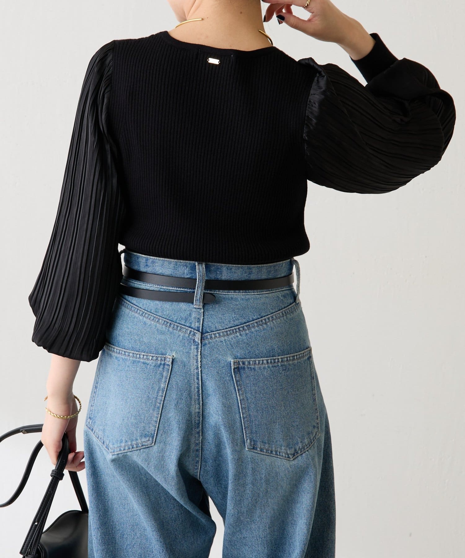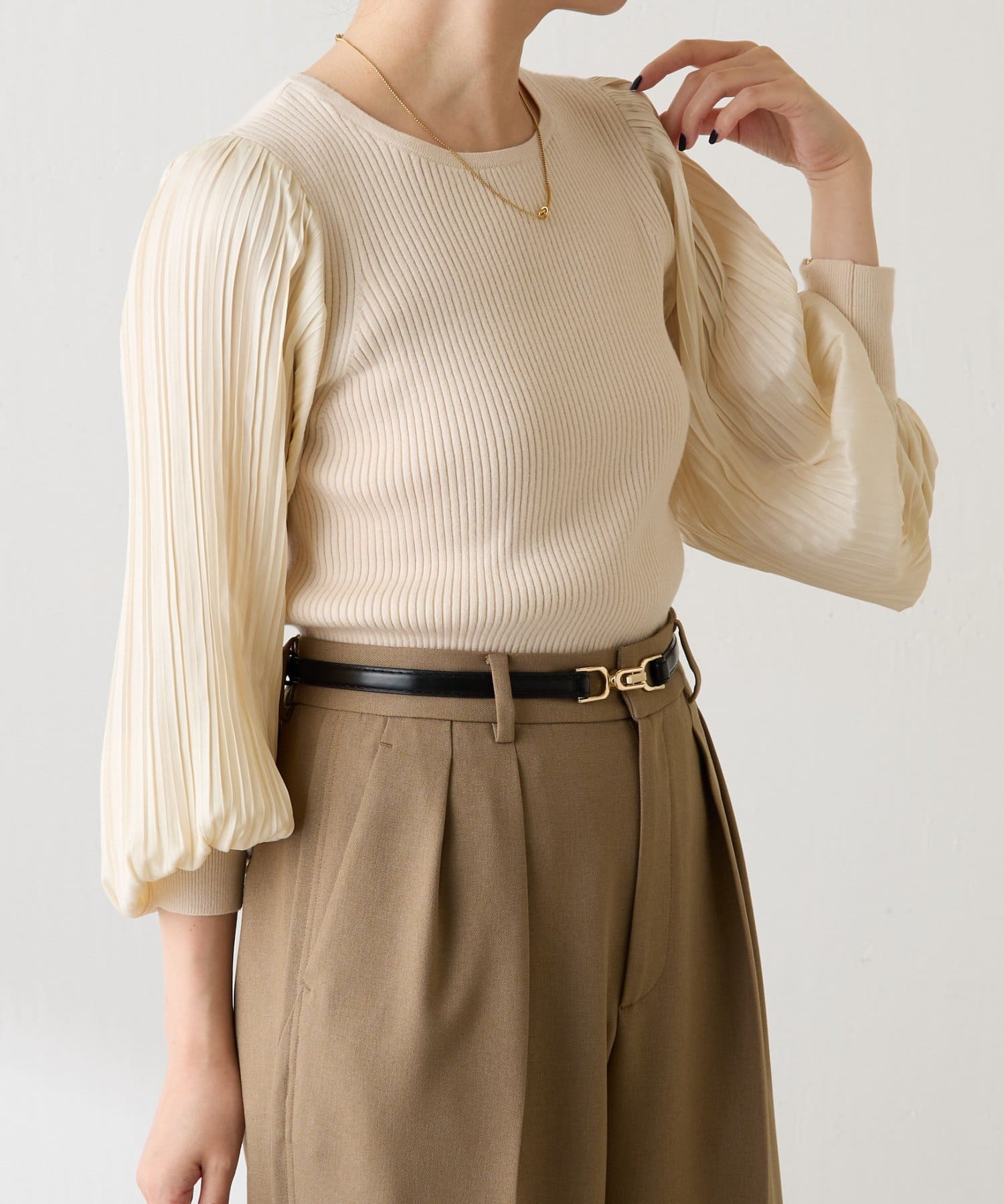 ・プリーツ加工をしたサテン生地とリブニットのドッキングニットです。