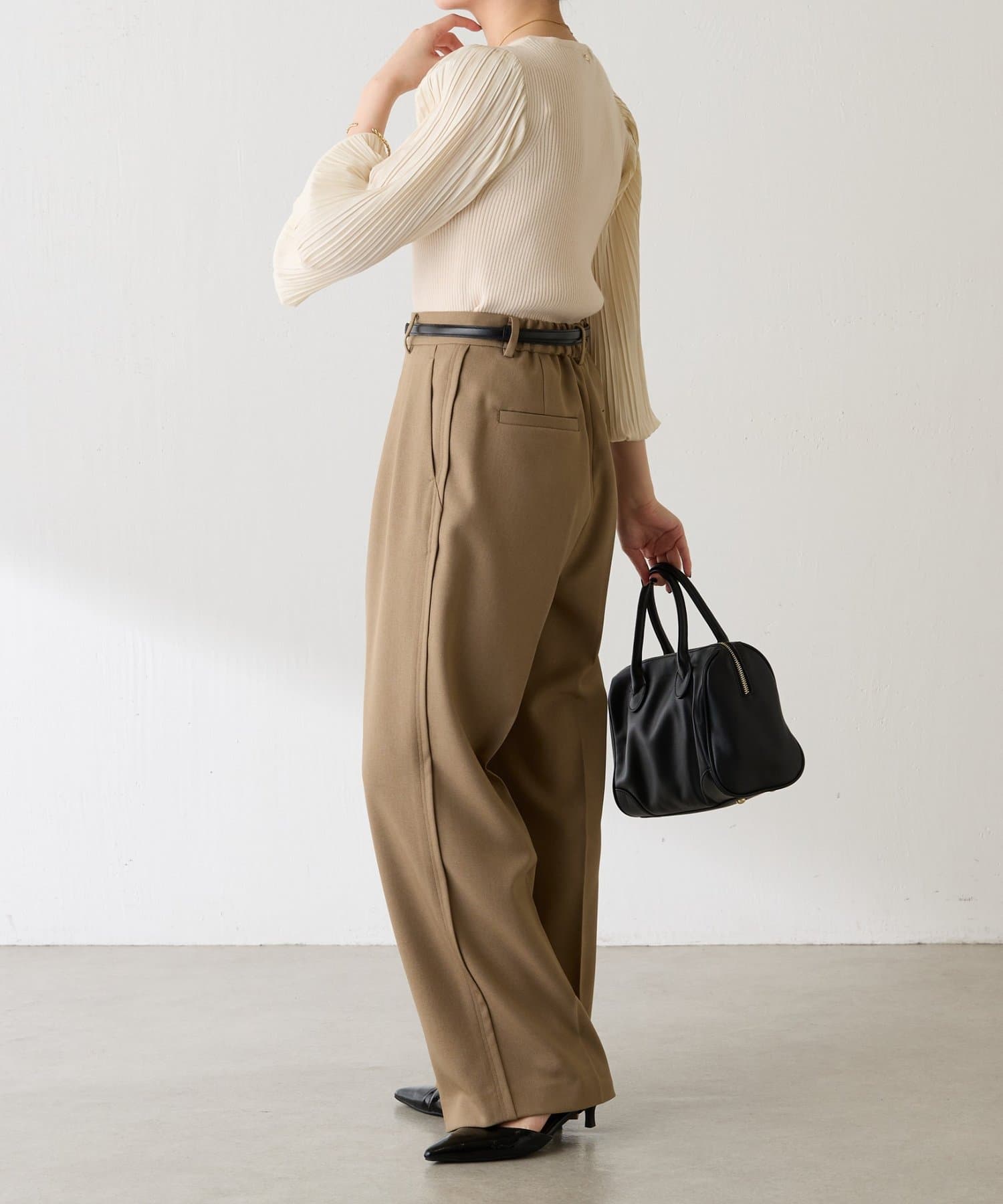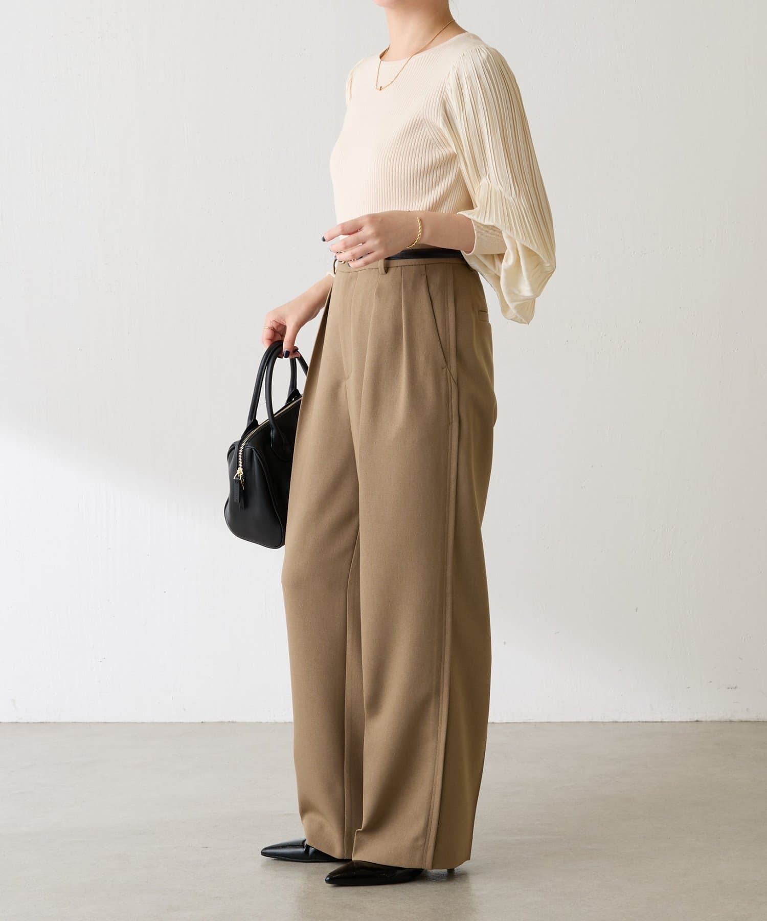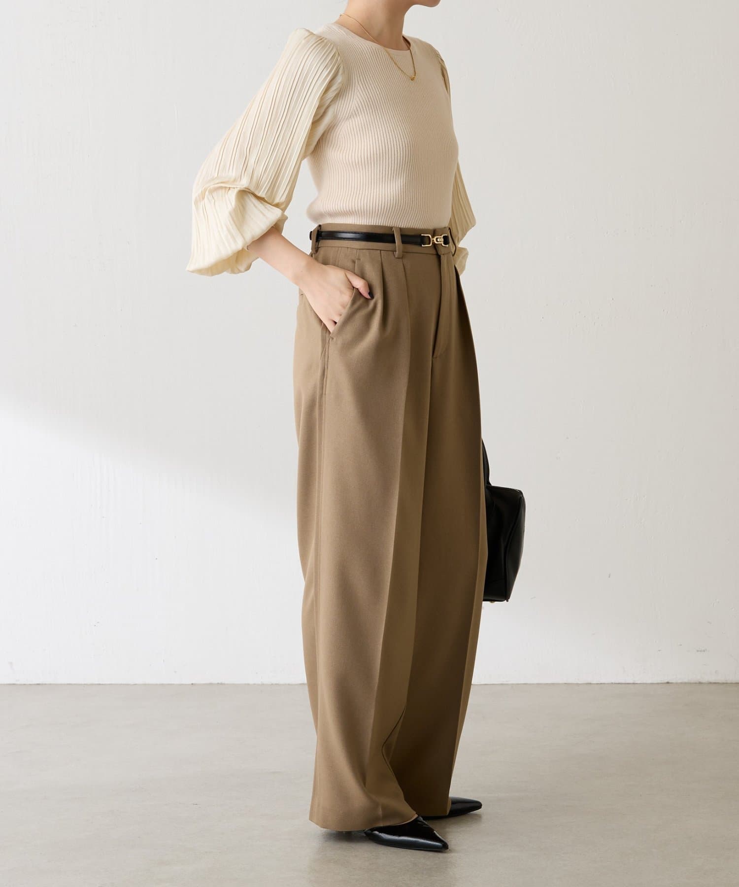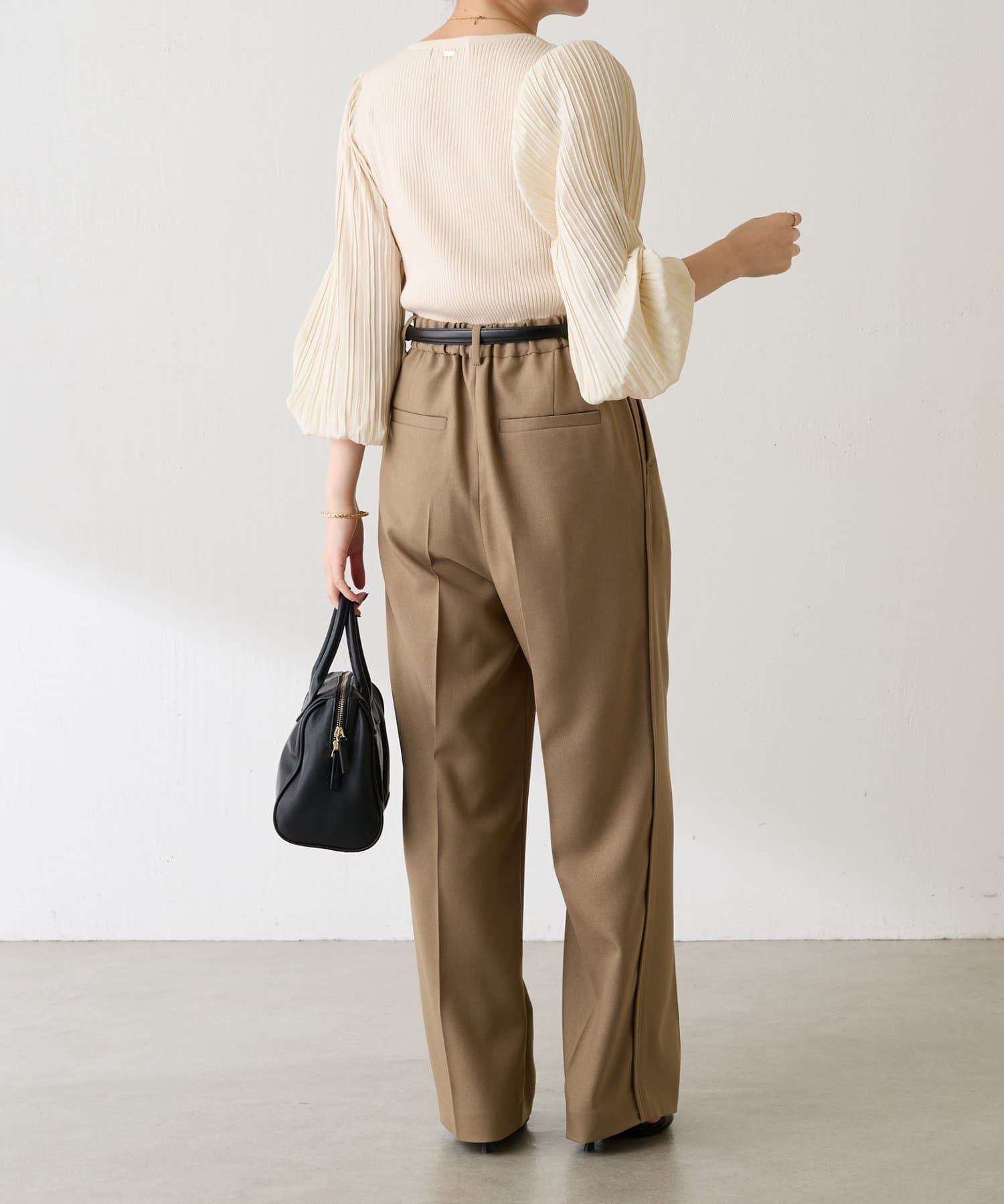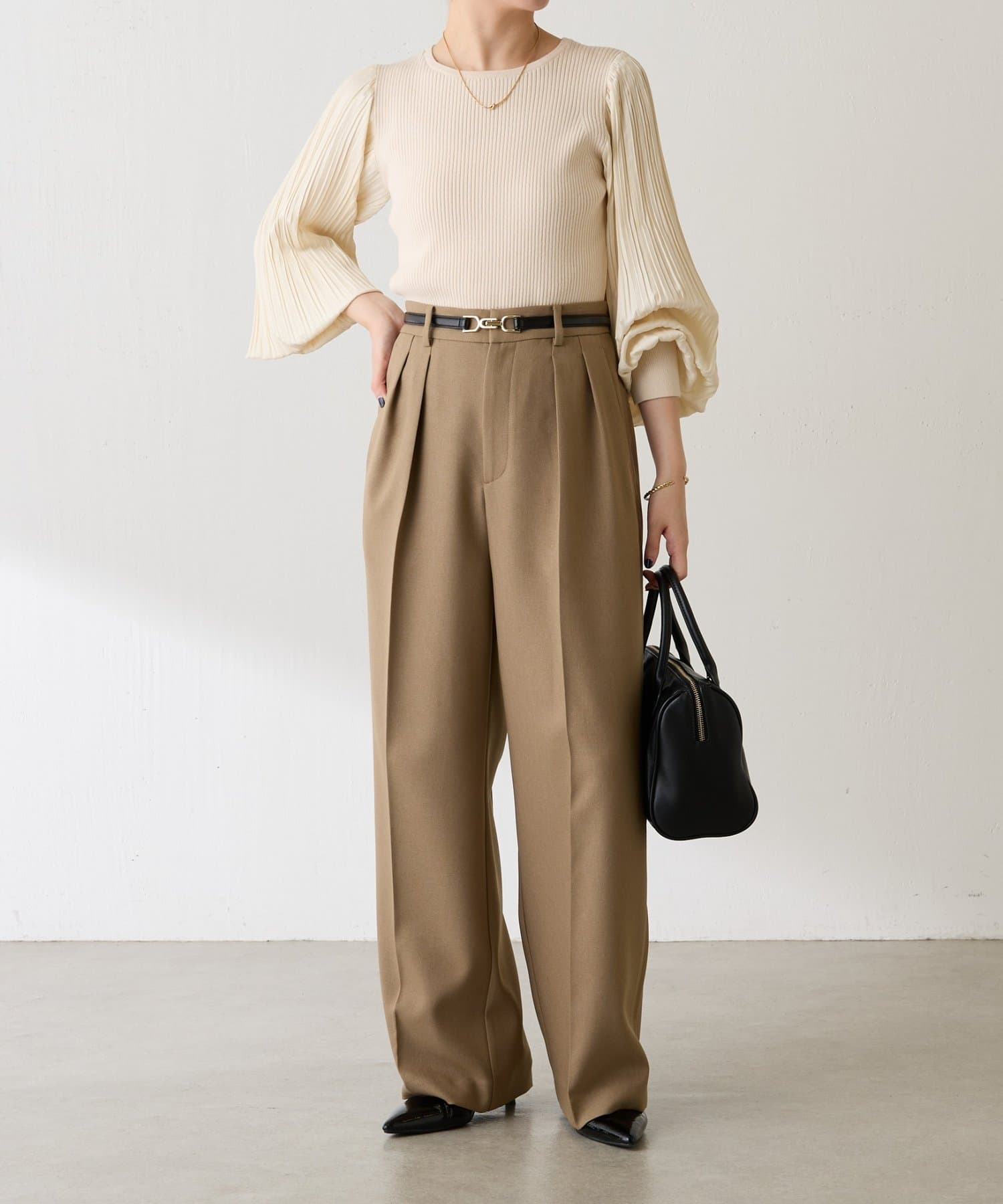 ・プリーツ加工をしたサテン生地とリブニットのドッキングニットです。