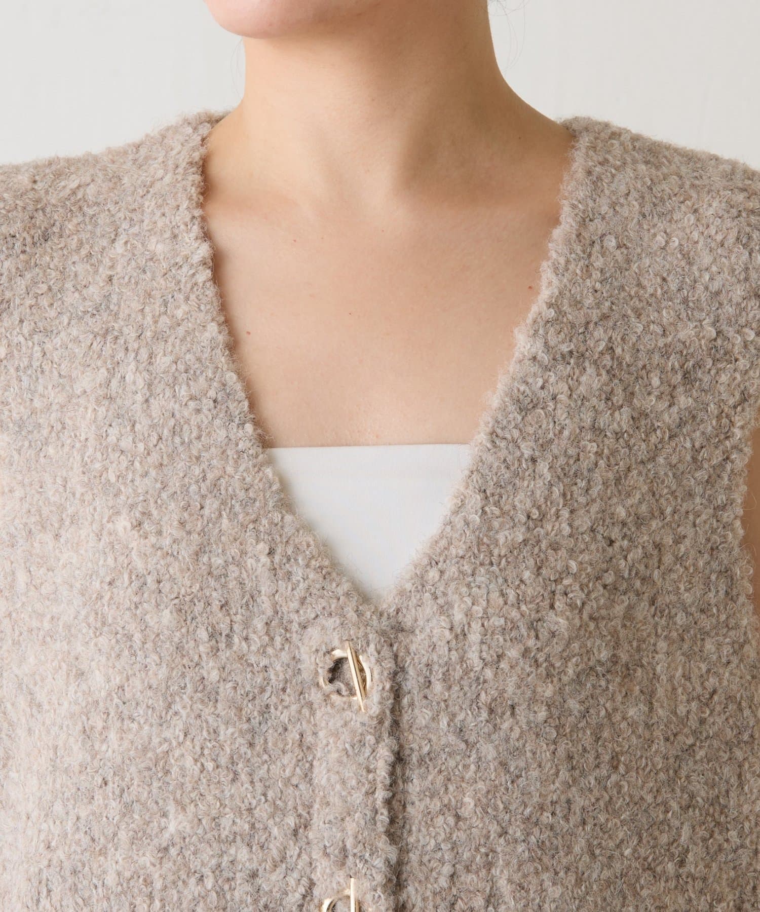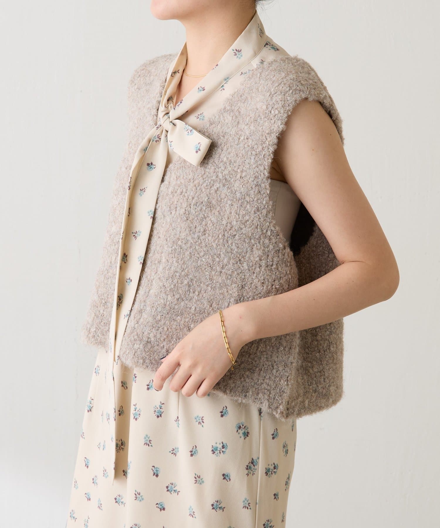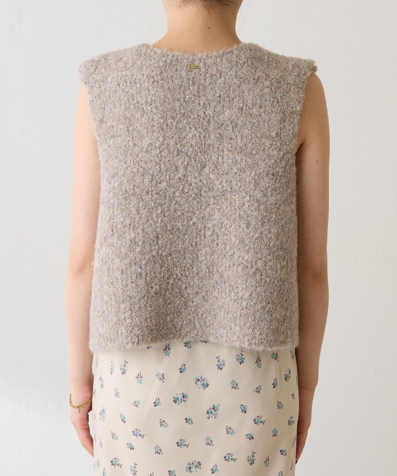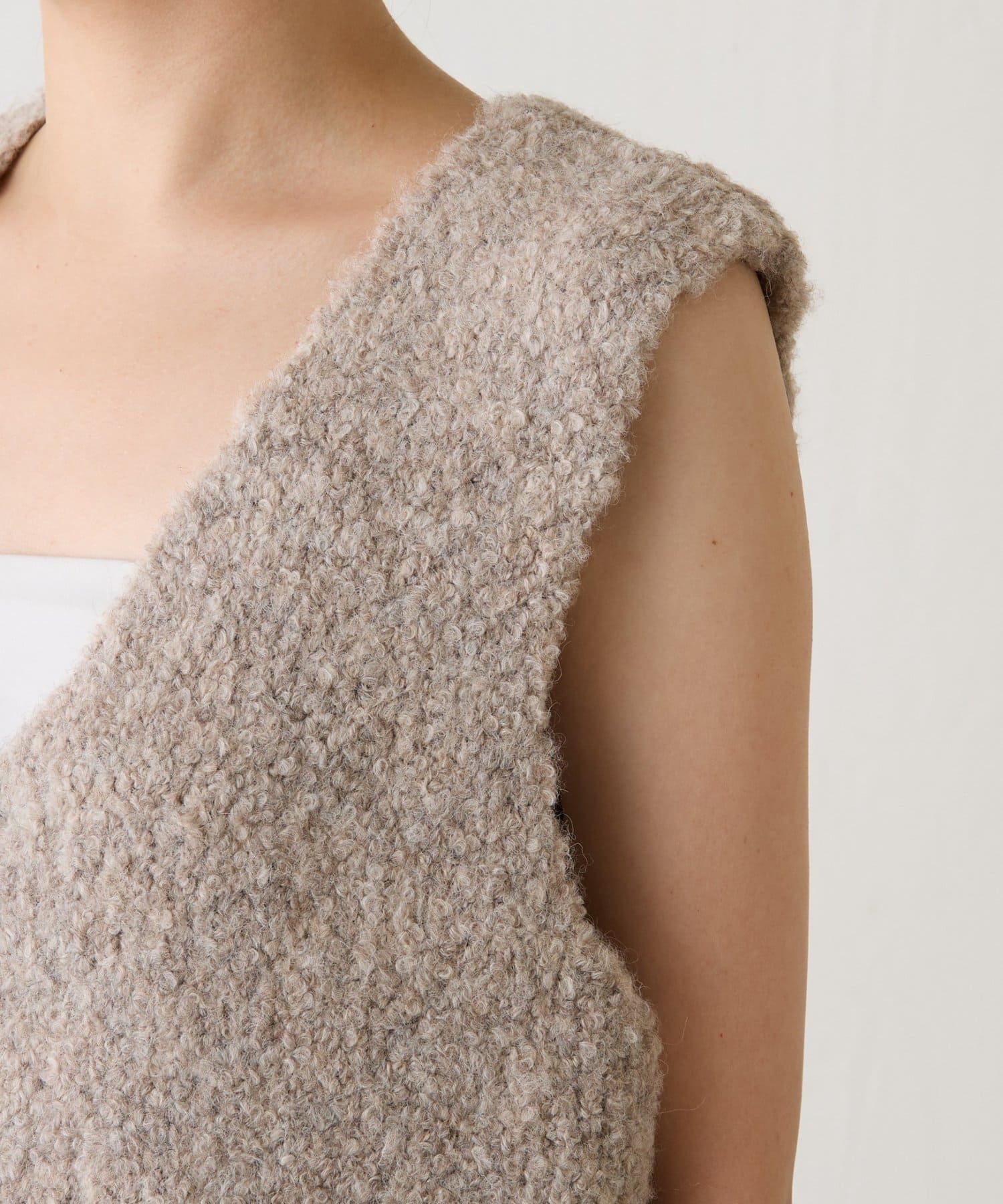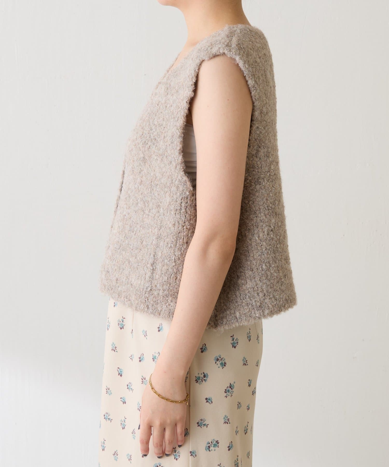 ・もこもことした風合いと柔らかい肌触りが魅力のブークレニットを使用したベスト。