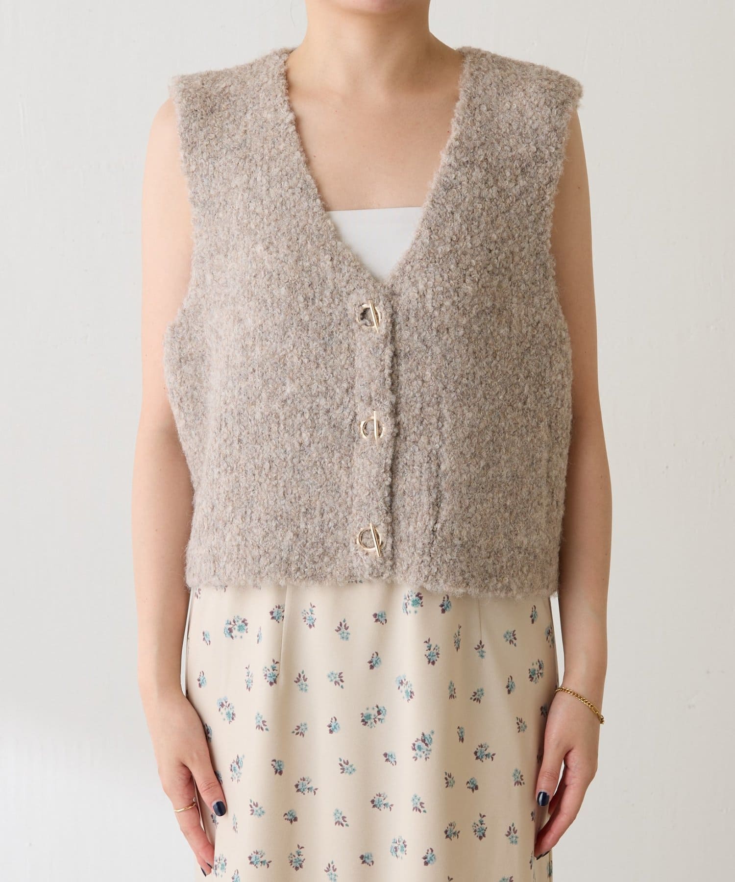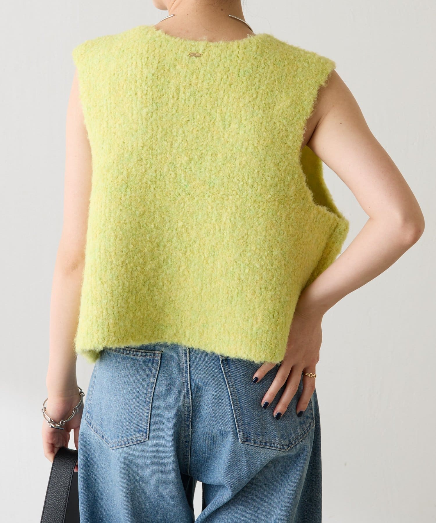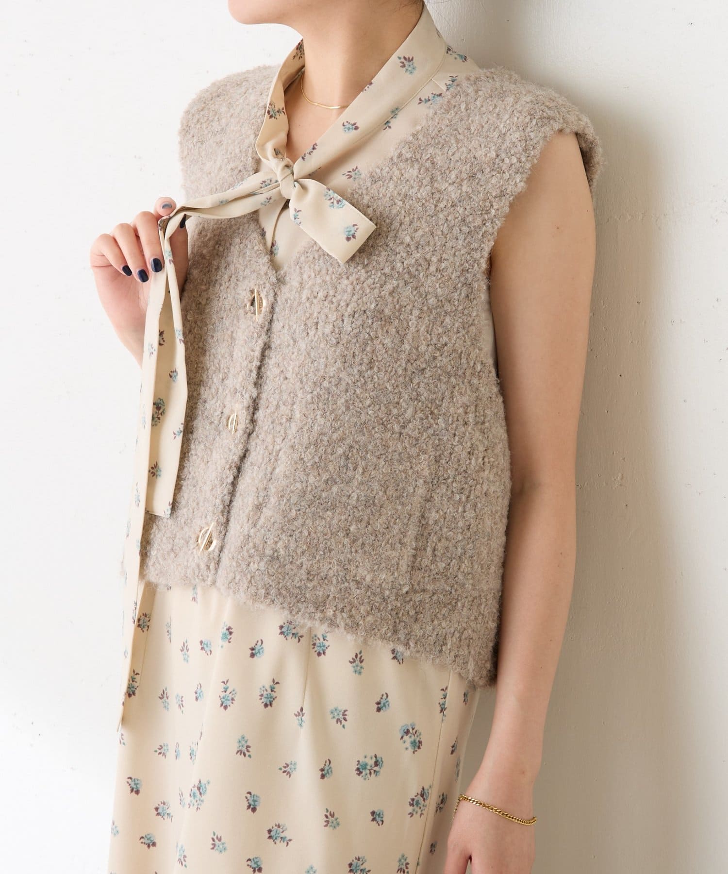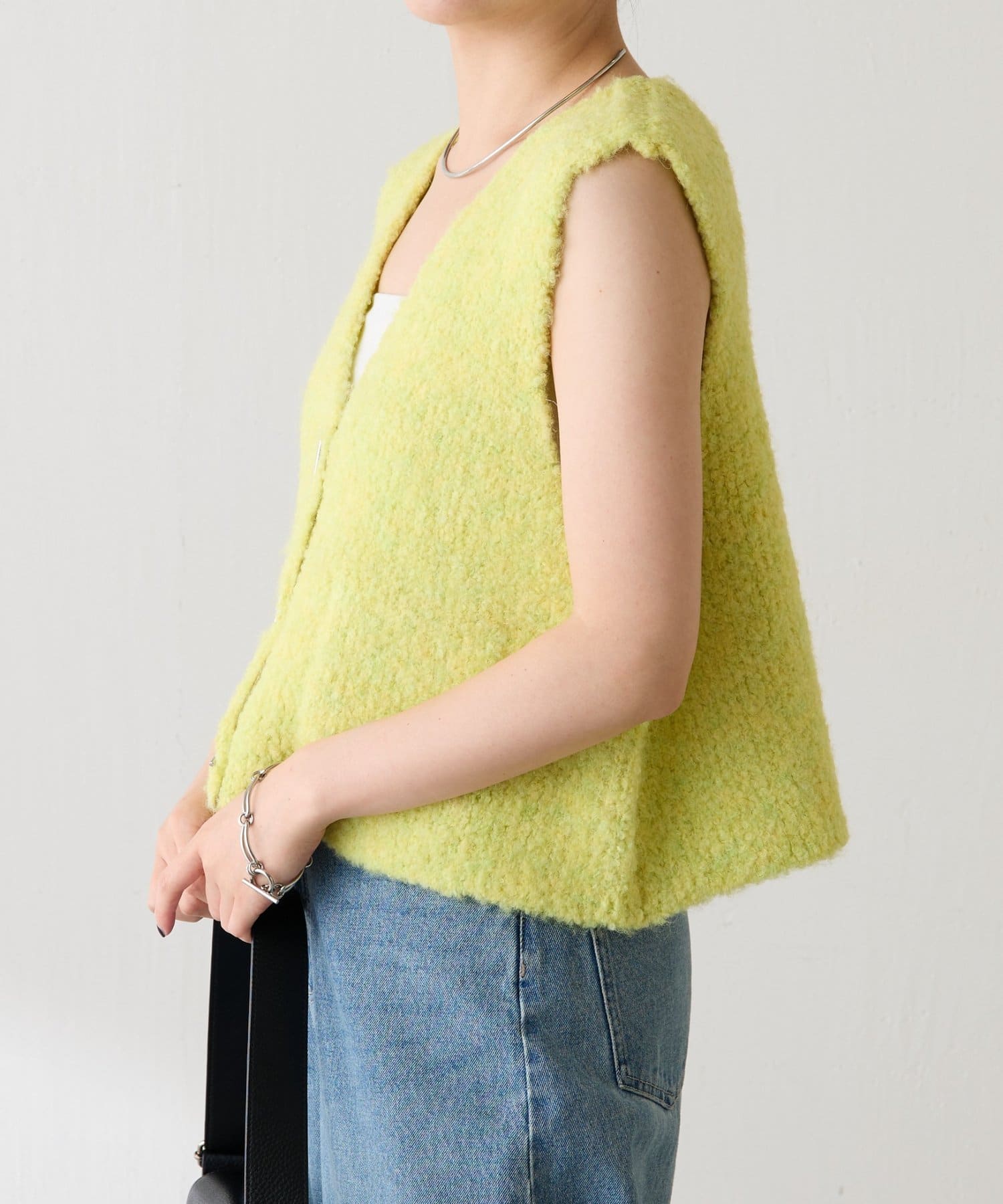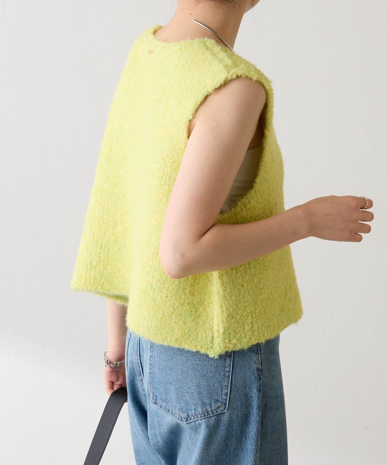 ・もこもことした風合いと柔らかい肌触りが魅力のブークレニットを使用したベスト。