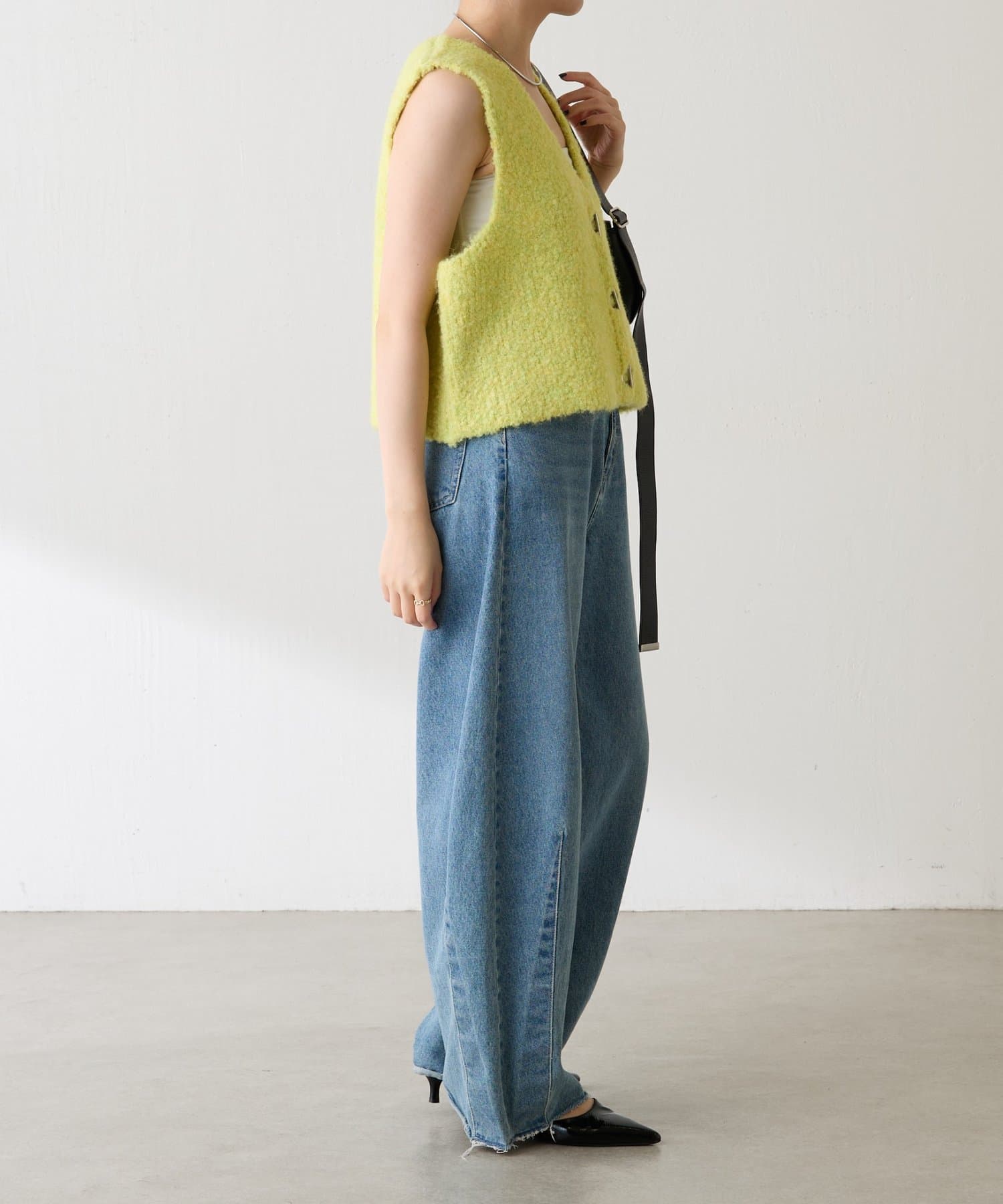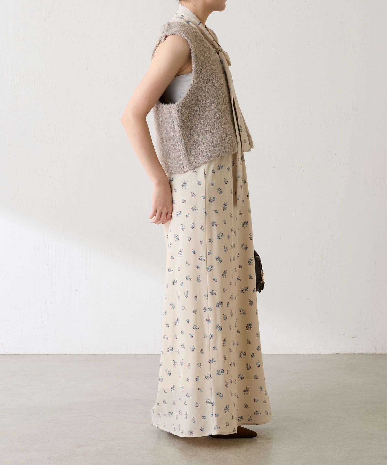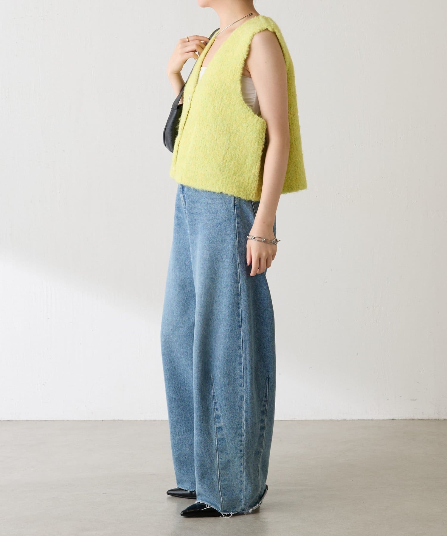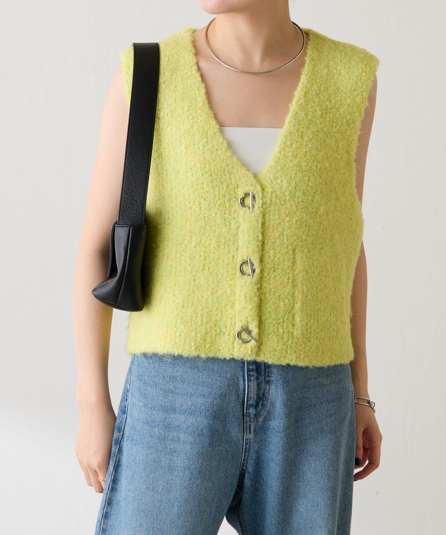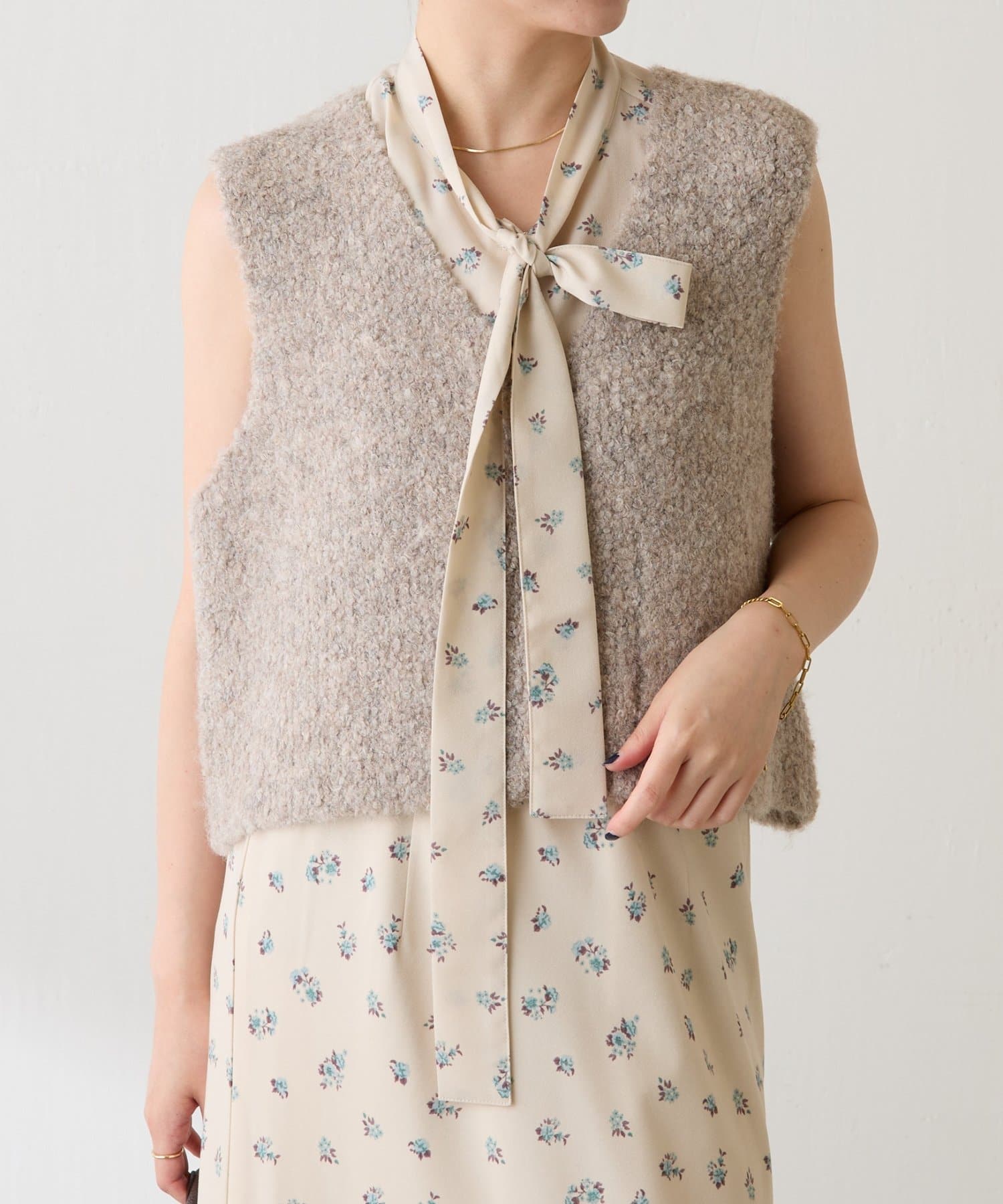・もこもことした風合いと柔らかい肌触りが魅力のブークレニットを使用したベスト。