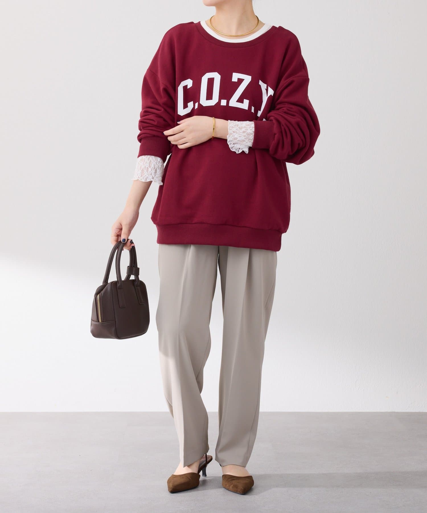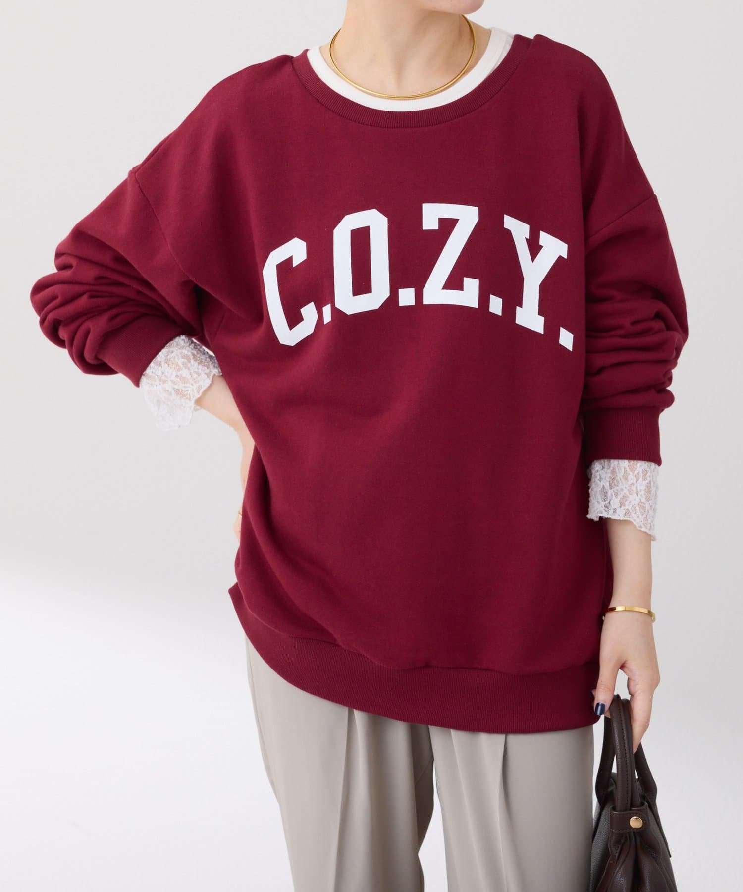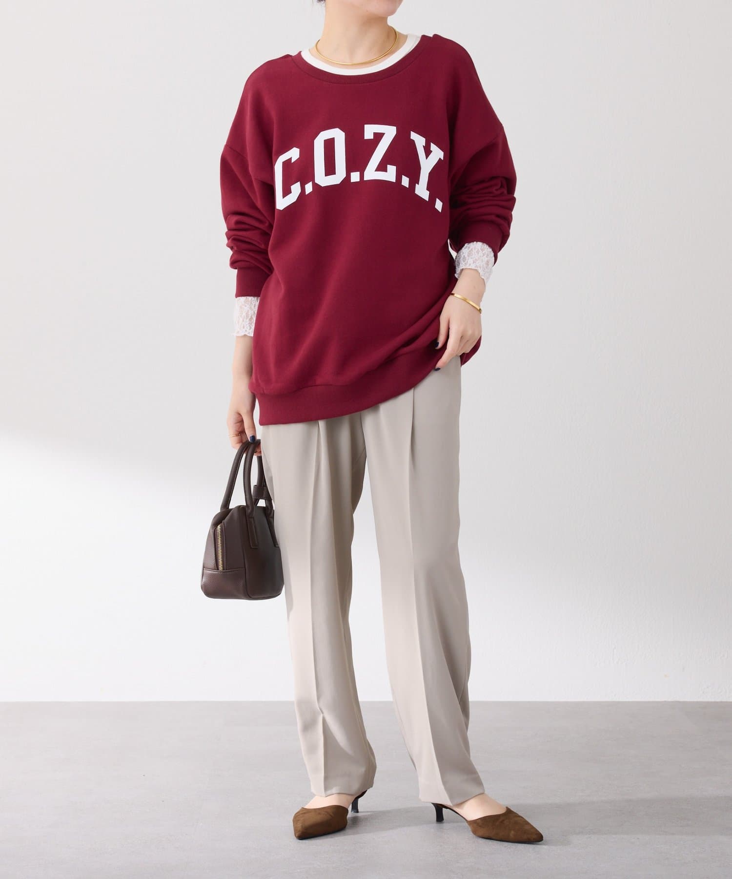 ・クラシックな雰囲気のカレッジロゴが派手過ぎず、大人の外しアイテムにぴったりです◎『COZY』=居心地の良い