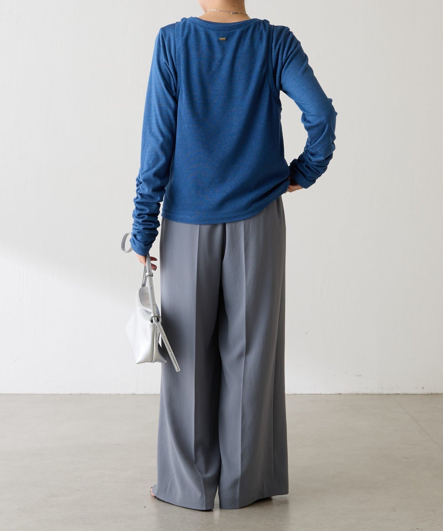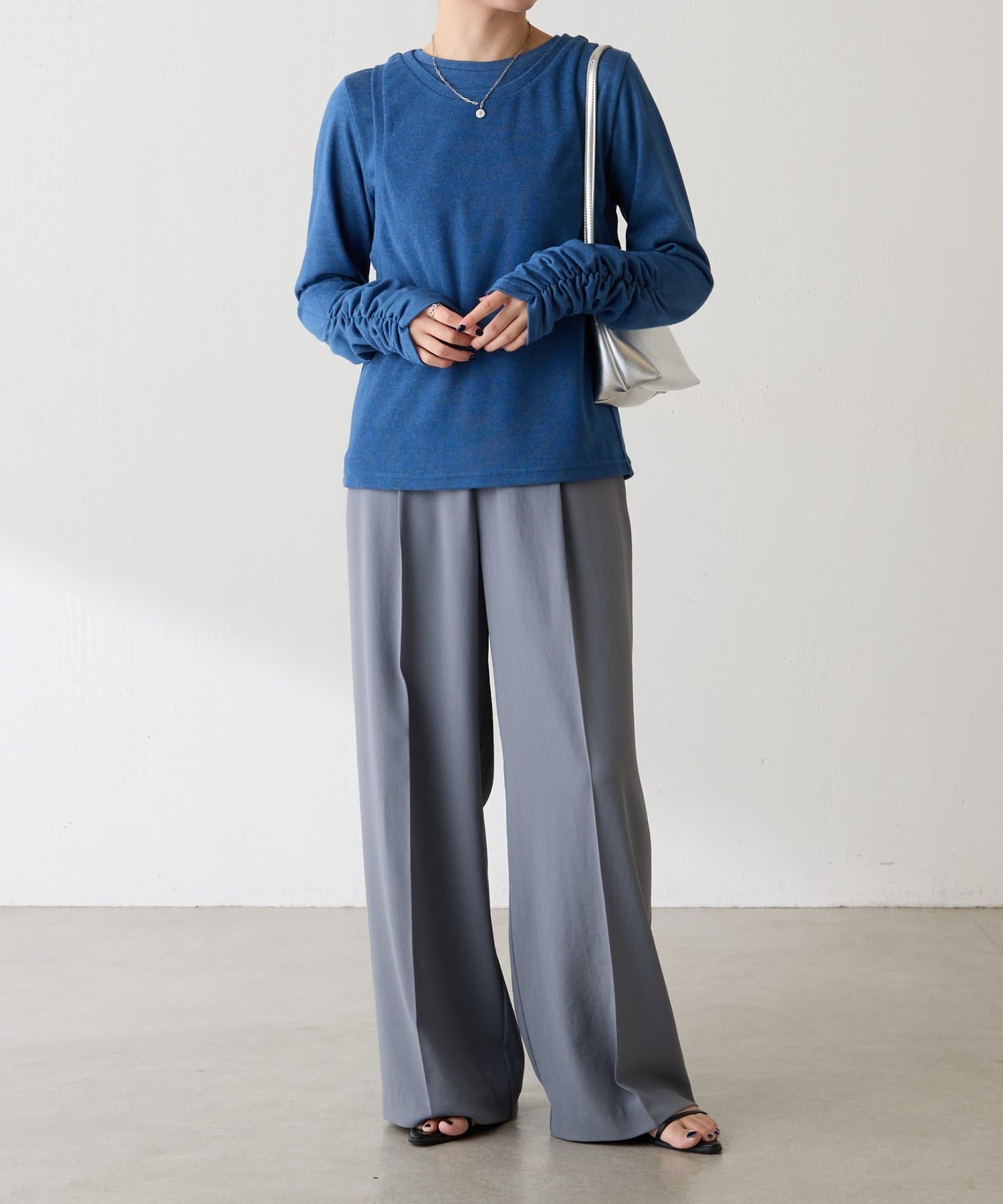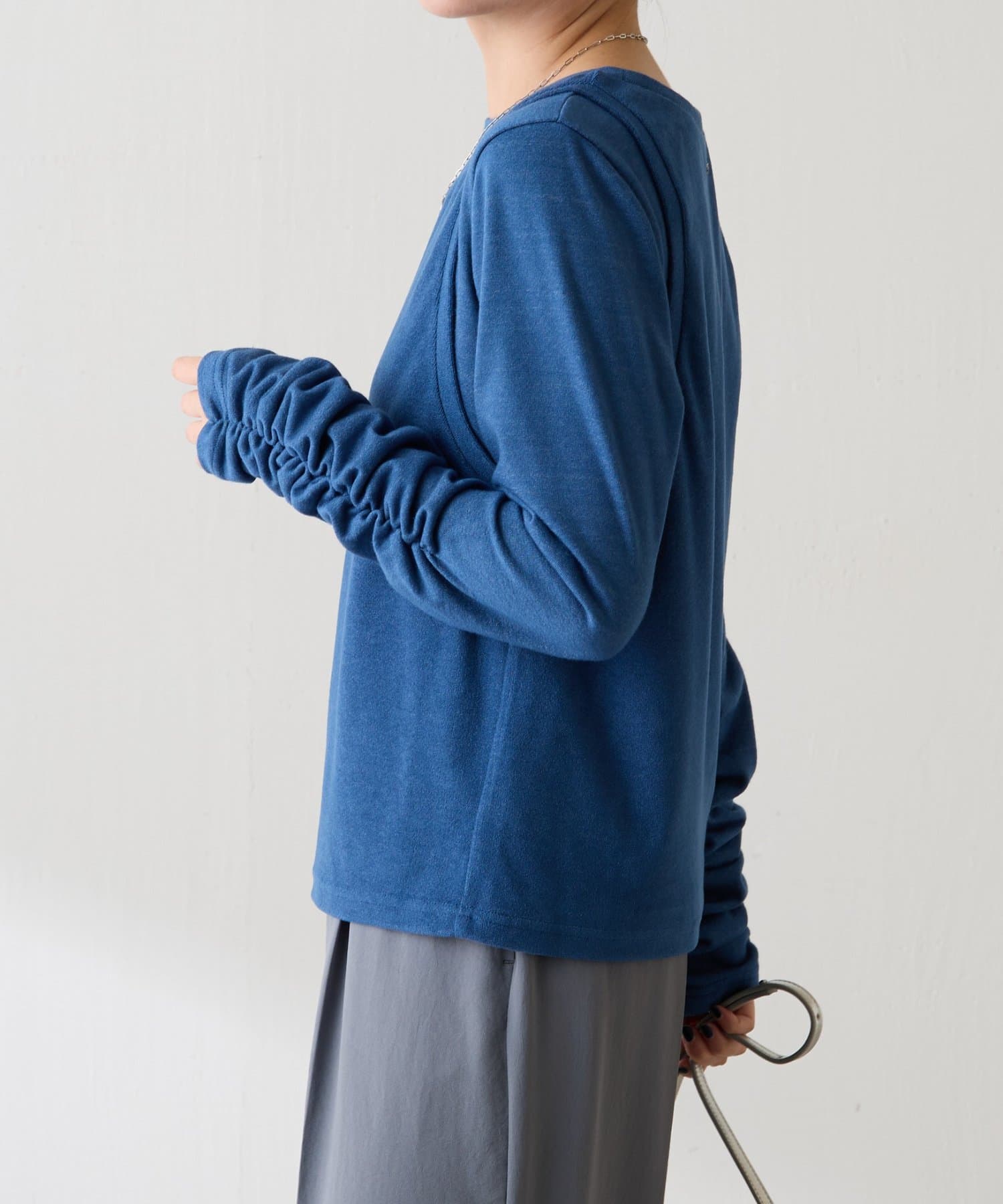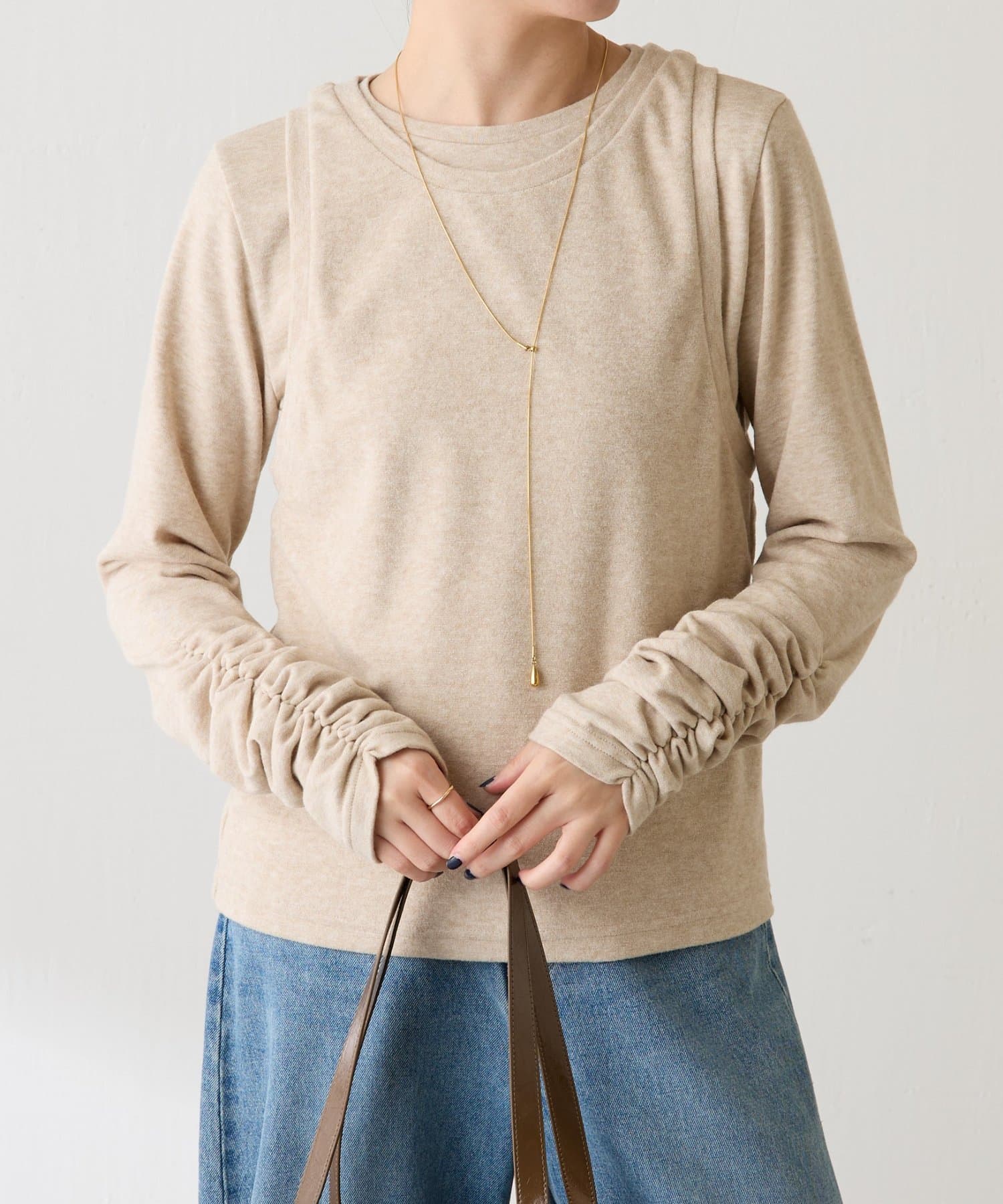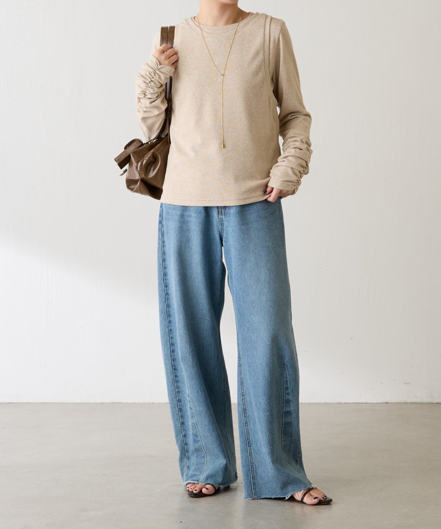 ・ロンTの袖は長めで、袖口にはシャーリングが入っているのでくしゅっと溜まる感じがかわいいです。