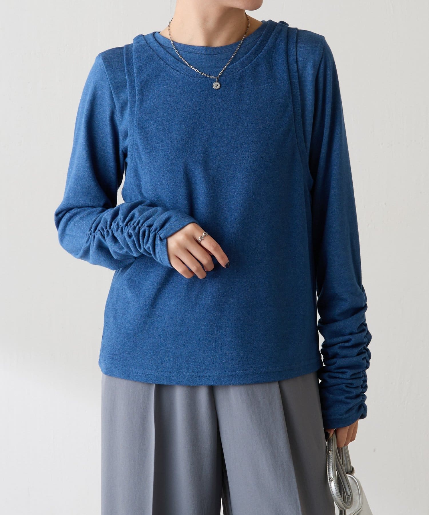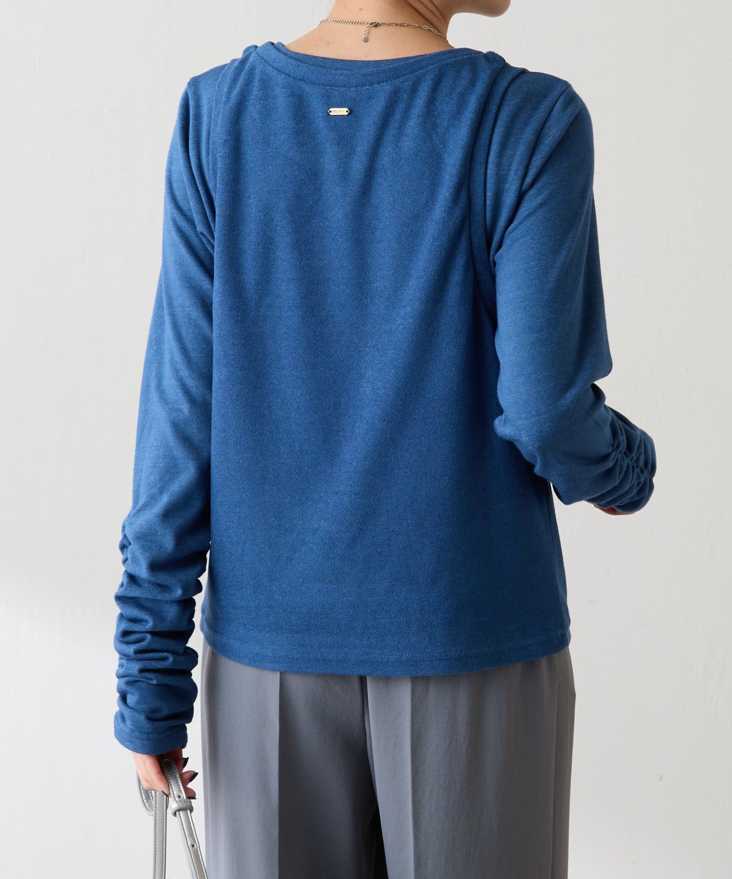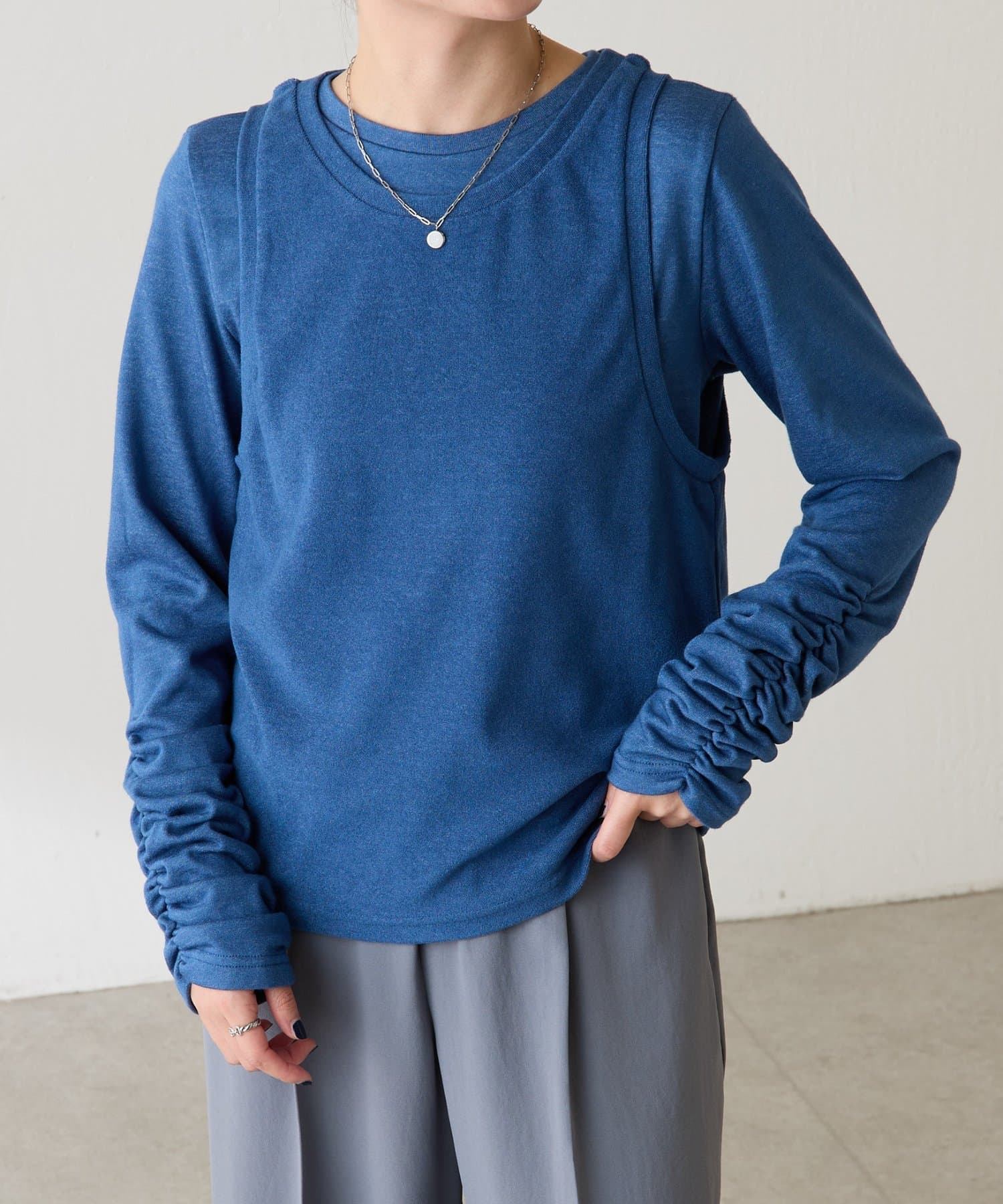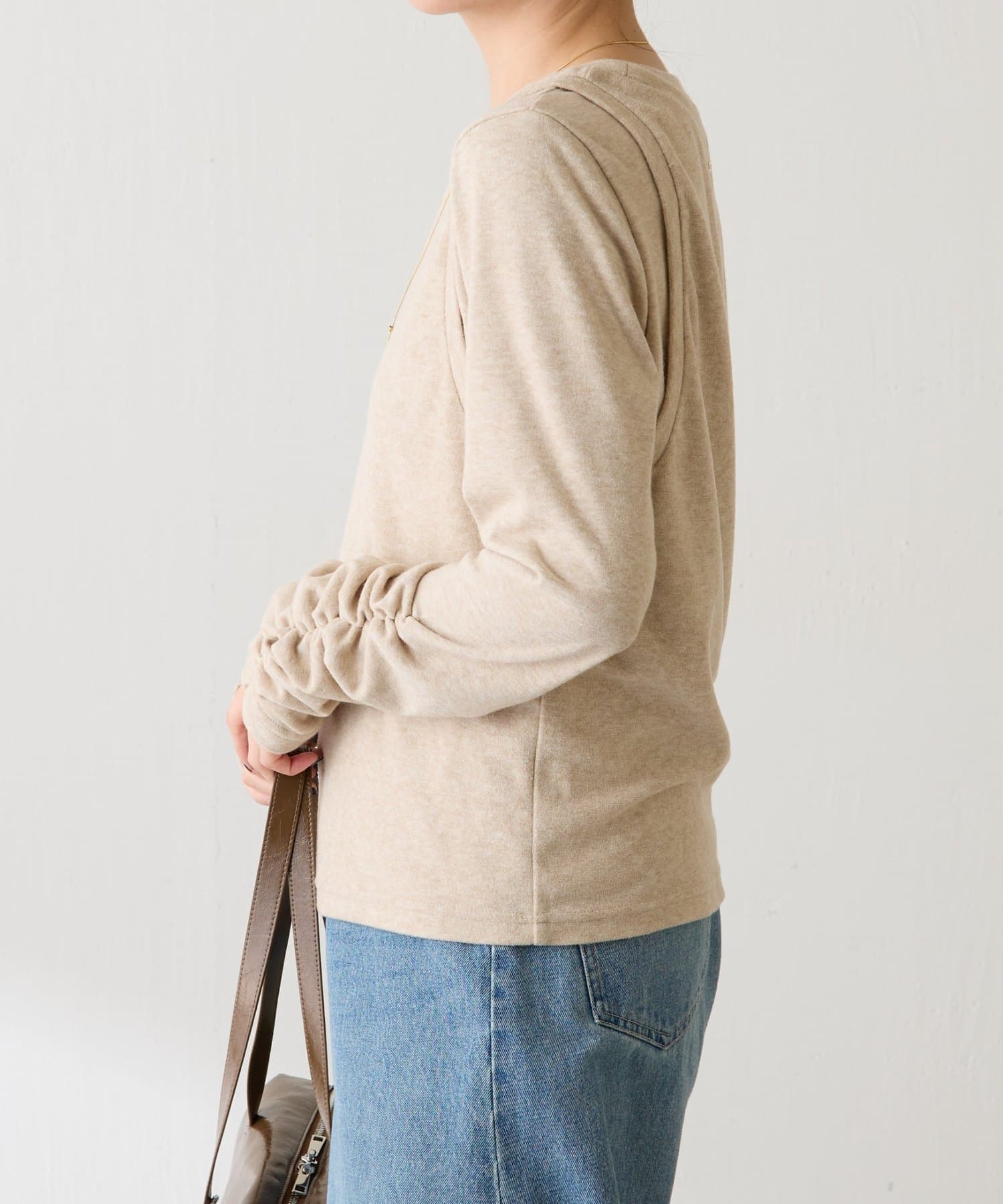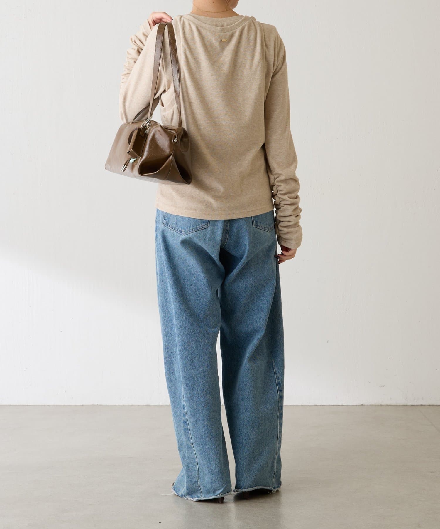 ・ロンTの袖は長めで、袖口にはシャーリングが入っているのでくしゅっと溜まる感じがかわいいです。