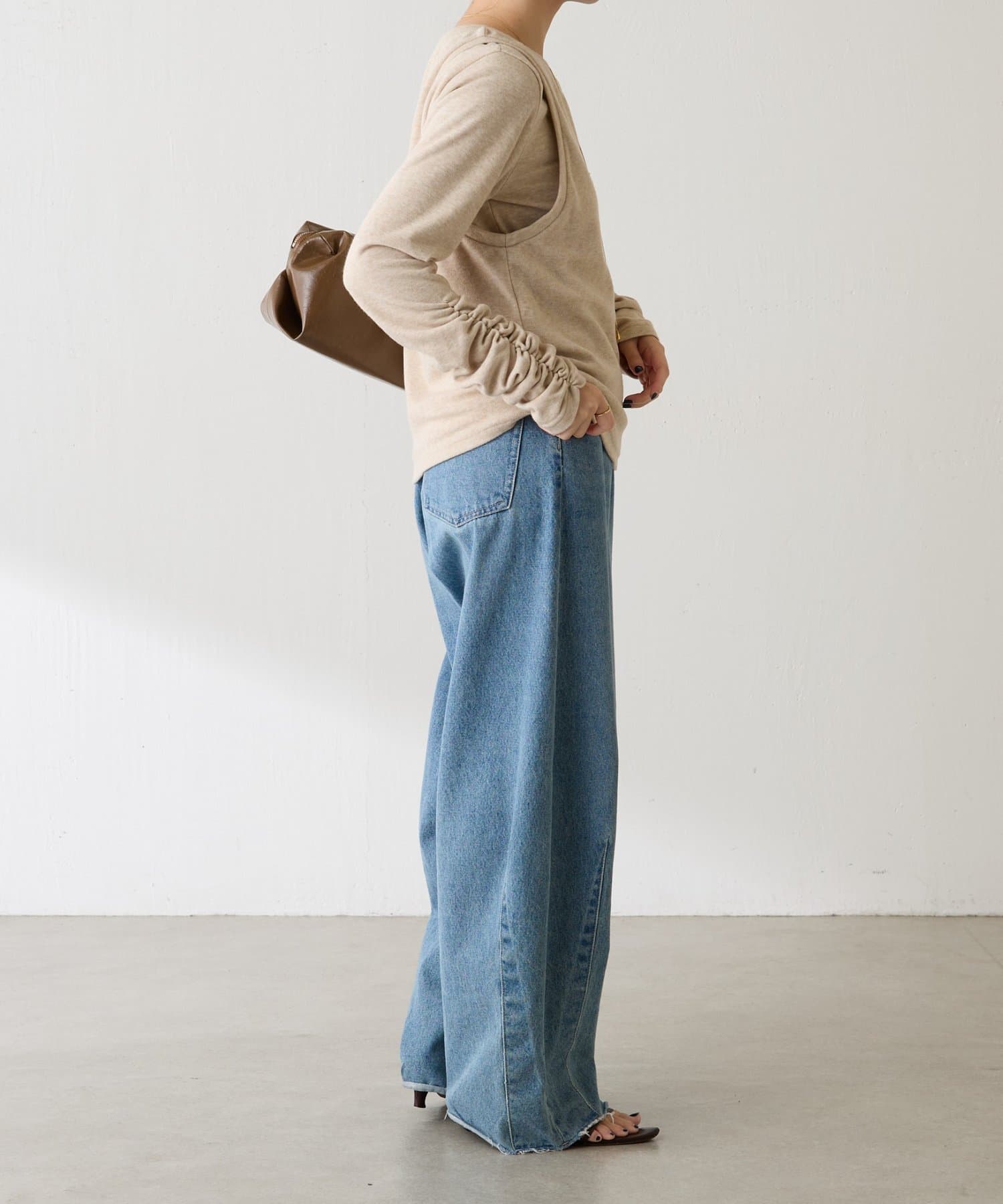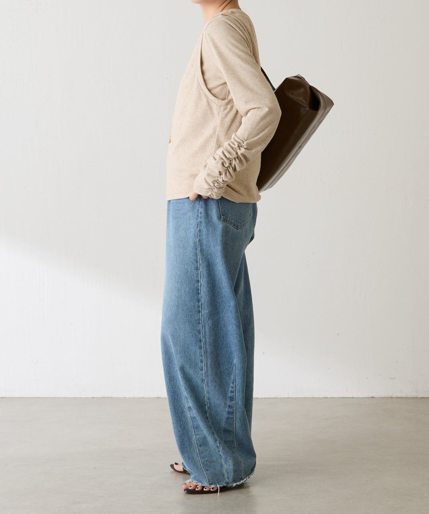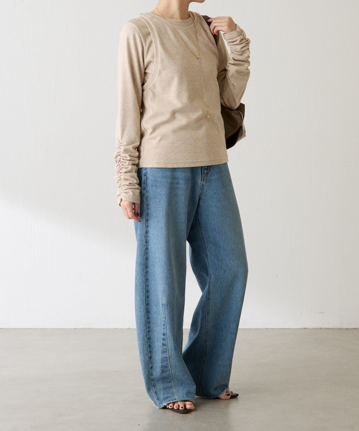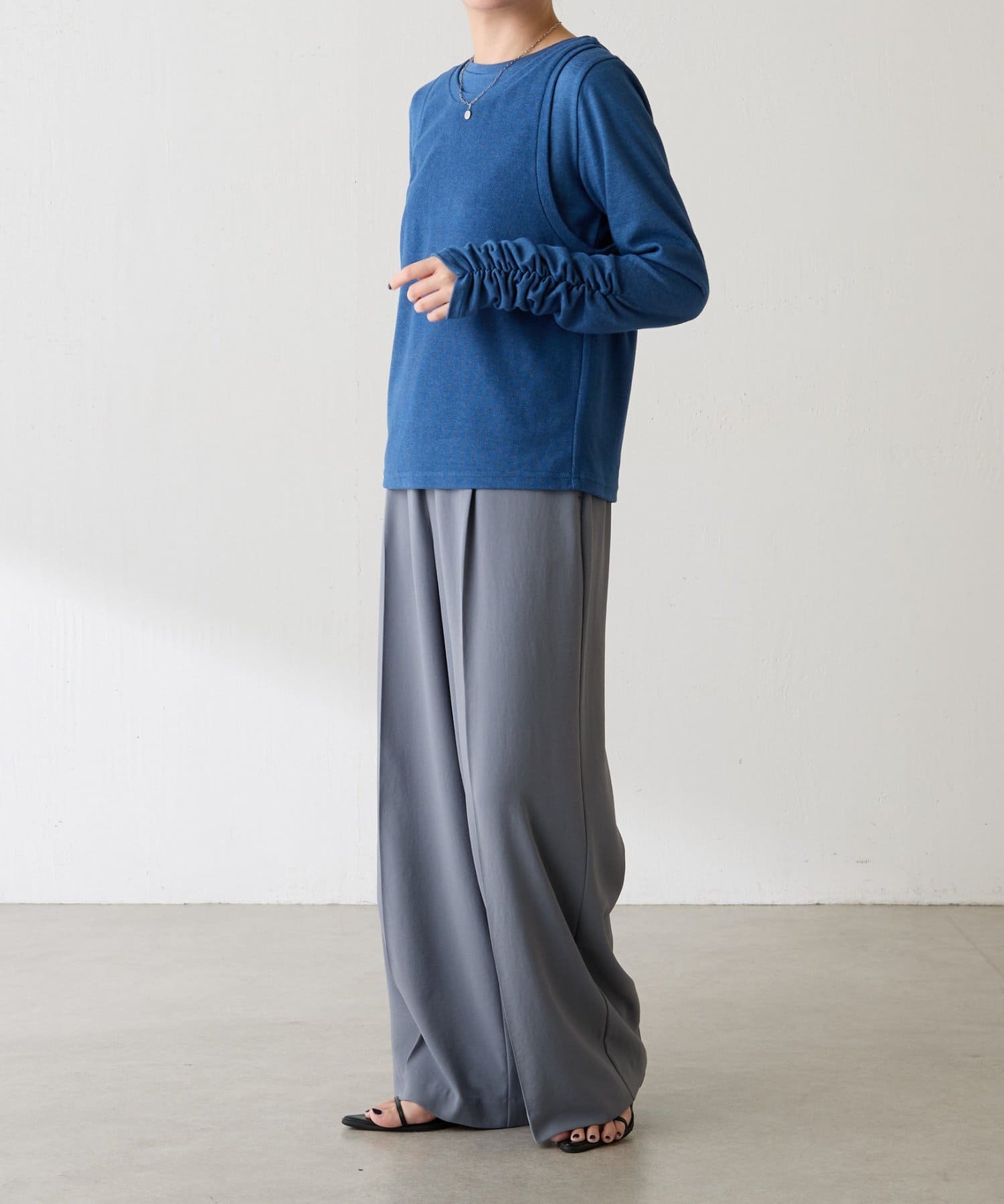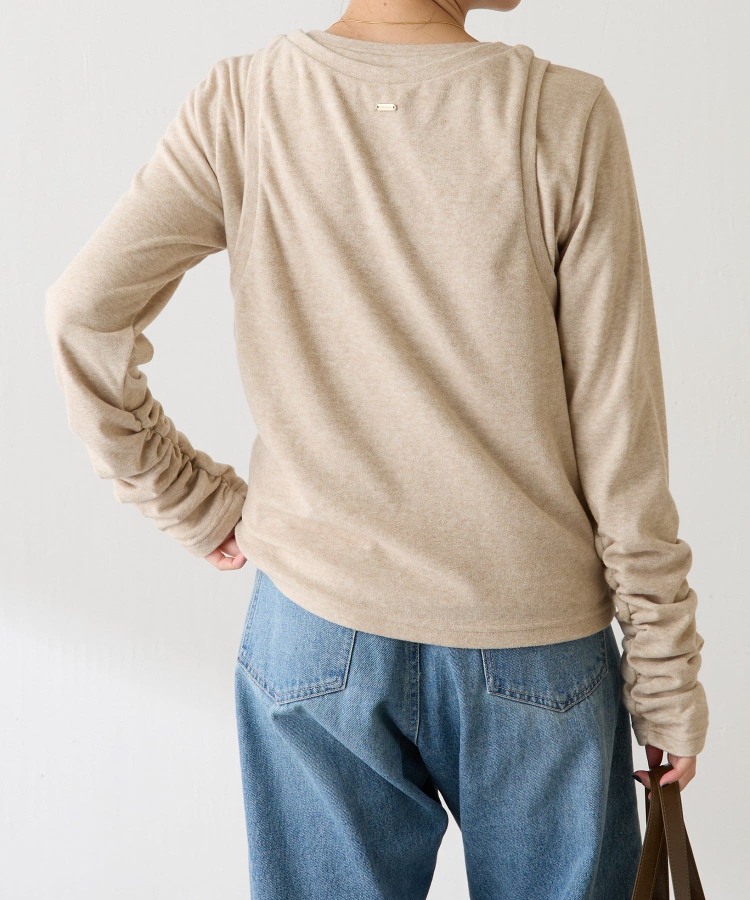 ・ロンTの袖は長めで、袖口にはシャーリングが入っているのでくしゅっと溜まる感じがかわいいです。