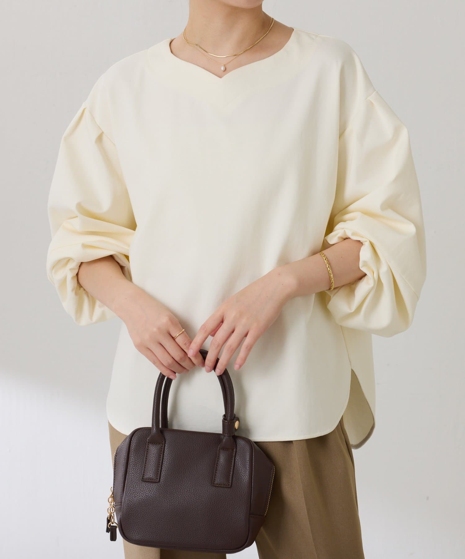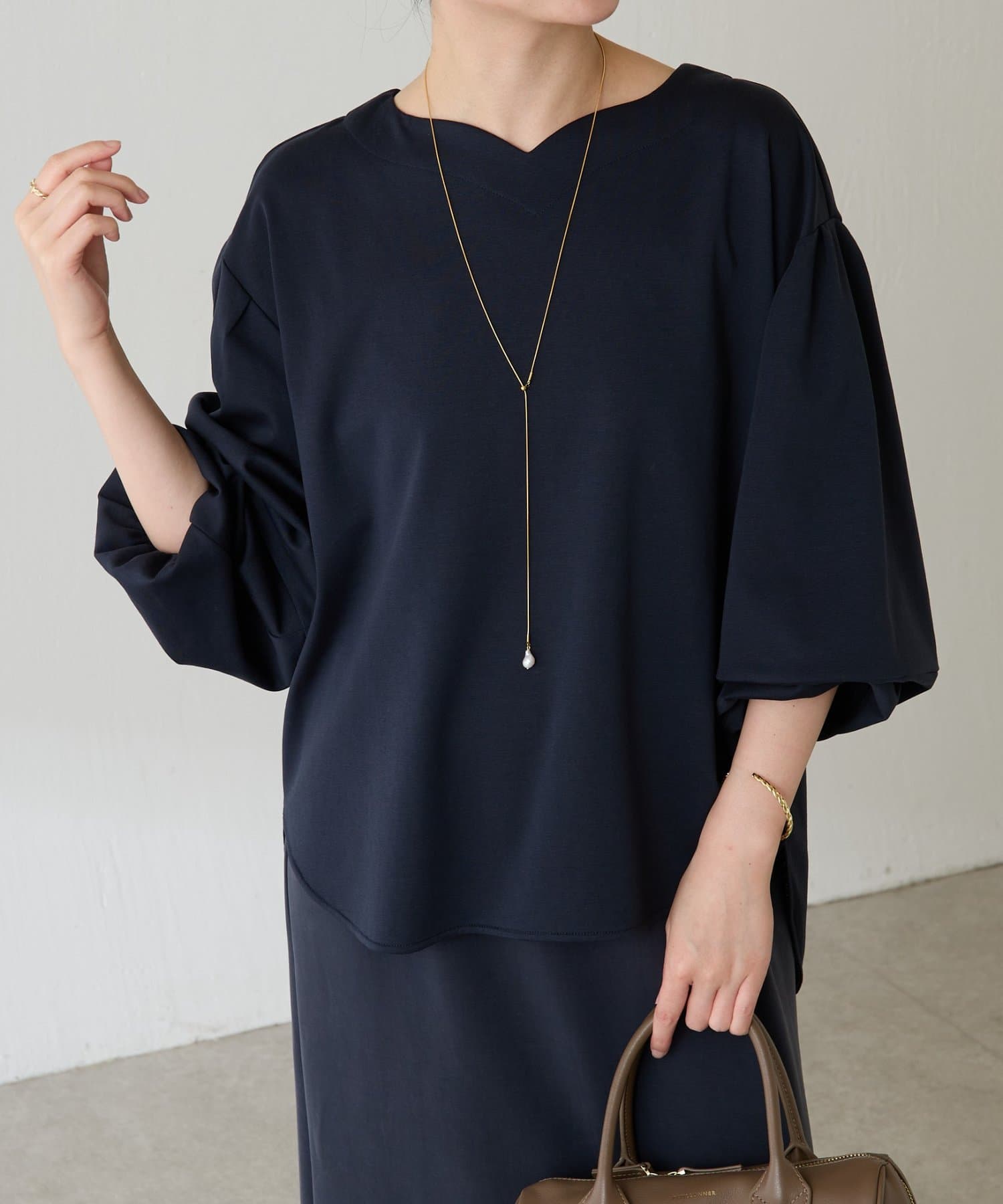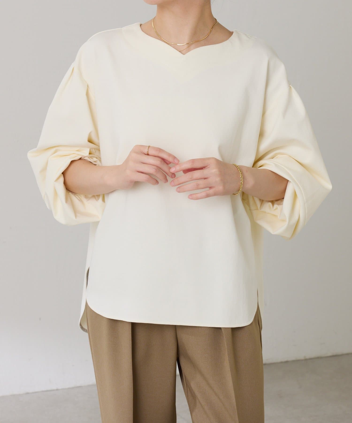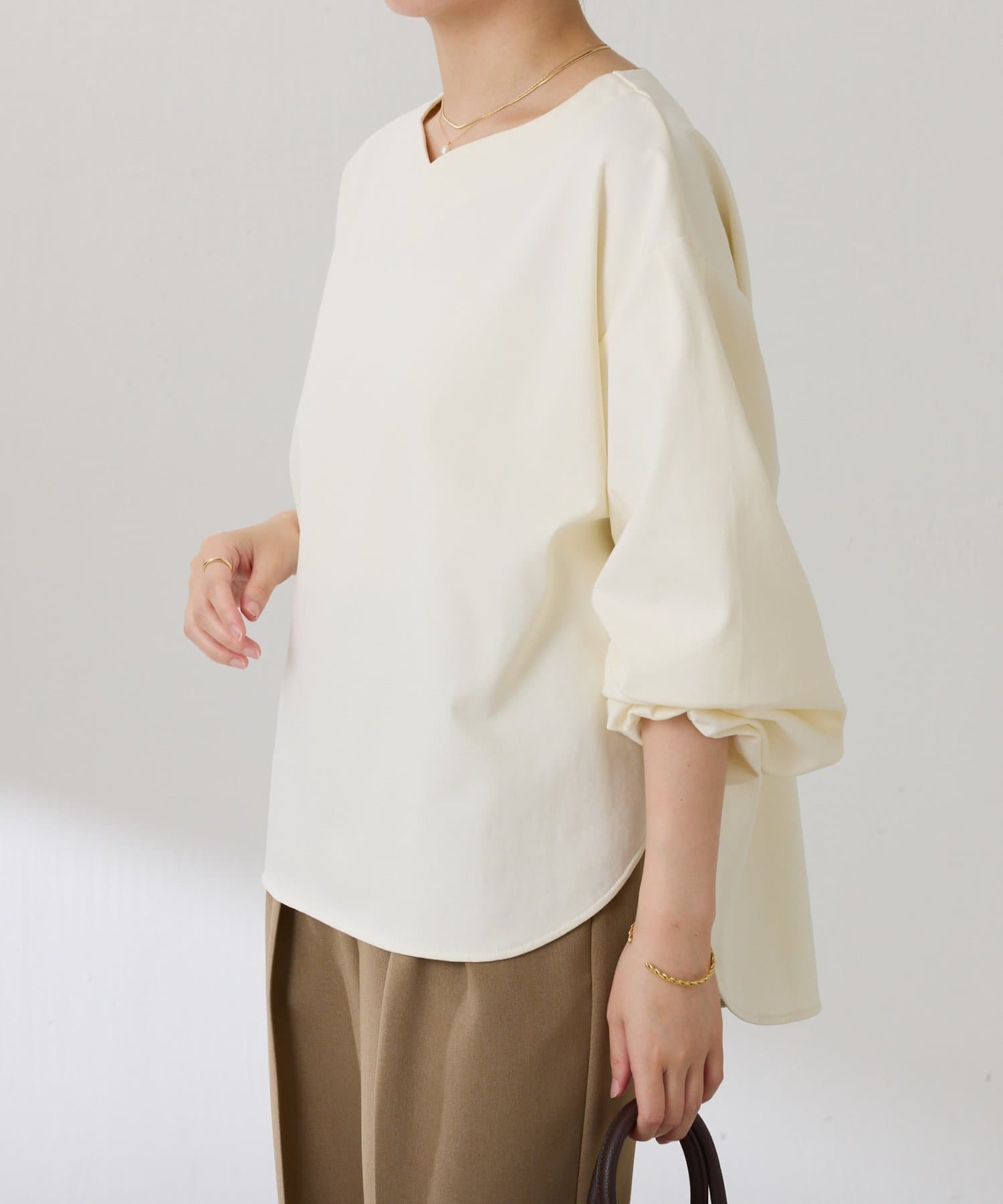 1枚でサマになるランタンスリーブの上品プルオーバー