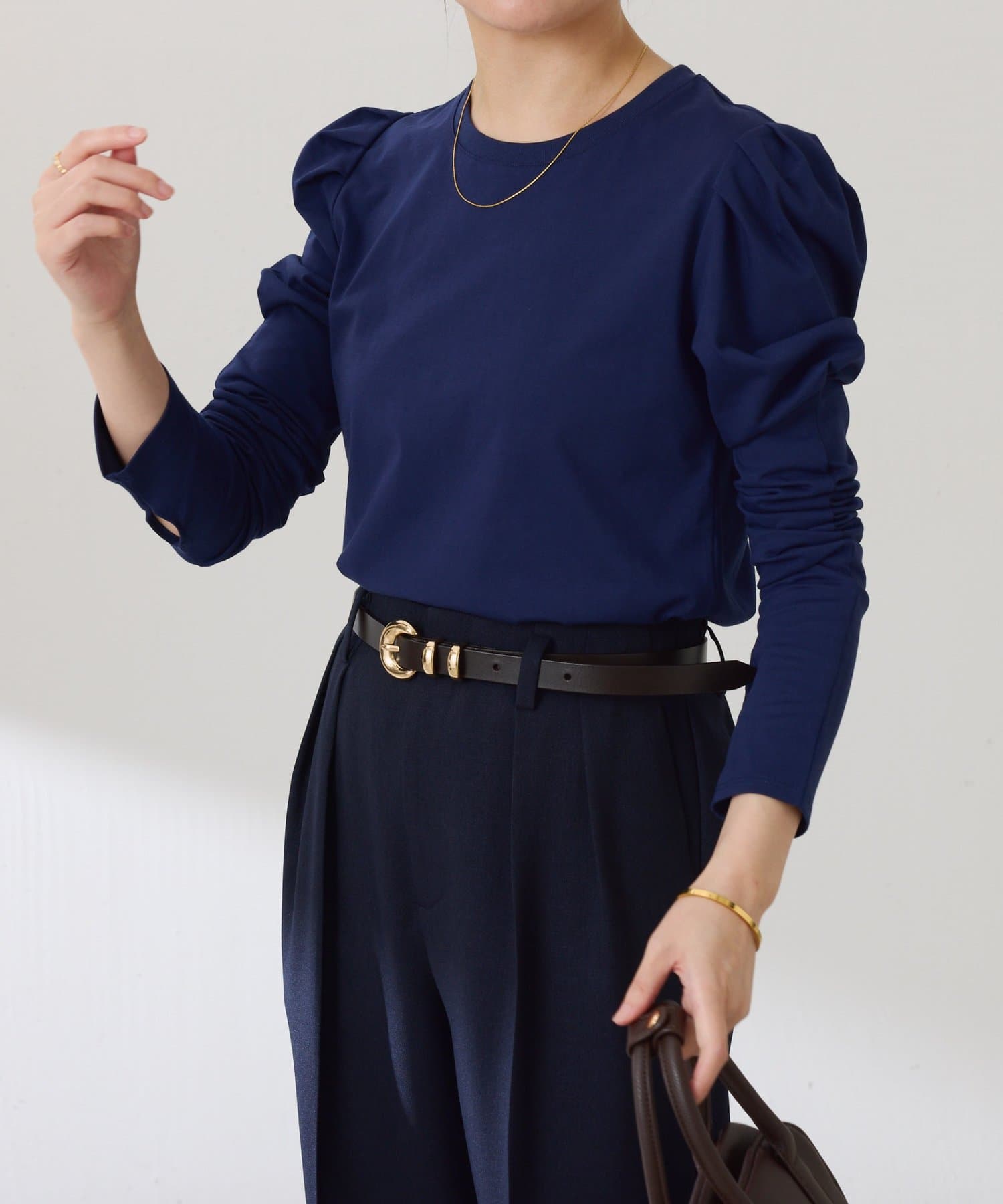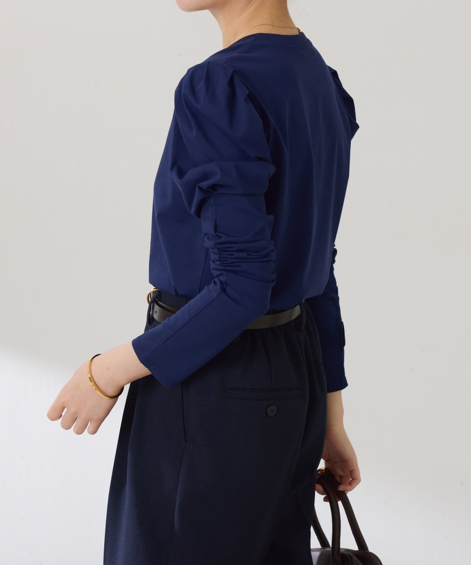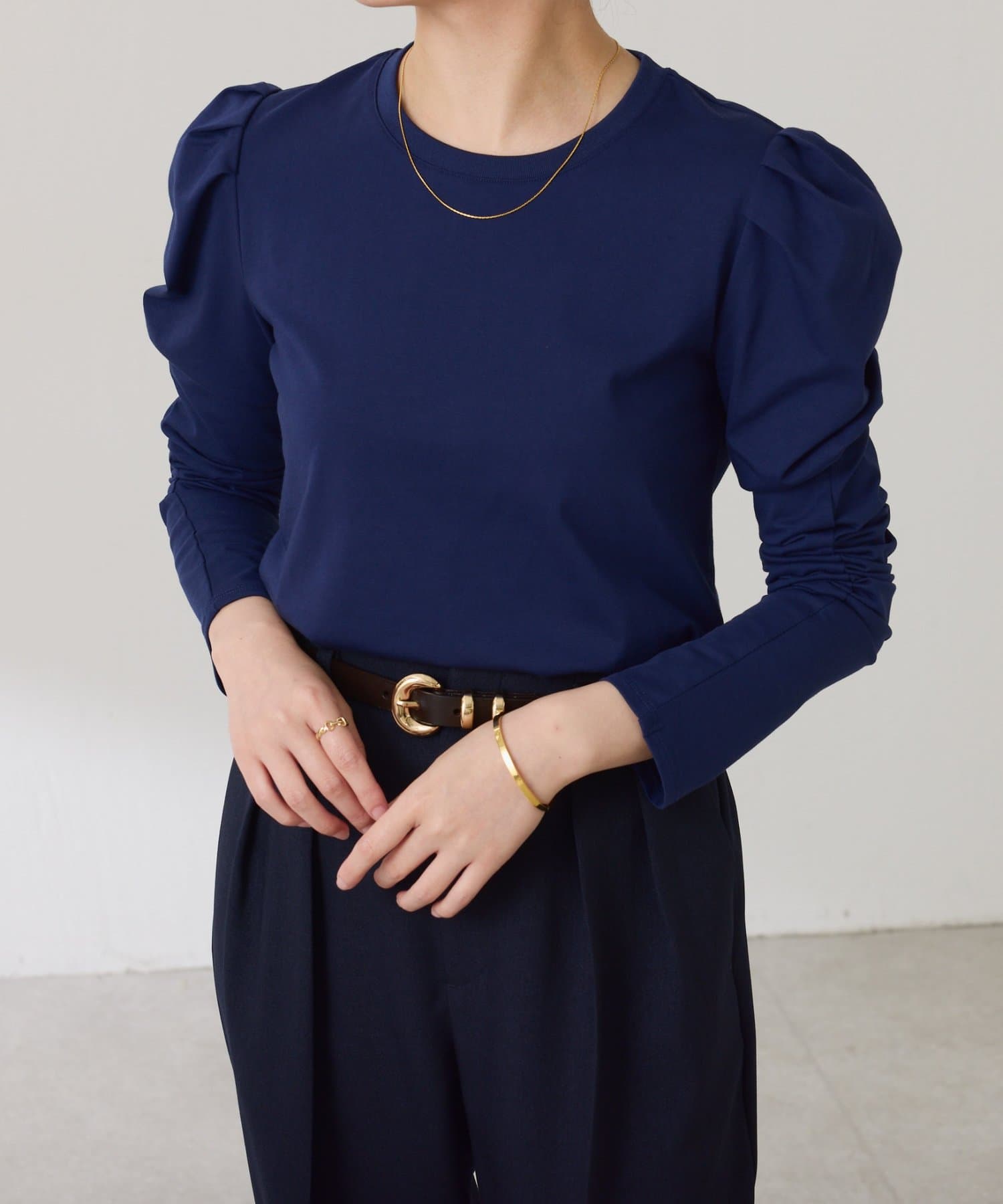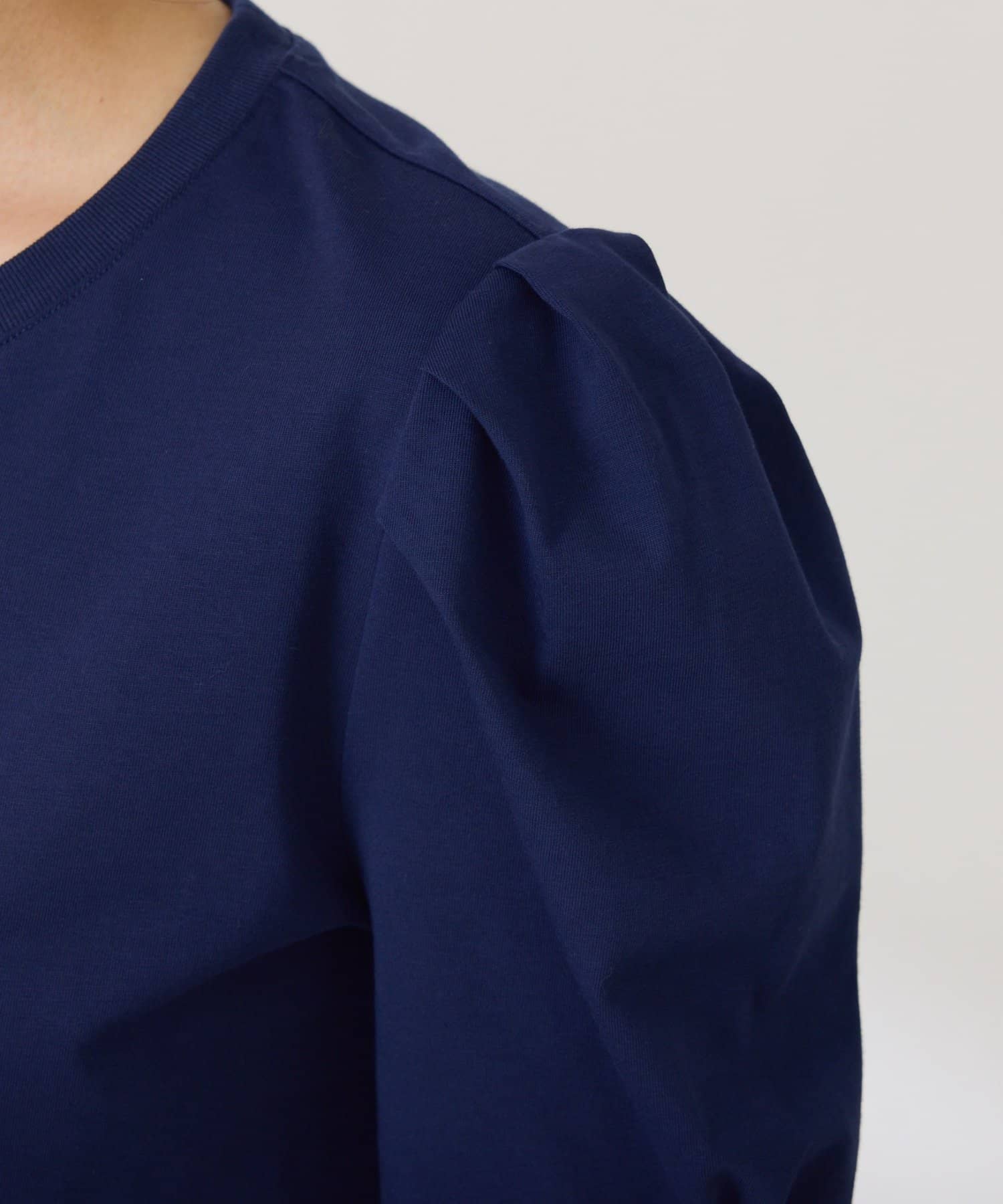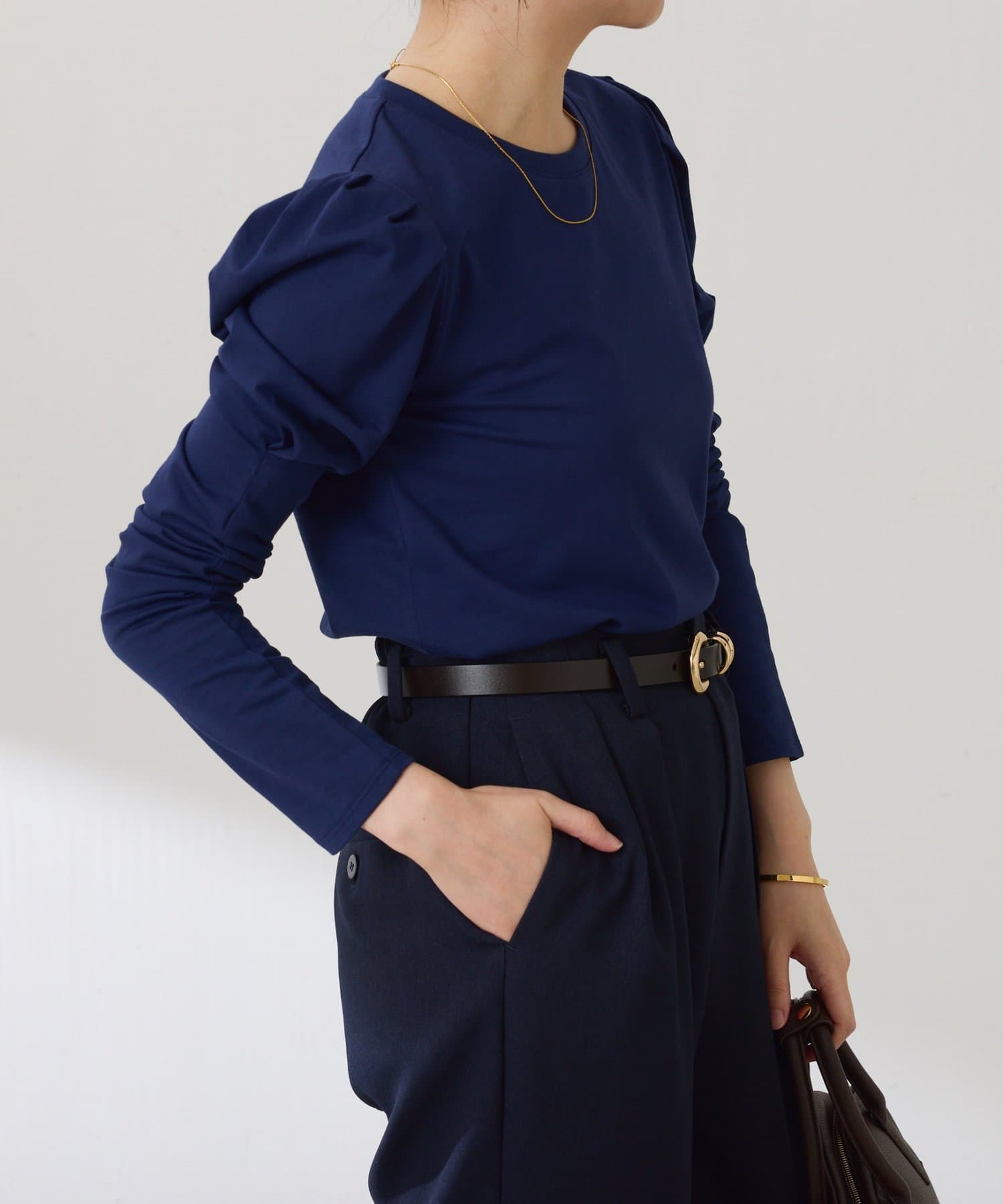 ・程よいボリュームのパフショルダーがポイントのカットソー。