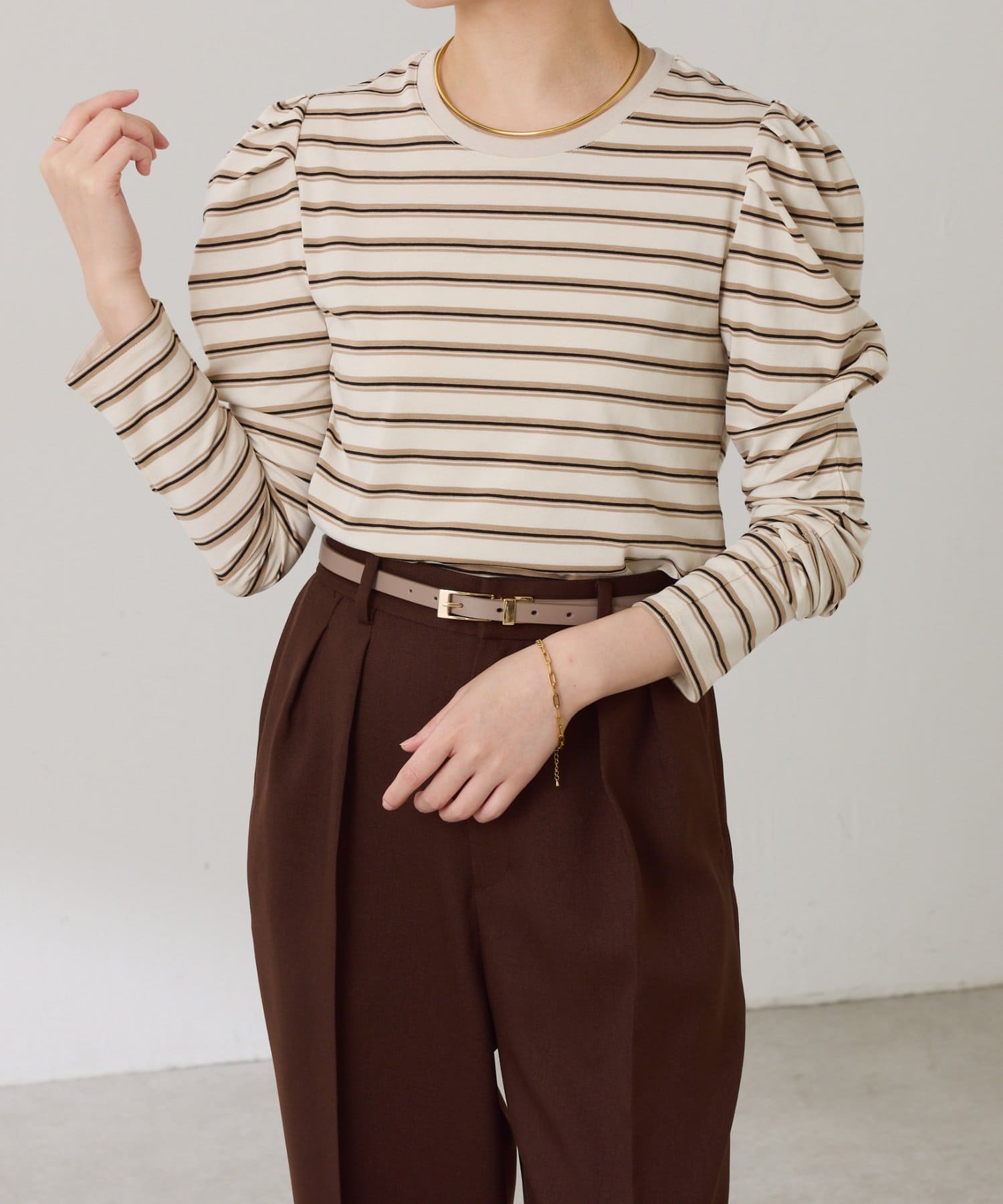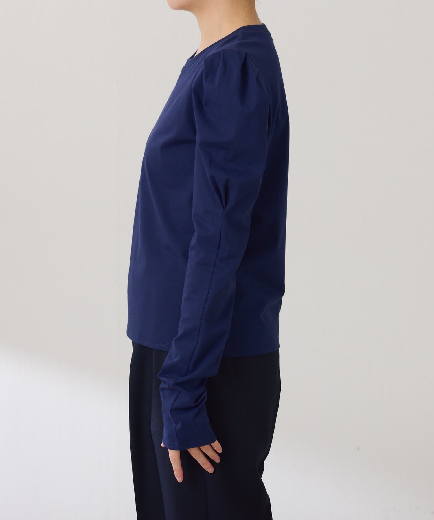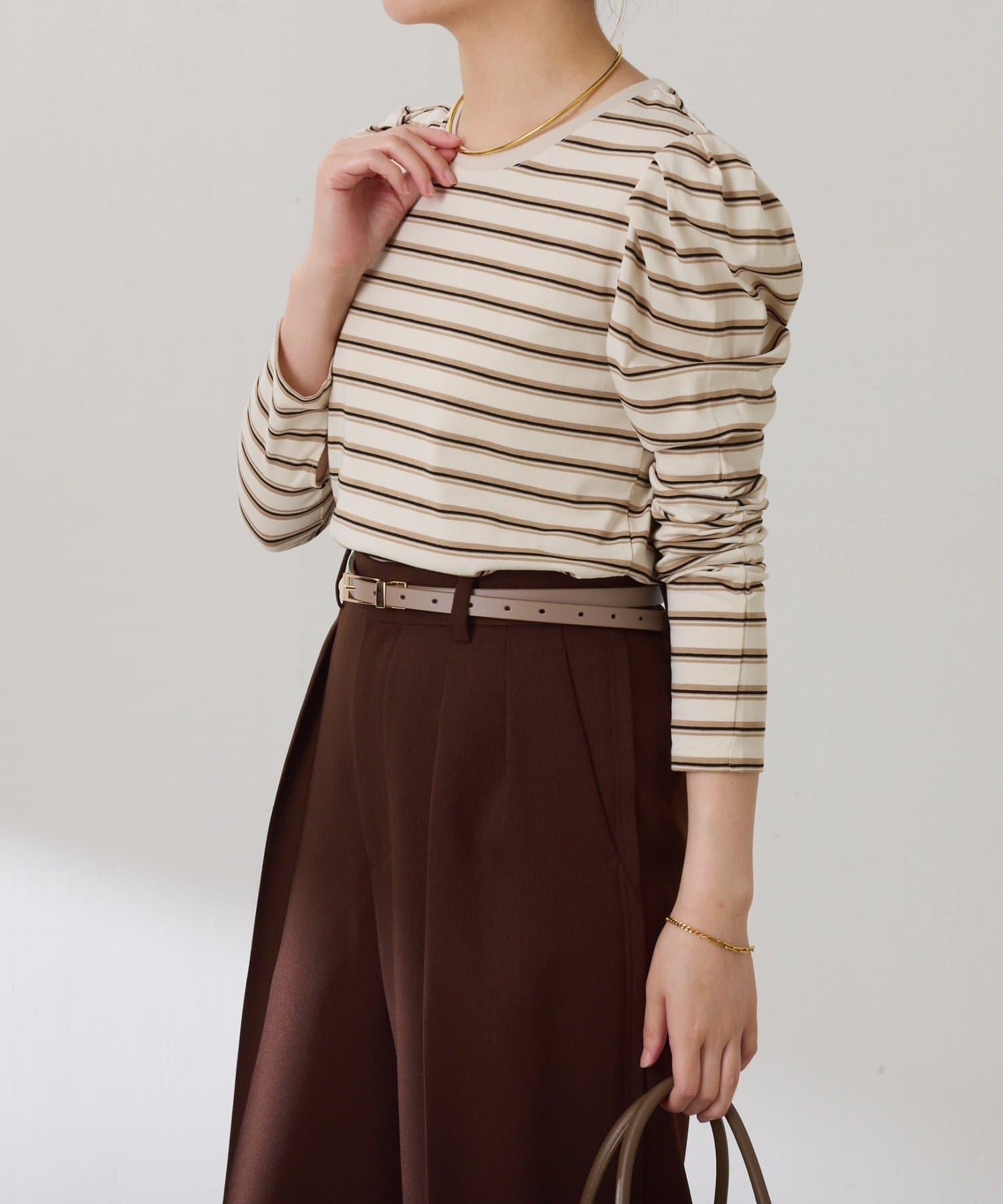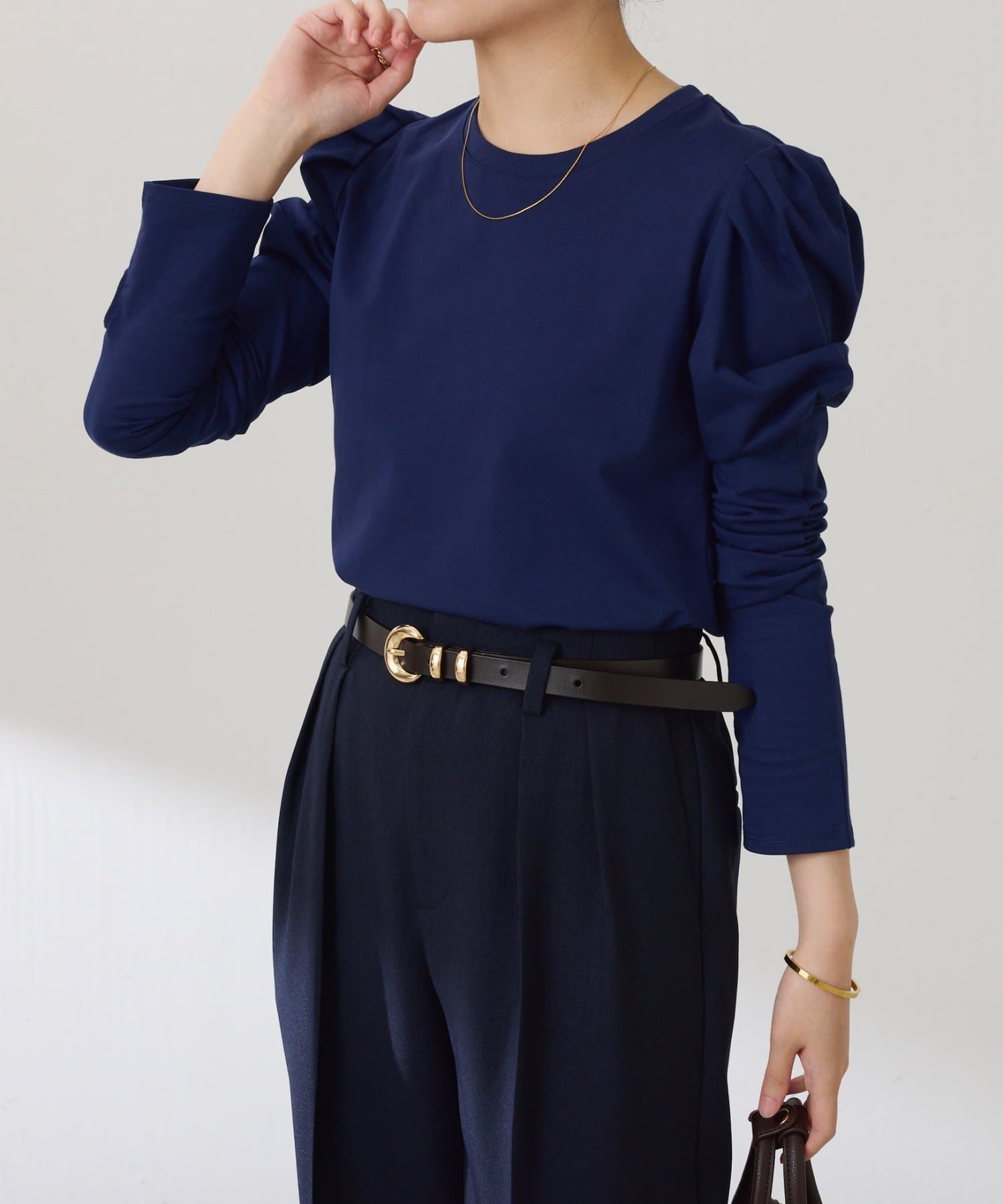 ・程よいボリュームのパフショルダーがポイントのカットソー。