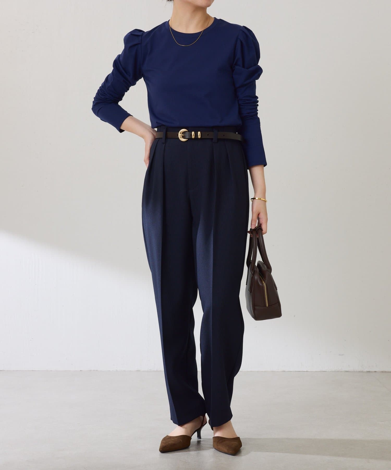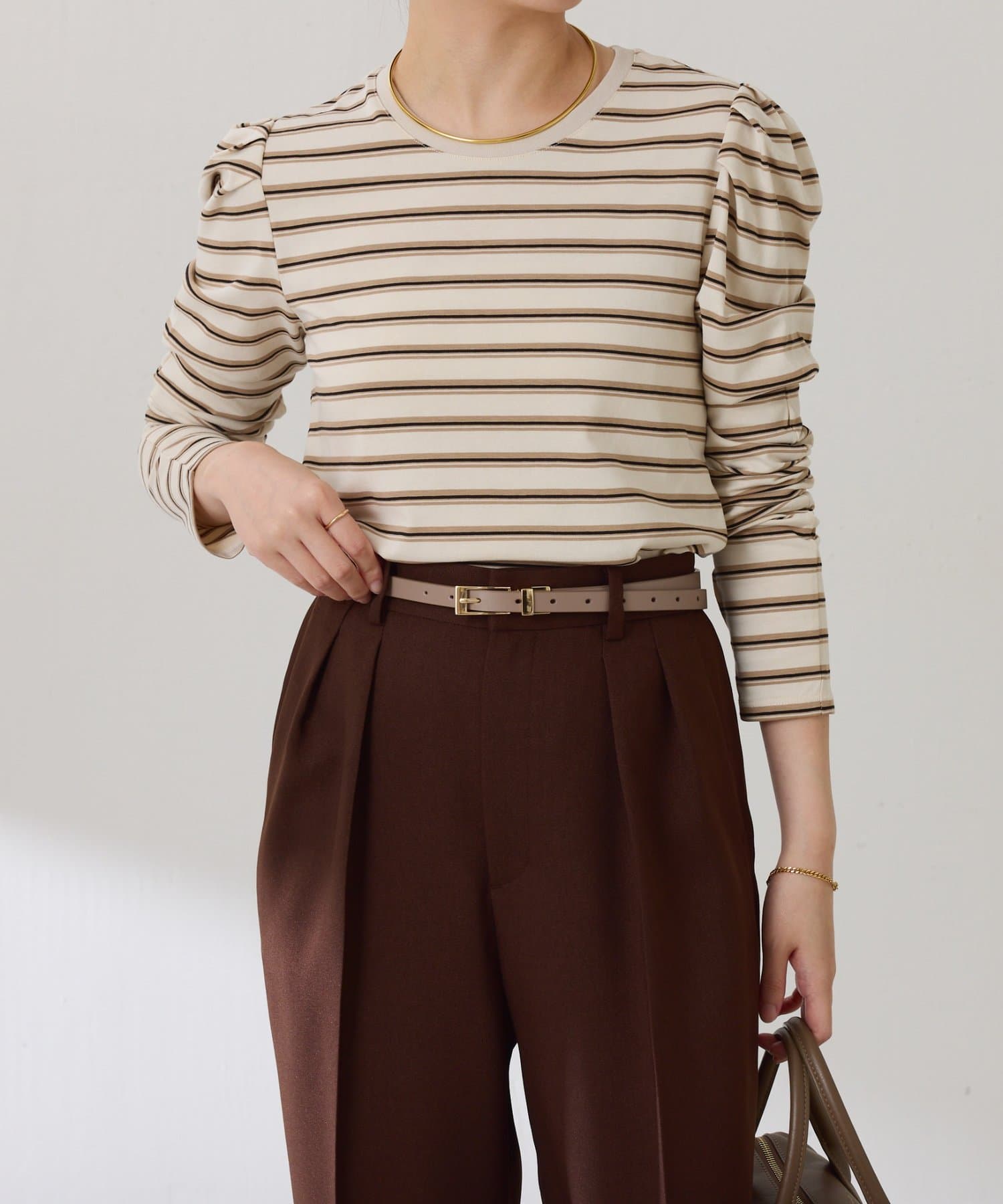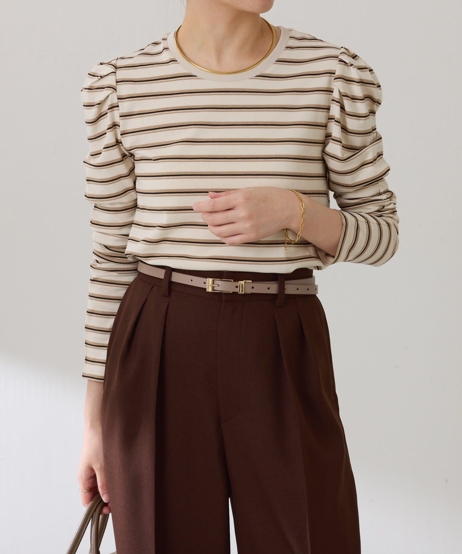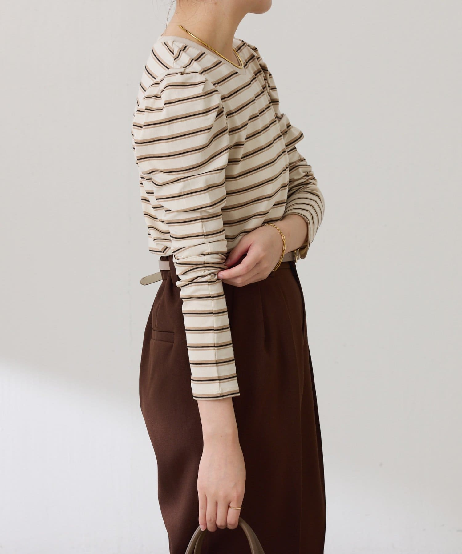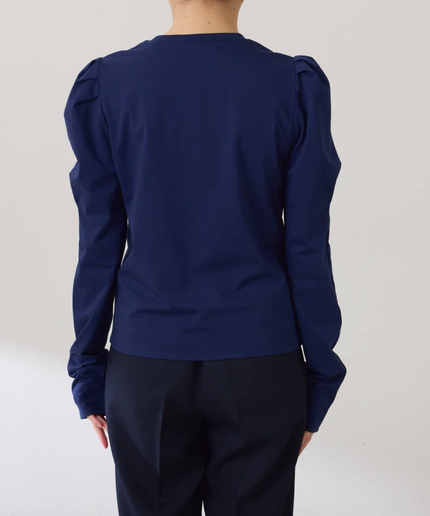 ・程よいボリュームのパフショルダーがポイントのカットソー。