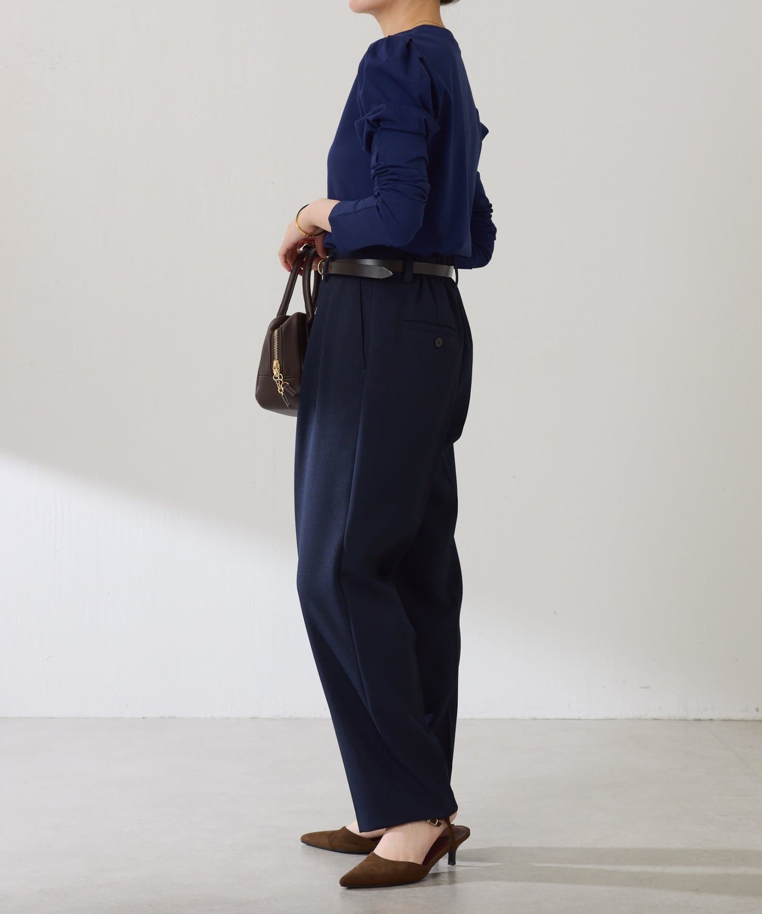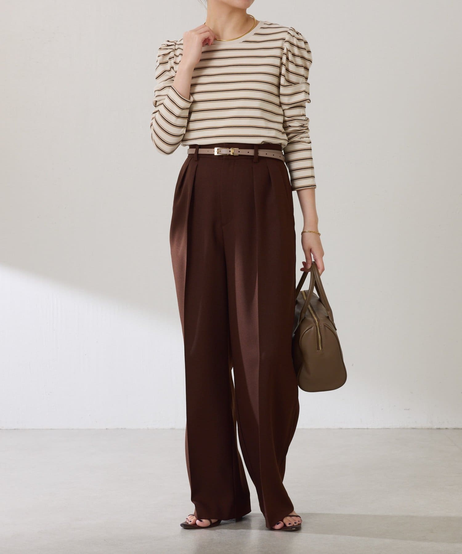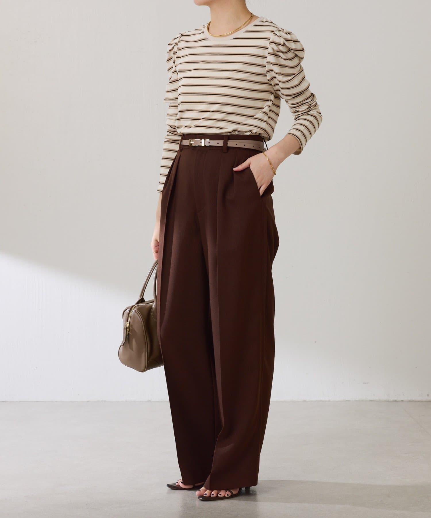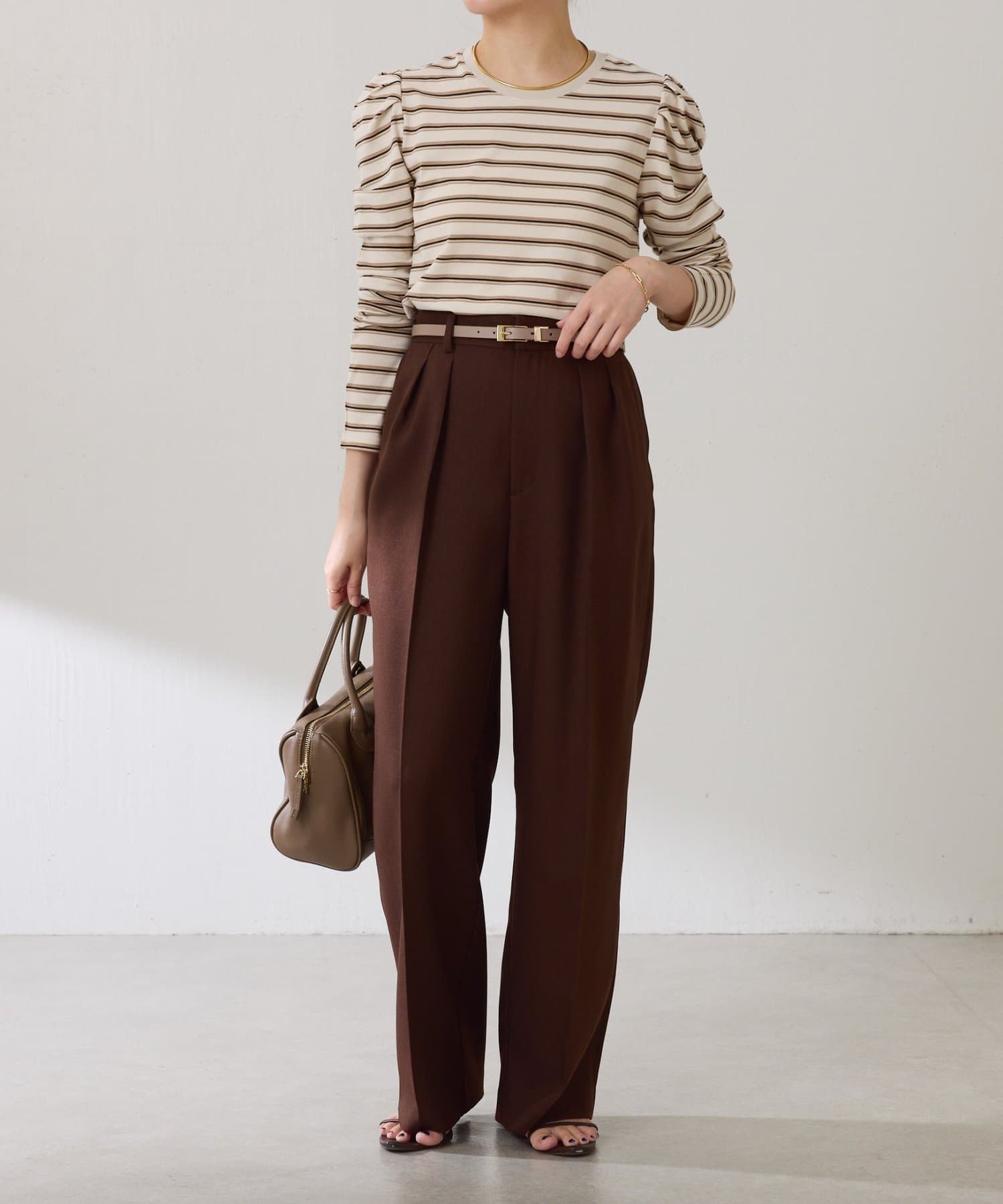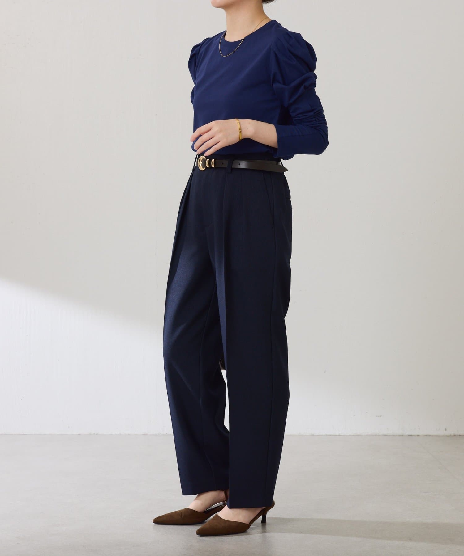 ・程よいボリュームのパフショルダーがポイントのカットソー。