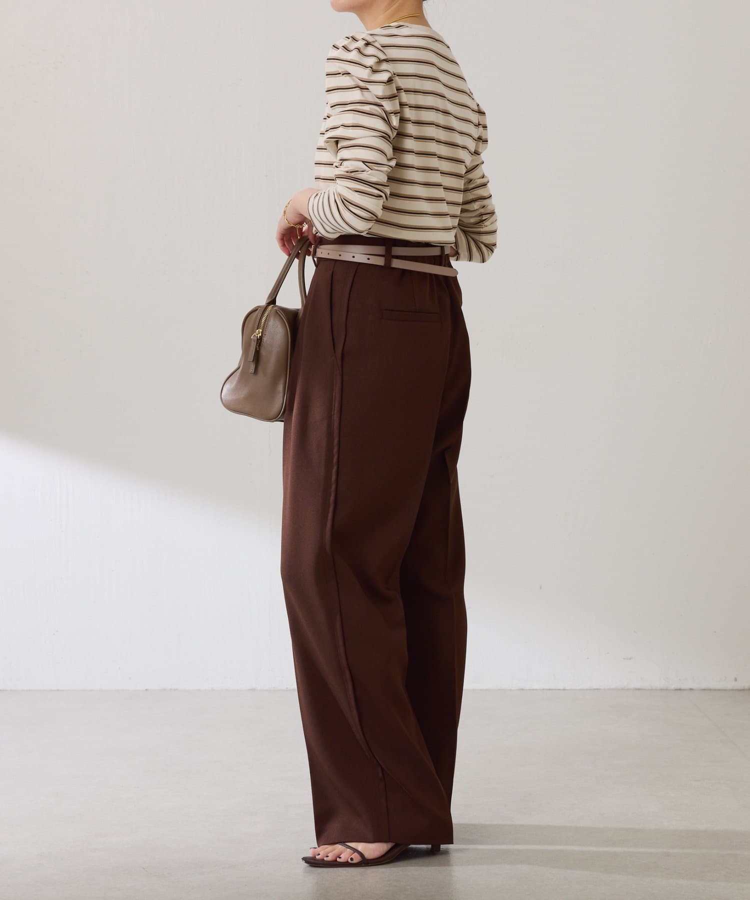 程よく身体にフィットするサイズ感で合わせるボトムスを選ばず、サロペットやジレのインナー使いにもオススメ。