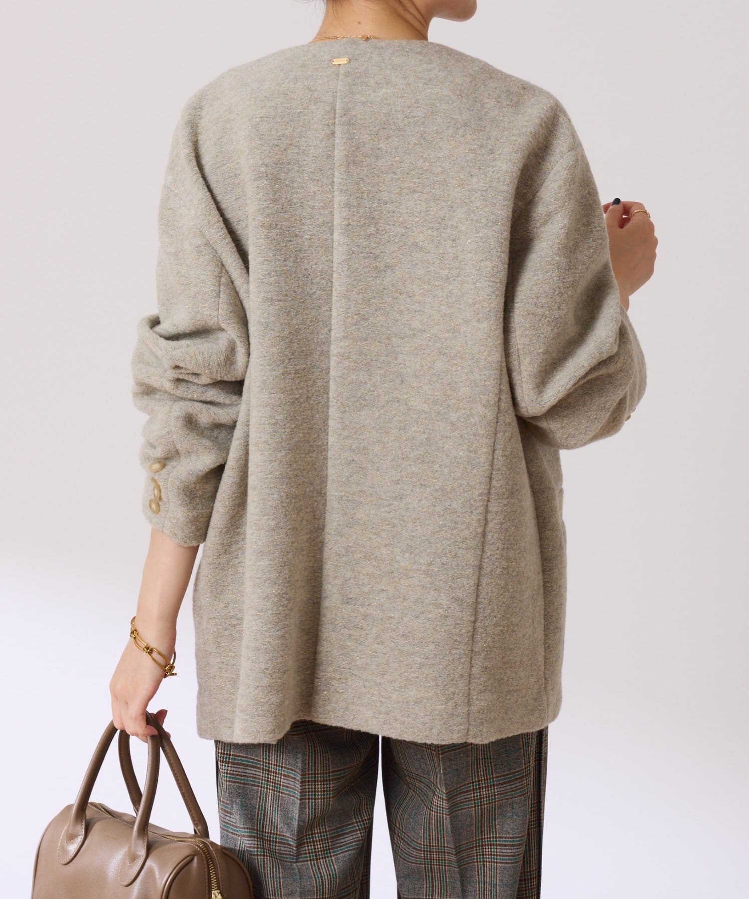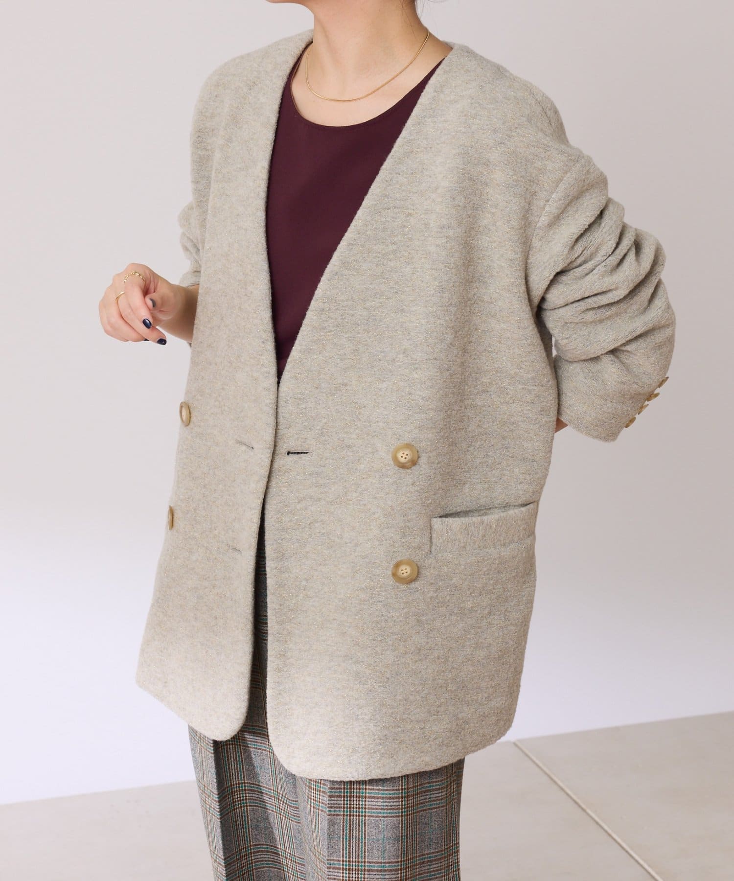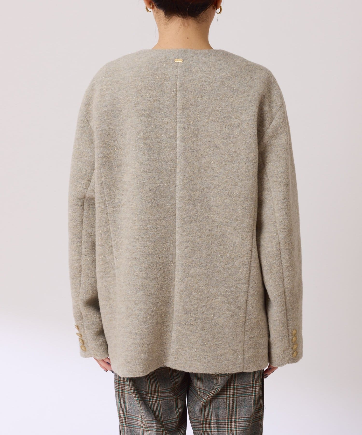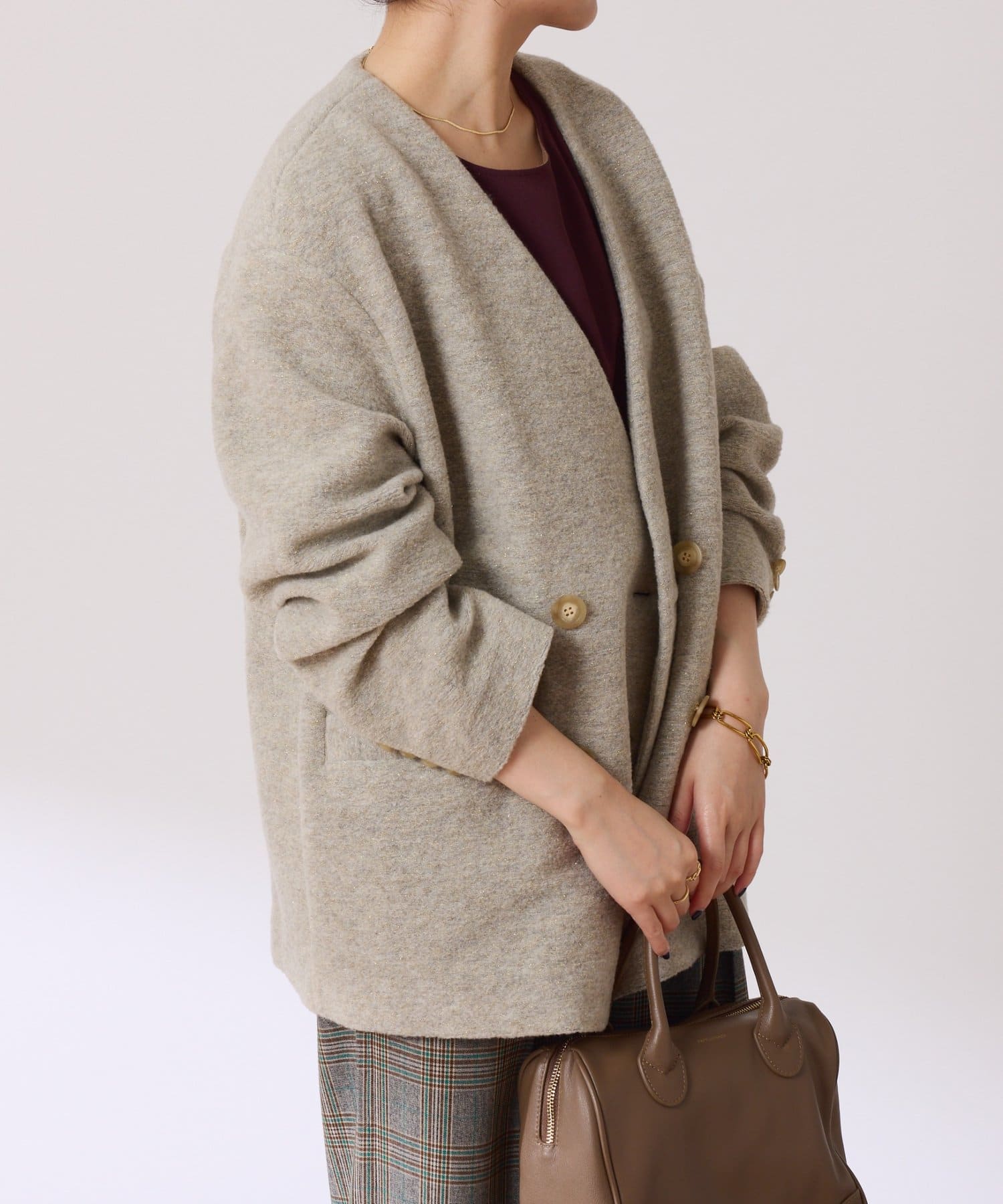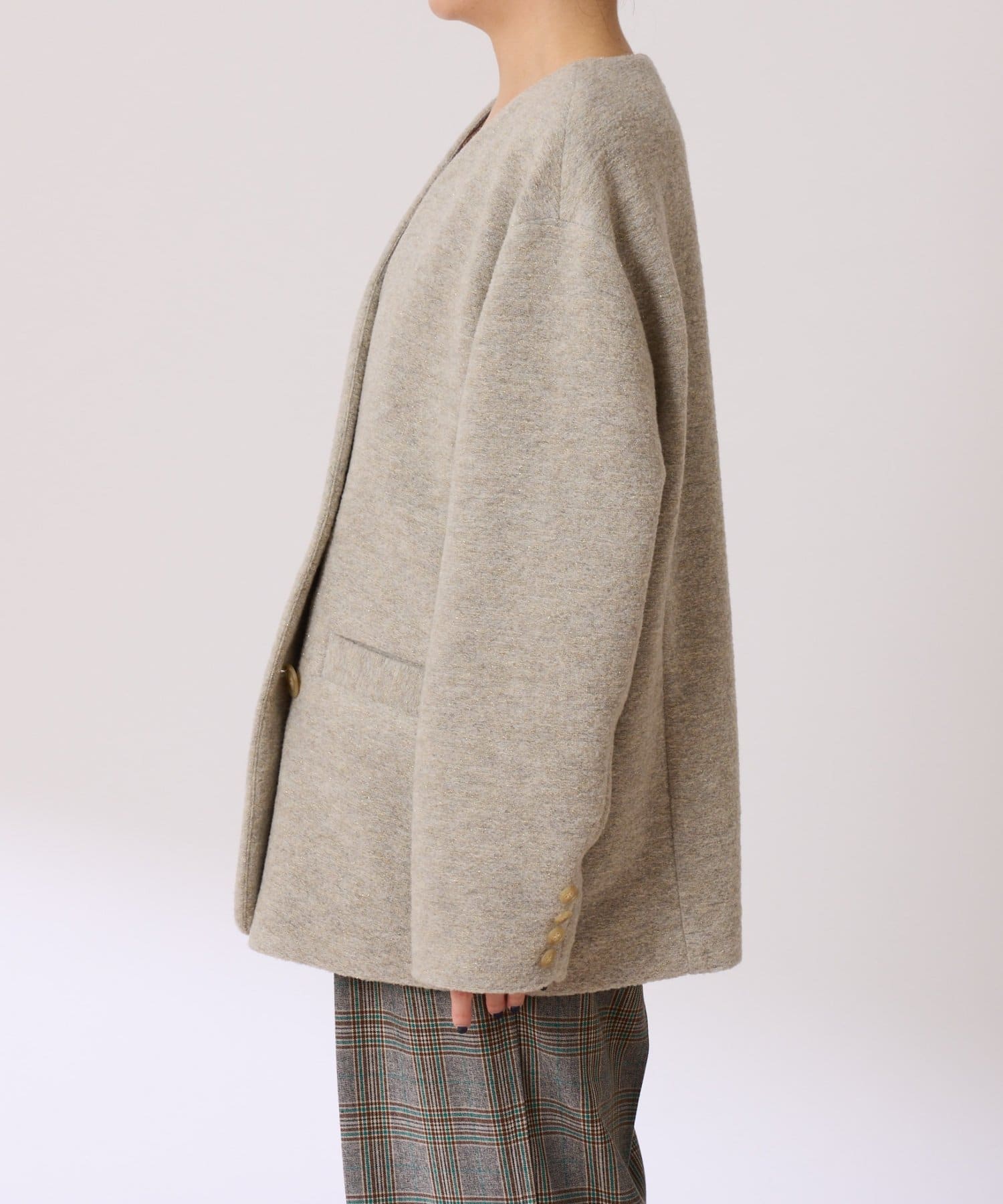 ・イタリアのスライバー素材を使用した、カーディガン感覚で羽織れるノーカラージャケット。