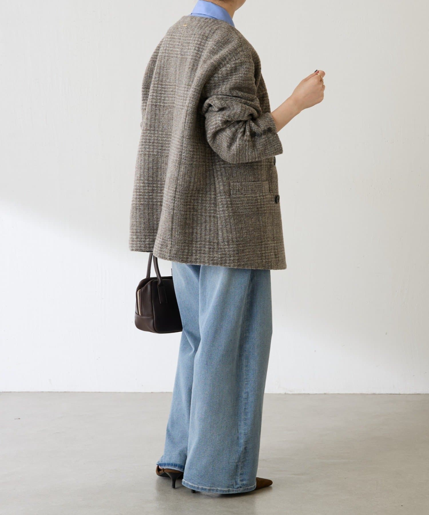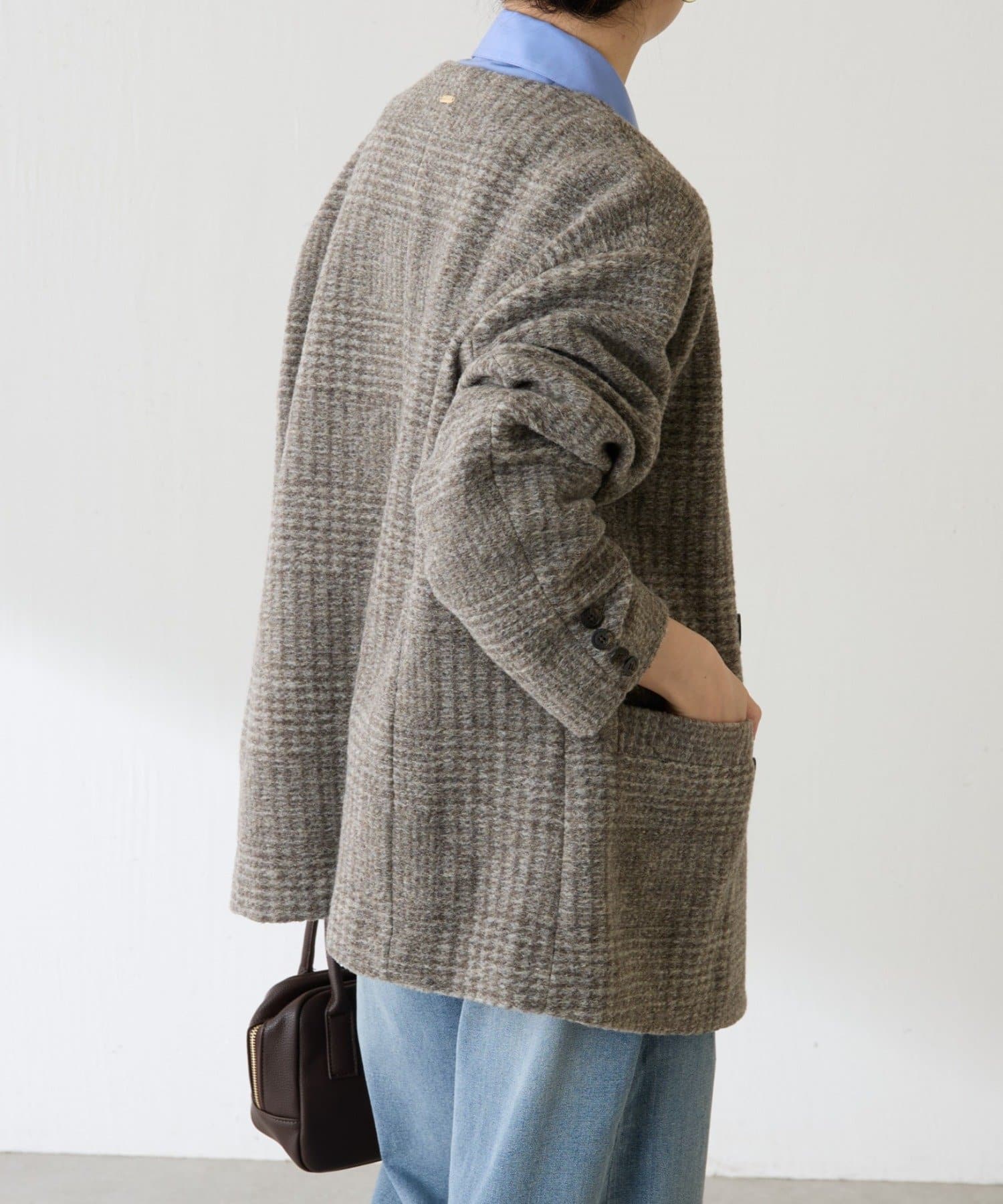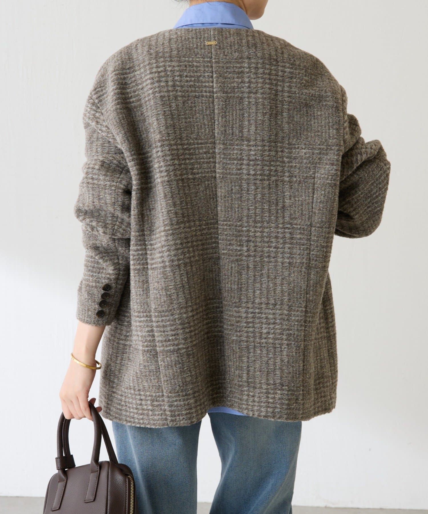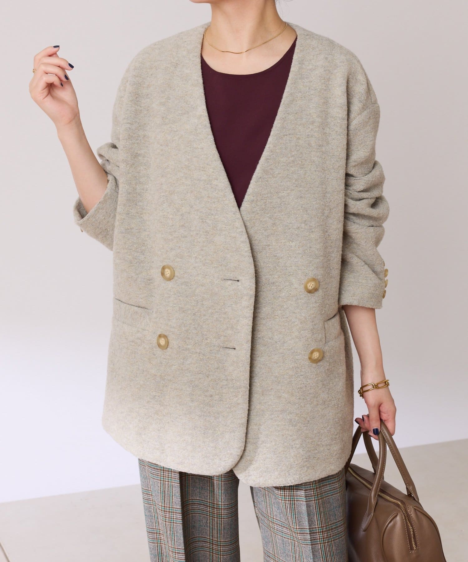 ・イタリアのスライバー素材を使用した、カーディガン感覚で羽織れるノーカラージャケット。
