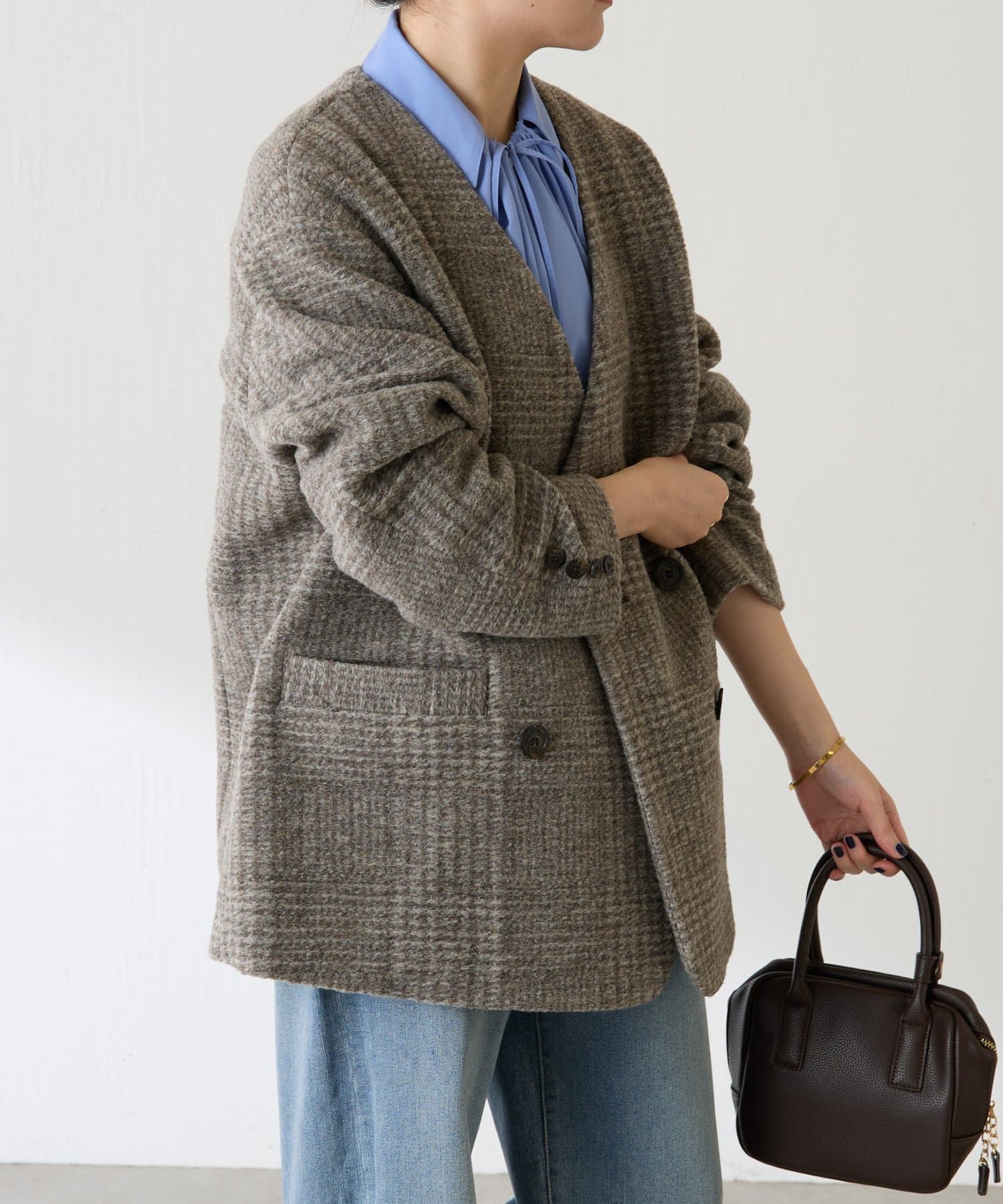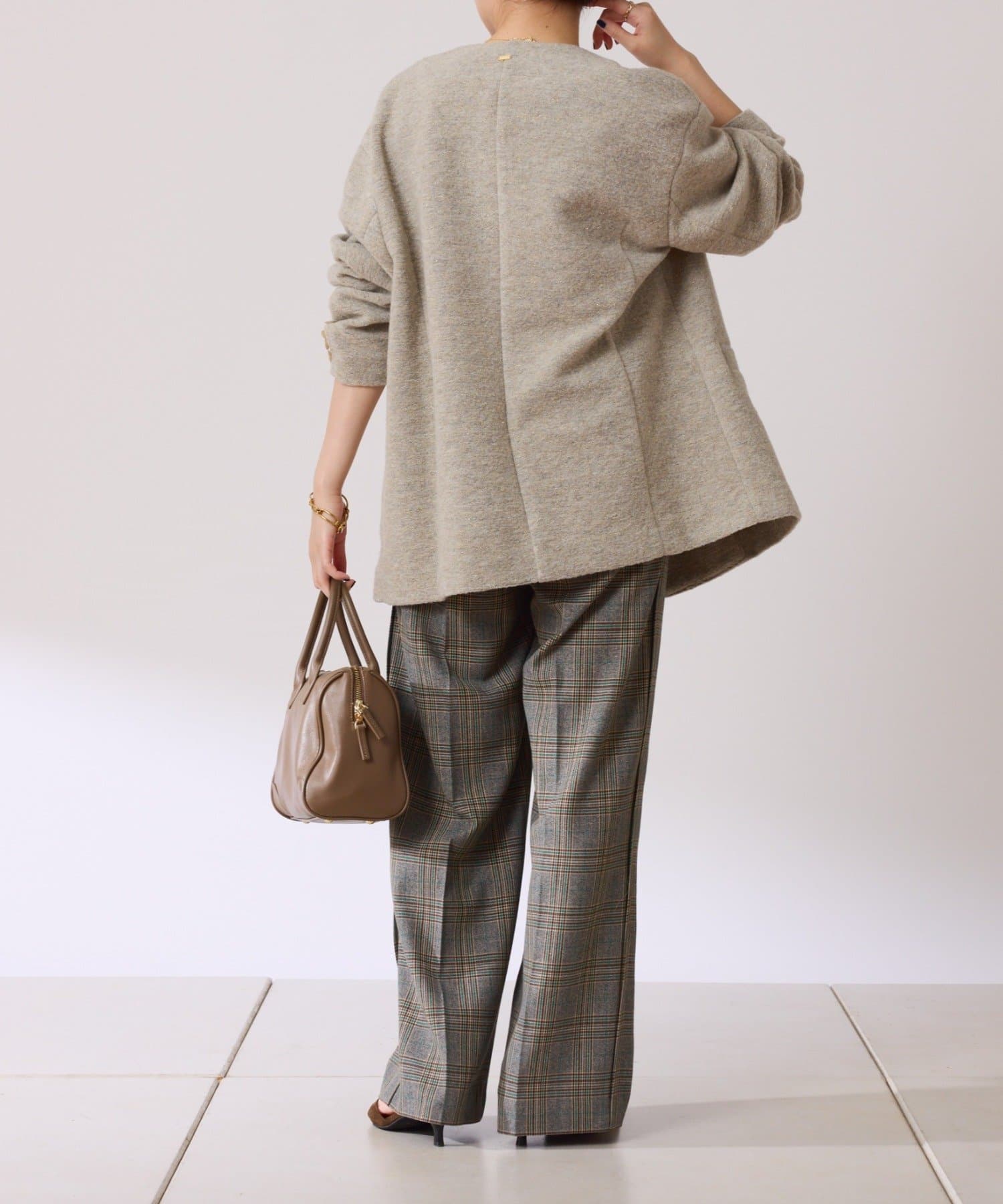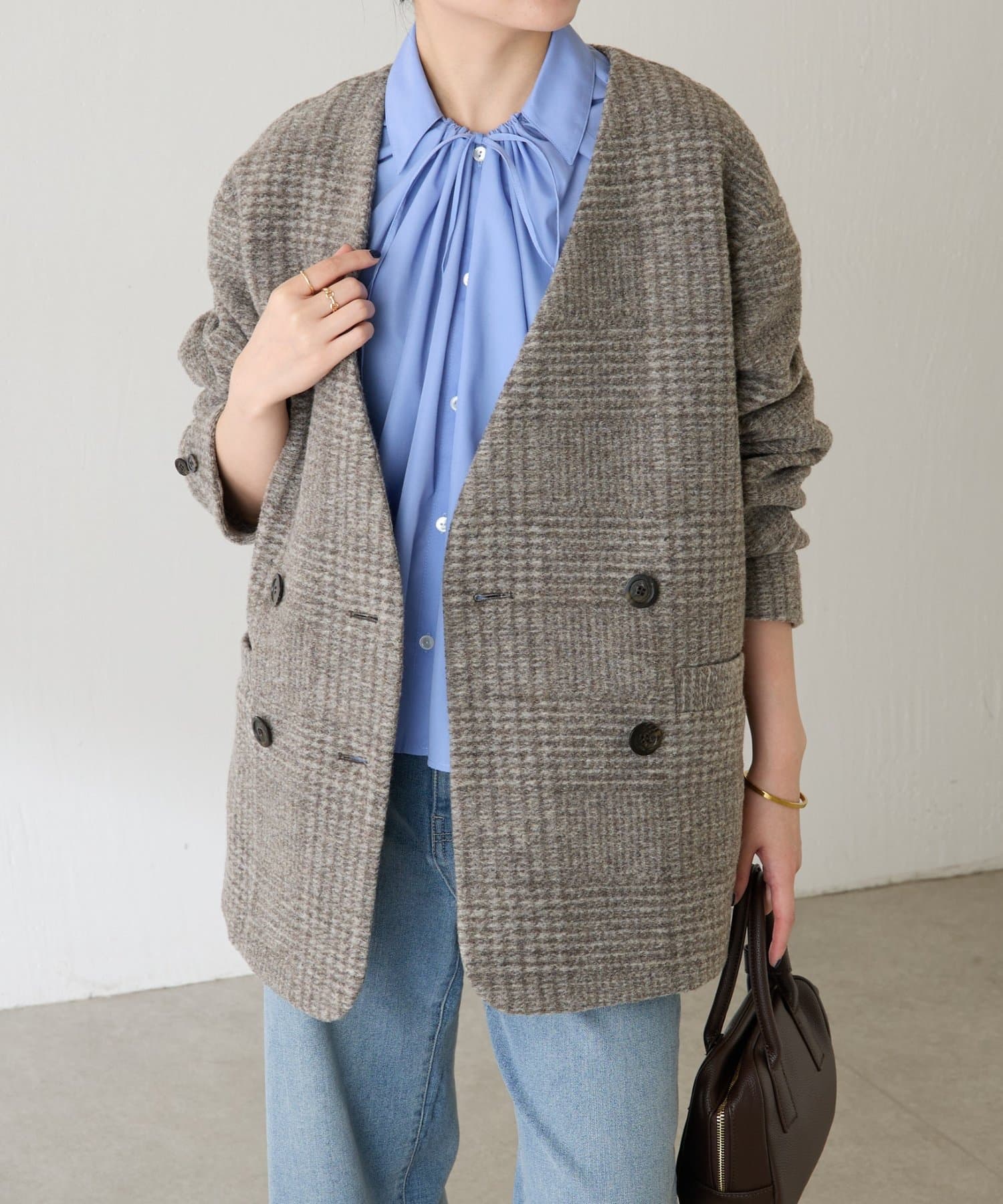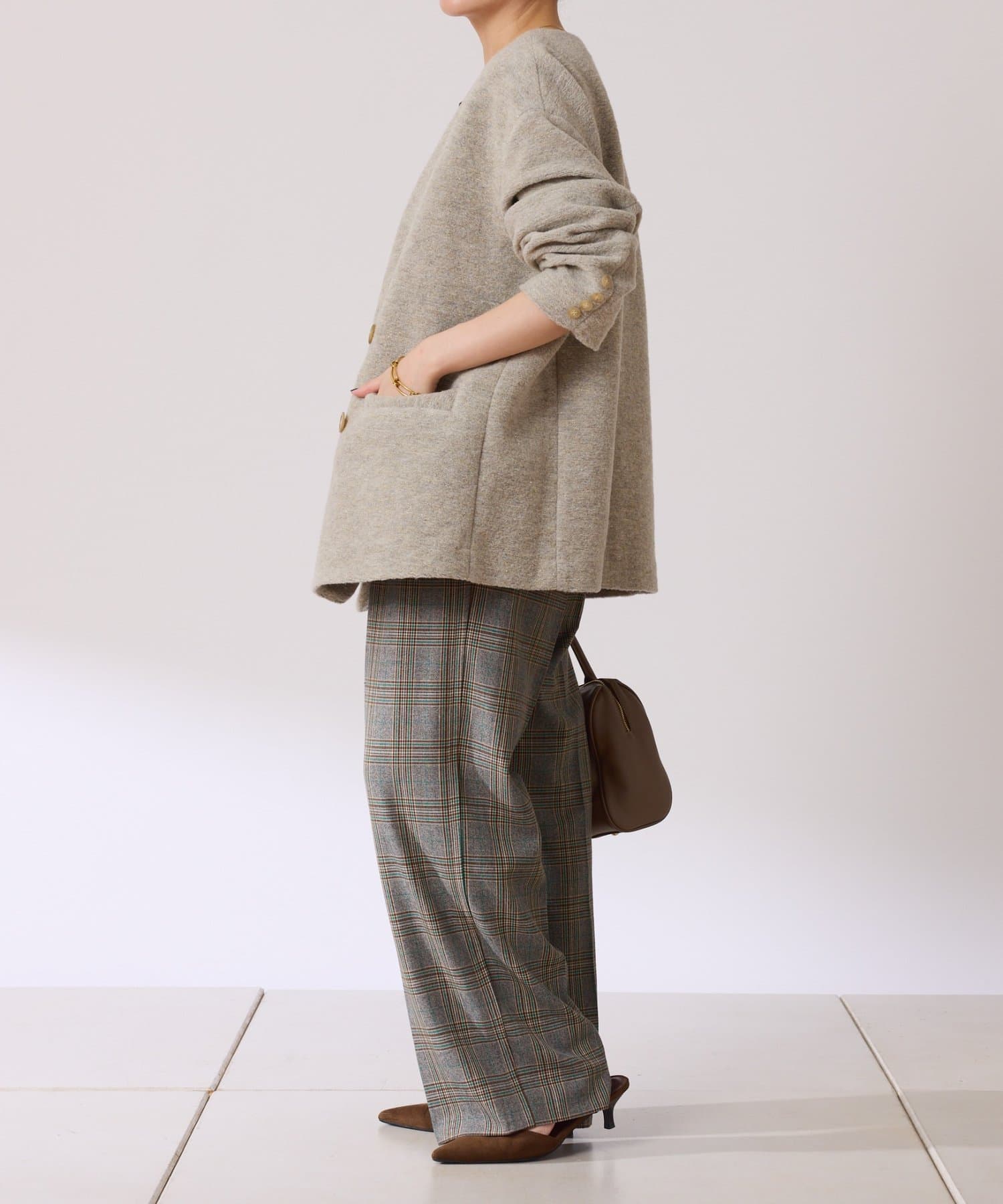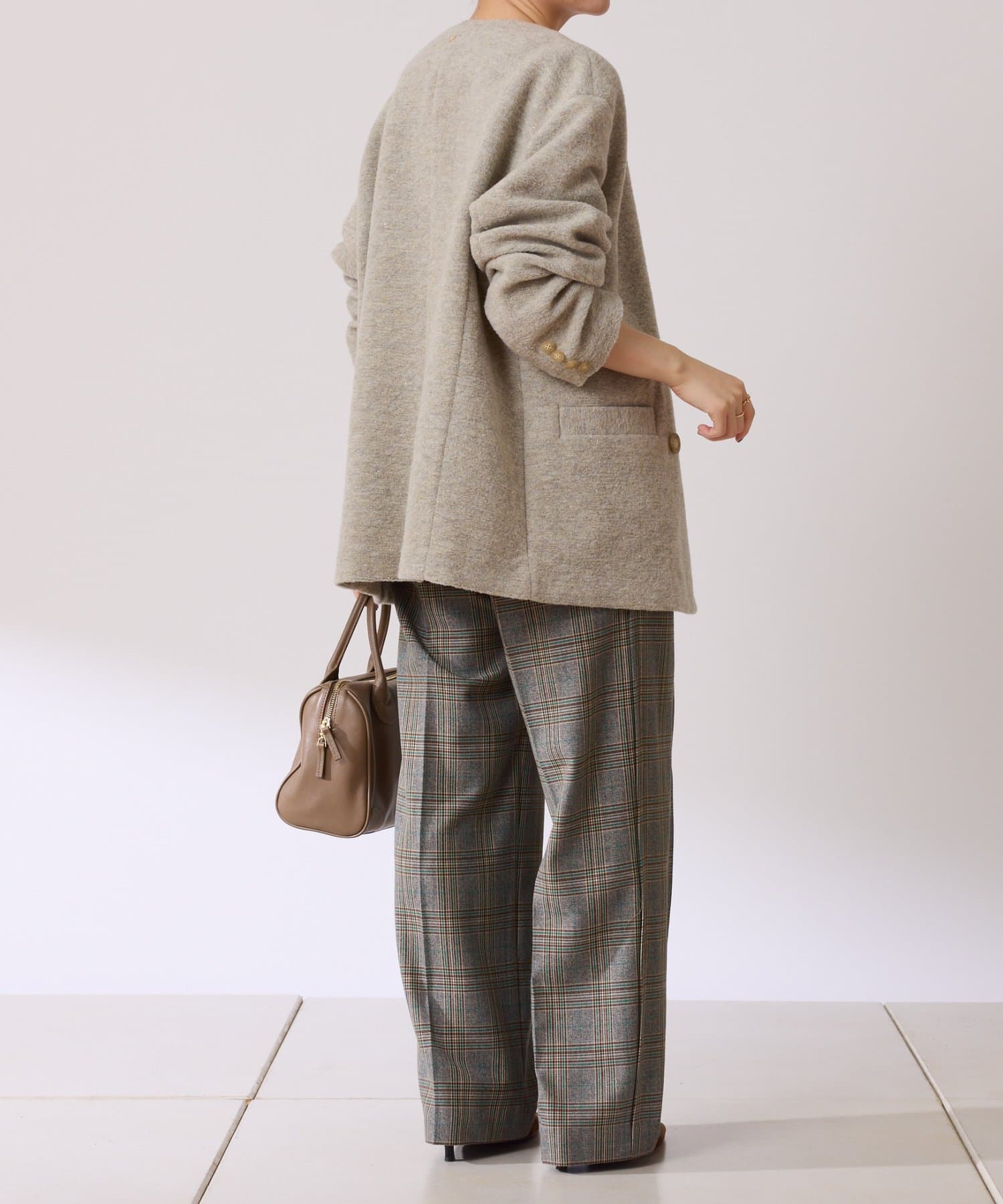 ・イタリアのスライバー素材を使用した、カーディガン感覚で羽織れるノーカラージャケット。