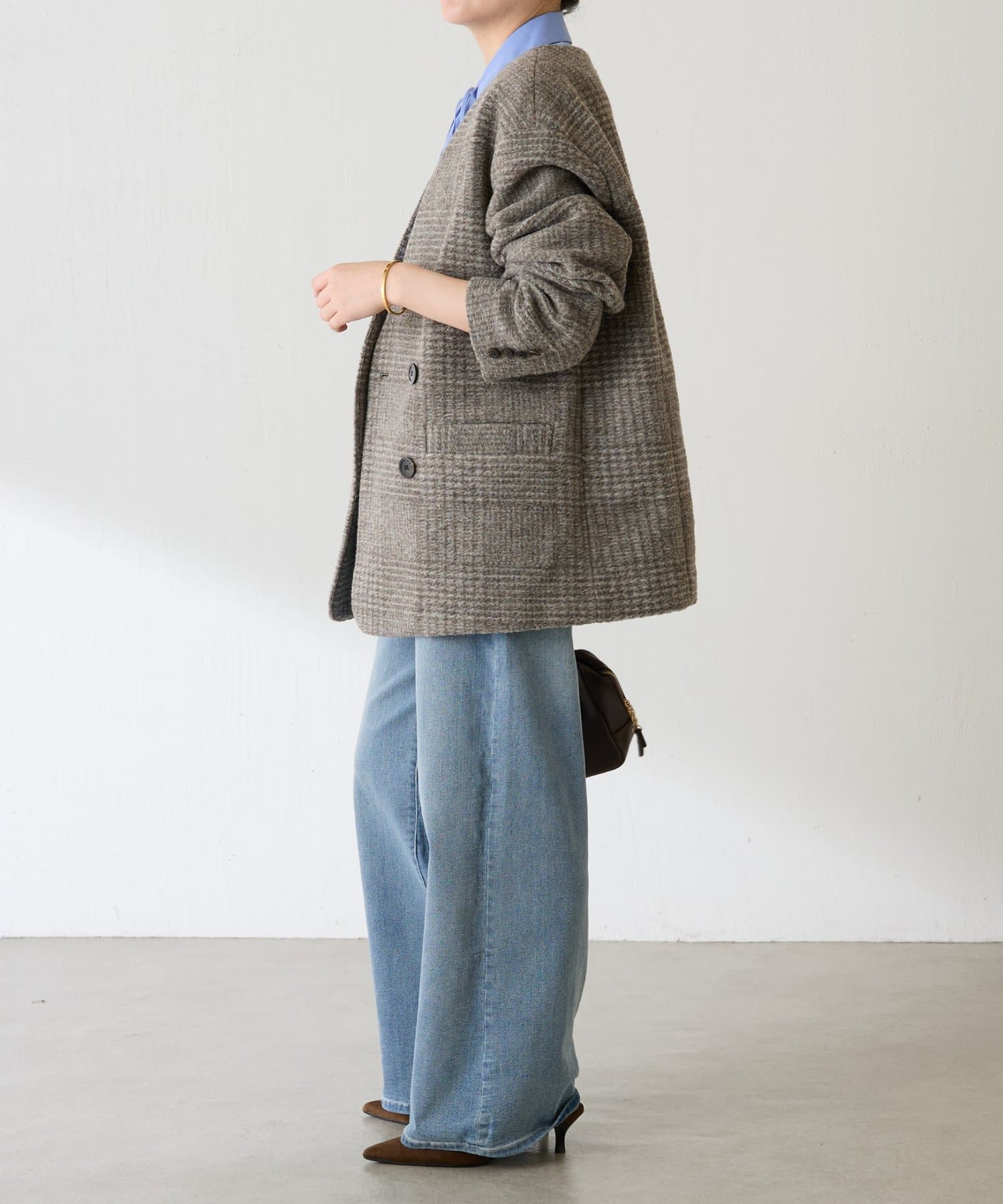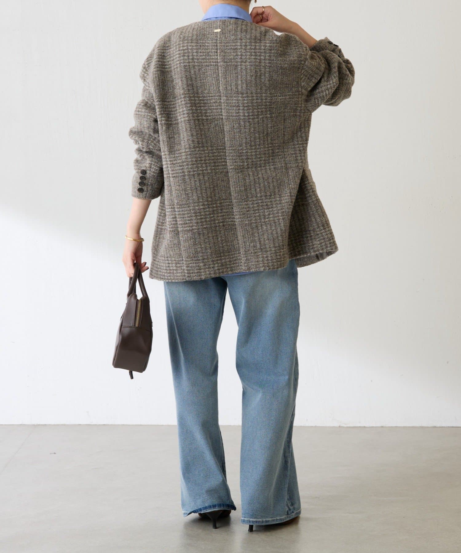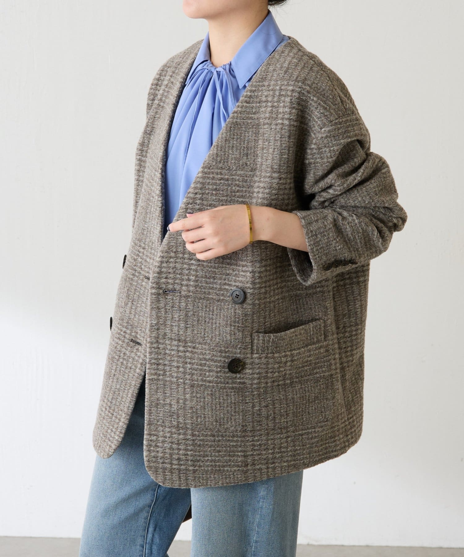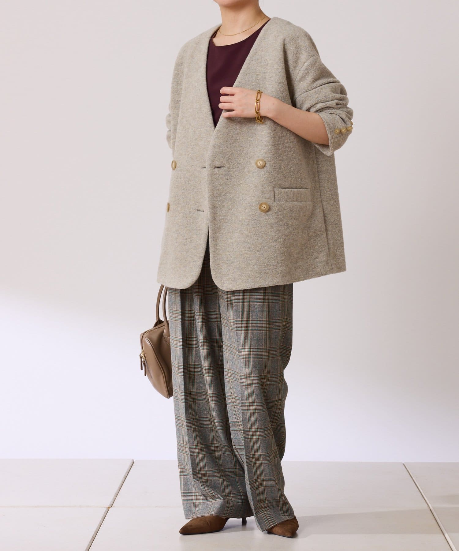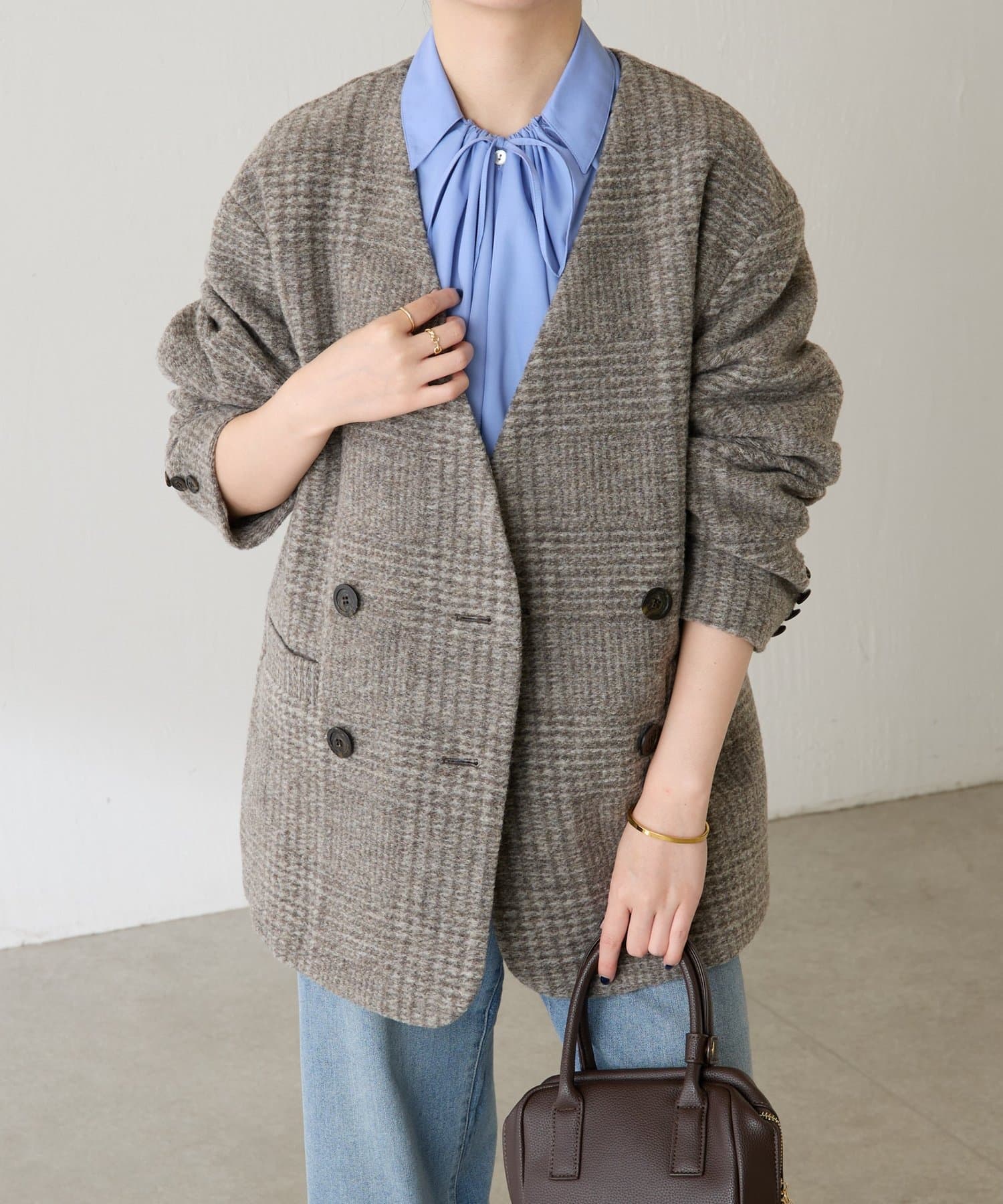 ・イタリアのスライバー素材を使用した、カーディガン感覚で羽織れるノーカラージャケット。