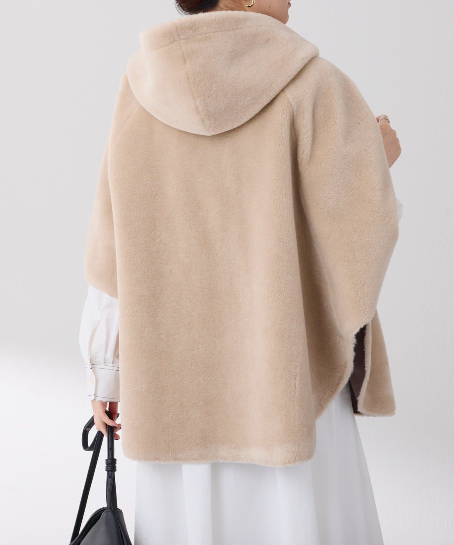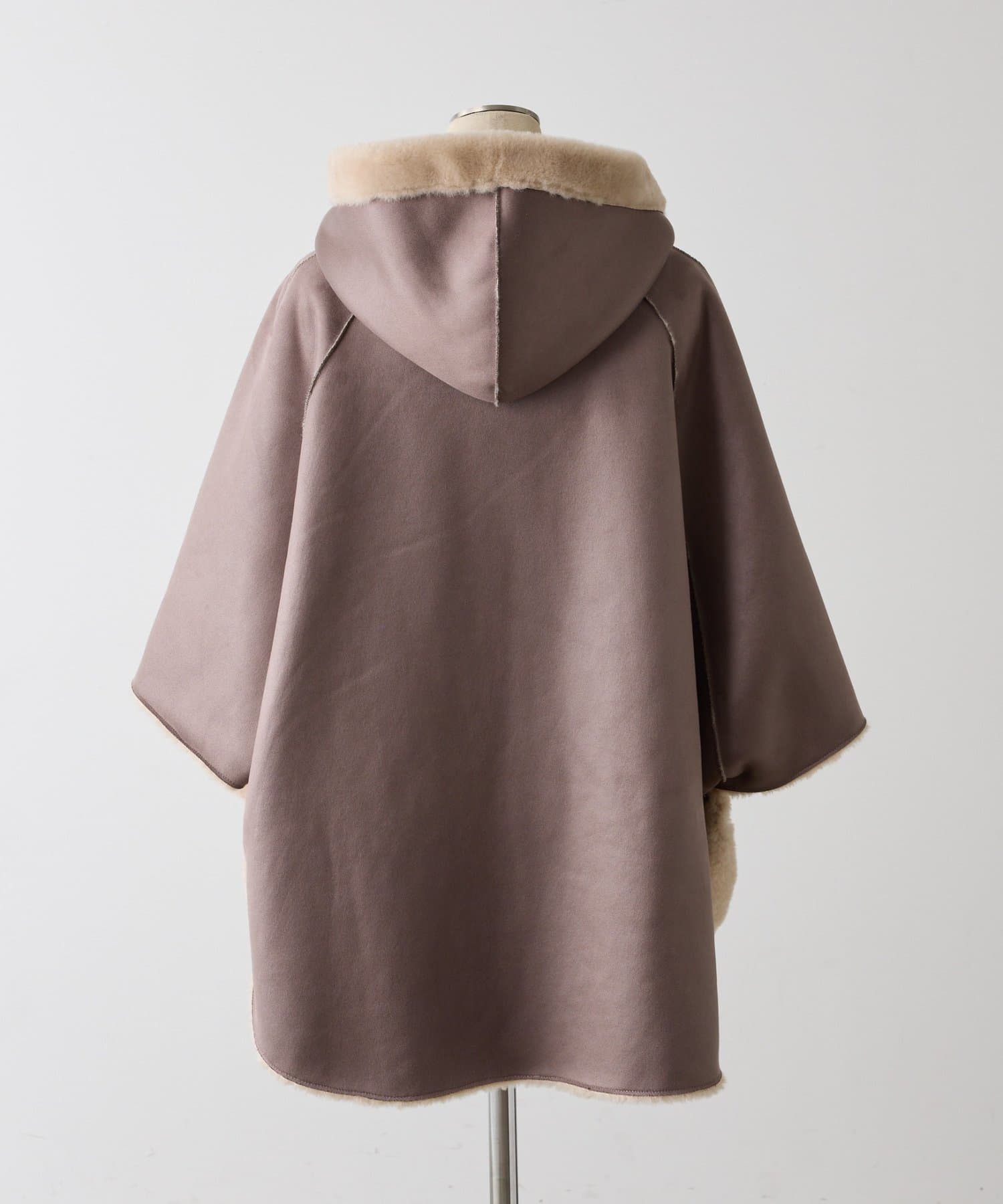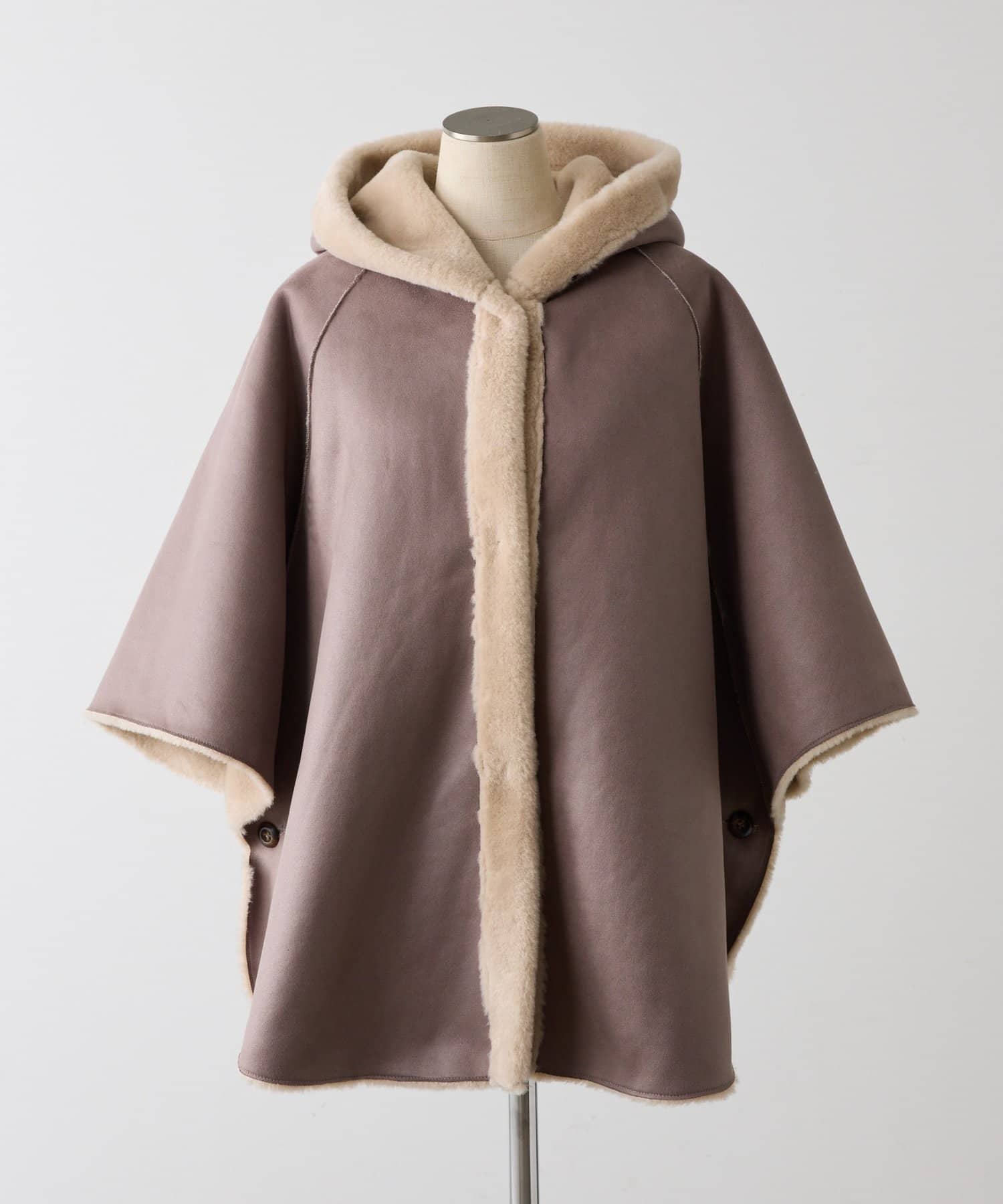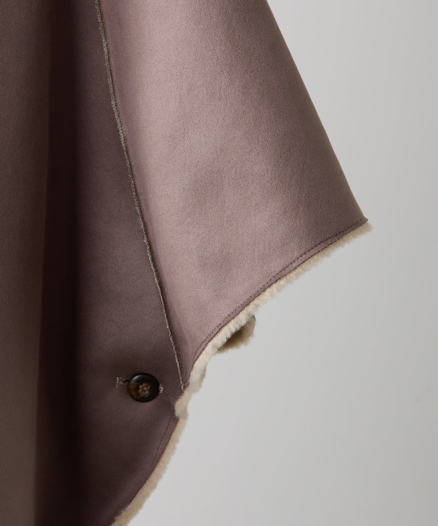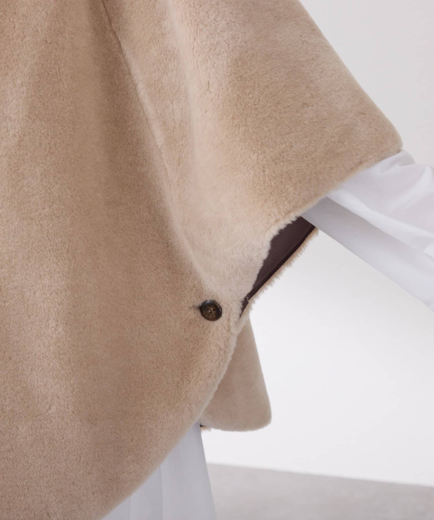 ・ショートファーとスエードのリバーシブルで楽しめるポンチョ。